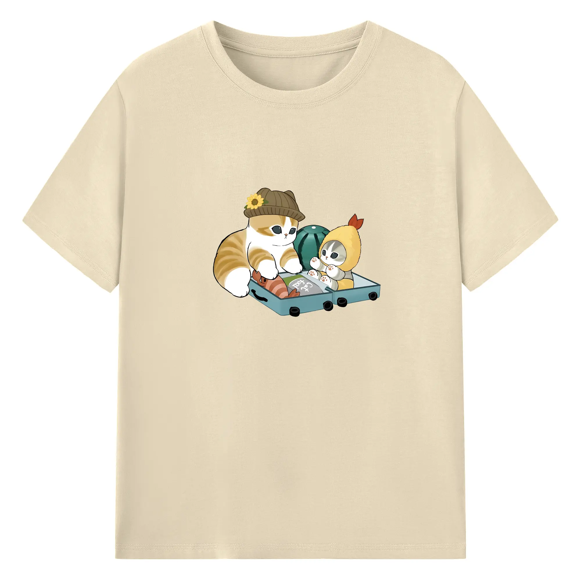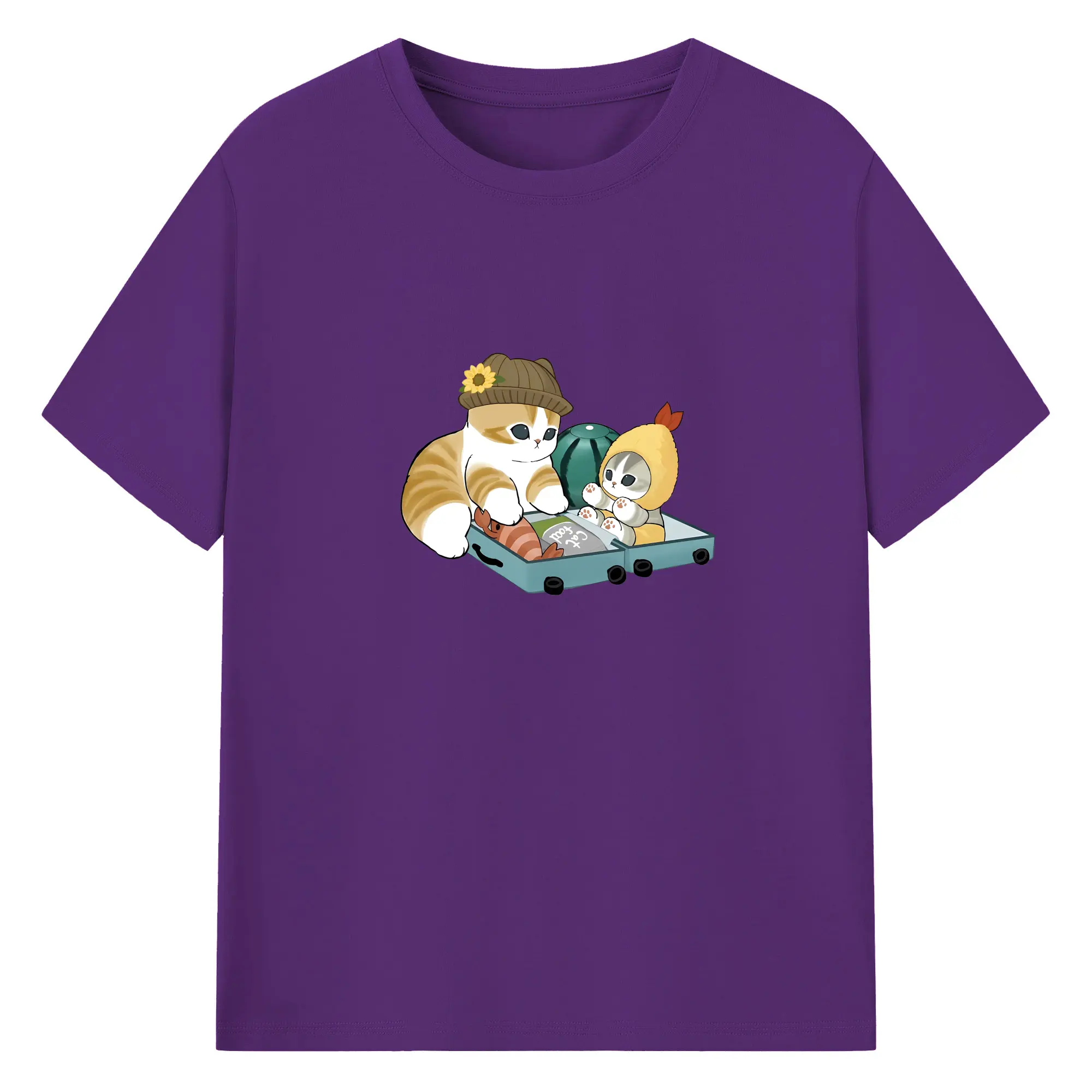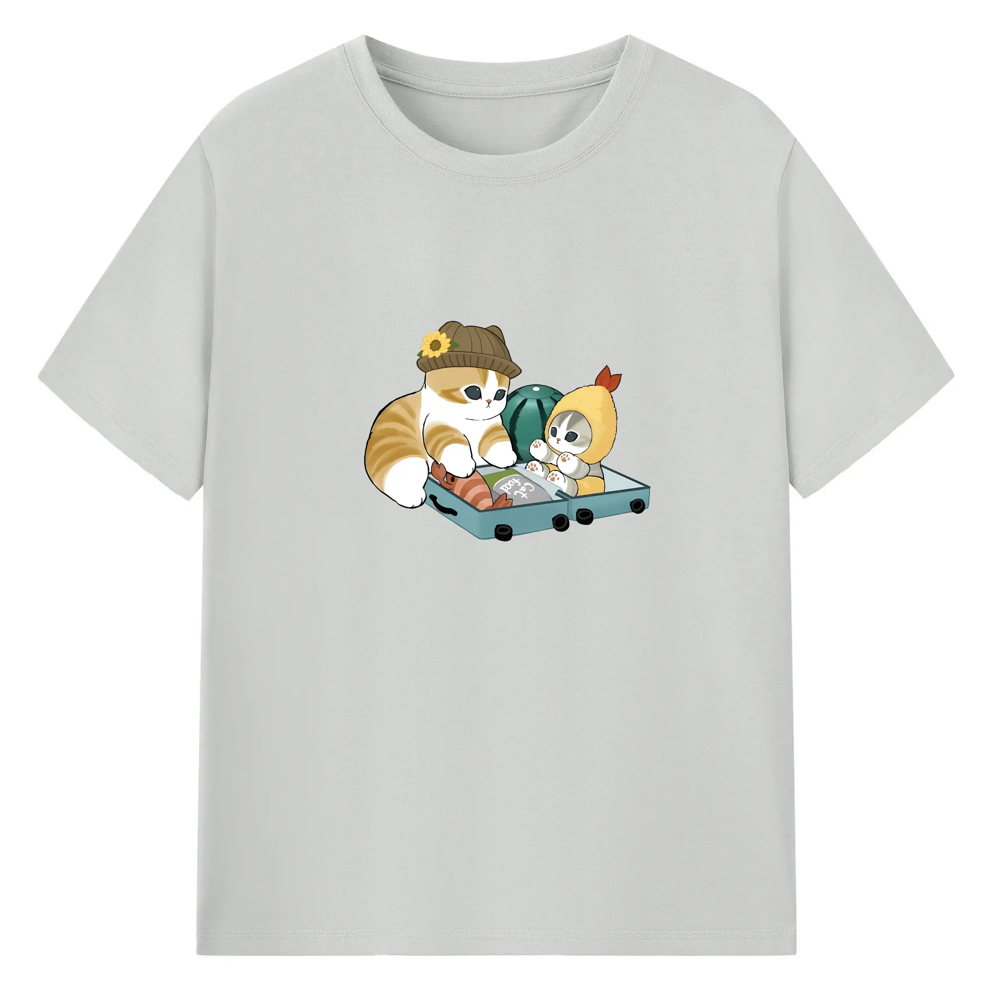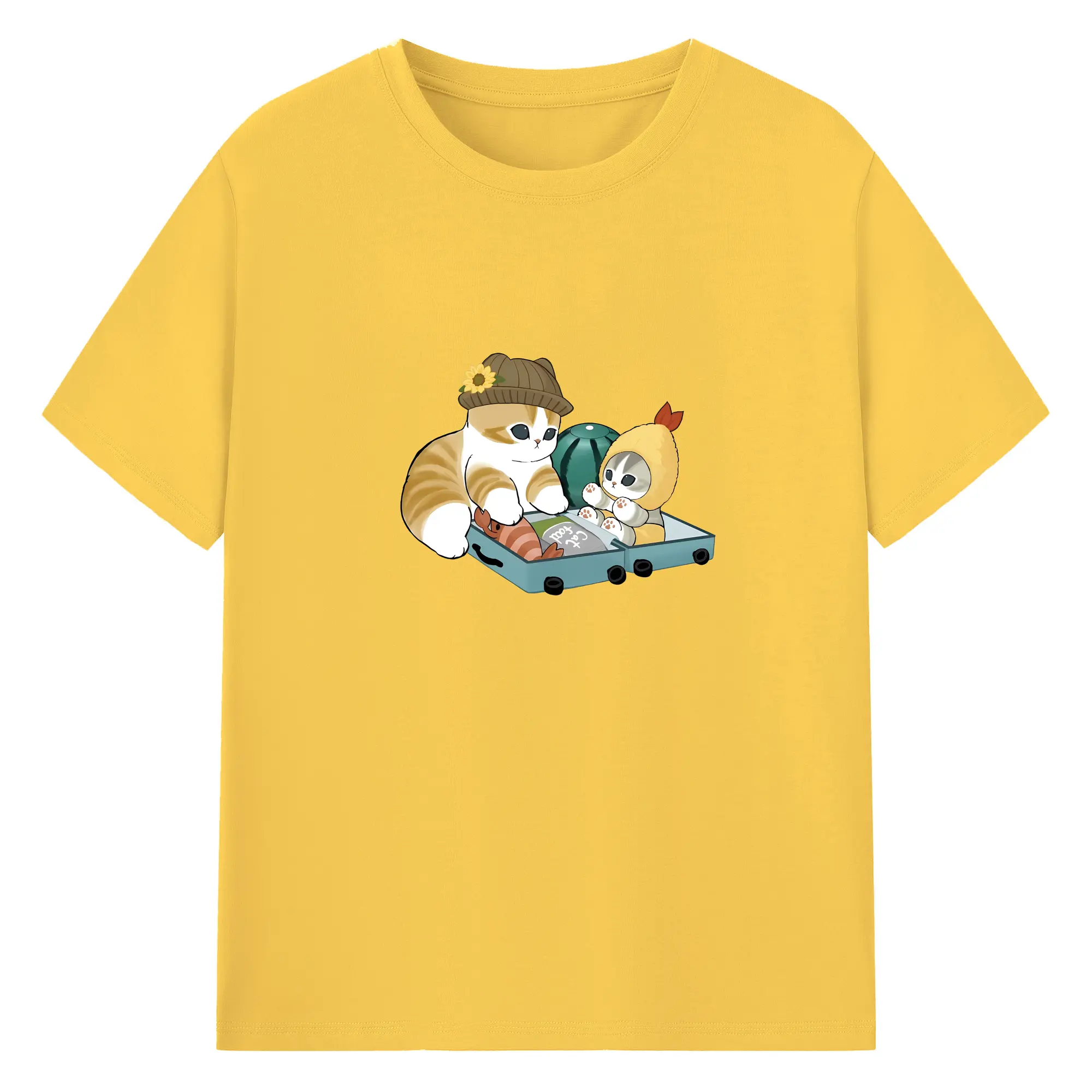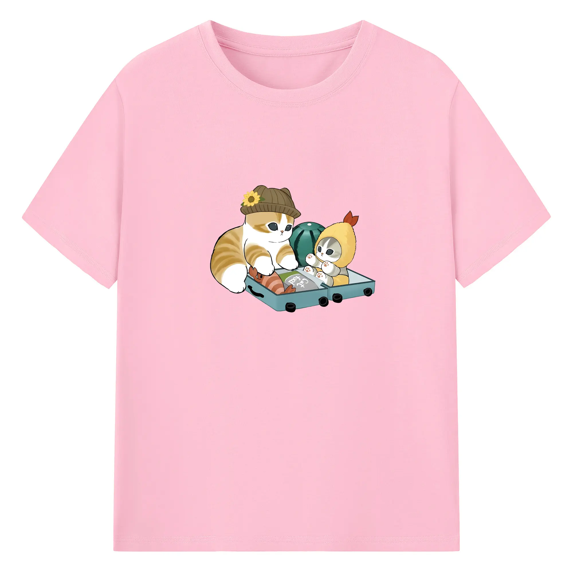 Mofusand ネコ×ドーナツ キャラクター 可愛いデザイン - 綿100% 半袖Tシャツ ・ フロントプリント ・ 快適 通気性 ・ 日常使い 散歩 スポーツ用