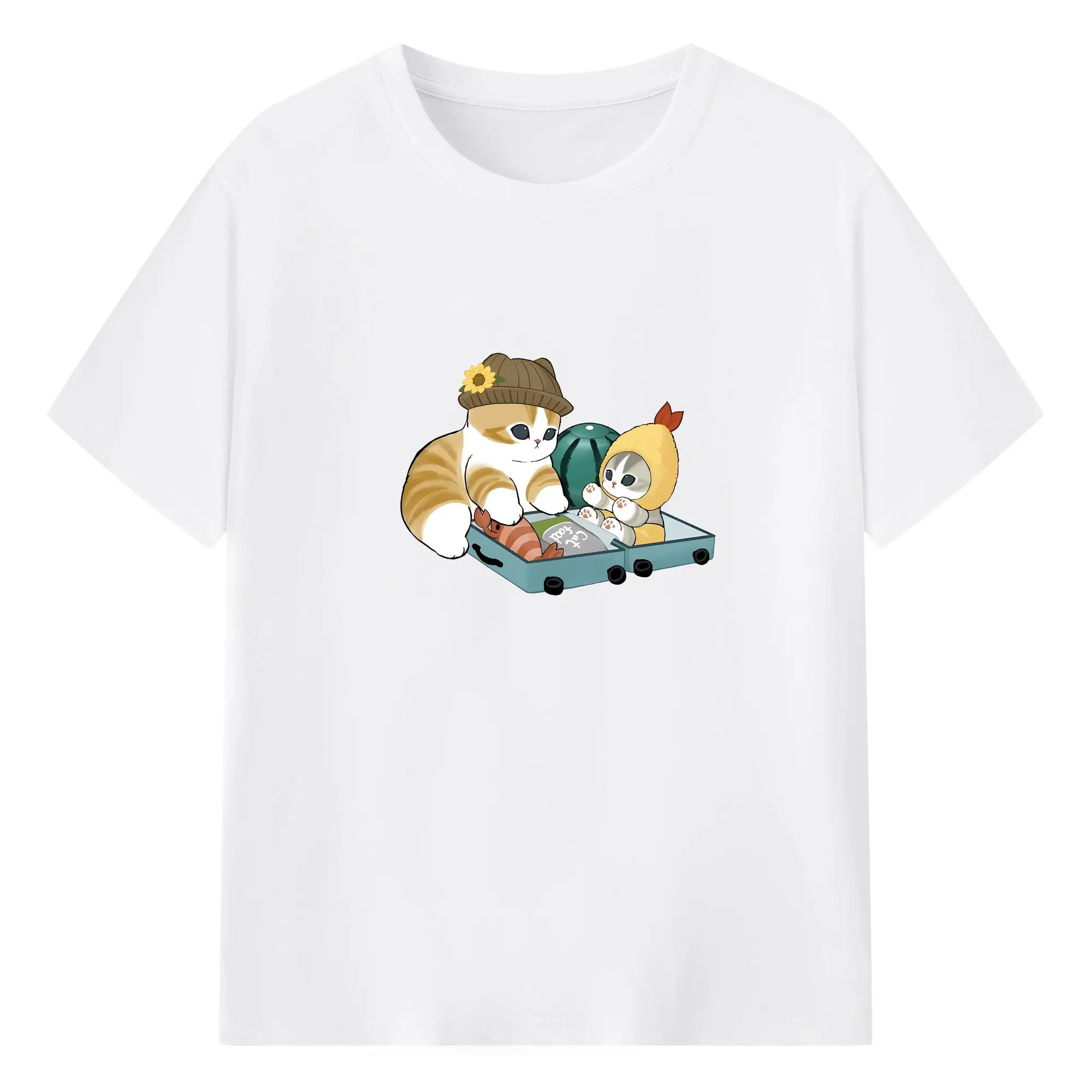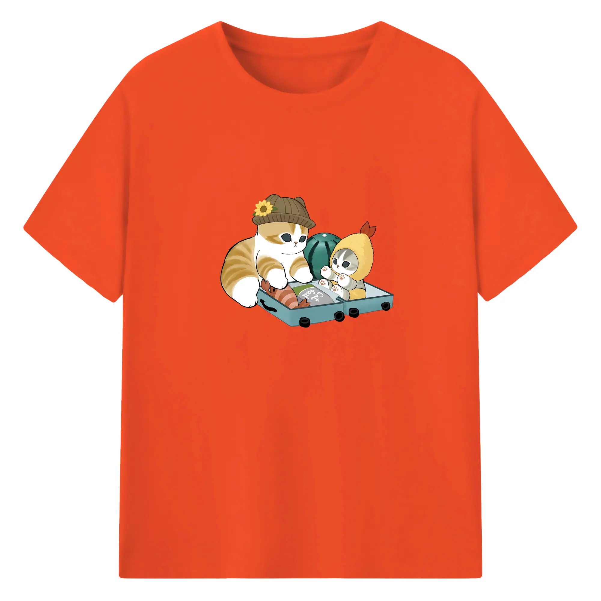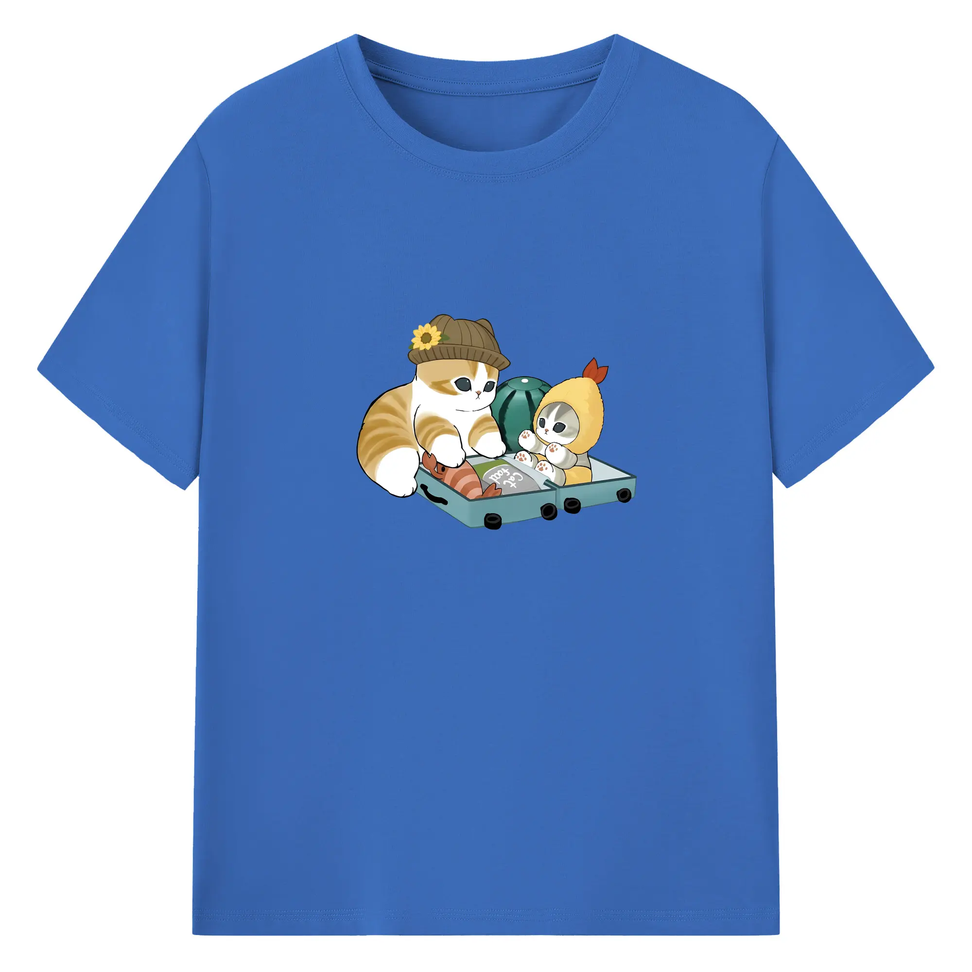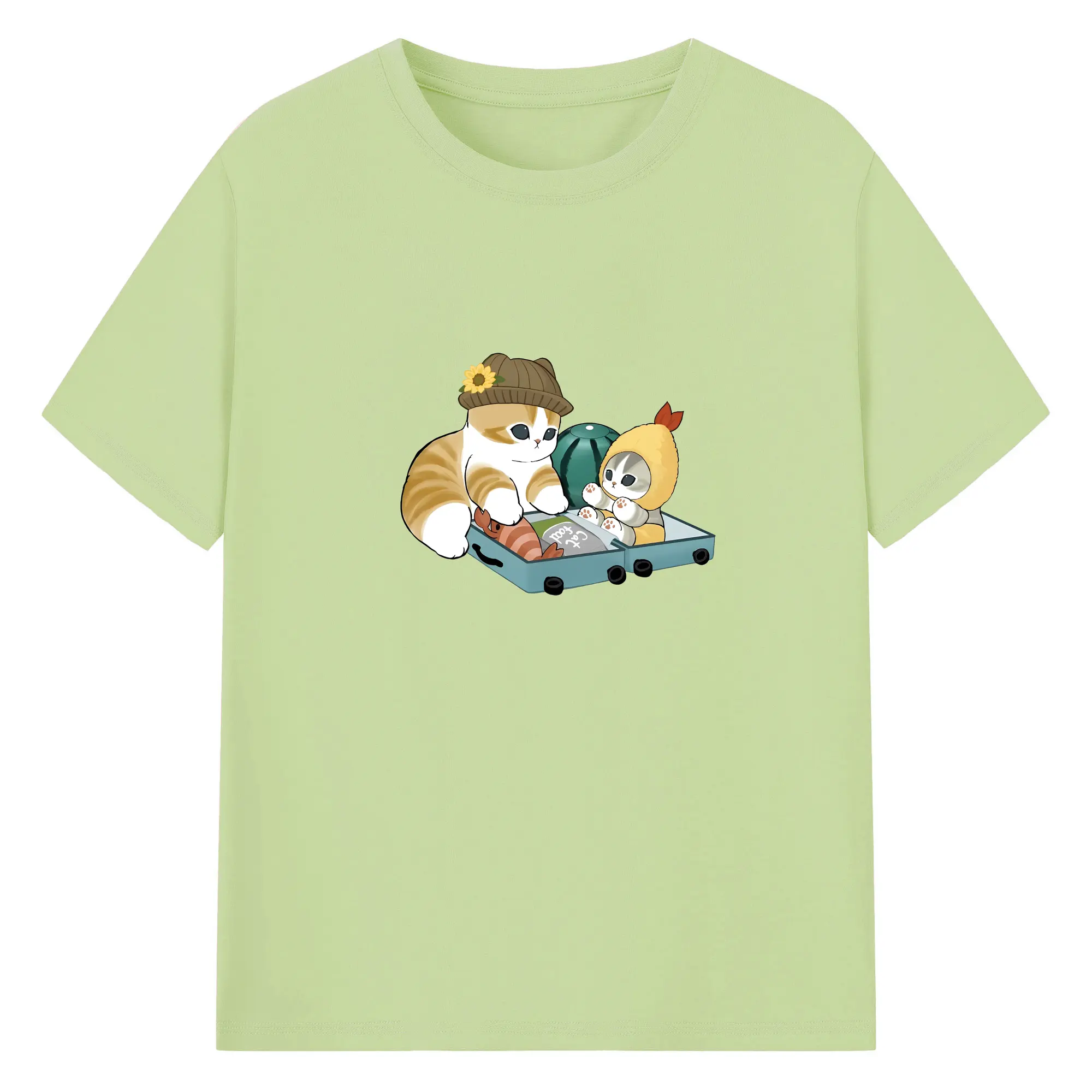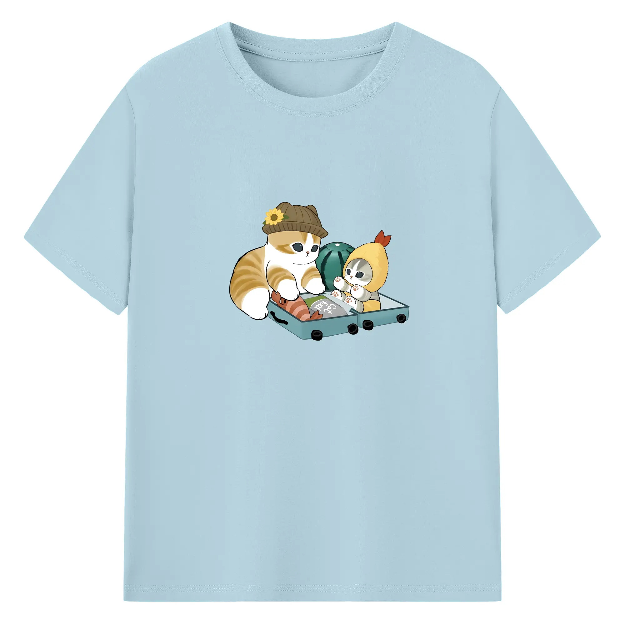 Mofusand ネコ×ドーナツ キャラクター 可愛いデザイン - 綿100% 半袖Tシャツ ・ フロントプリント ・ 快適 通気性 ・ 日常使い 散歩 スポーツ用