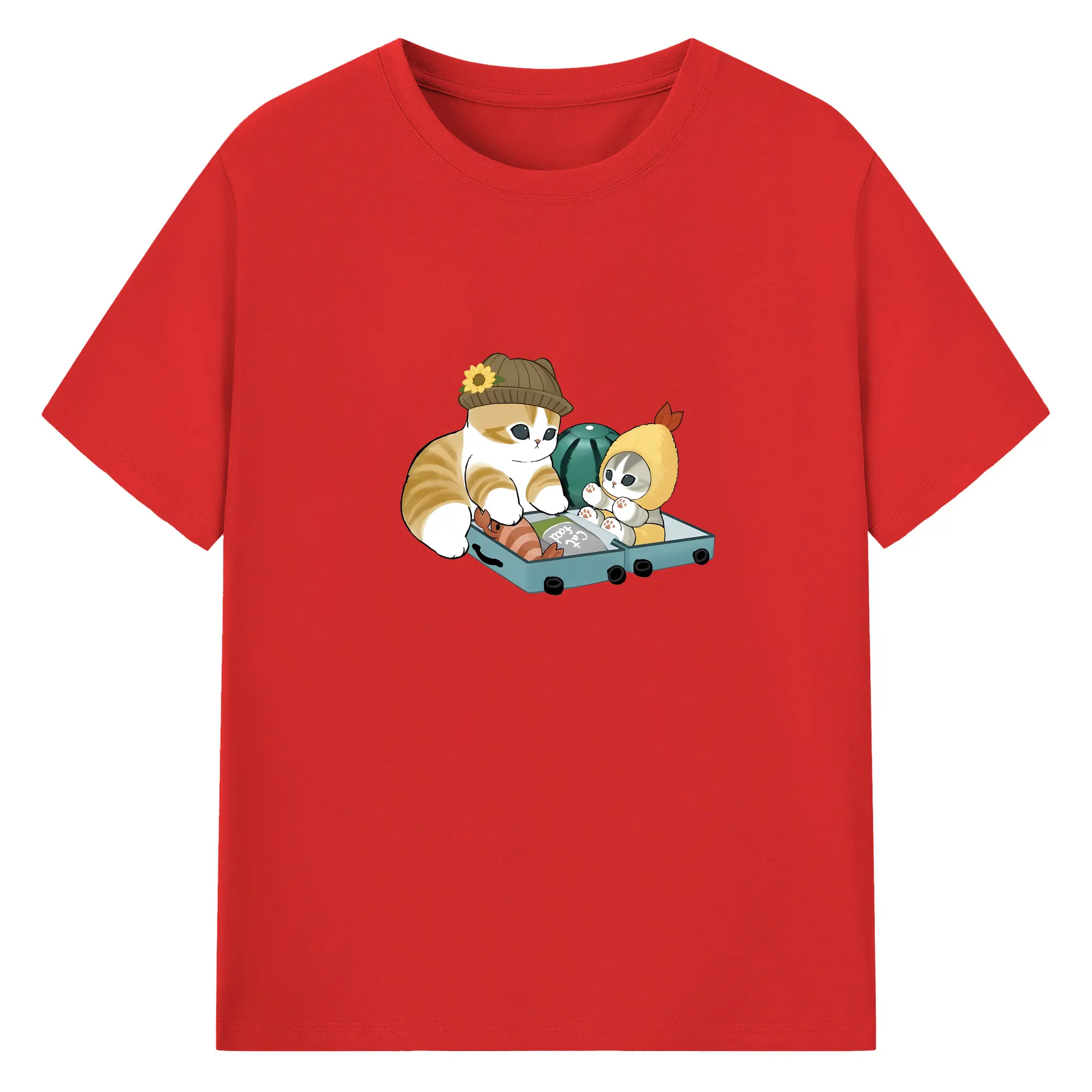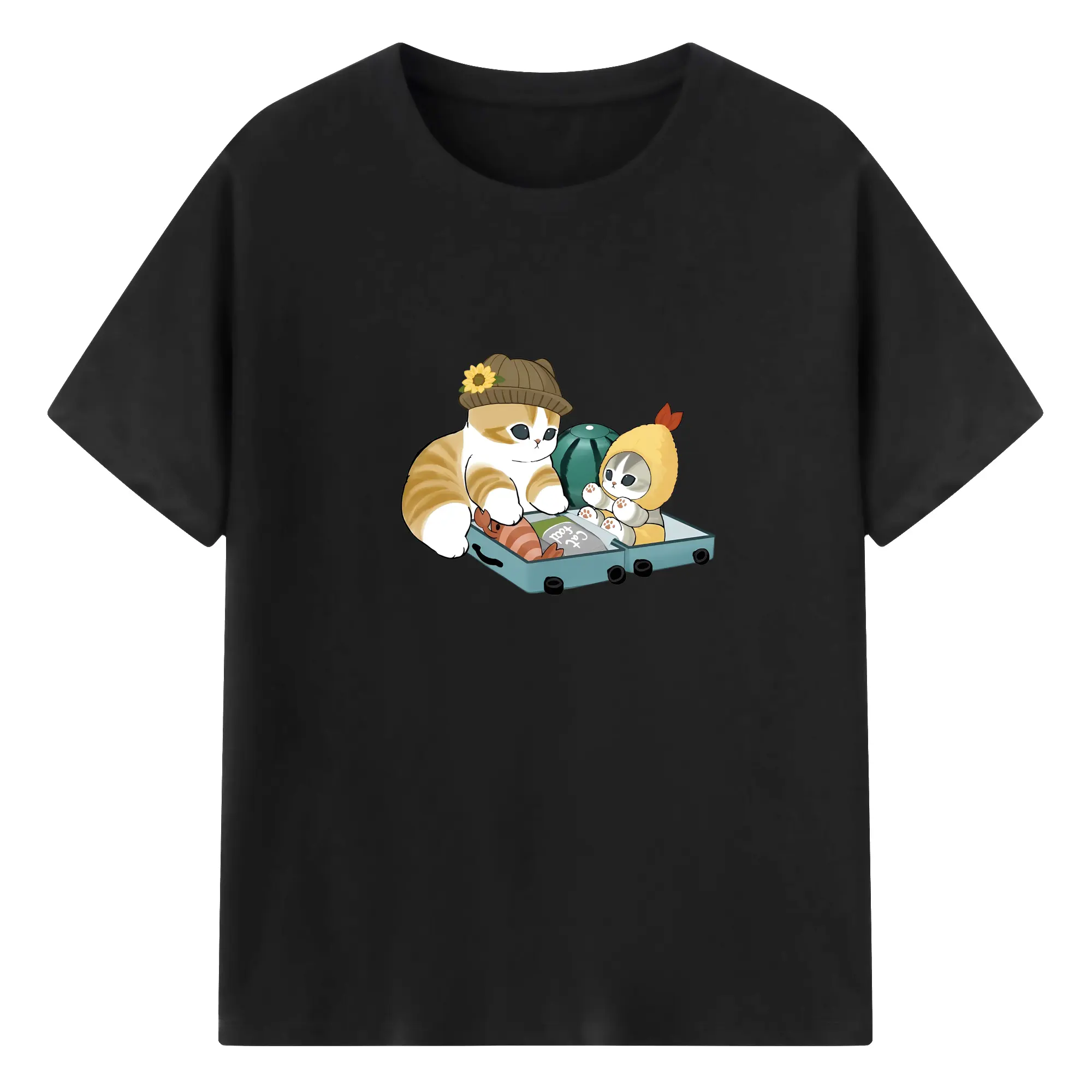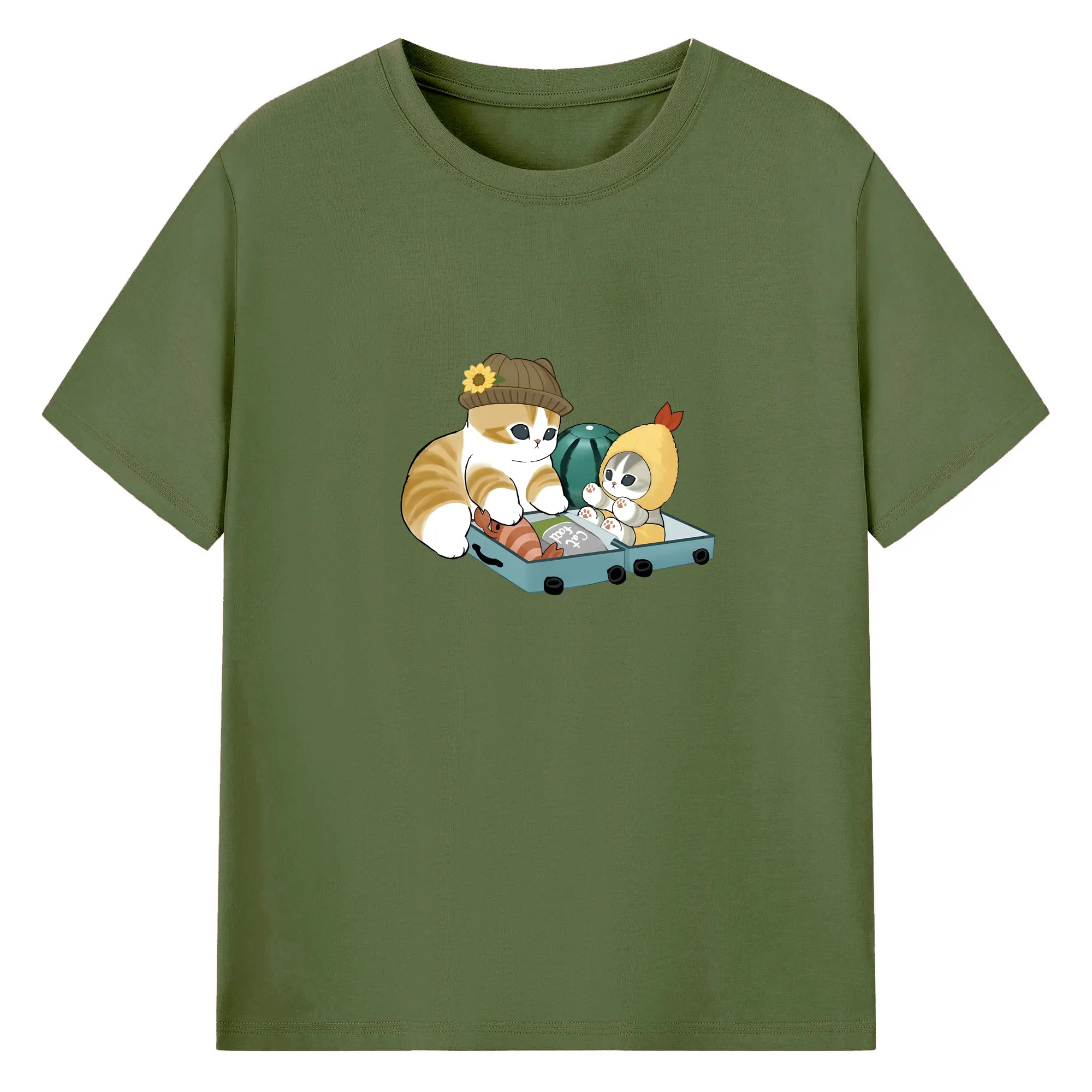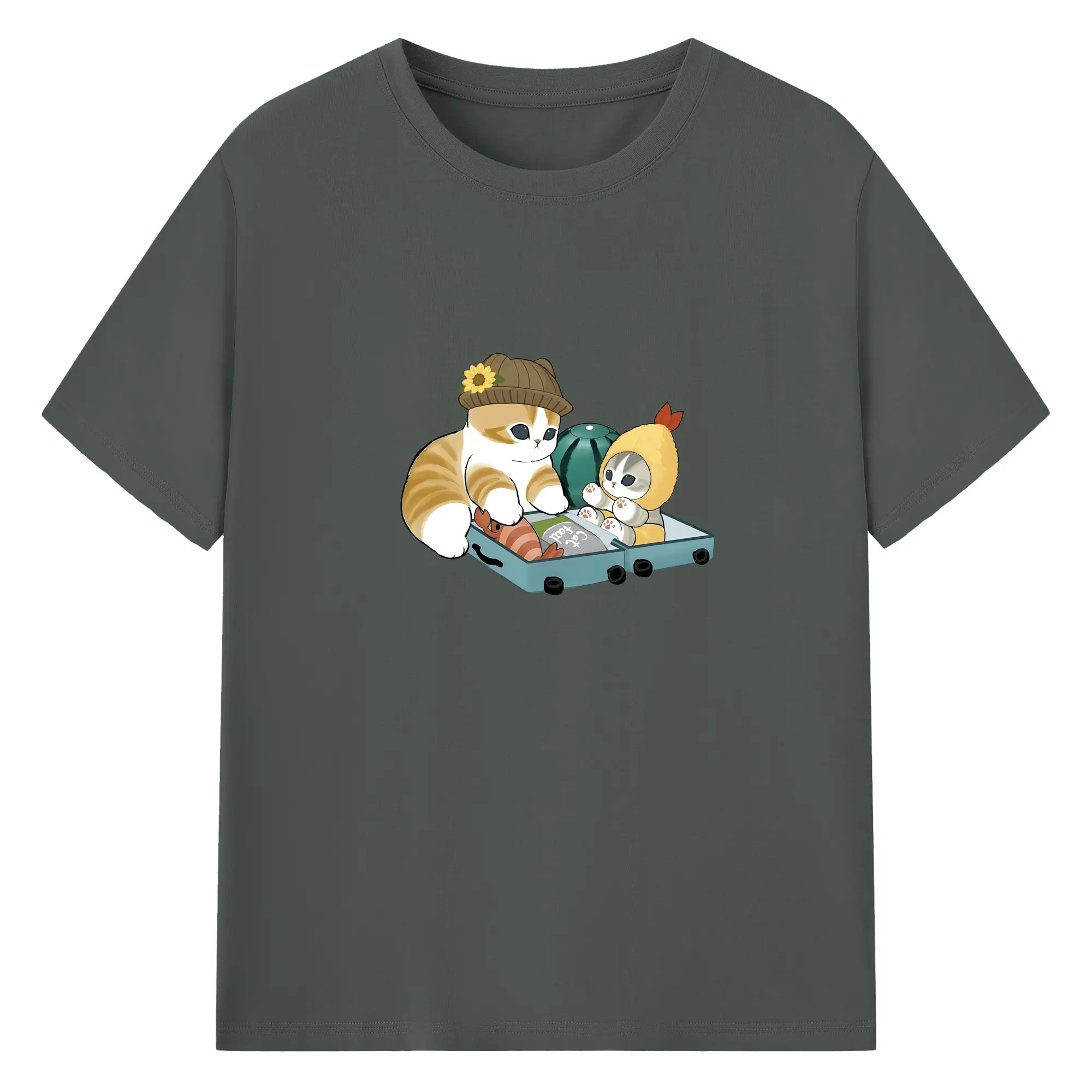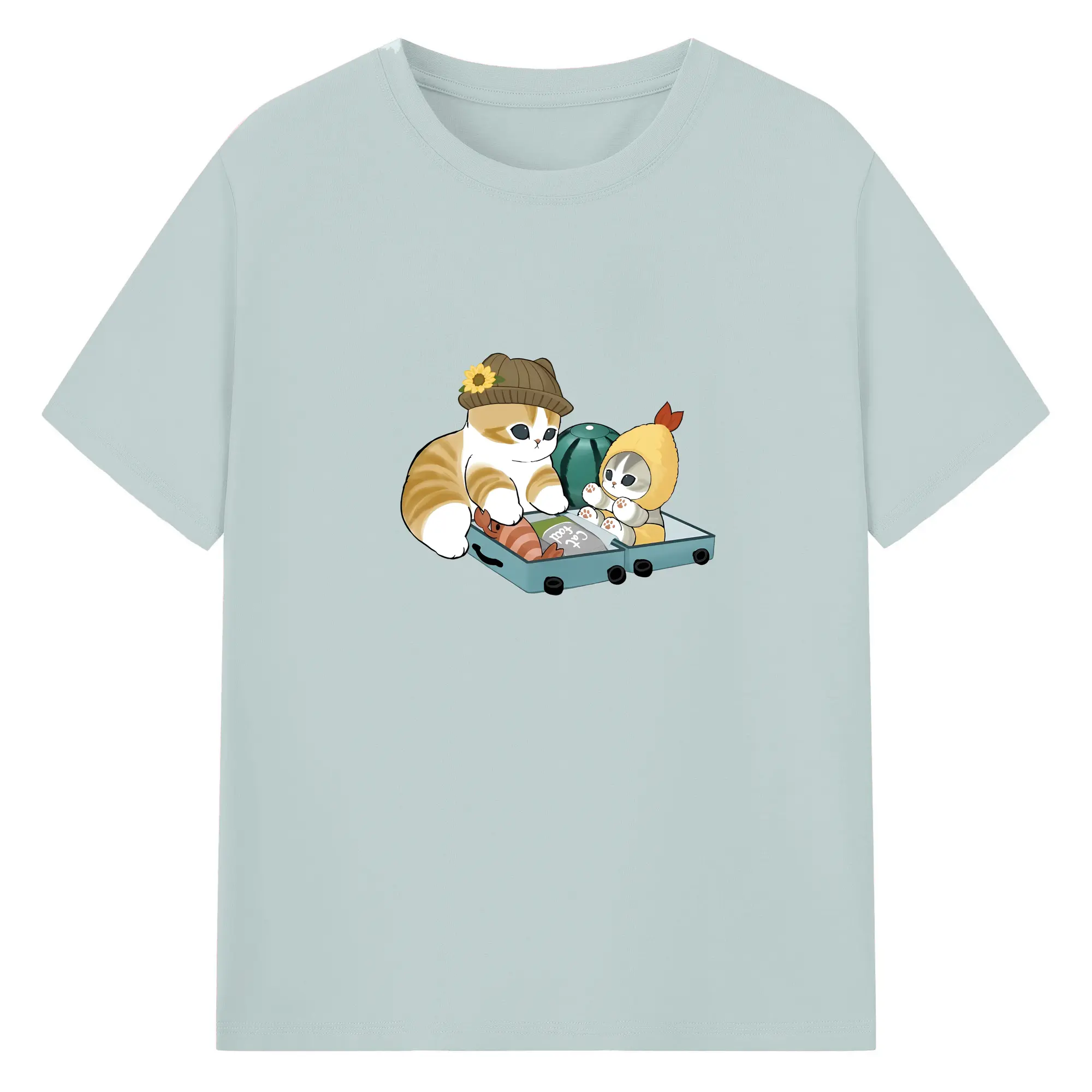 Mofusand ネコ×ドーナツ キャラクター 可愛いデザイン - 綿100% 半袖Tシャツ ・ フロントプリント ・ 快適 通気性 ・ 日常使い 散歩 スポーツ用