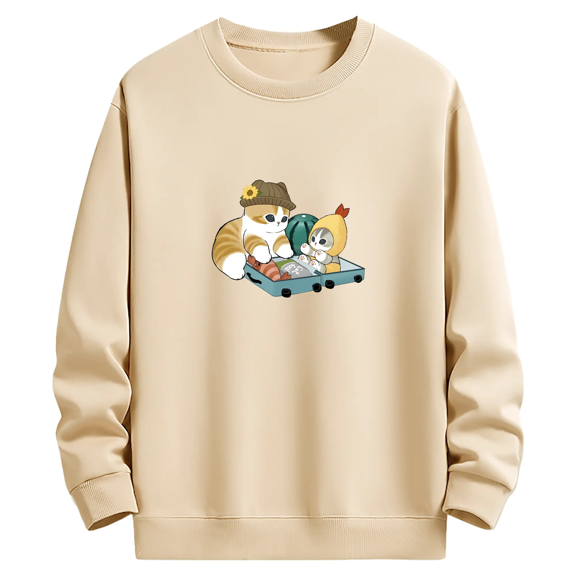 もふもふのにゃんこが美味しいパンになった - 高品質 クルーネック スウェット ・ コットン59% ポリエステル41% ・ ユニセックス 長袖 トレーナー ・ カジュアル デイリー スポーツ 散歩用