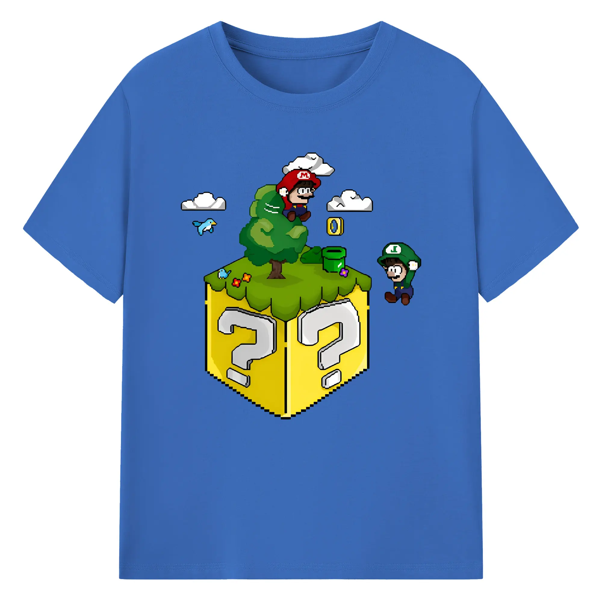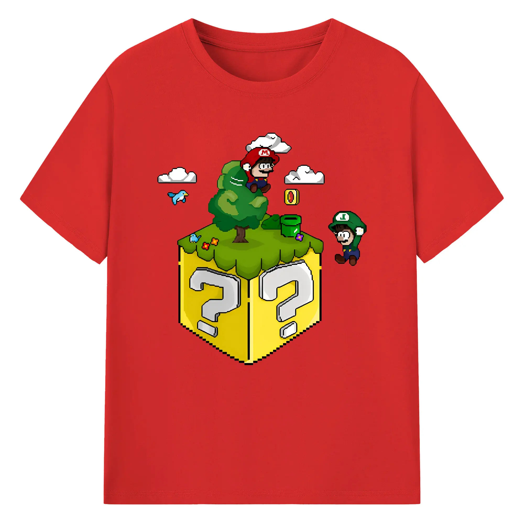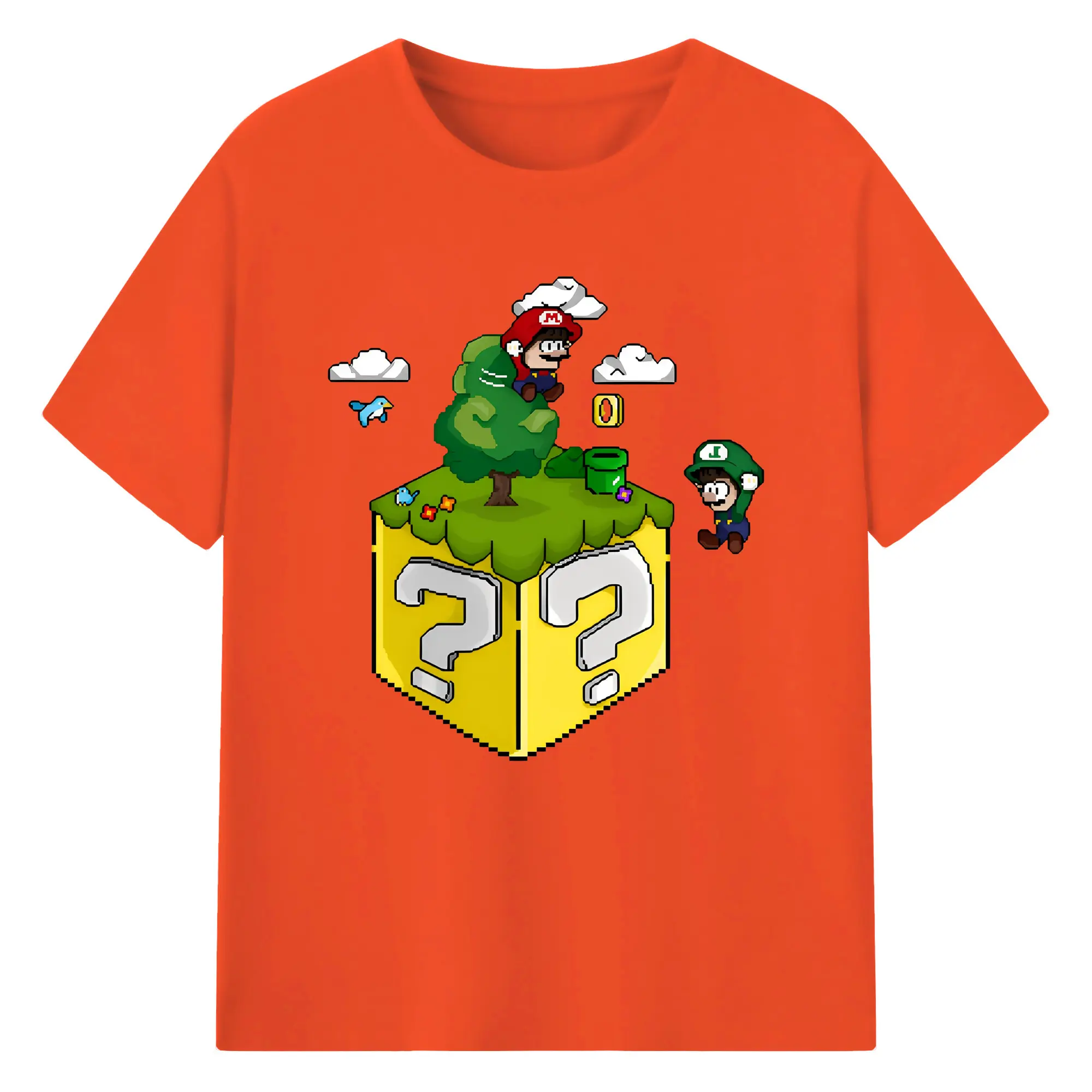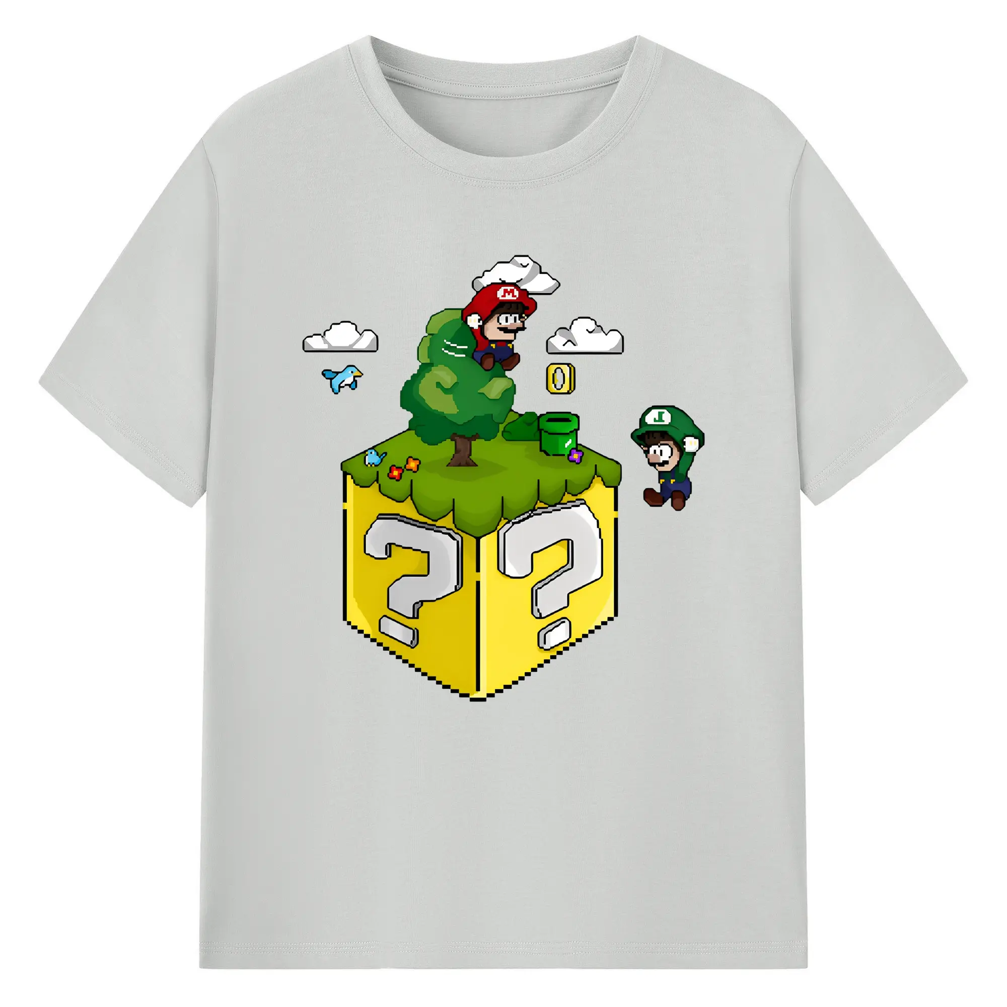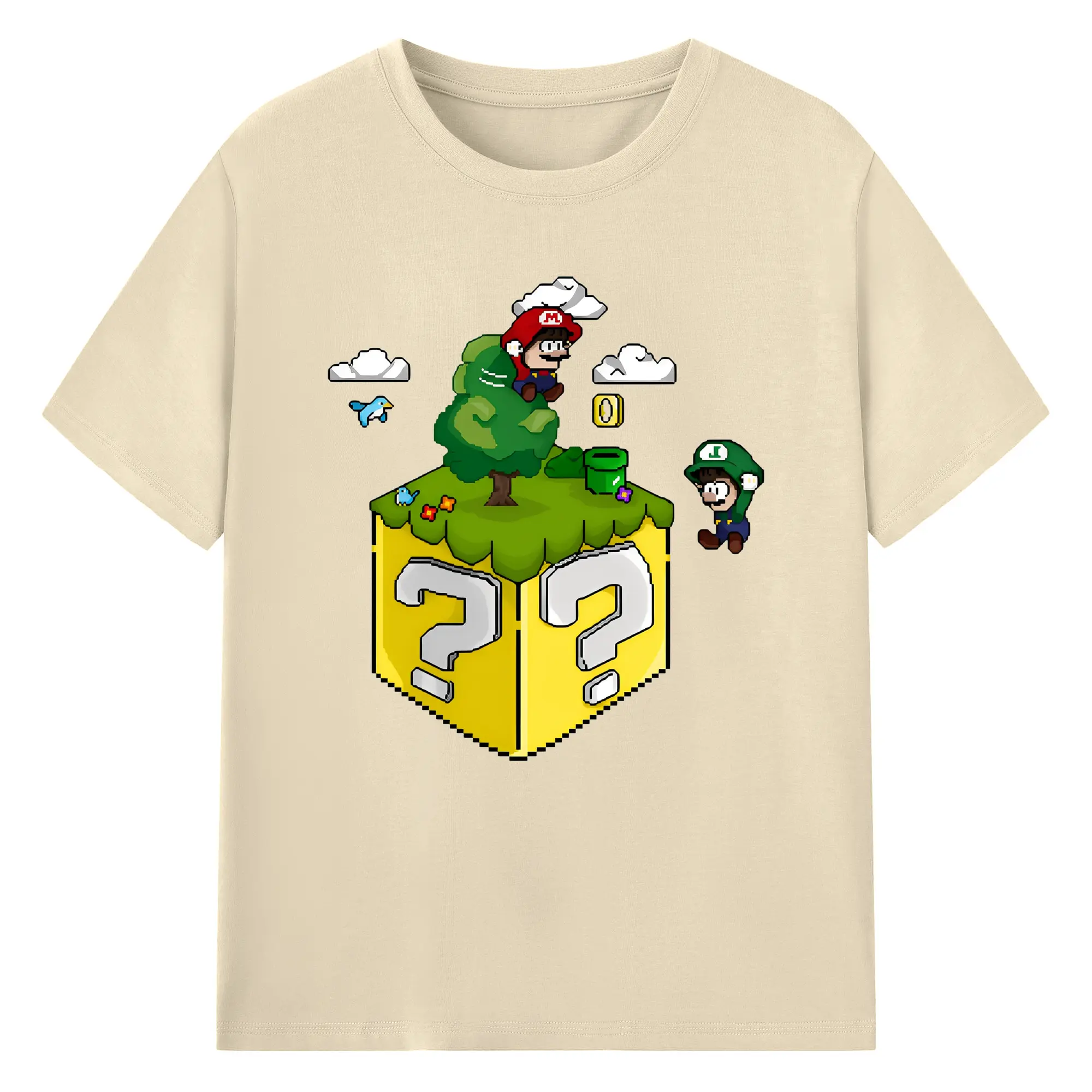 おしゃれゲーマー必見!スーパーマリオ8ビット - 綿100% ヴィンテージ風 半袖Tシャツ ・ フロントプリント ・ 柔らか肌触り ・ 通気性 快適 ・ スポーツ カジュアル 外出用