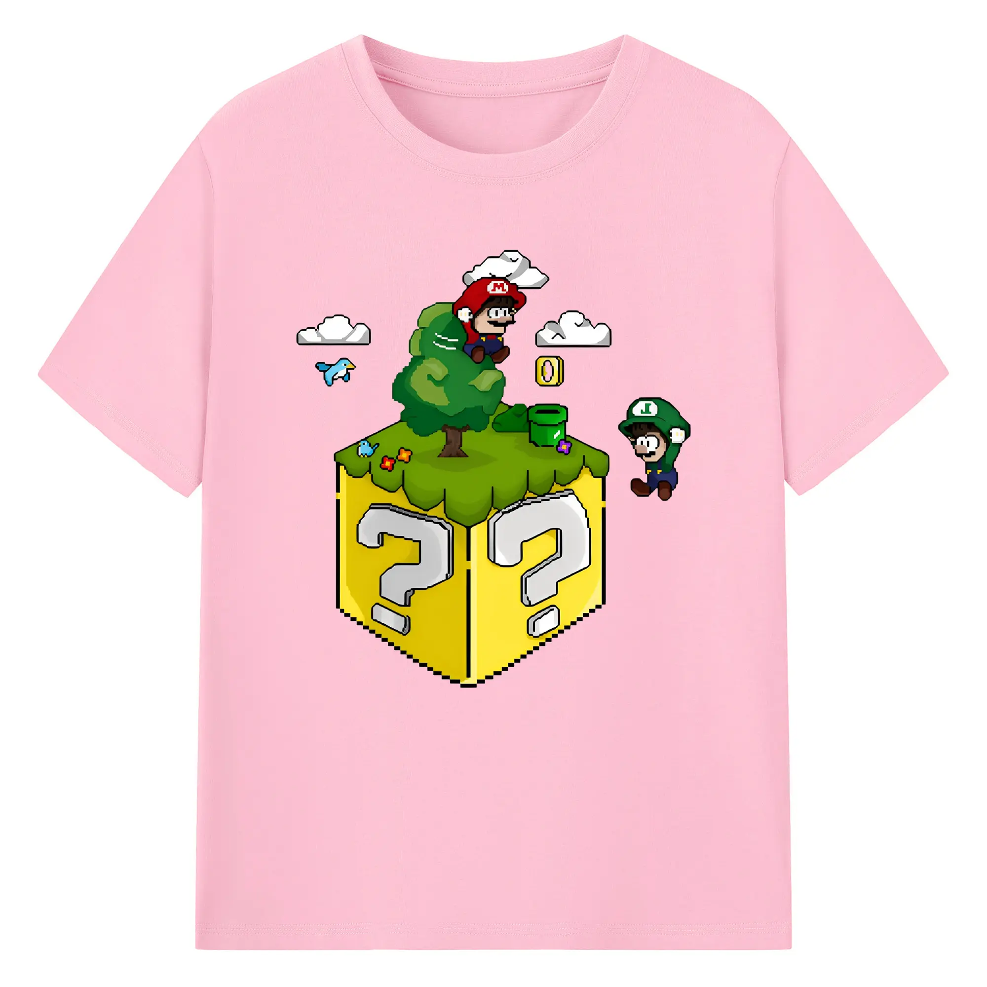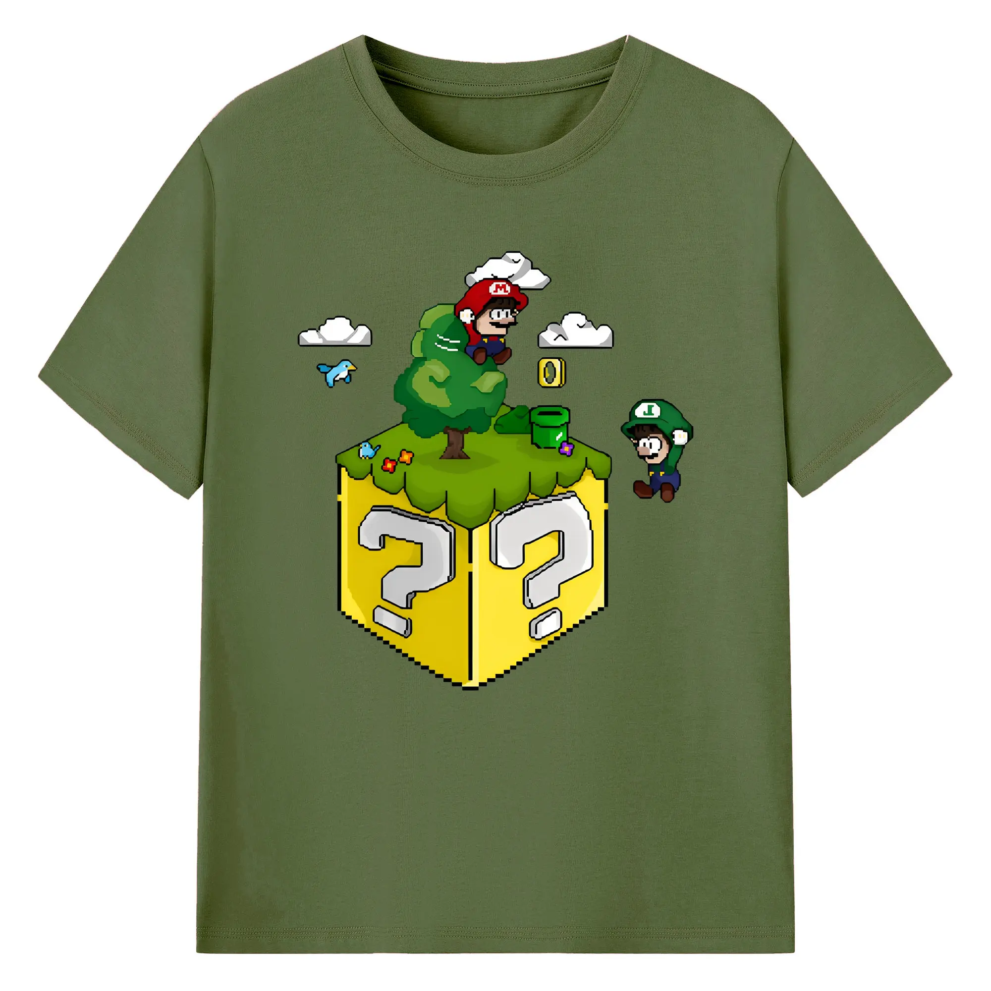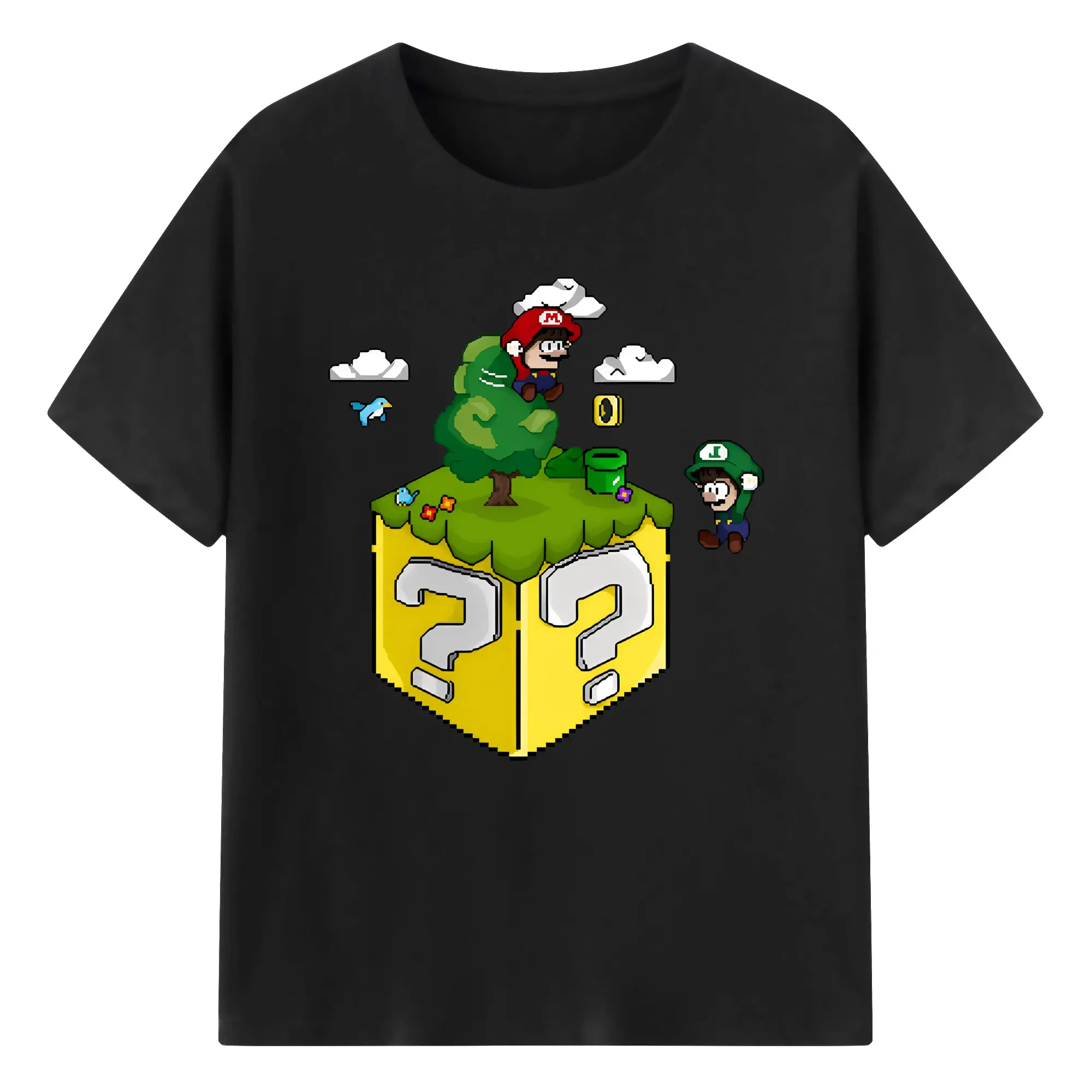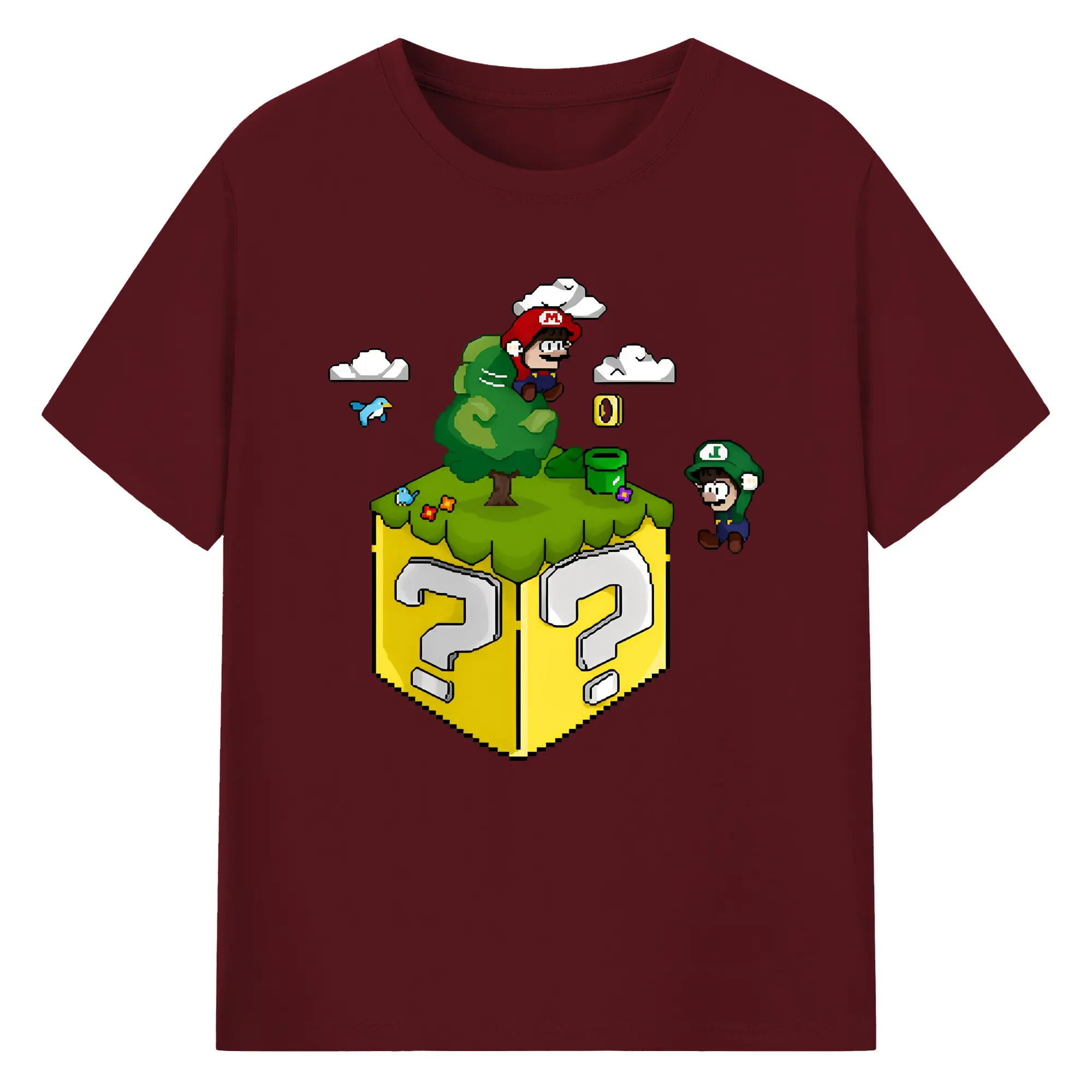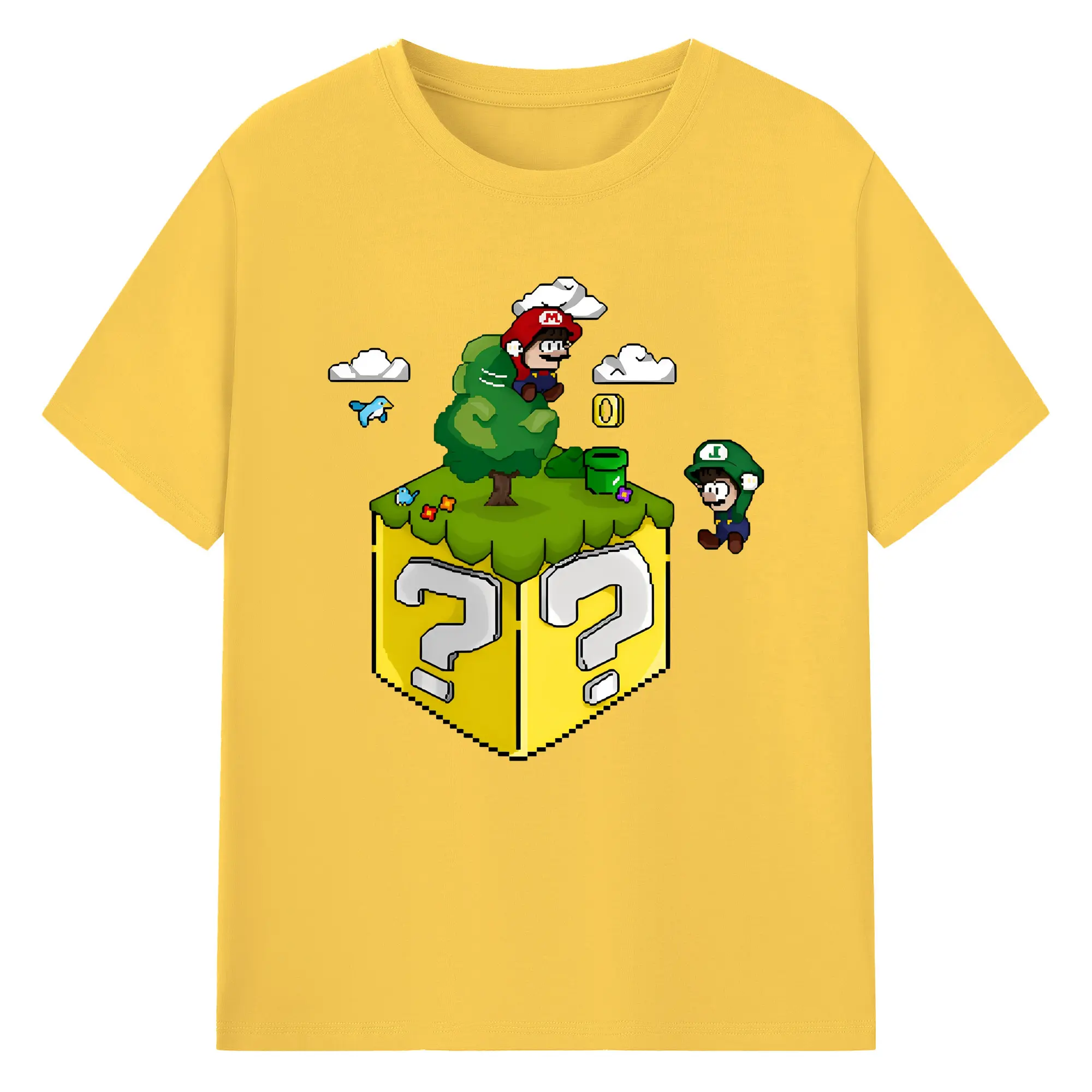 おしゃれゲーマー必見!スーパーマリオ8ビット - 綿100% ヴィンテージ風 半袖Tシャツ ・ フロントプリント ・ 柔らか肌触り ・ 通気性 快適 ・ スポーツ カジュアル 外出用