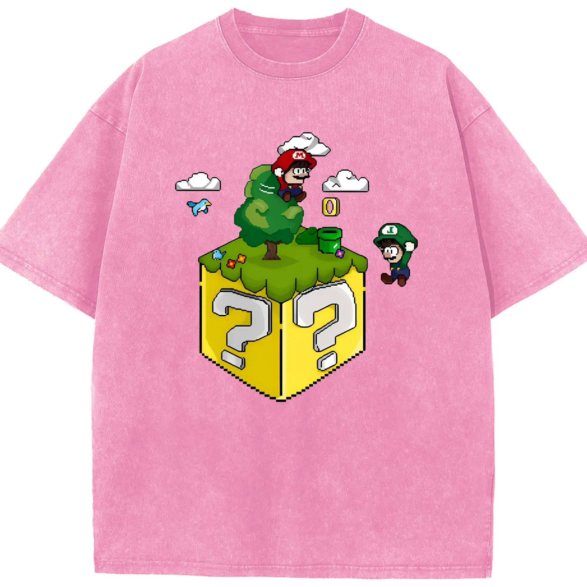 おしゃれゲーマー必見!スーパーマリオ8ビット - 綿100% 半袖Tシャツ ・ フロントプリント ・ 快適 通気性 ・ 日常使い 散歩 スポーツ用