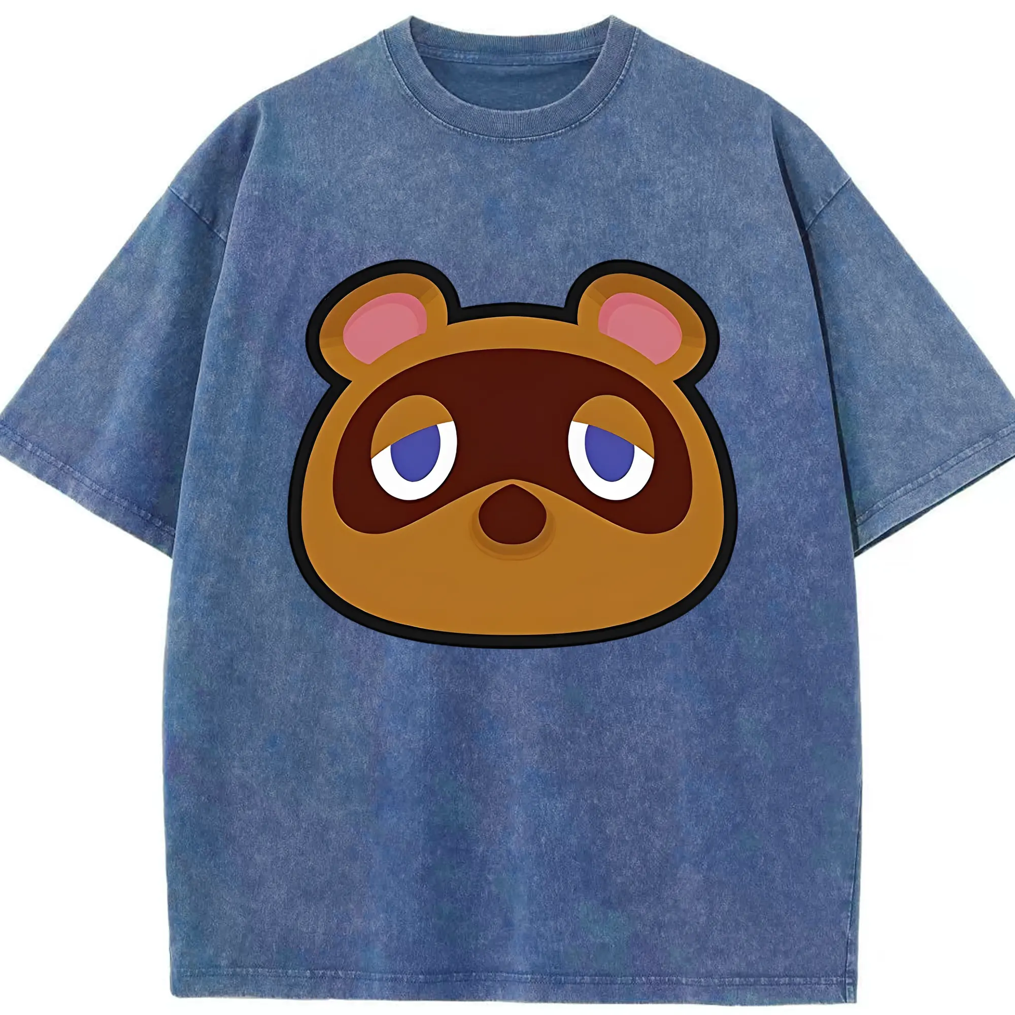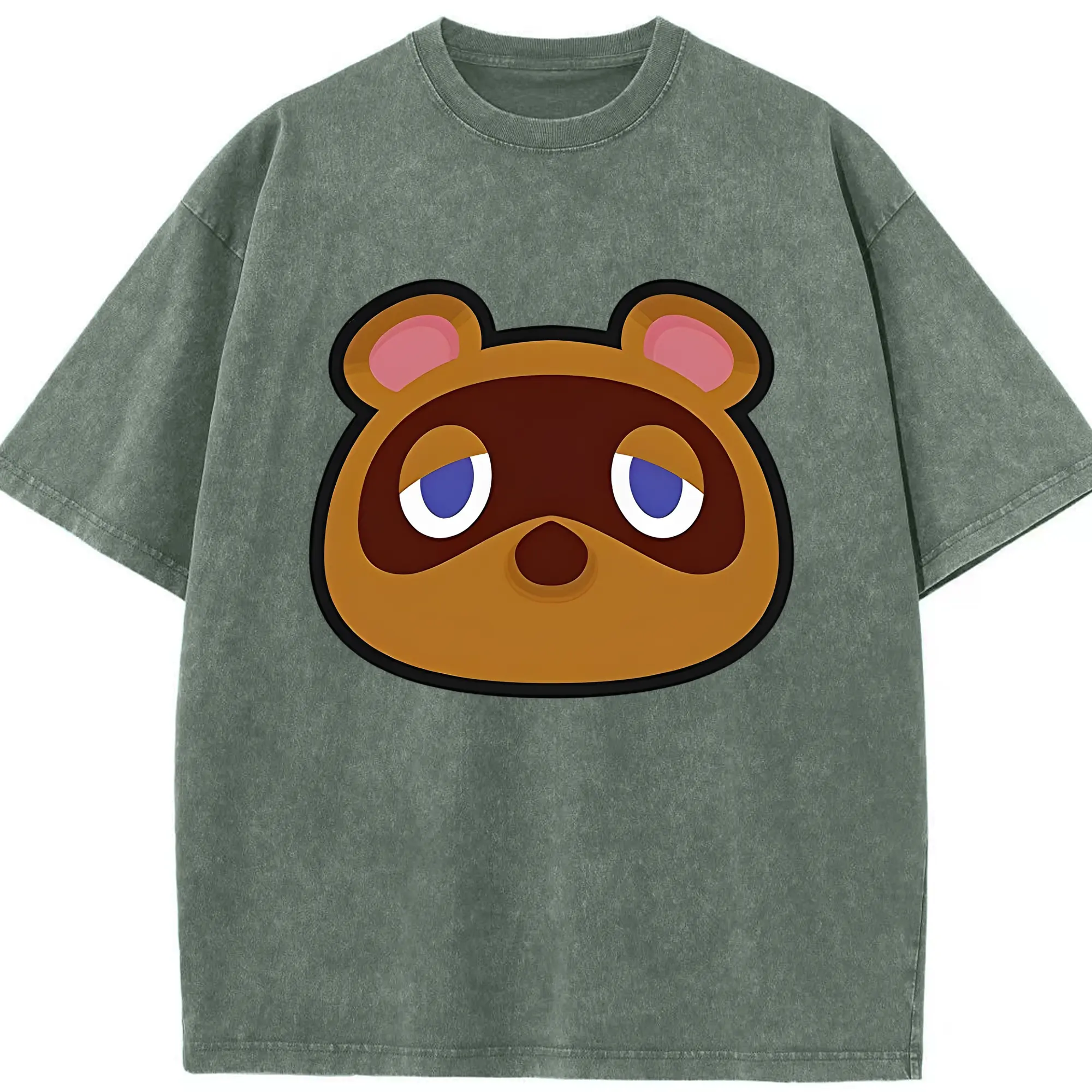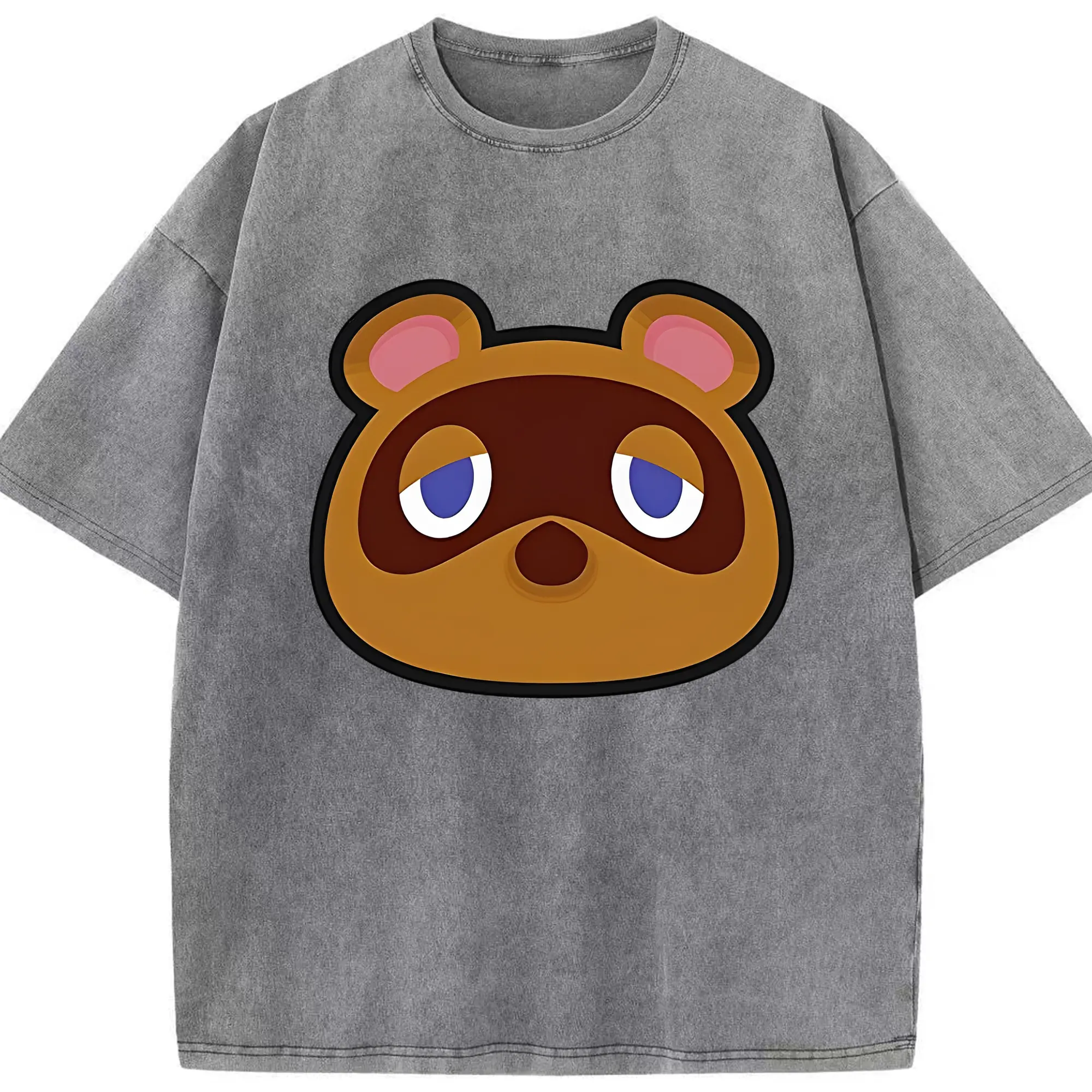おしゃれ たぬきち シンプルデザイン どうぶつの森 - 綿100% 半袖Tシャツ ・ フロントプリント ・ 快適 通気性 ・ 日常使い 散歩 スポーツ用