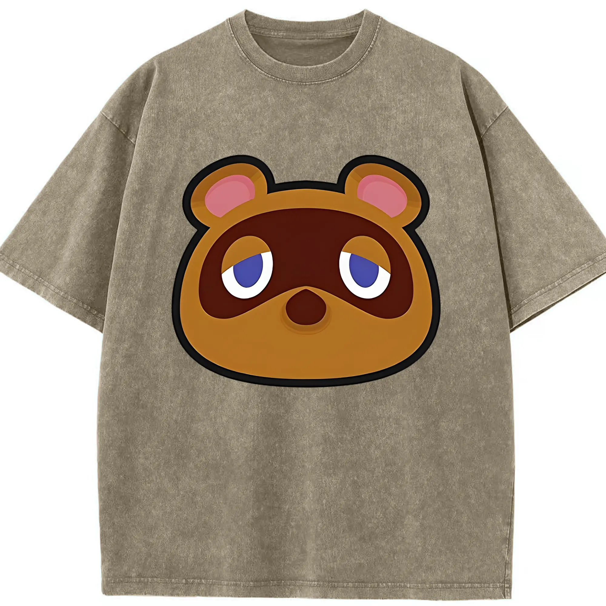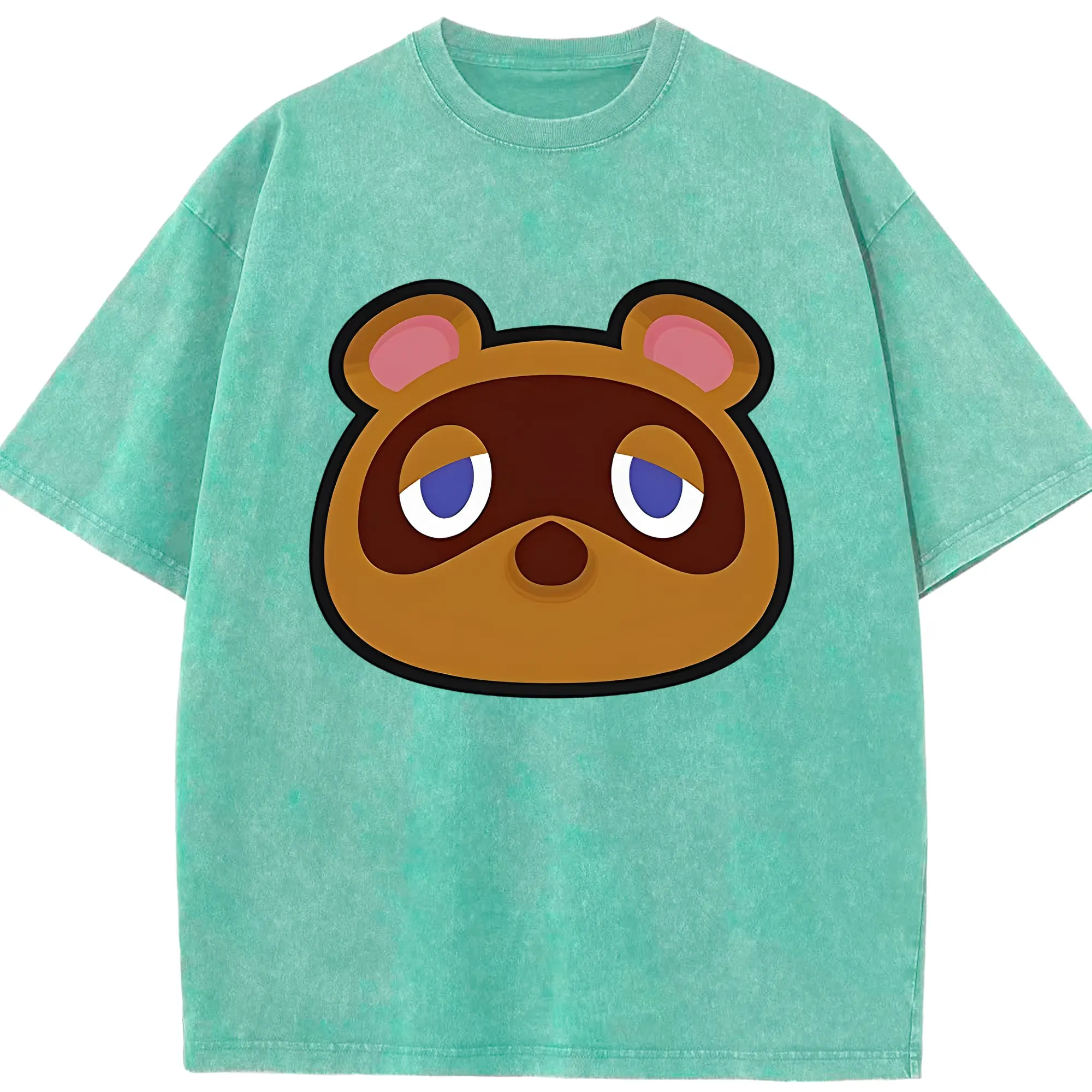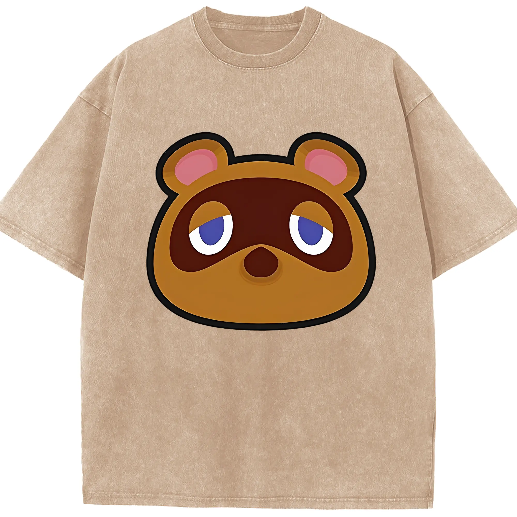 おしゃれ たぬきち シンプルデザイン どうぶつの森 - 綿100% 半袖Tシャツ ・ フロントプリント ・ 快適 通気性 ・ 日常使い 散歩 スポーツ用