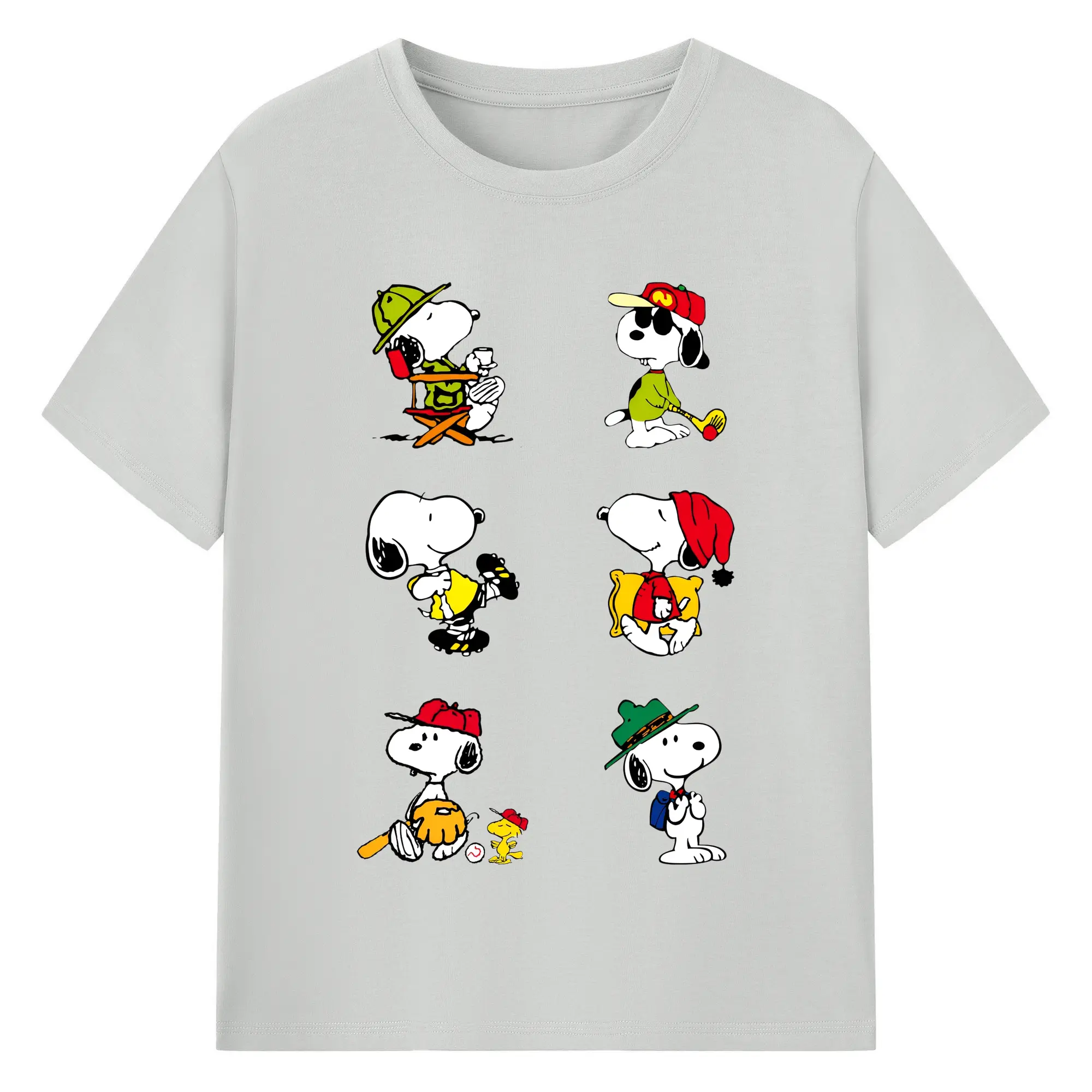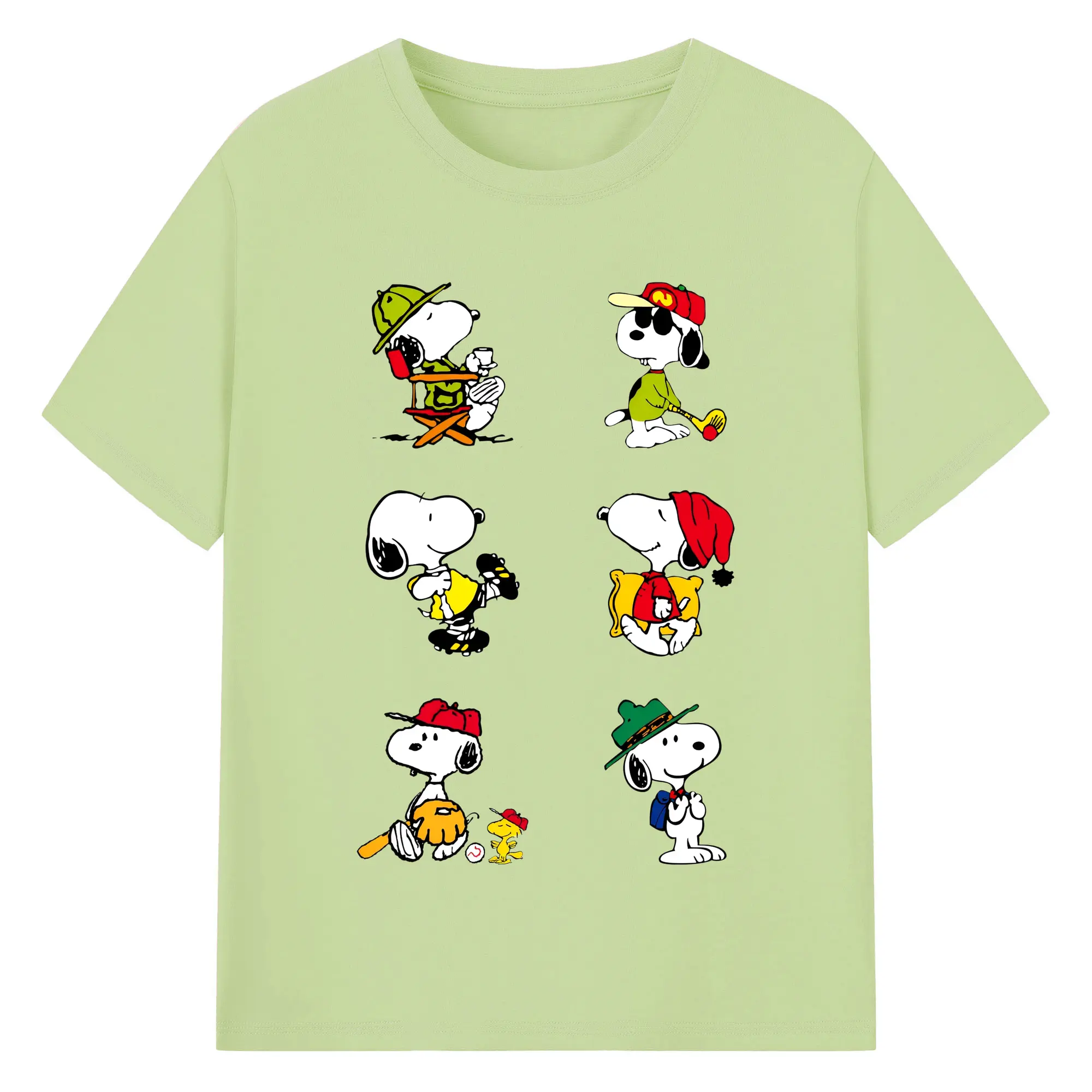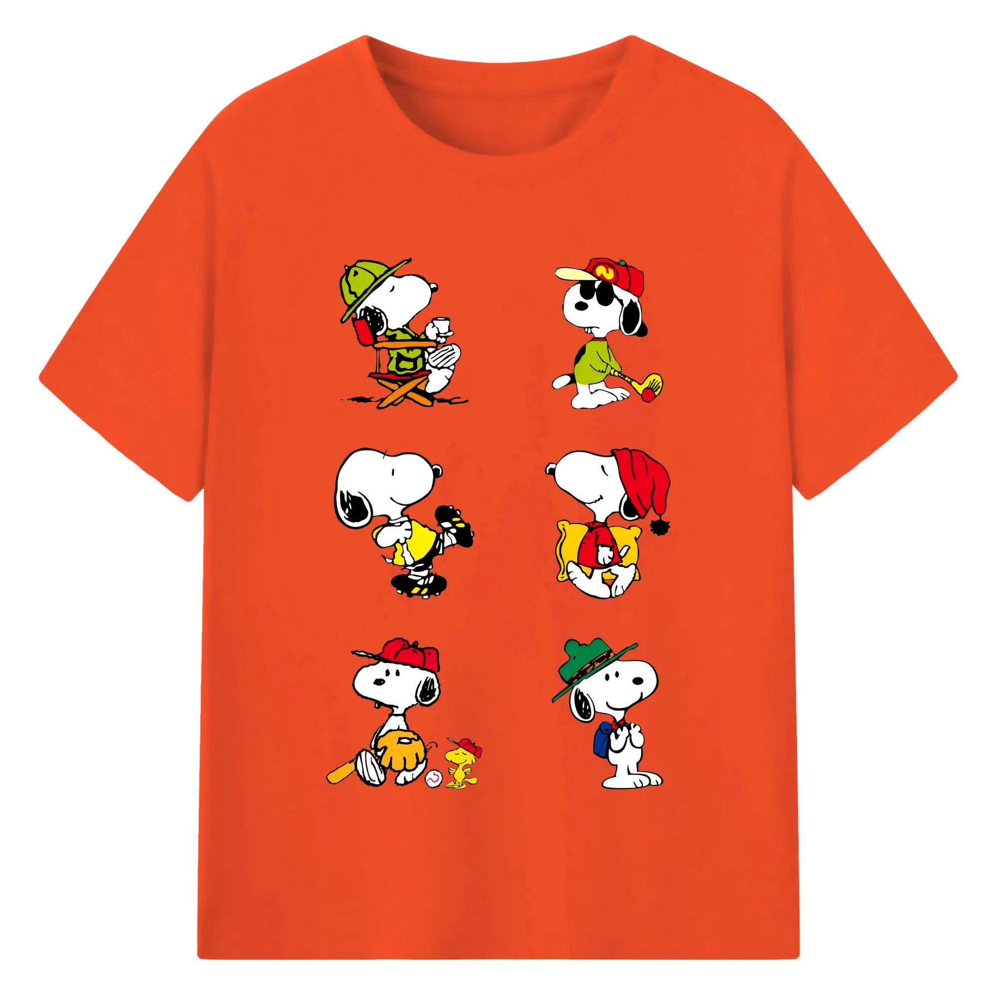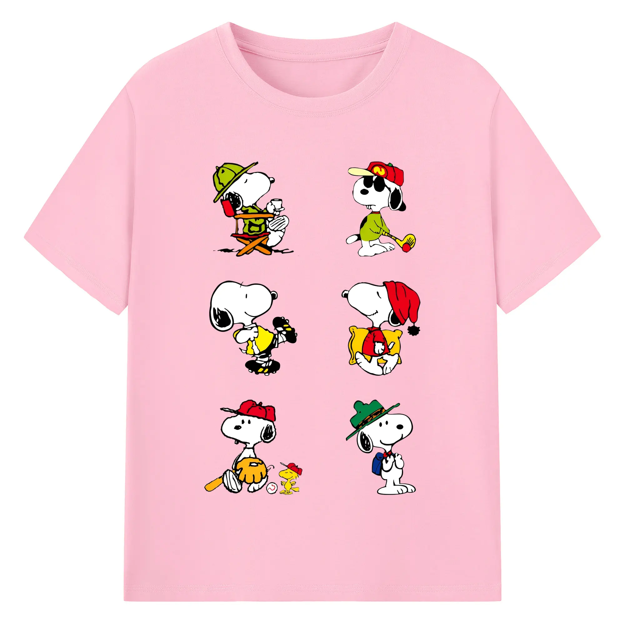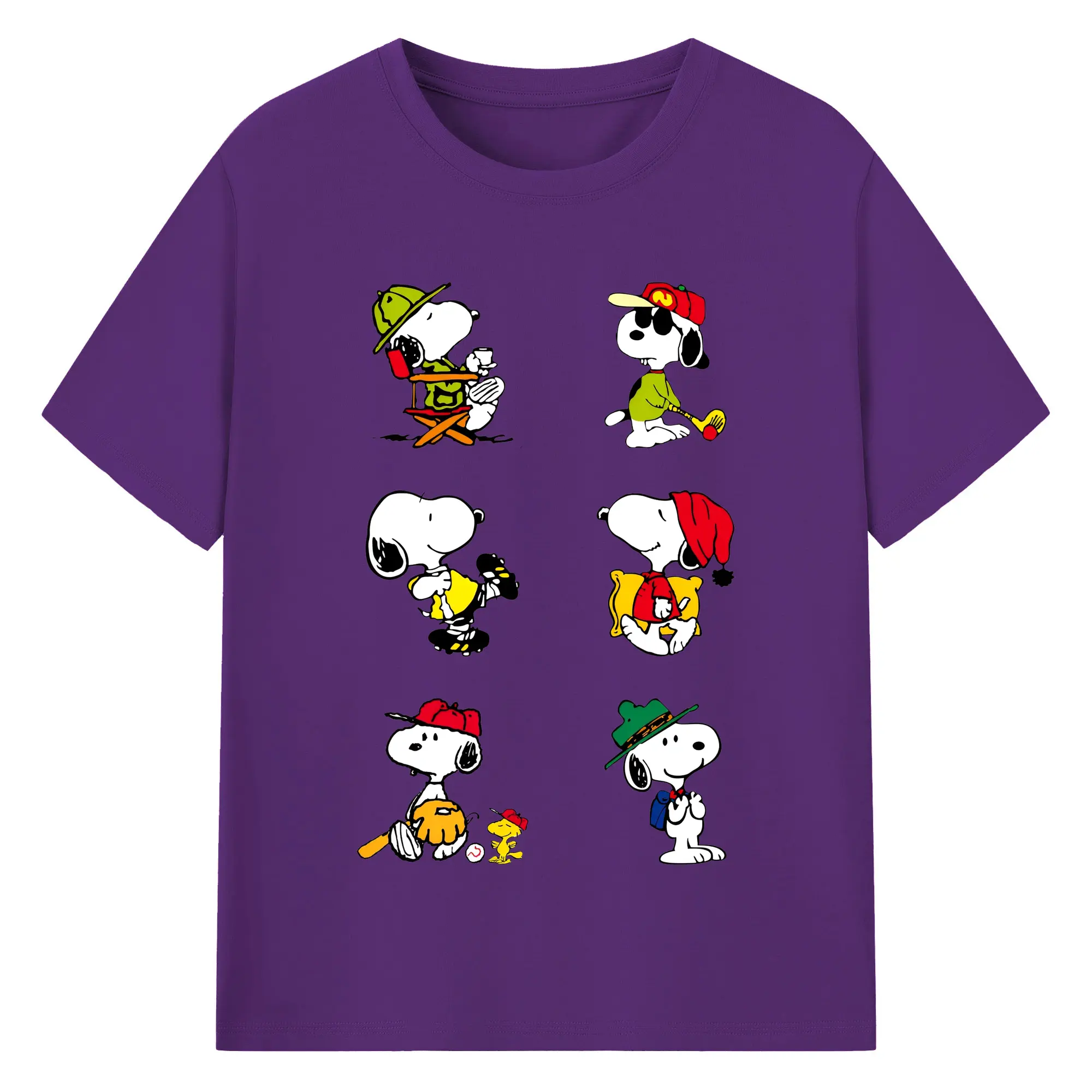 かわいいスヌーピー 大集合 - 綿100% ヴィンテージ風 半袖Tシャツ ・ フロントプリント ・ 柔らか肌触り ・ 通気性 快適 ・ スポーツ カジュアル 外出用