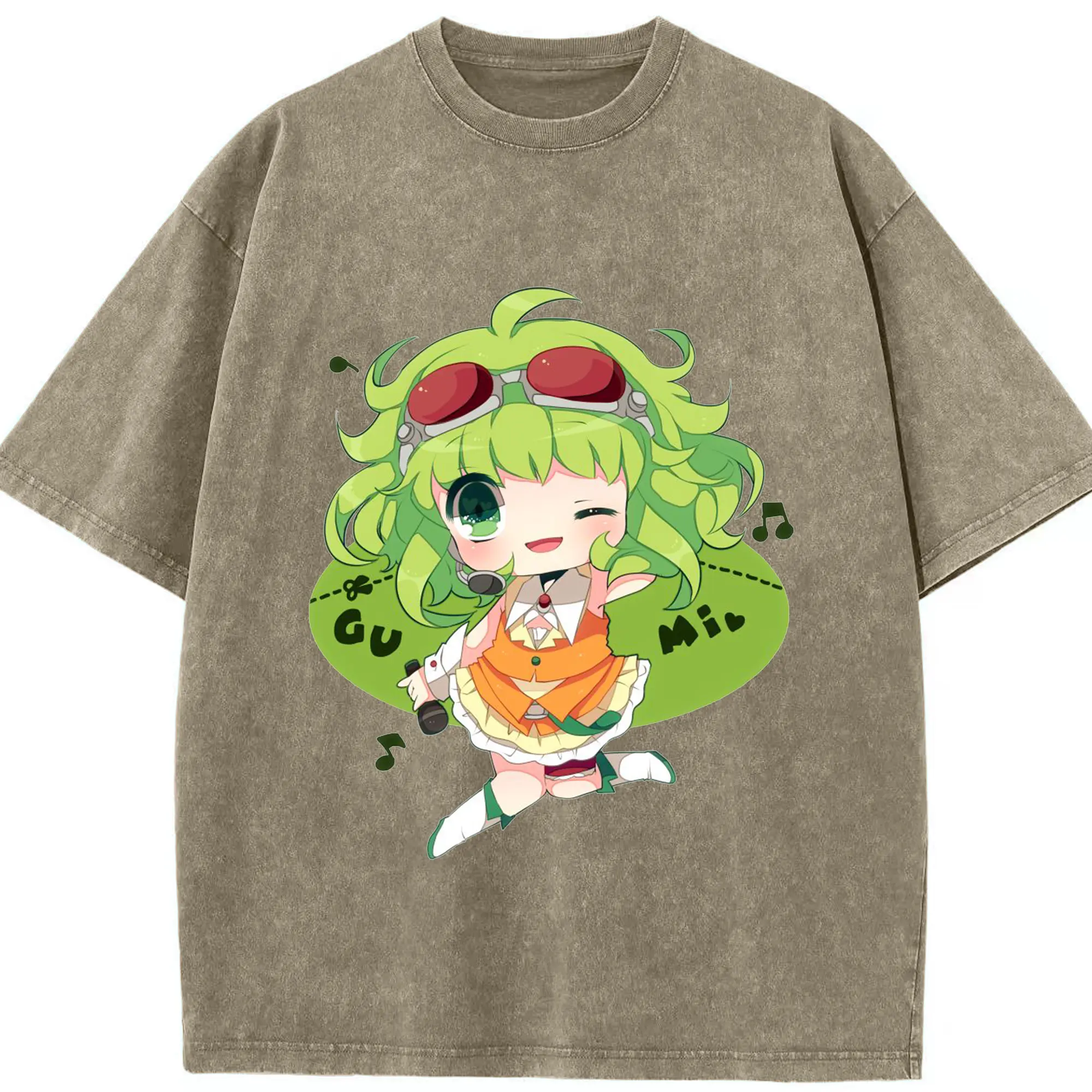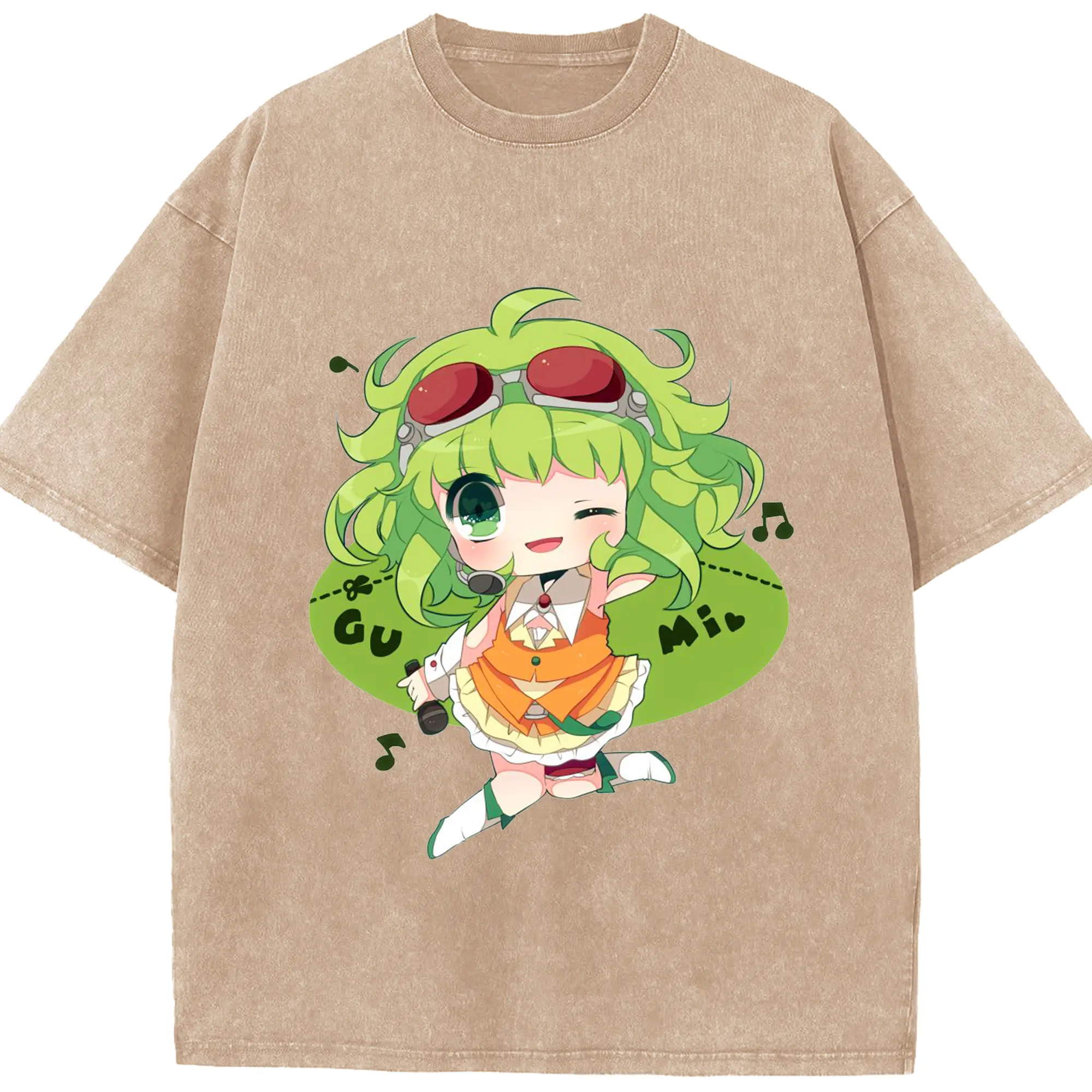 Megpoidバーチャルアイドル - 綿100% ヴィンテージ風 半袖Tシャツ ・ フロントプリント ・ 柔らか肌触り ・ 通気性 快適 ・ スポーツ カジュアル 外出用