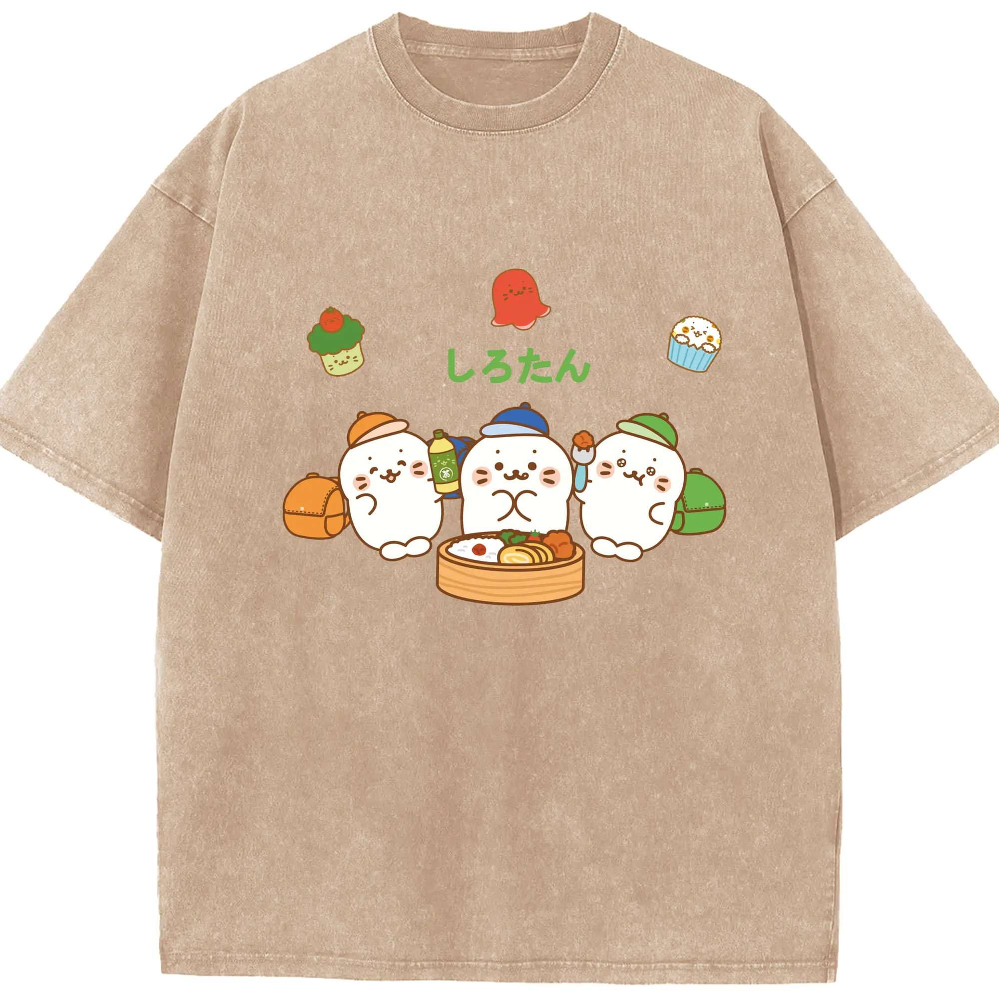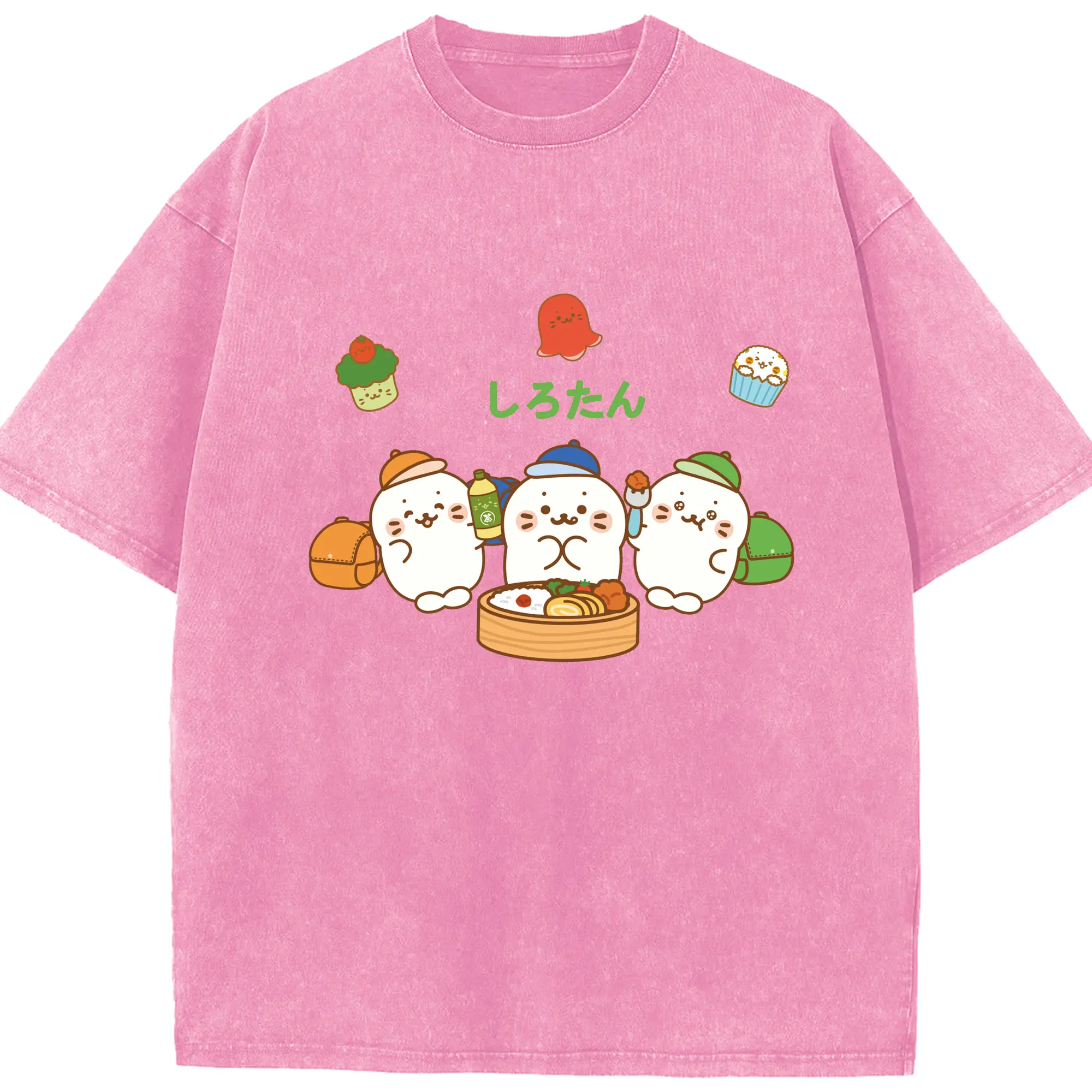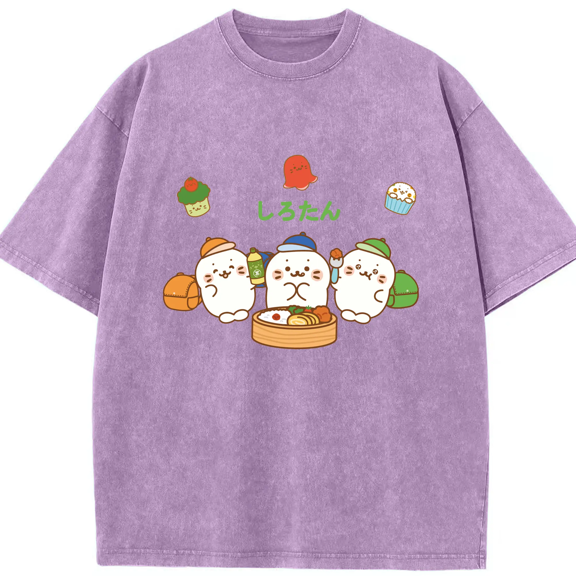 TinyTAN 🐳 × BTS 可愛いデザイン ファンコレクション - 綿100% ヴィンテージ風 半袖Tシャツ ・ フロントプリント ・ 柔らか肌触り ・ 通気性 快適 ・ スポーツ カジュアル 外出用