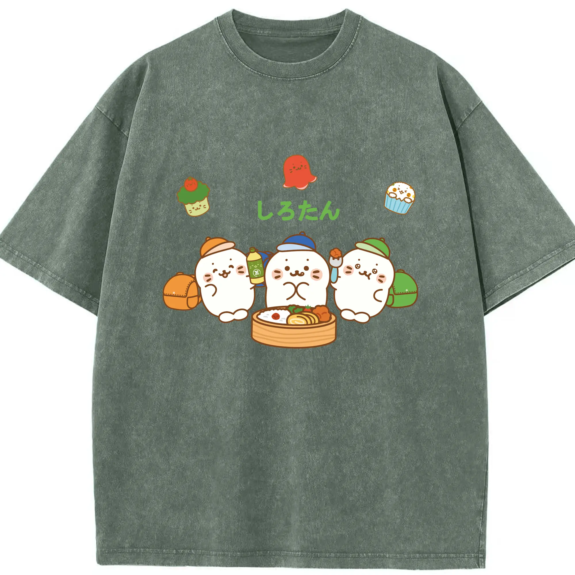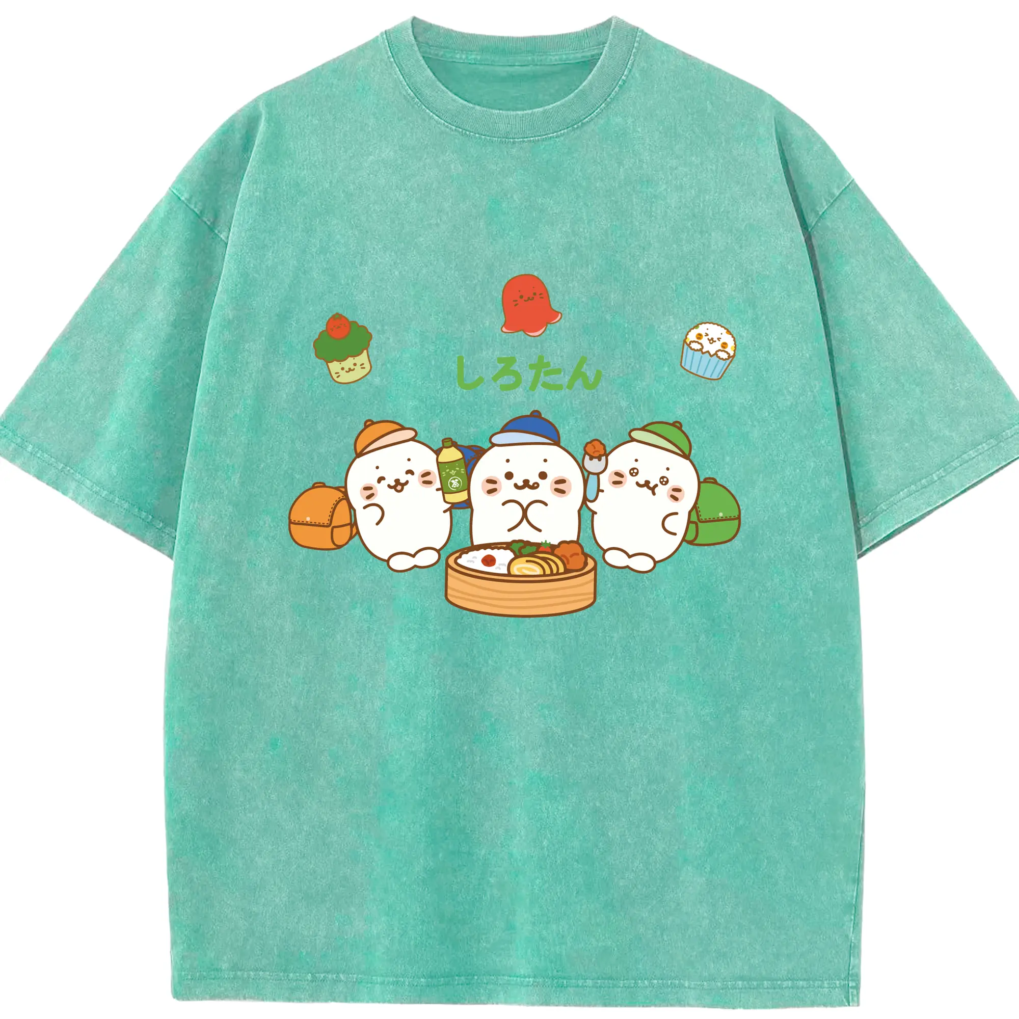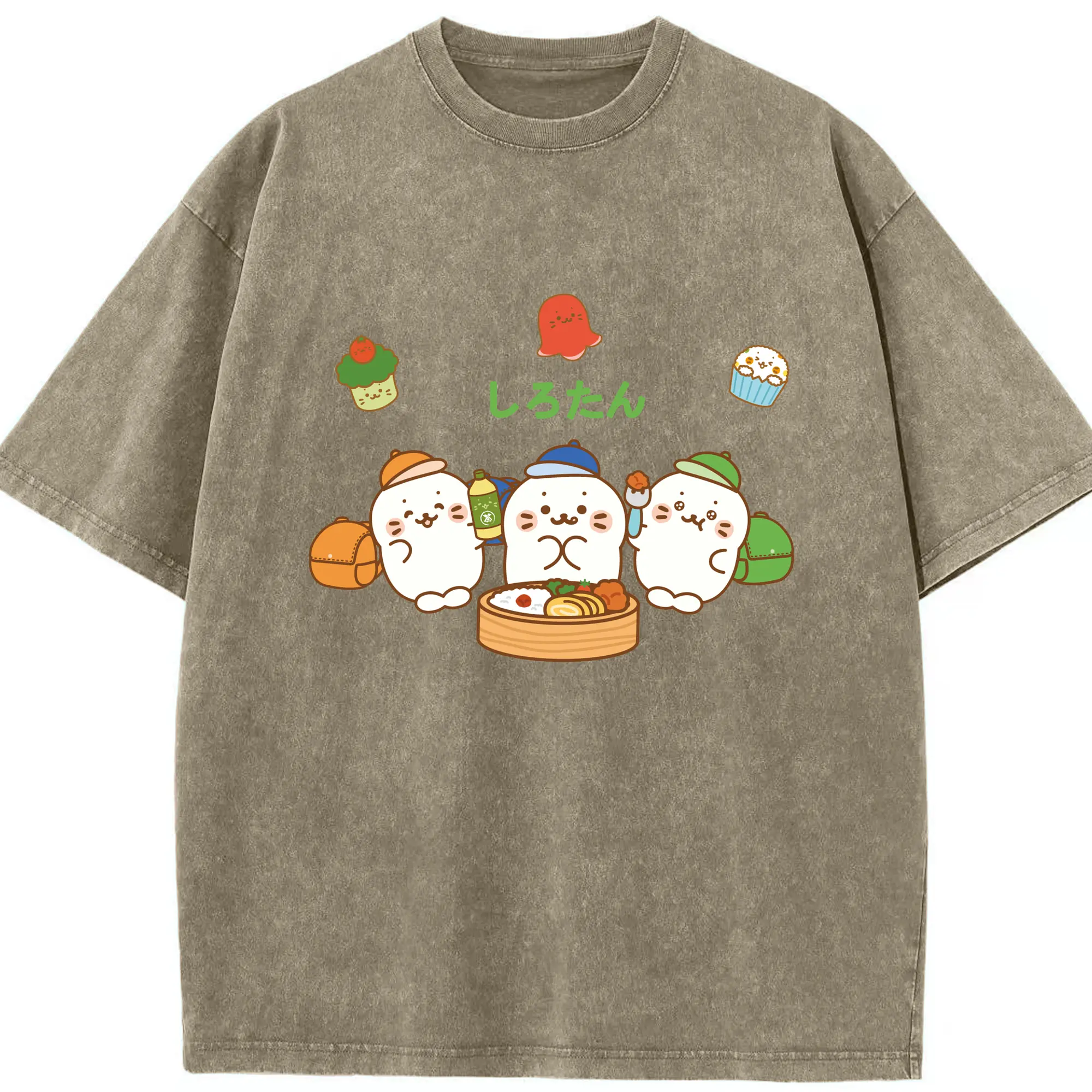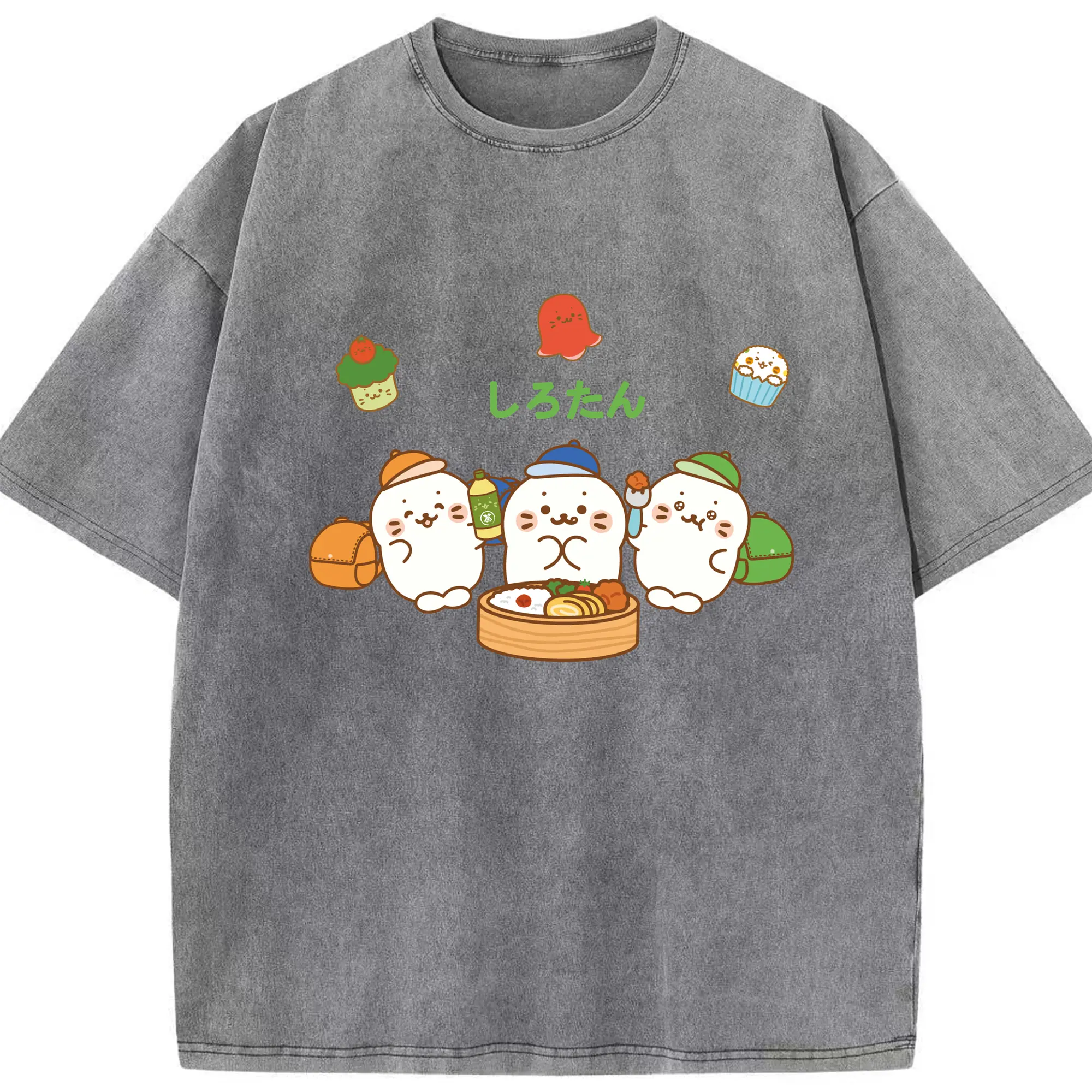 TinyTAN 🐳 × BTS 可愛いデザイン ファンコレクション - 綿100% ヴィンテージ風 半袖Tシャツ ・ フロントプリント ・ 柔らか肌触り ・ 通気性 快適 ・ スポーツ カジュアル 外出用