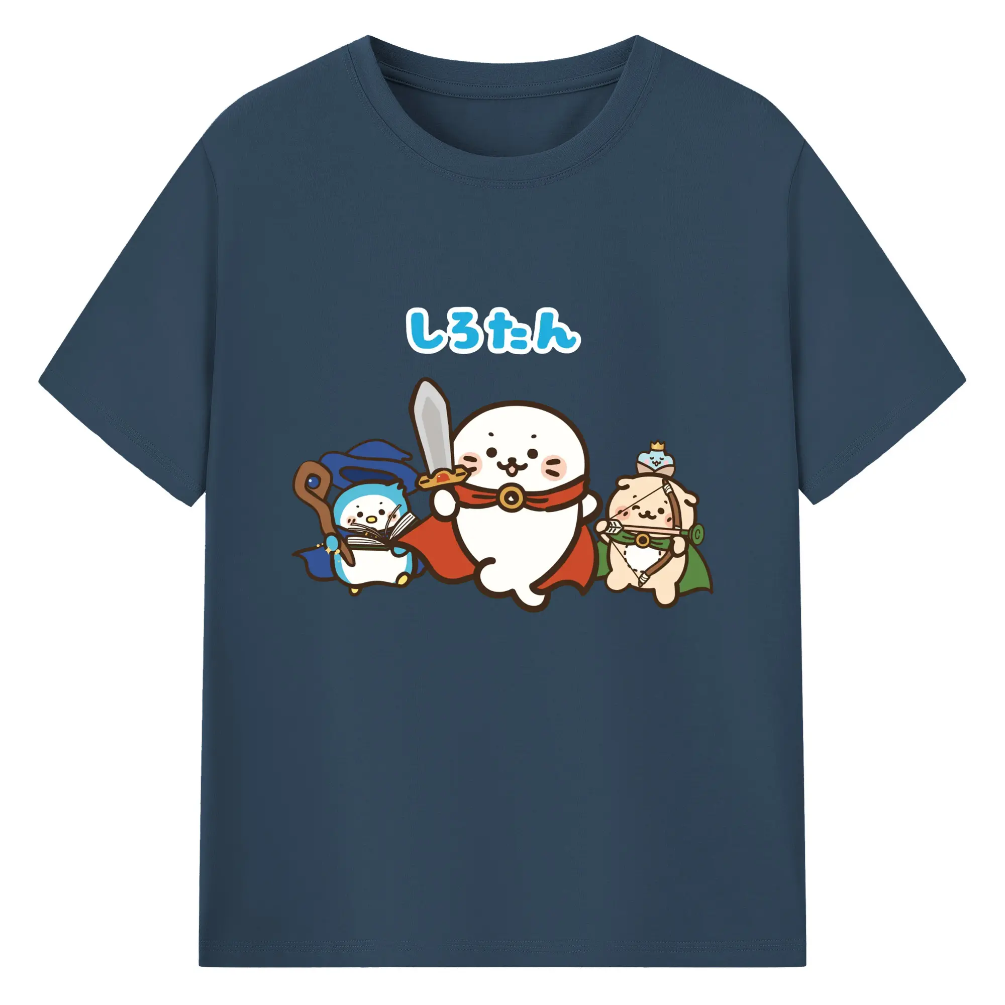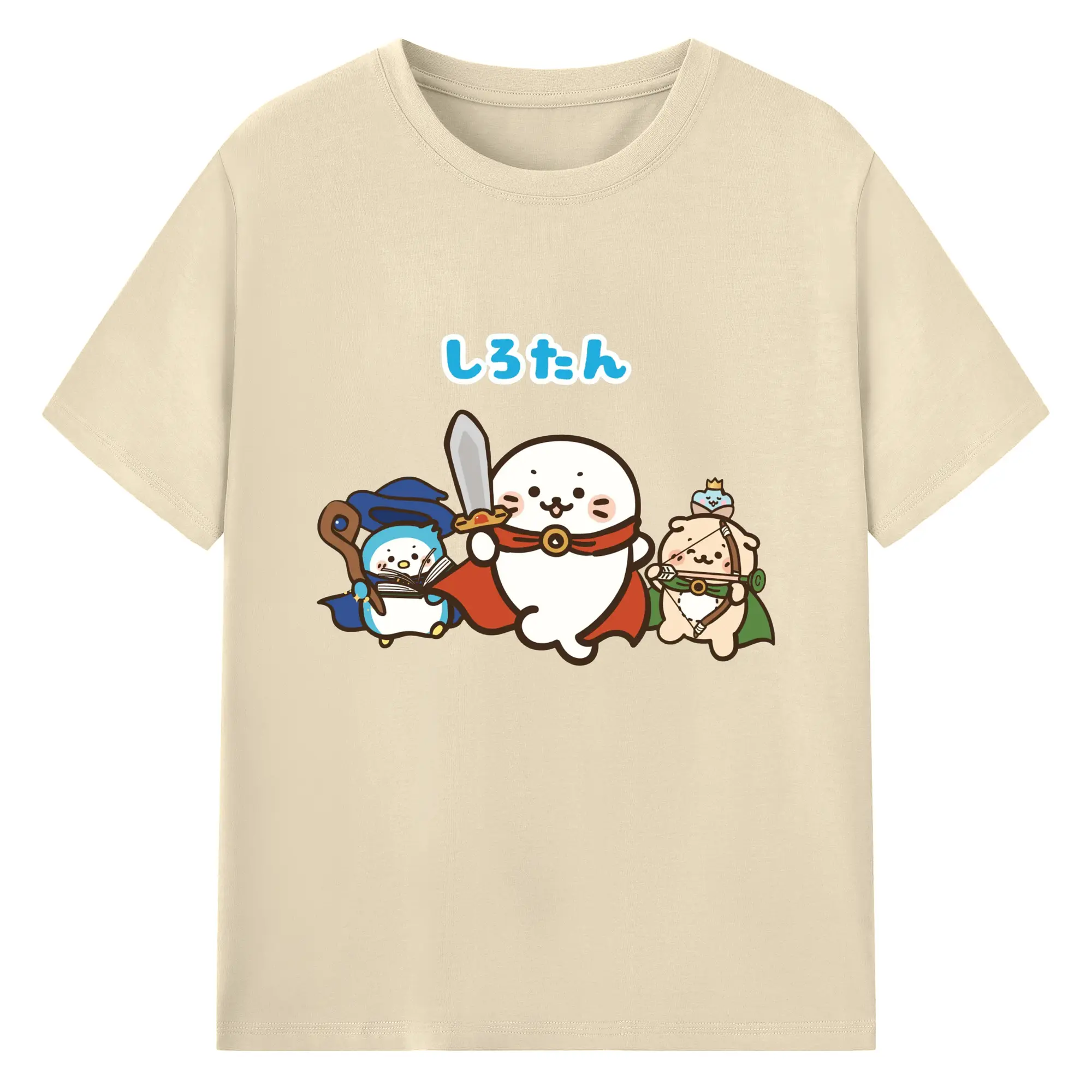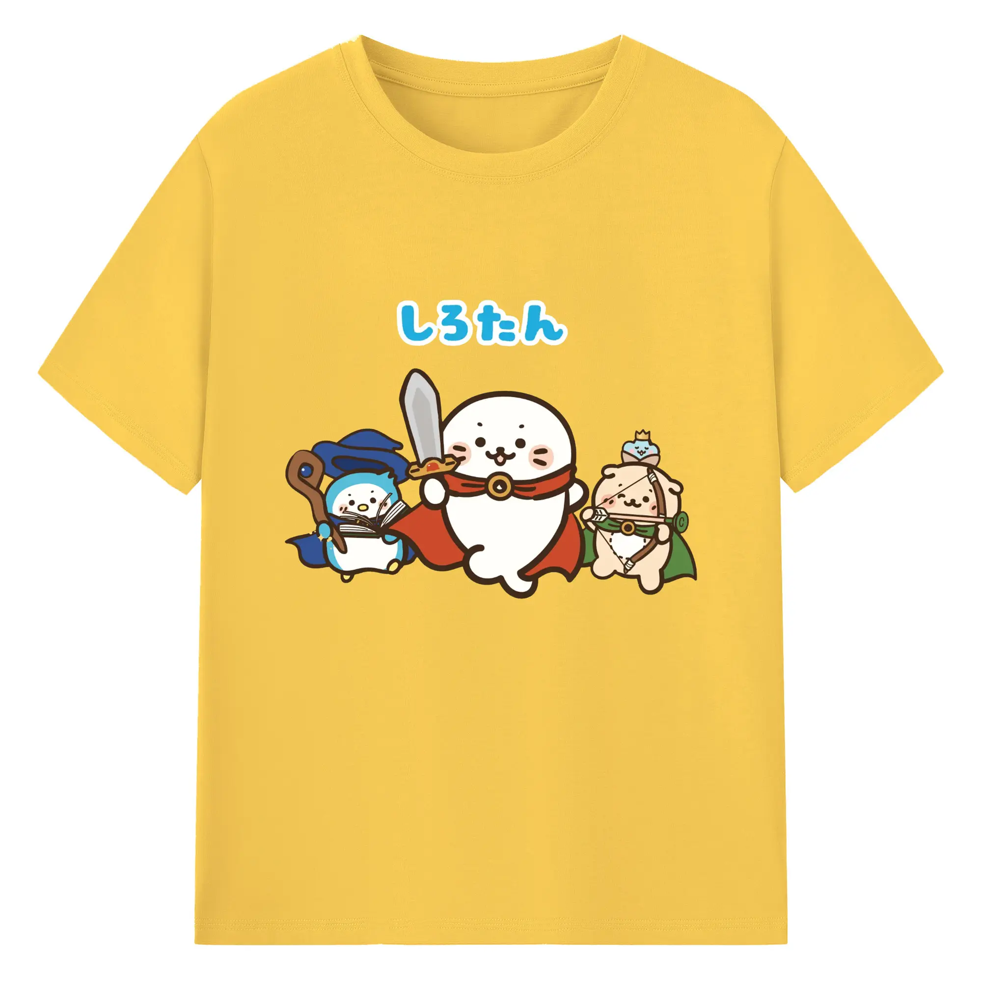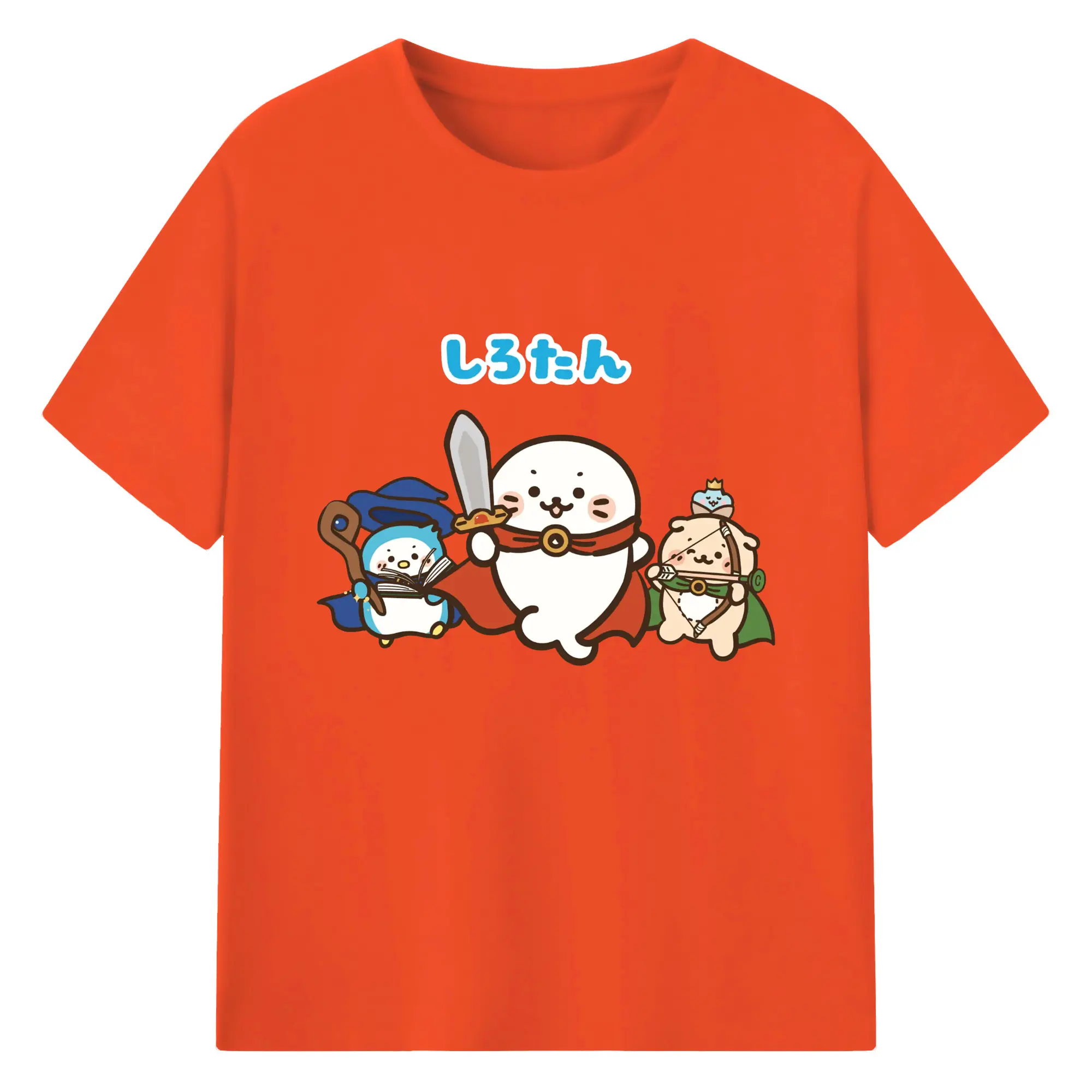 しろたんクエスト限定 - 綿100% ヴィンテージ風 半袖Tシャツ ・ フロントプリント ・ 柔らか肌触り ・ 通気性 快適 ・ スポーツ カジュアル 外出用