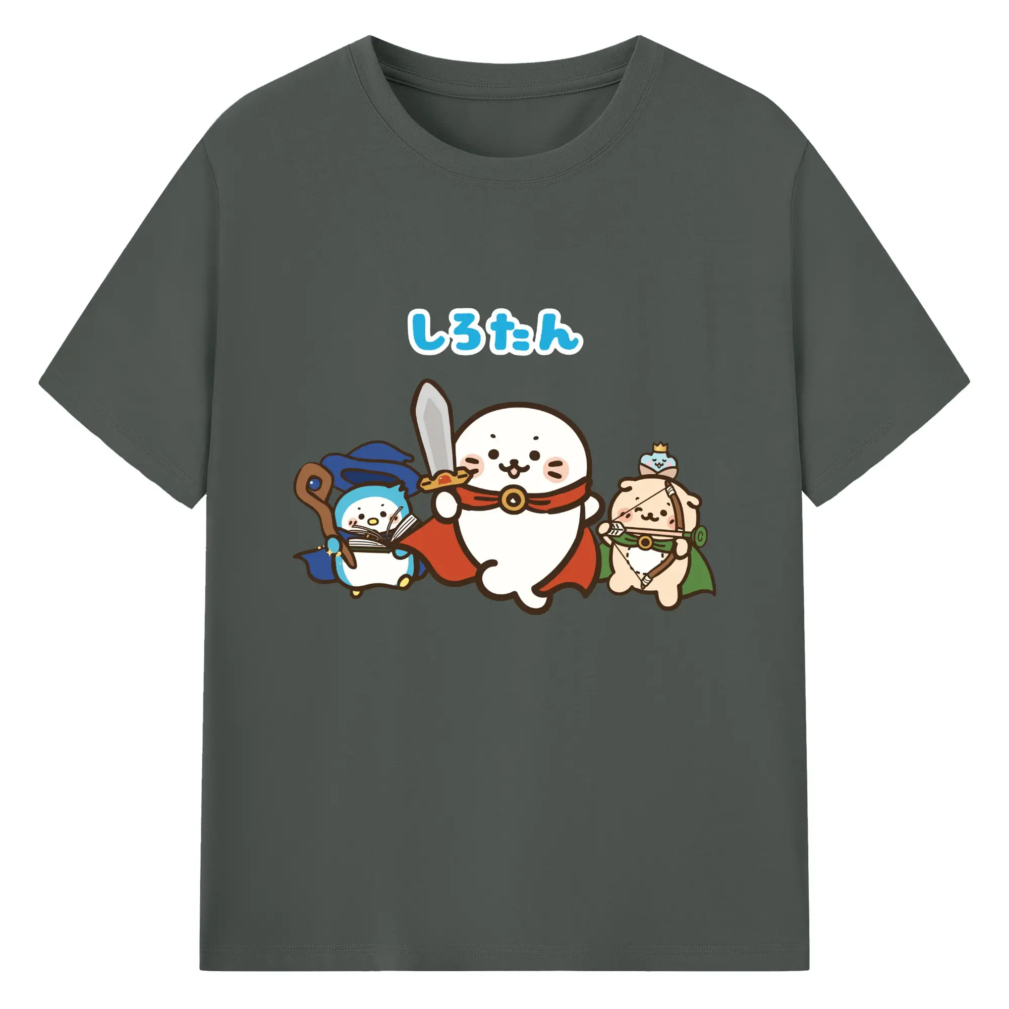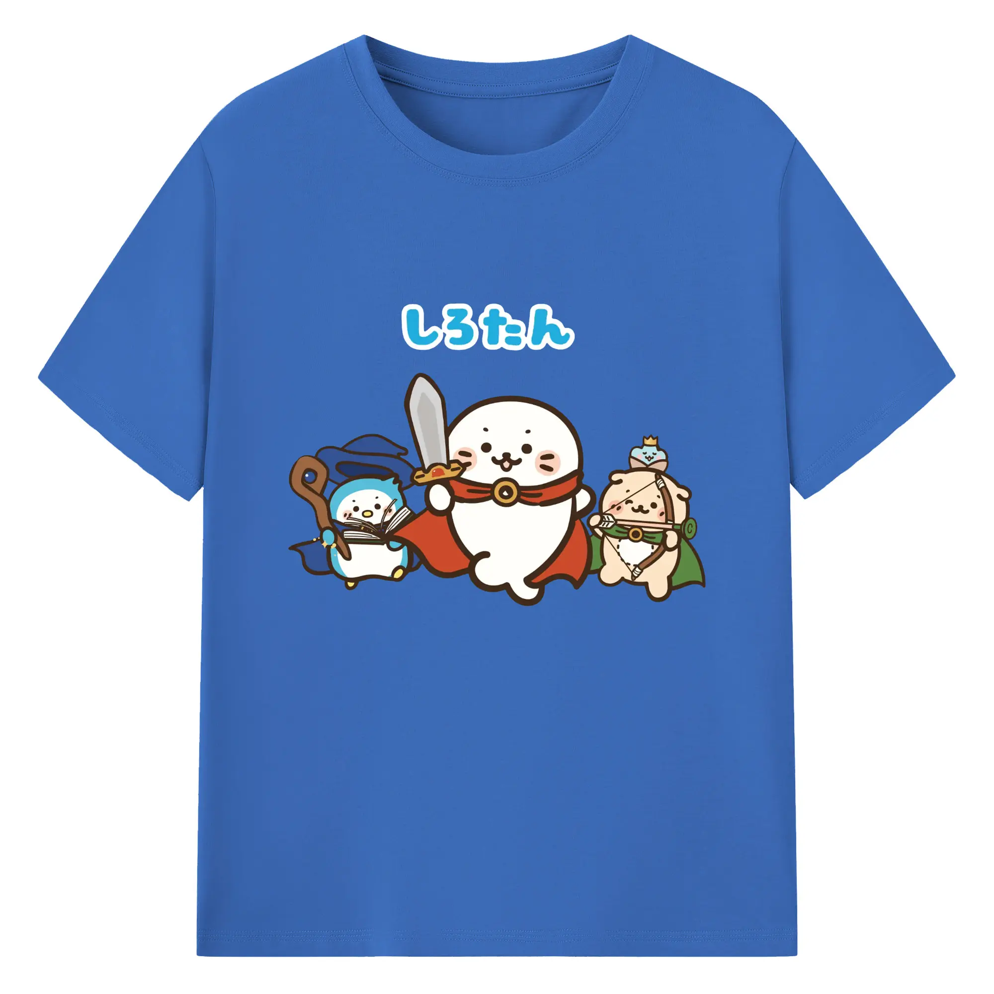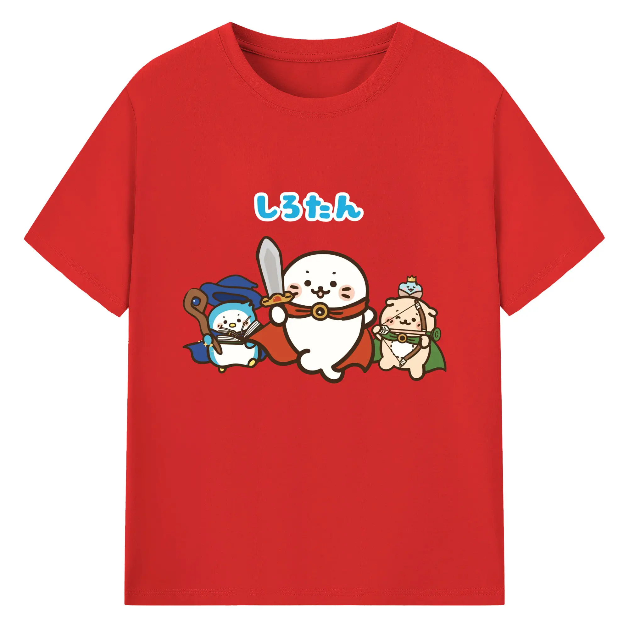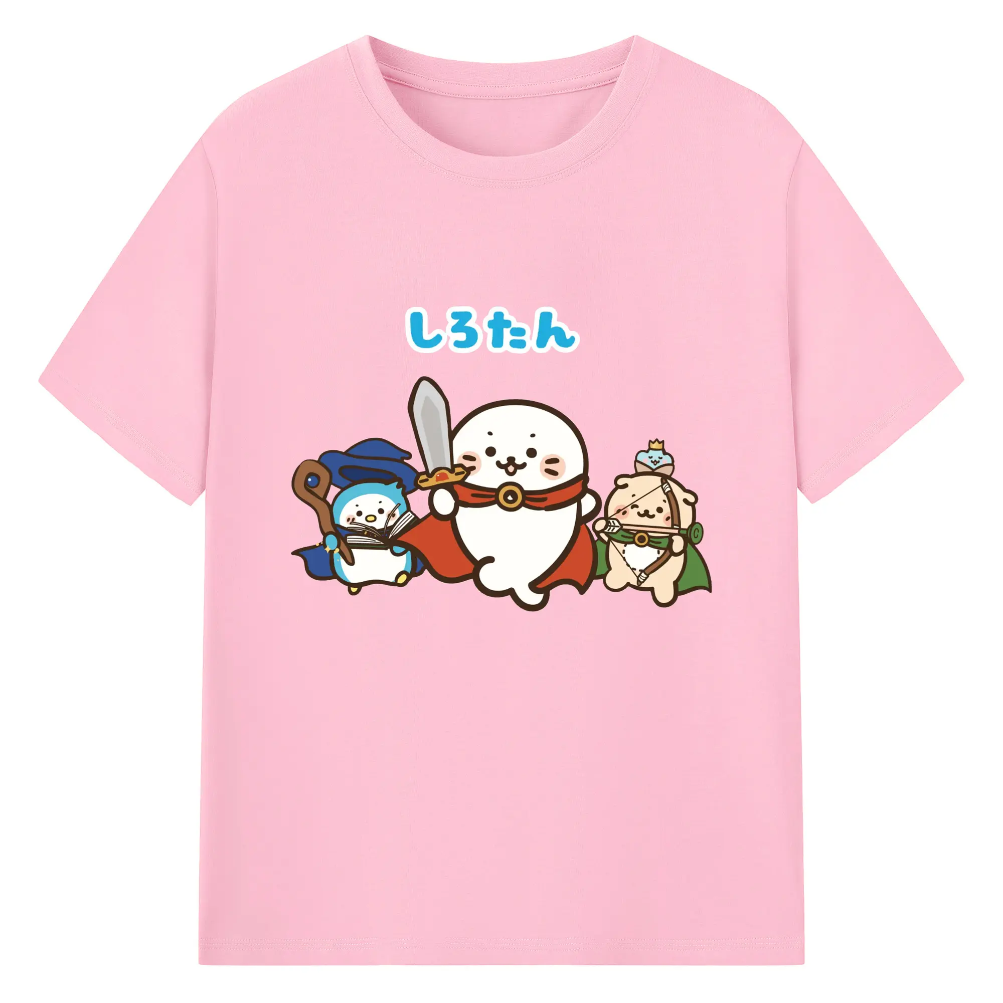 しろたんクエスト限定 - 綿100% ヴィンテージ風 半袖Tシャツ ・ フロントプリント ・ 柔らか肌触り ・ 通気性 快適 ・ スポーツ カジュアル 外出用