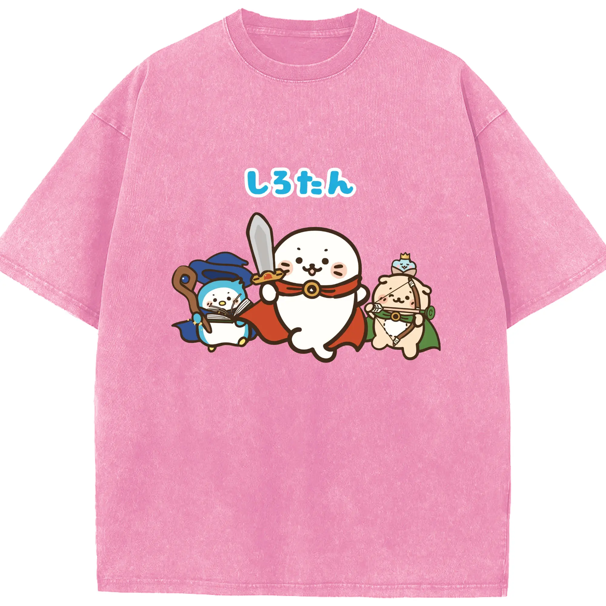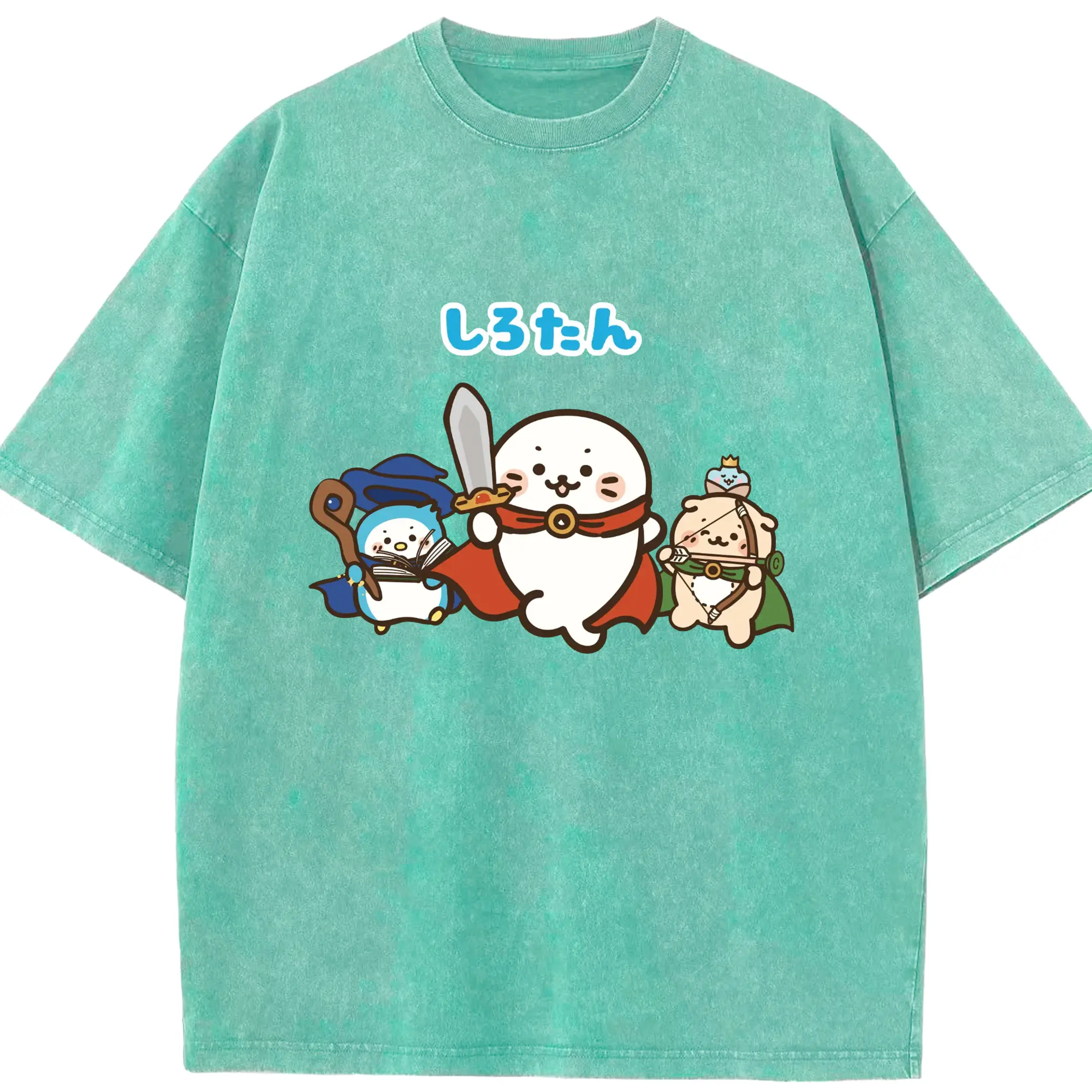 しろたんクエスト限定 - 綿100% 半袖Tシャツ ・ フロントプリント ・ 快適 通気性 ・ 日常使い 散歩 スポーツ用