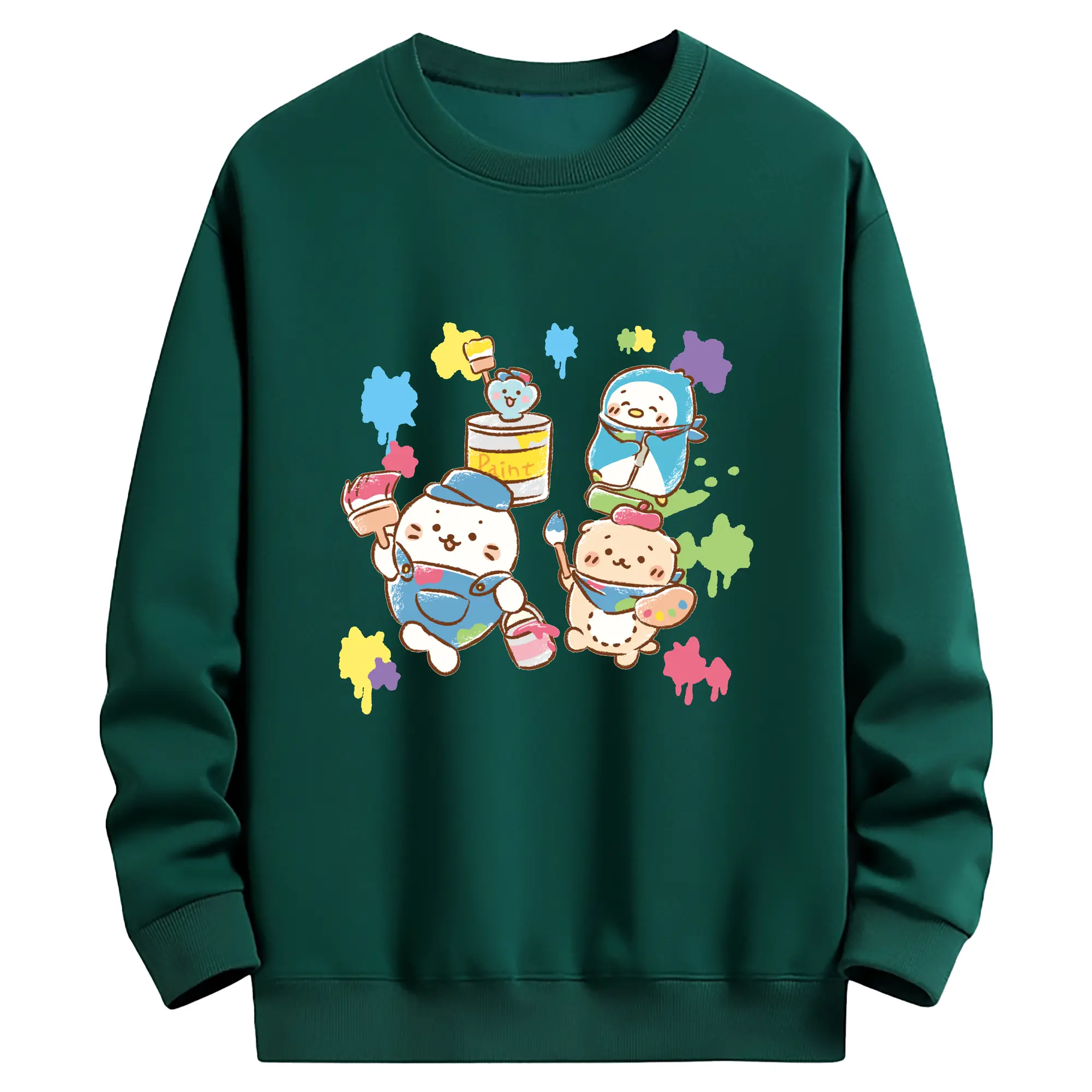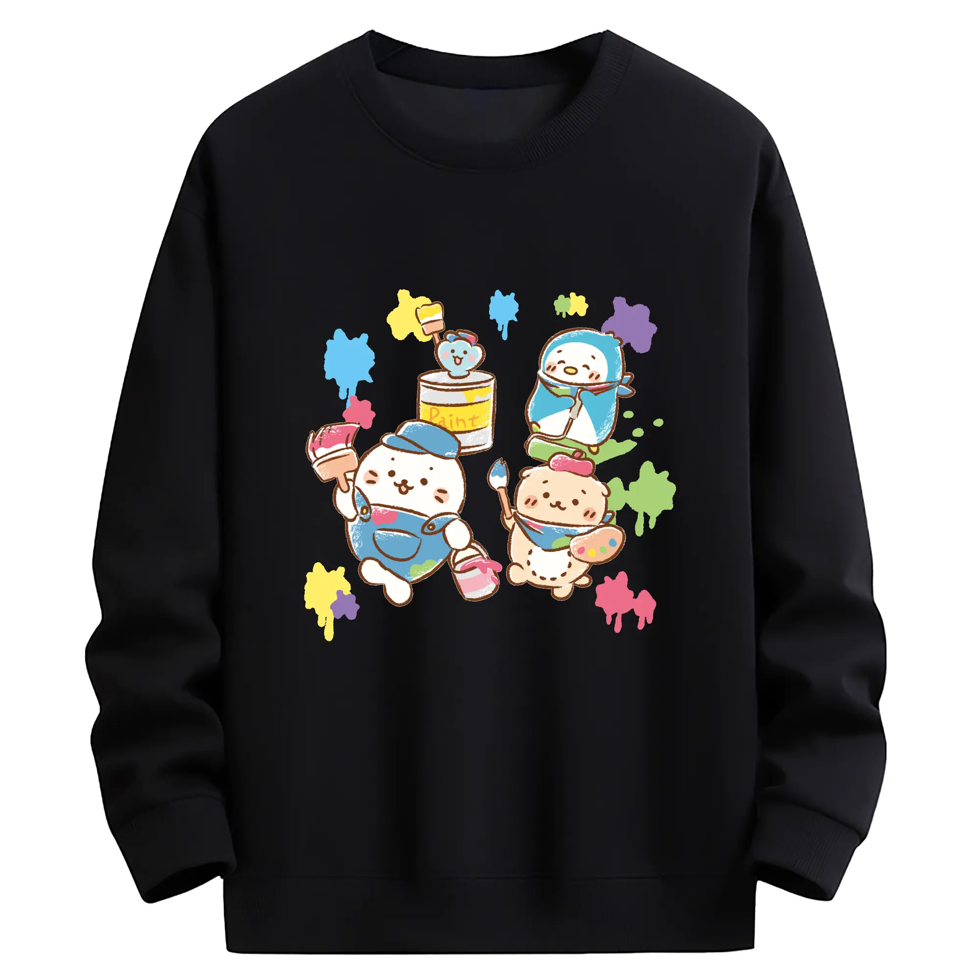 2025年新作 サンリオ イカゲームコラボ - 高品質 クルーネック スウェット ・ コットン59% ポリエステル41% ・ ユニセックス 長袖 トレーナー ・ カジュアル デイリー スポーツ 散歩用