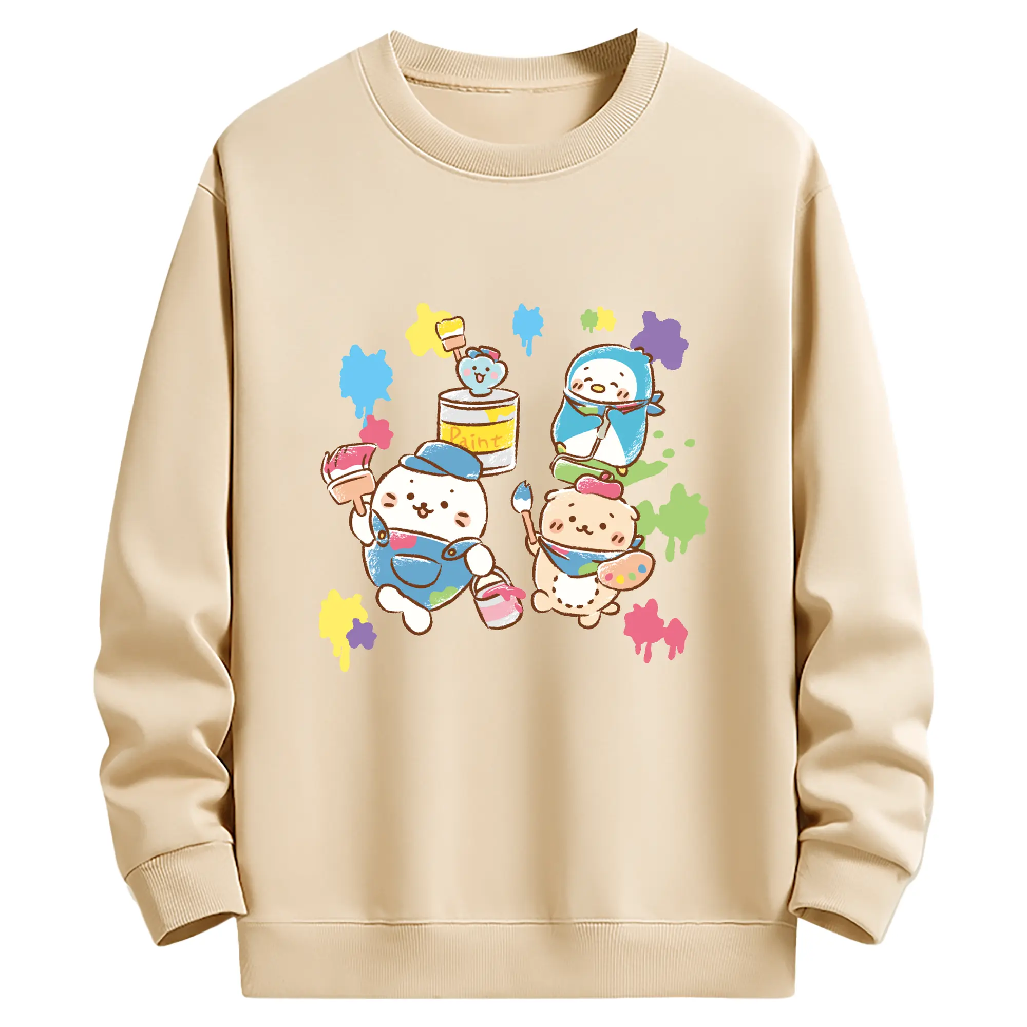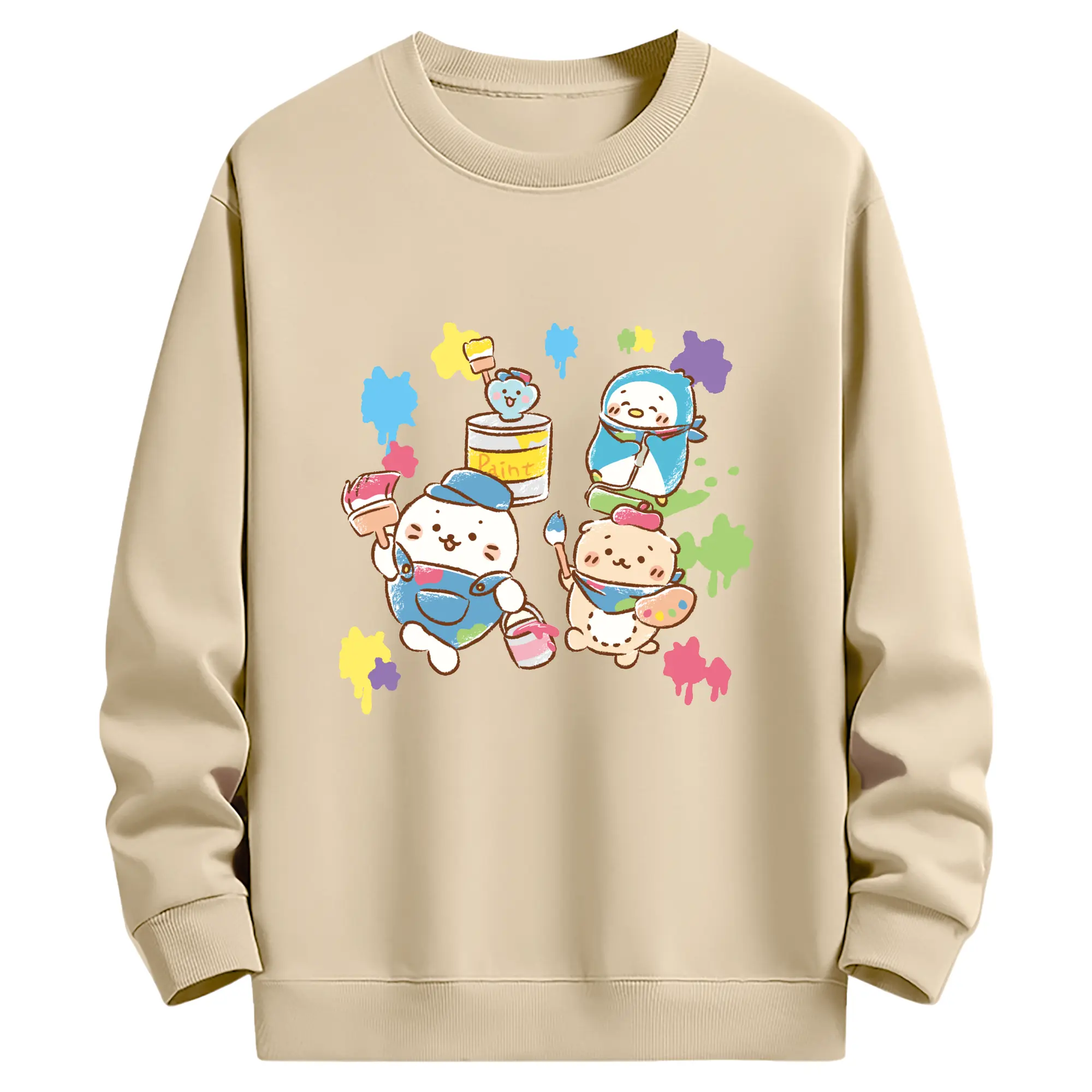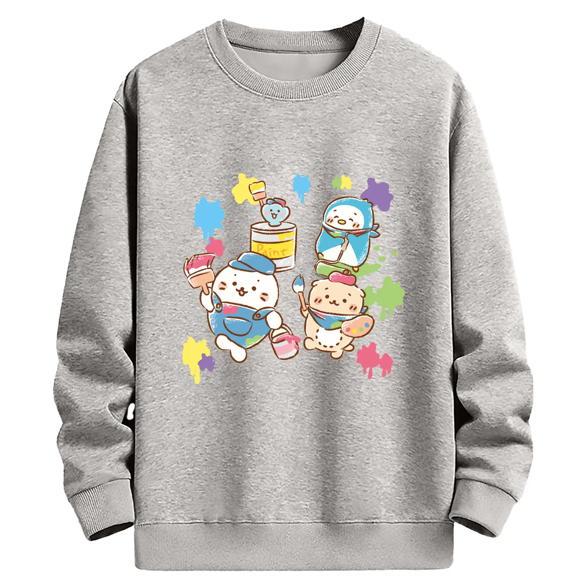 夢のコラボ!ペコちゃんとハローキティ - 高品質 クルーネック スウェット ・ コットン59% ポリエステル41% ・ ユニセックス 長袖 トレーナー ・ カジュアル デイリー スポーツ 散歩用