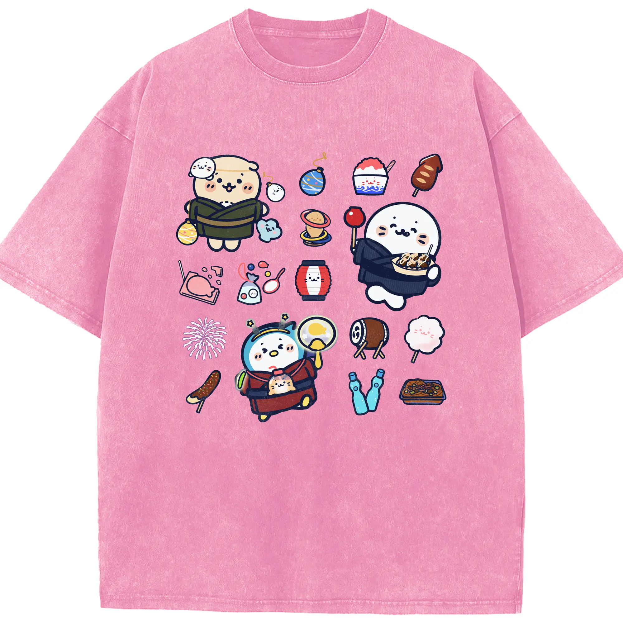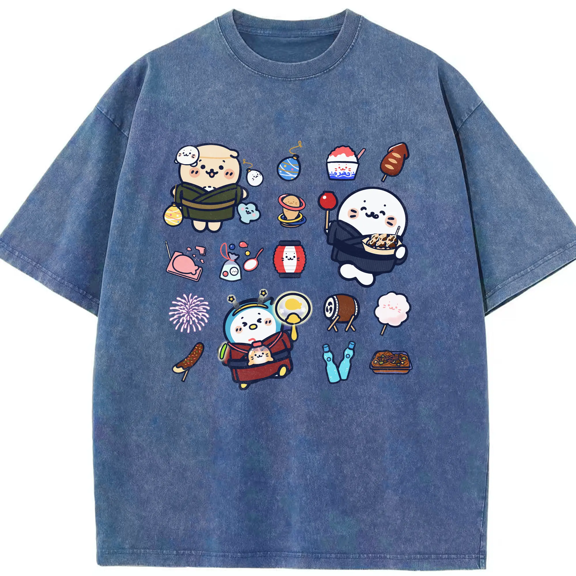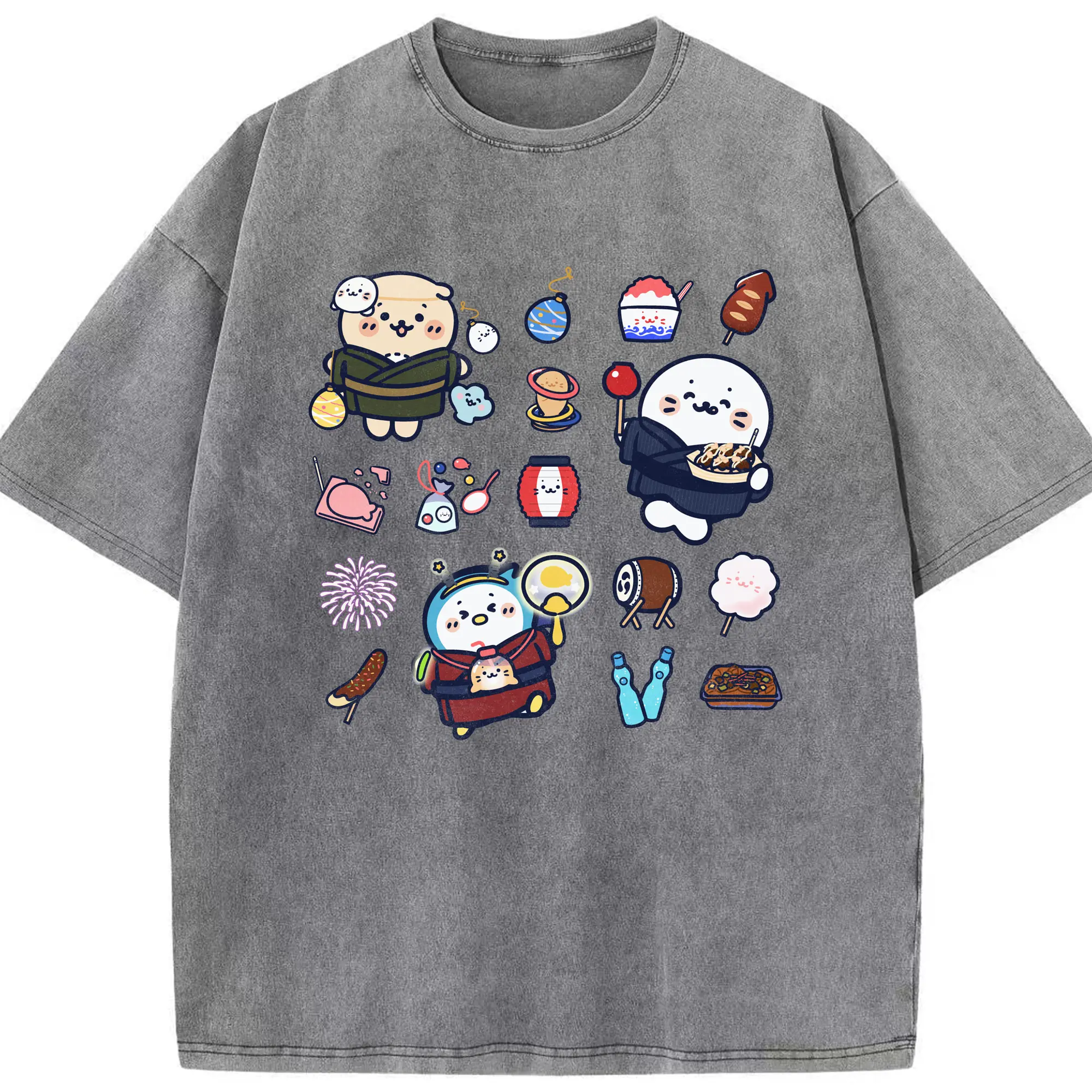【新作】ちゃちゃまる ファン必見 - 綿100% ヴィンテージ風 半袖Tシャツ ・ フロントプリント ・ 柔らか肌触り ・ 通気性 快適 ・ スポーツ カジュアル 外出用