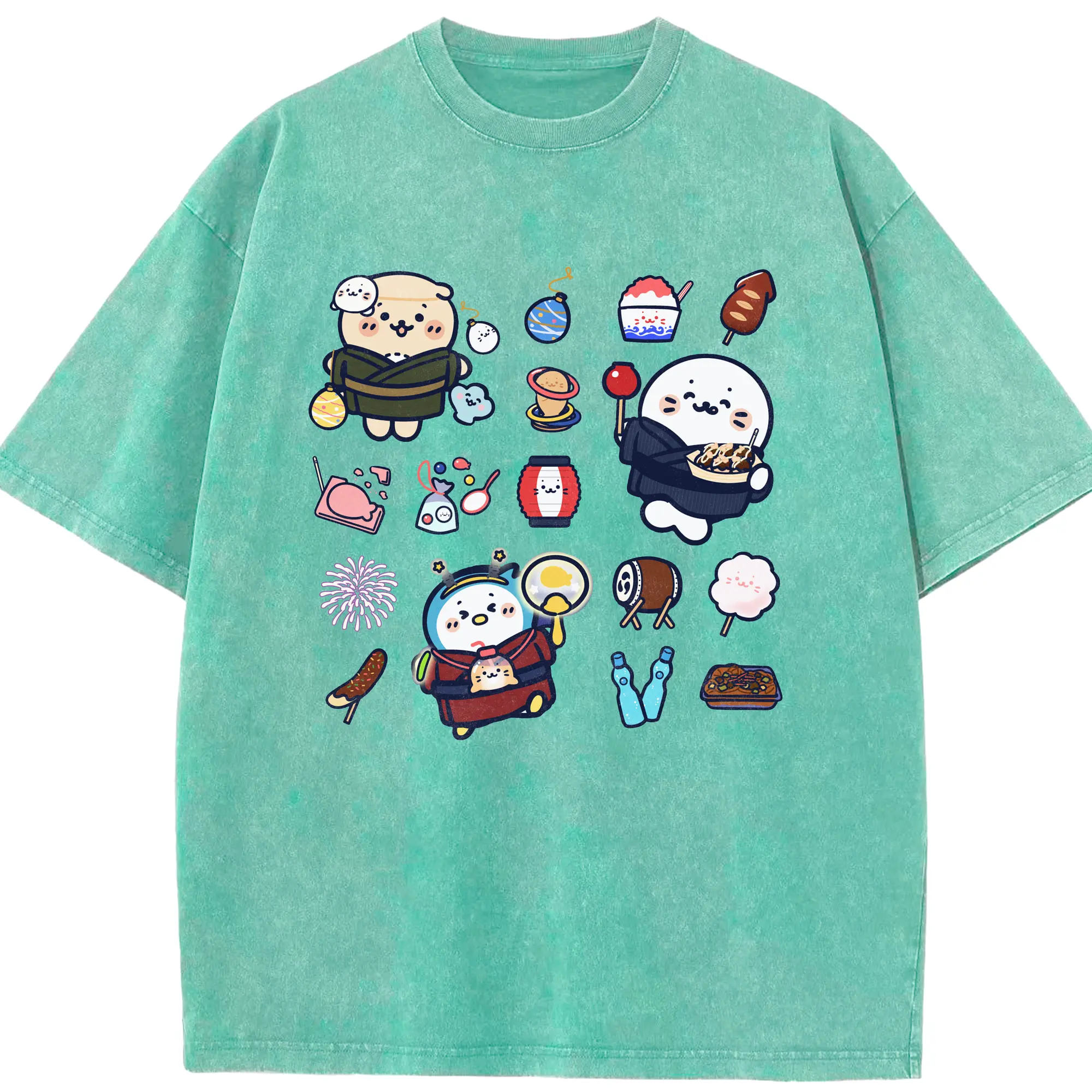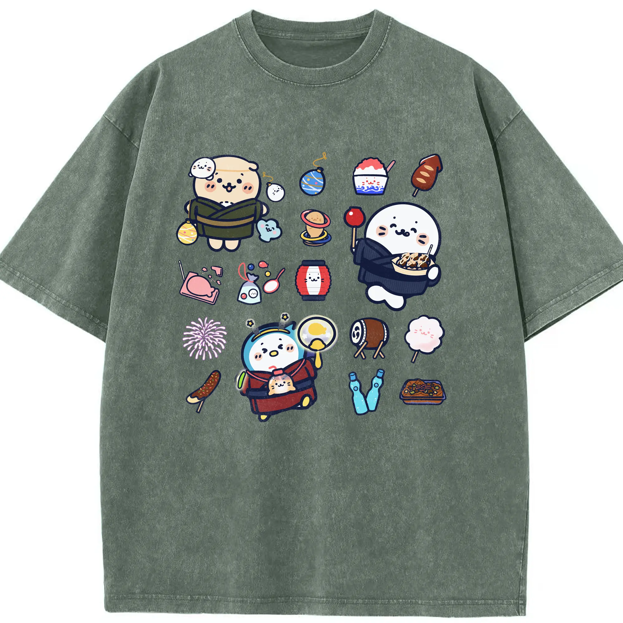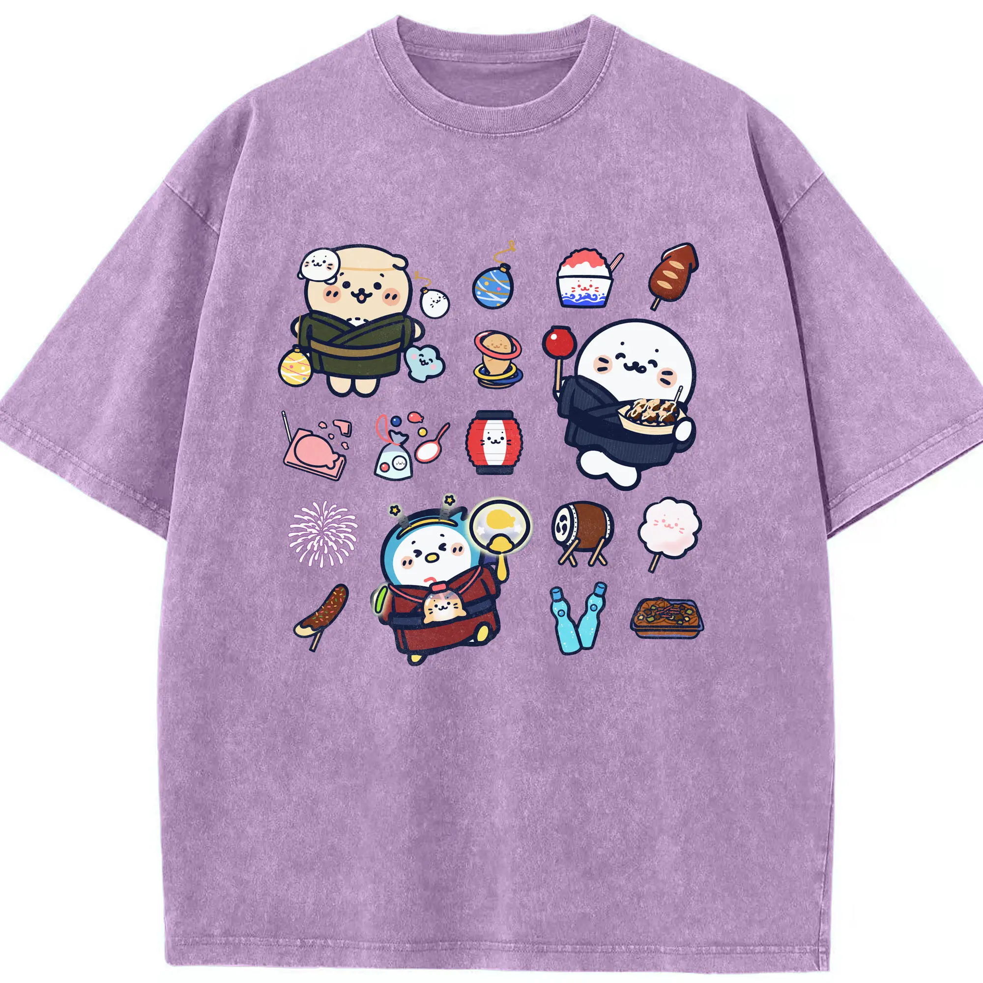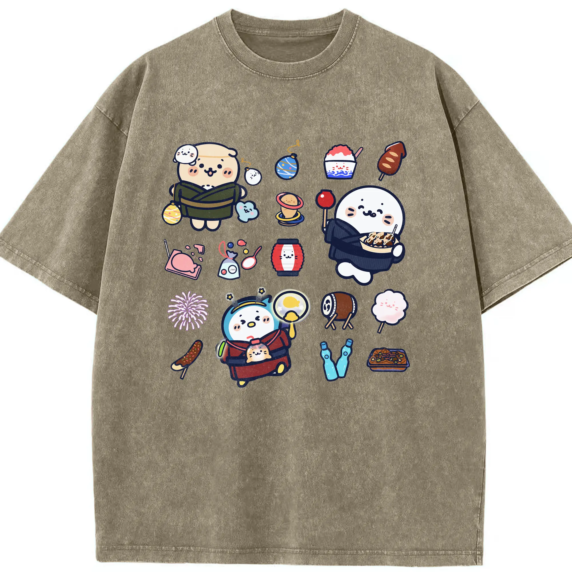 【新作】ちゃちゃまる ファン必見 - 綿100% ヴィンテージ風 半袖Tシャツ ・ フロントプリント ・ 柔らか肌触り ・ 通気性 快適 ・ スポーツ カジュアル 外出用