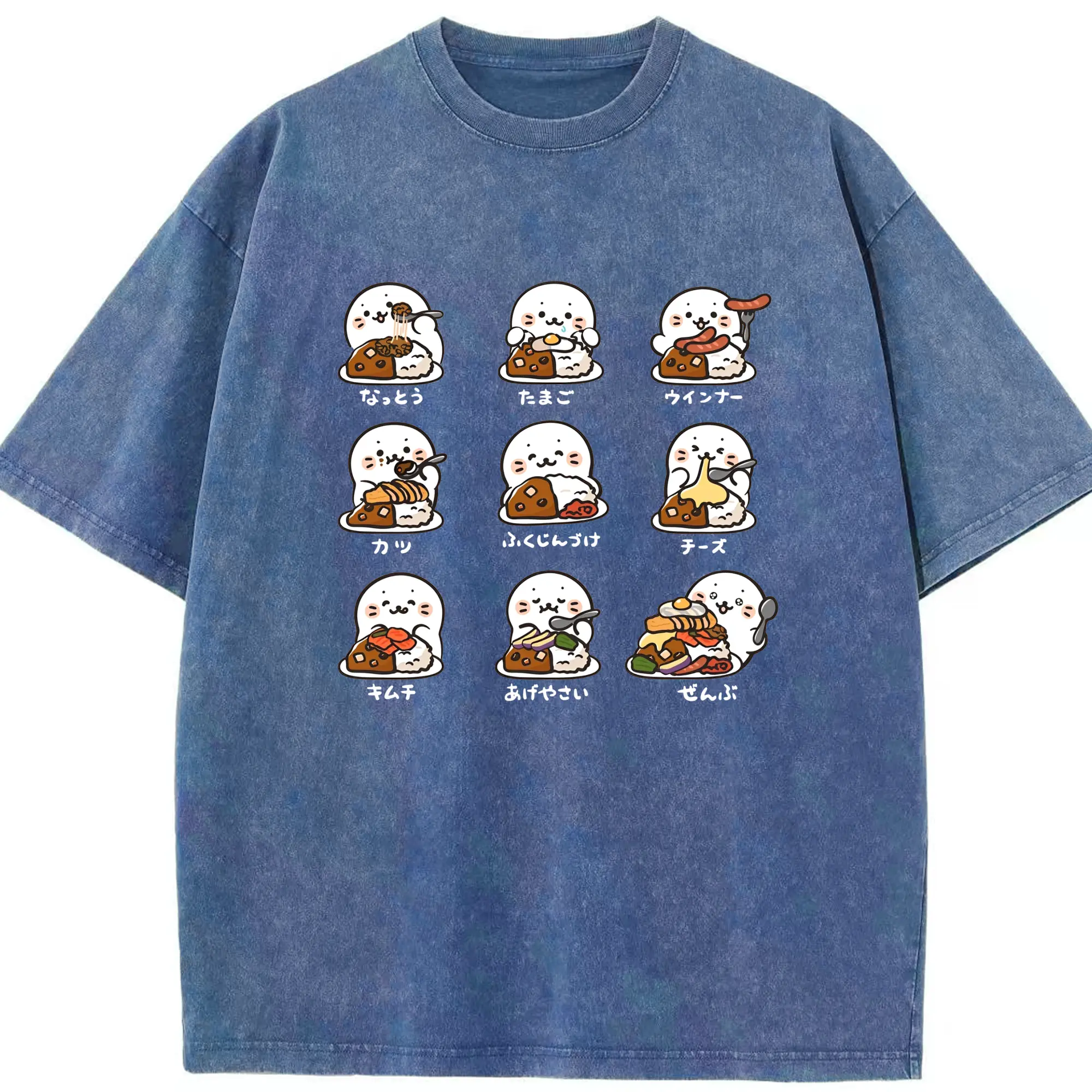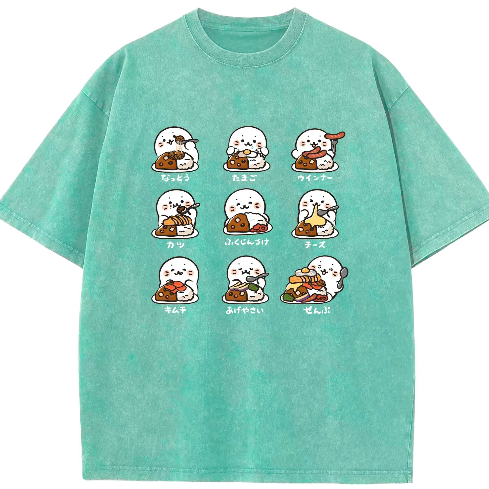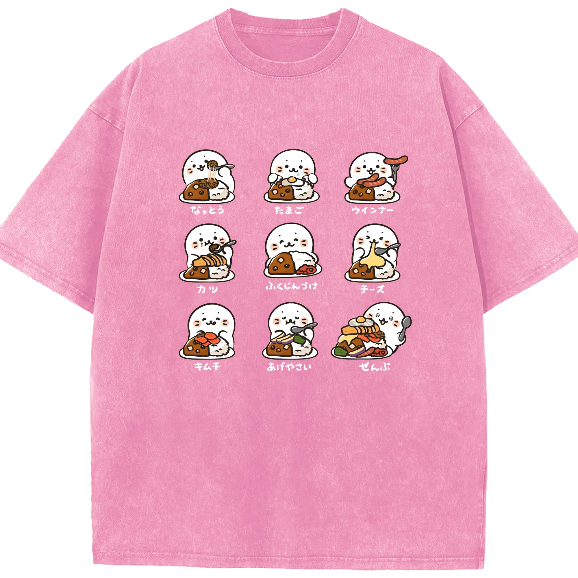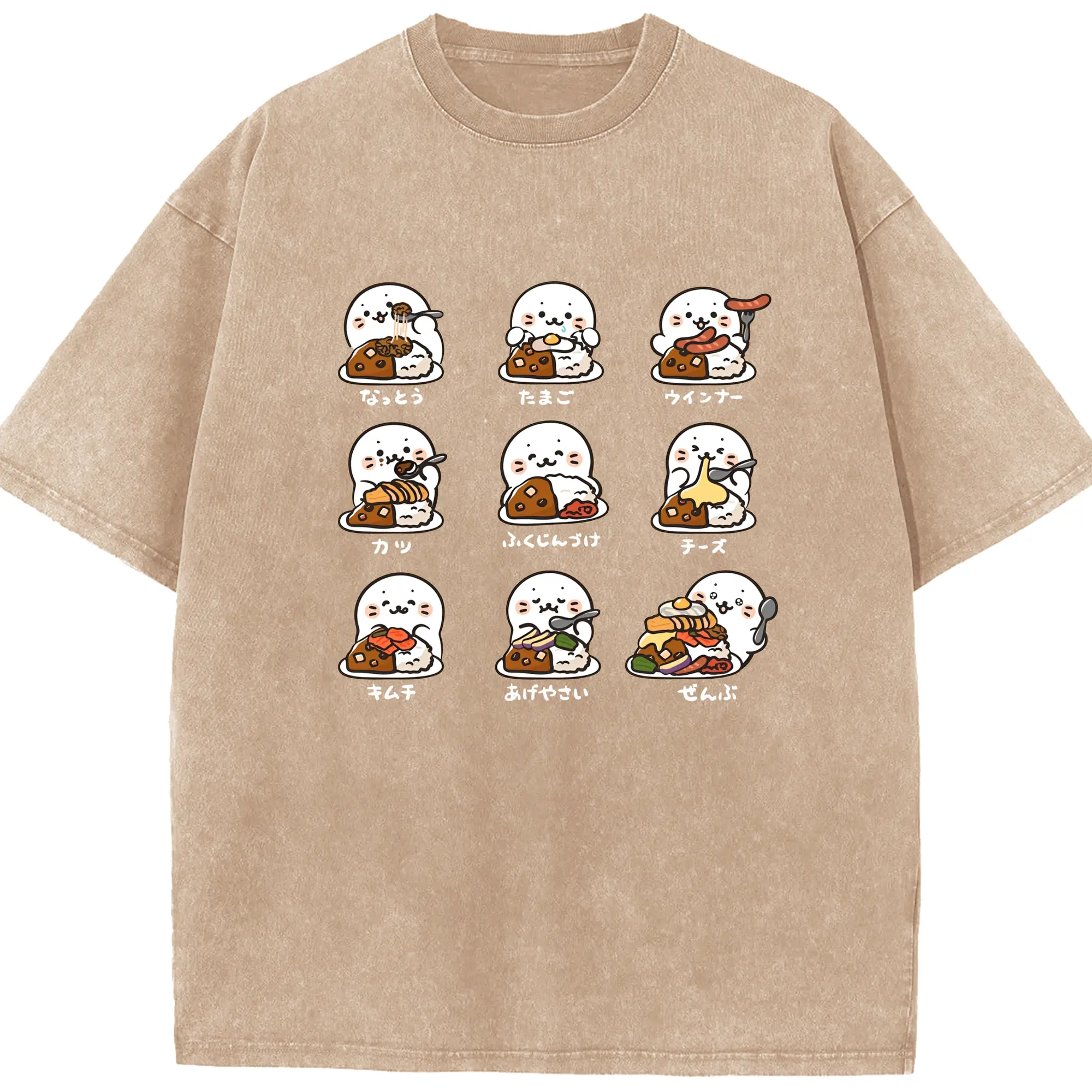 しろたん 寿司カレーの日 可愛い 限定デザイン - 綿100% 半袖Tシャツ ・ フロントプリント ・ 快適 通気性 ・ 日常使い 散歩 スポーツ用