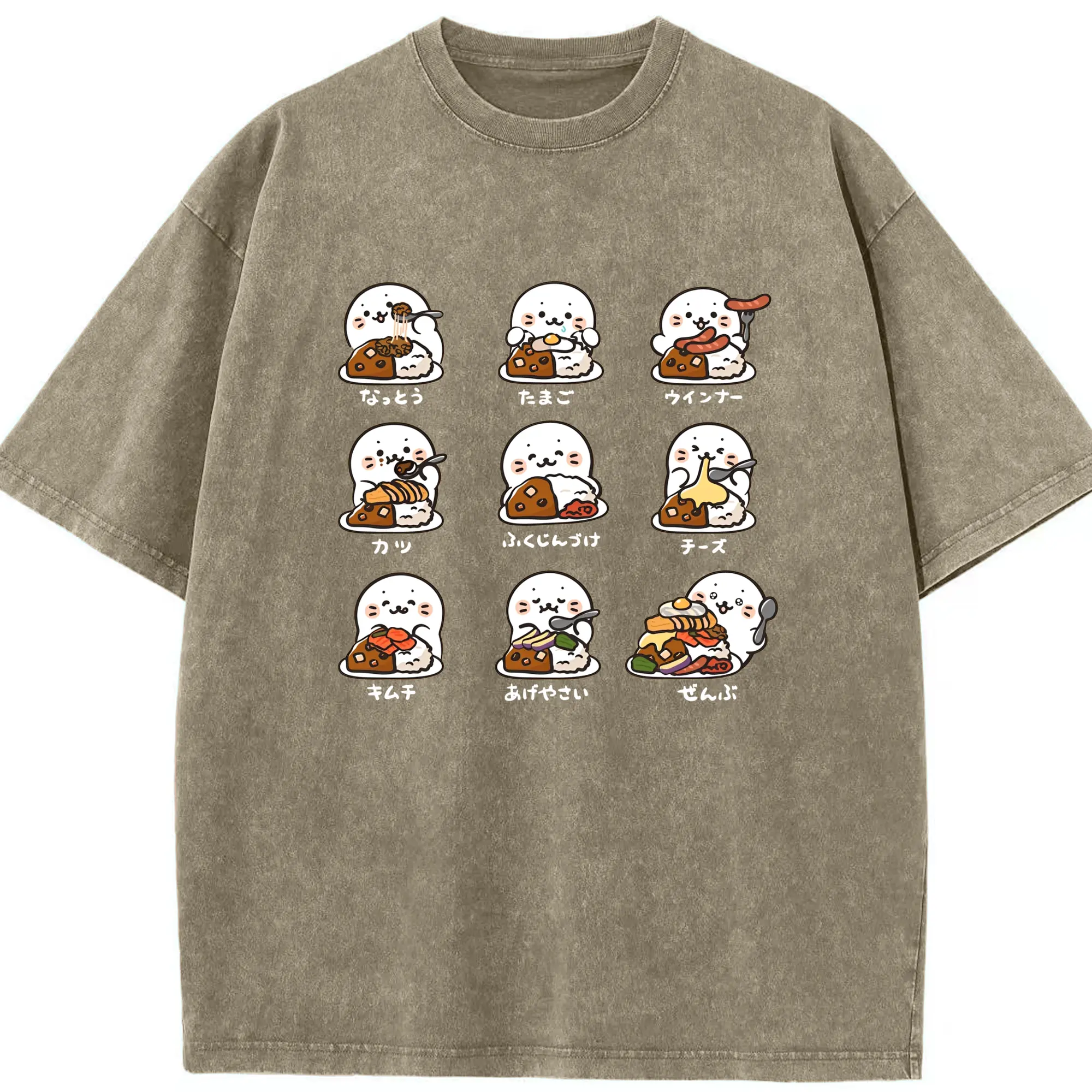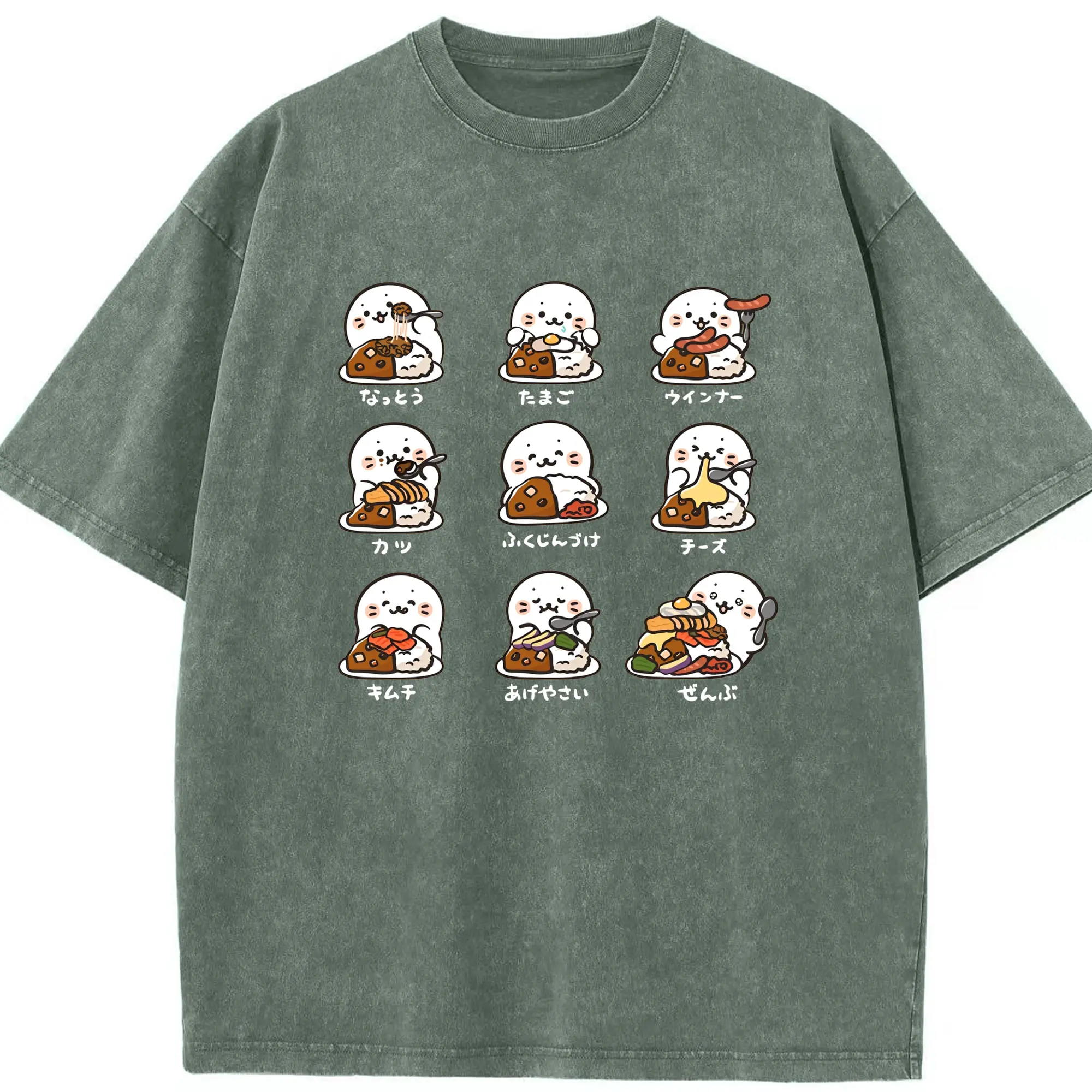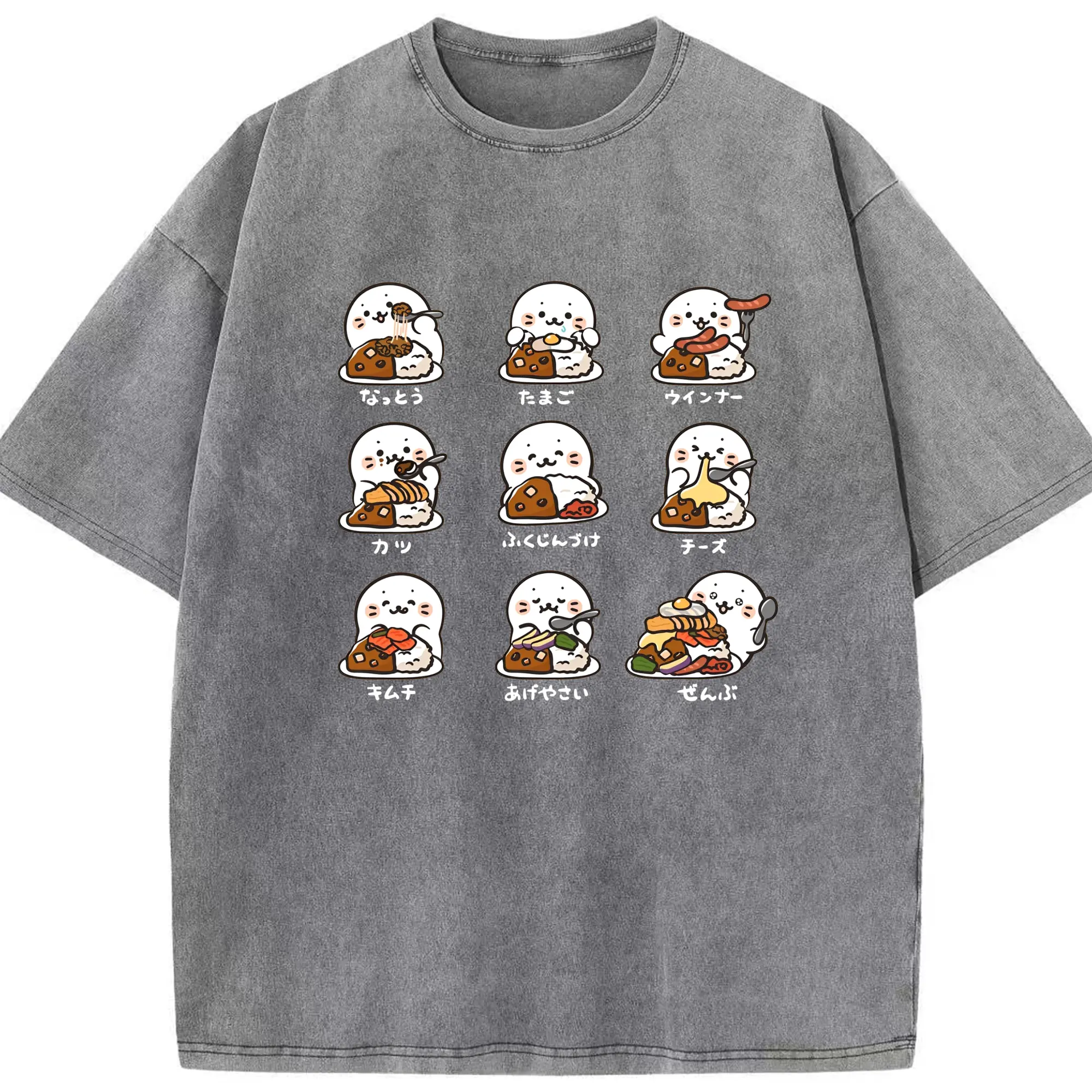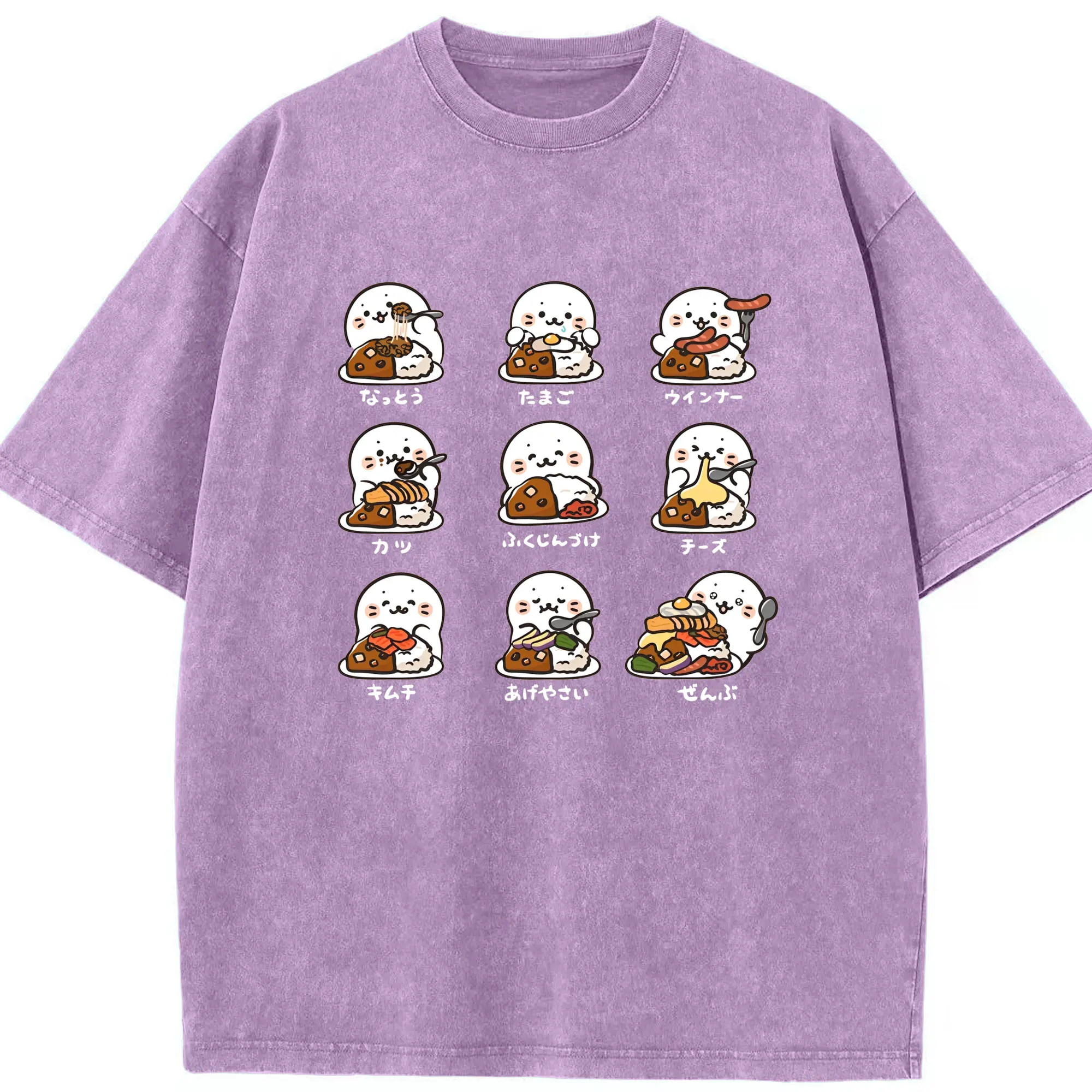 しろたん 寿司カレーの日 可愛い 限定デザイン - 綿100% 半袖Tシャツ ・ フロントプリント ・ 快適 通気性 ・ 日常使い 散歩 スポーツ用