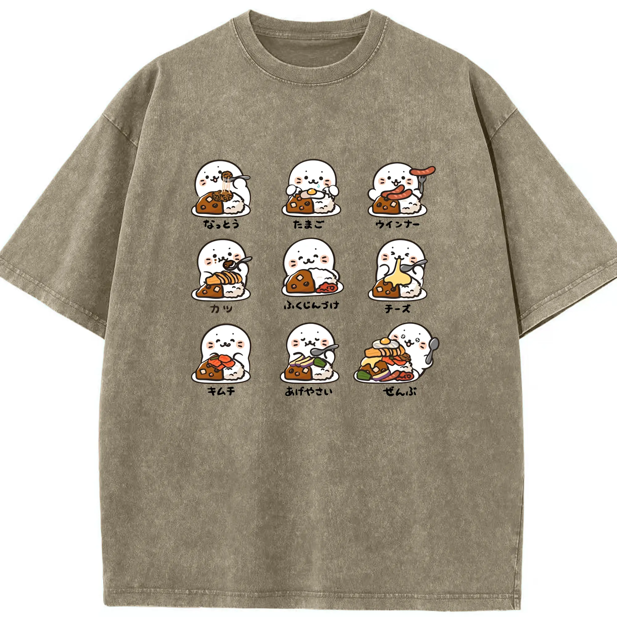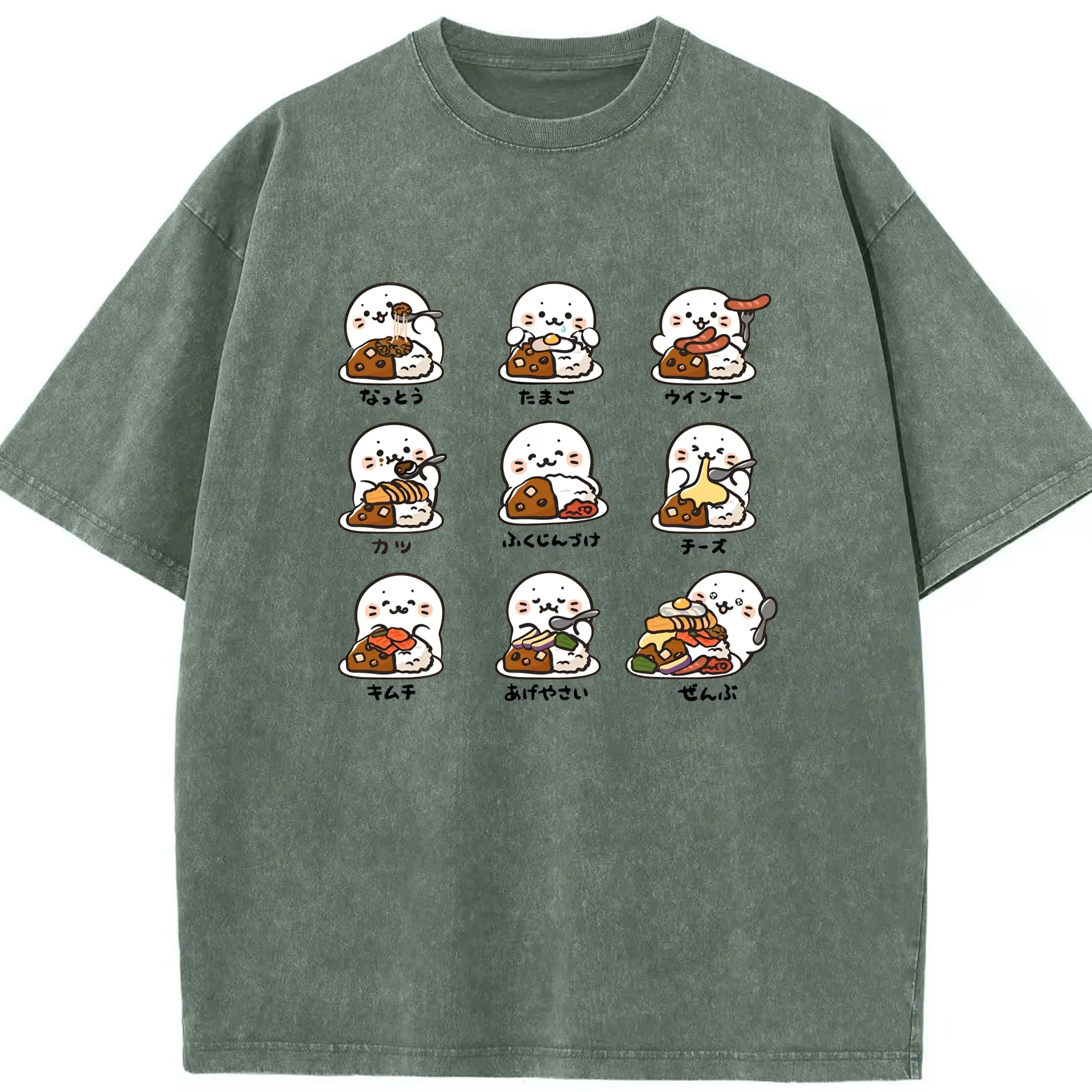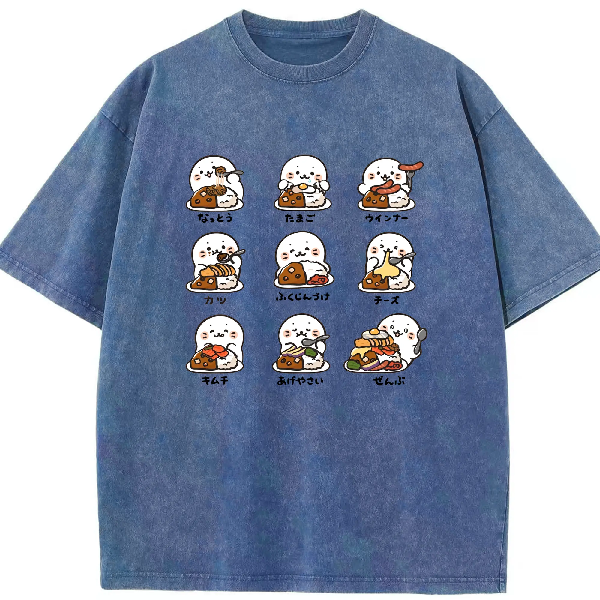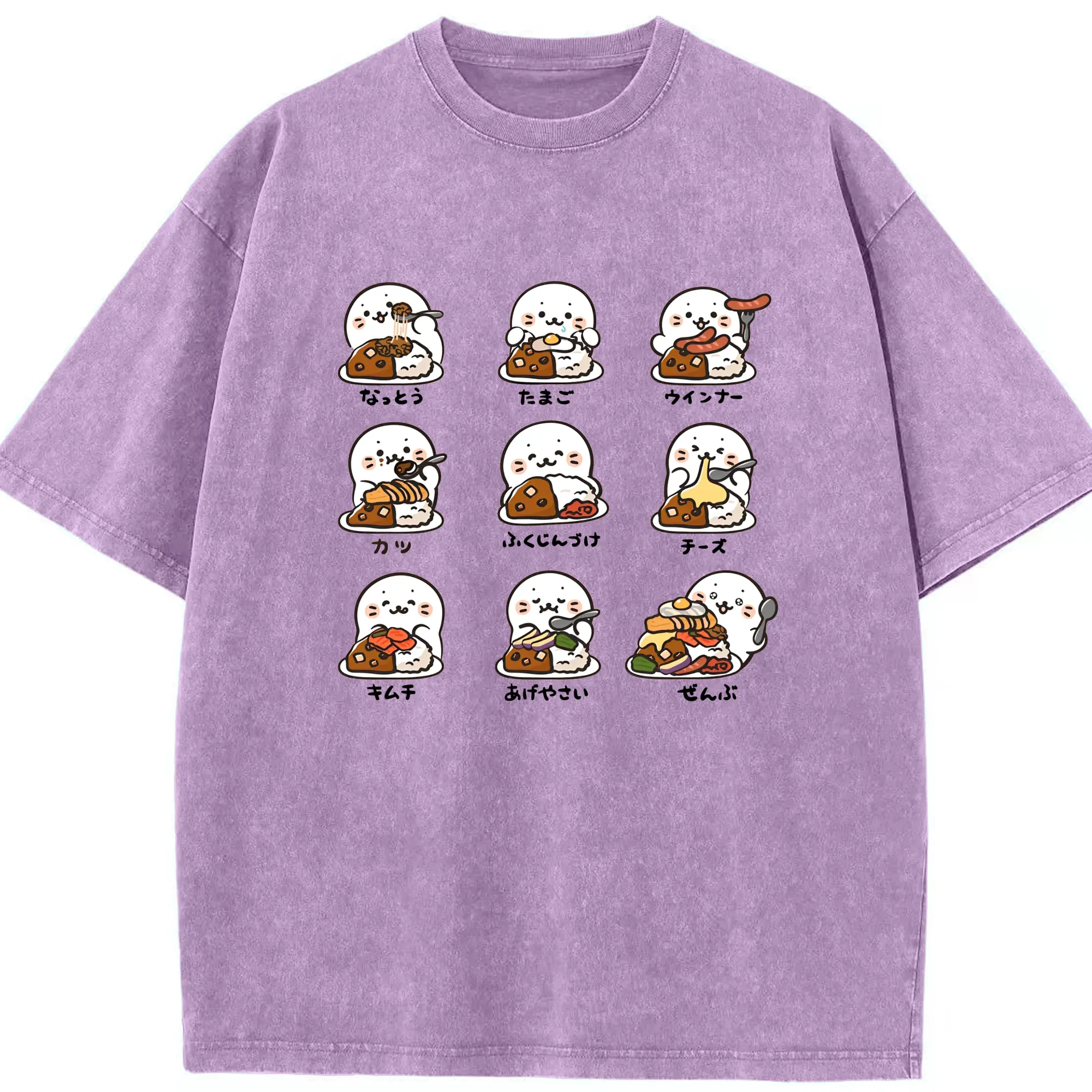 しろたん 寿司カレーの日 可愛い 限定デザイン - 綿100% 半袖Tシャツ ・ フロントプリント ・ 快適 通気性 ・ 日常使い 散歩 スポーツ用