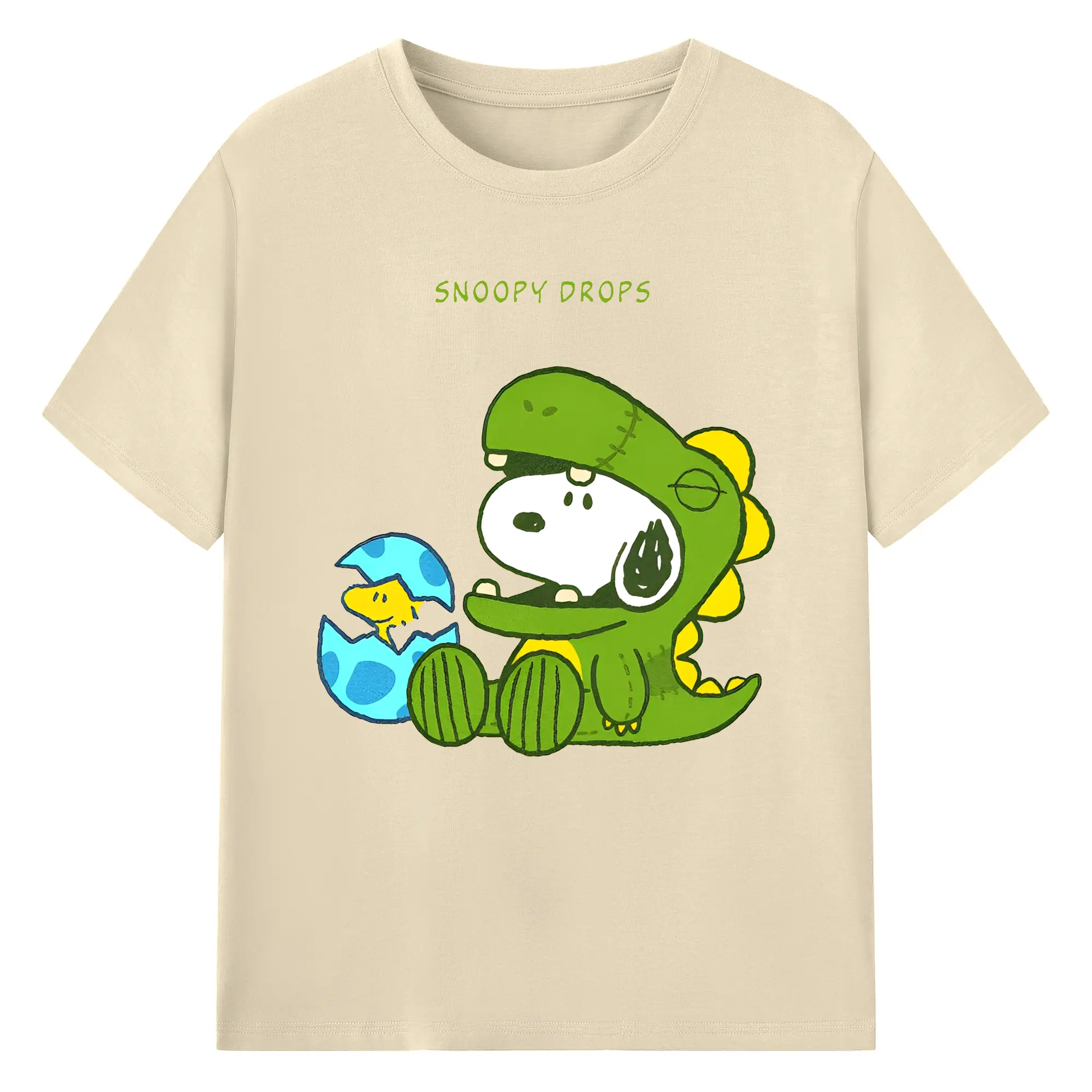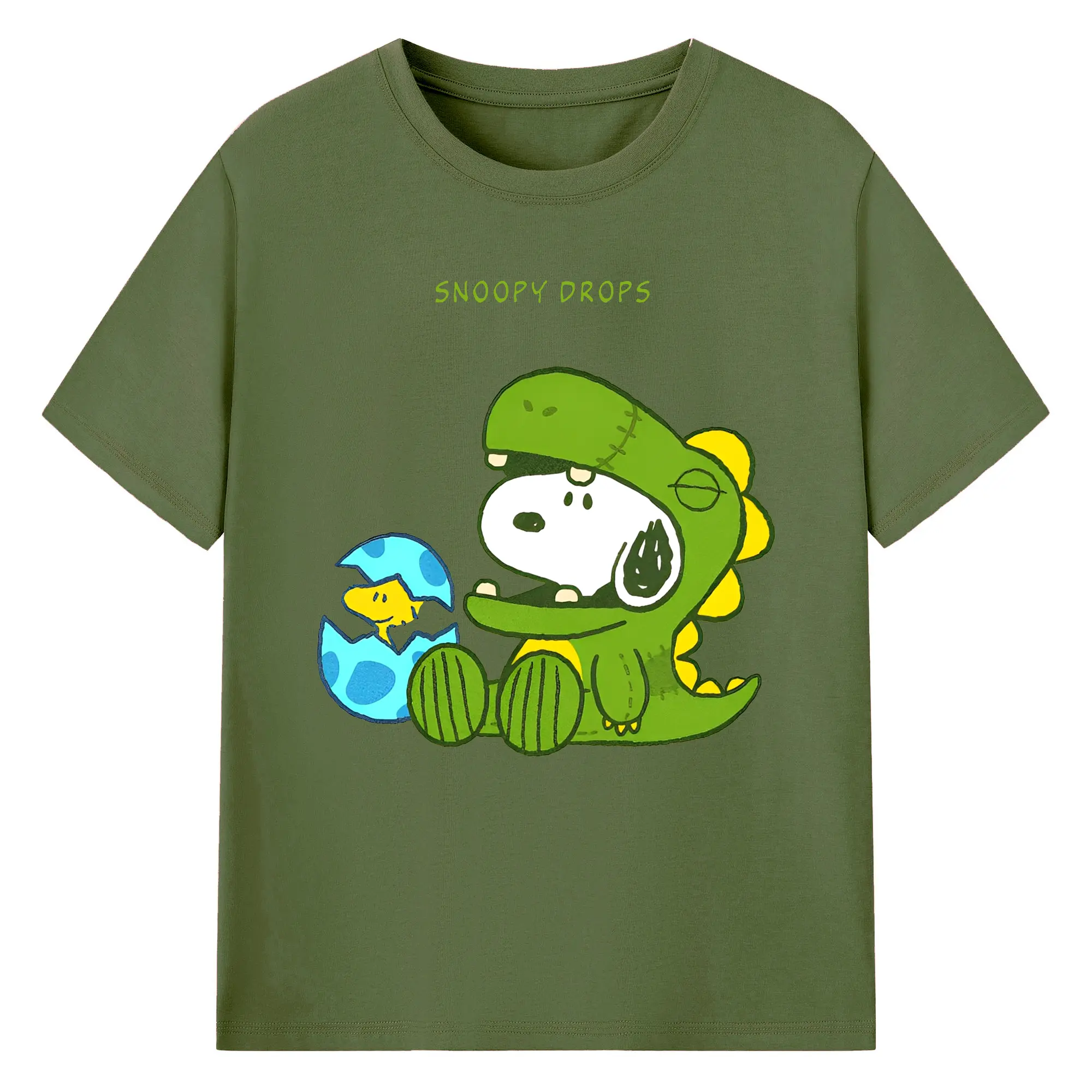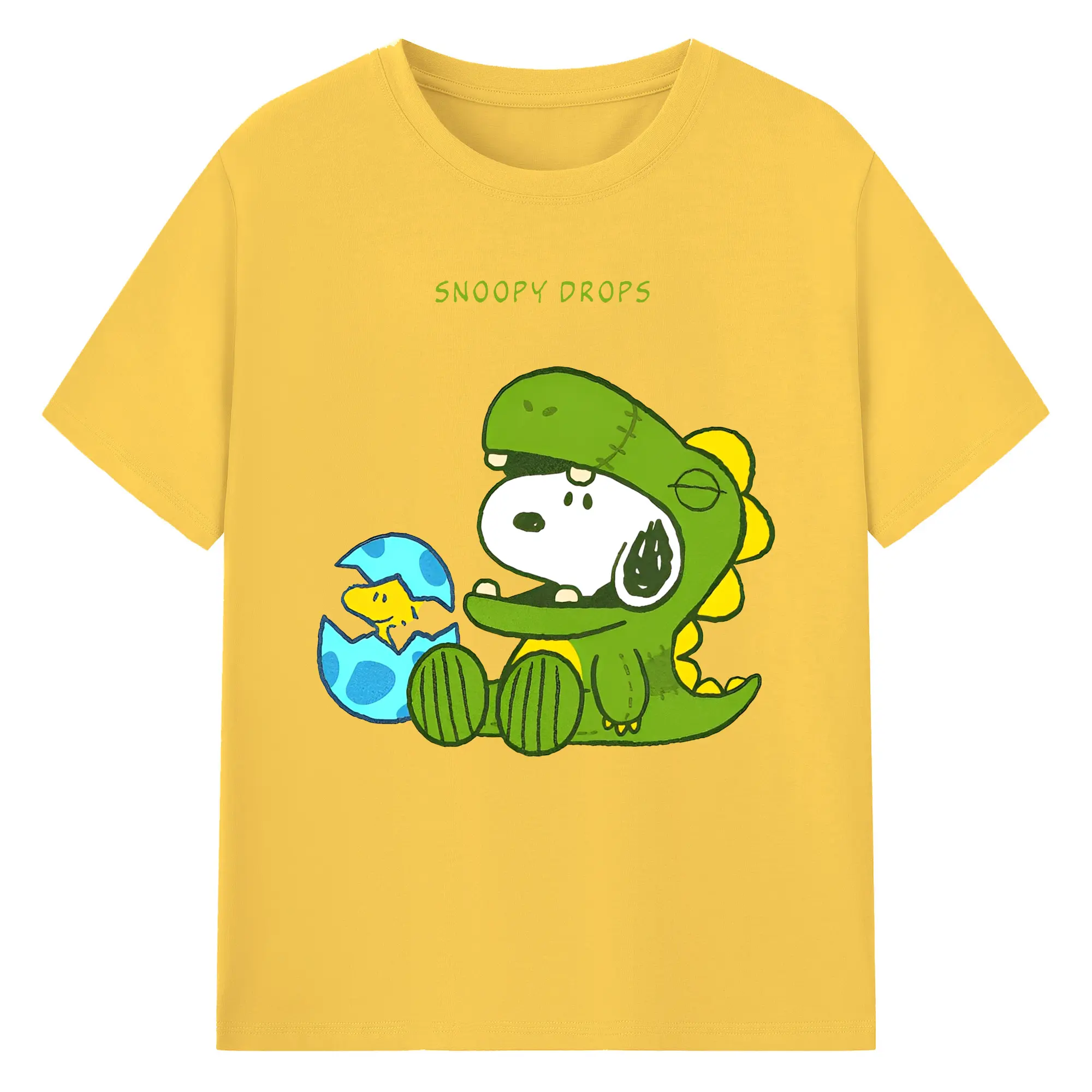 新作ダイナソーコスチューム スヌーピー限定 - 綿100% 半袖Tシャツ ・ フロントプリント ・ 快適 通気性 ・ 日常使い 散歩 スポーツ用