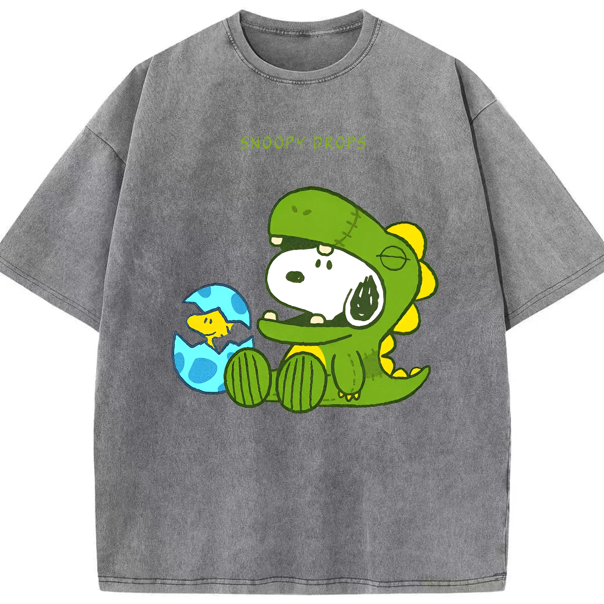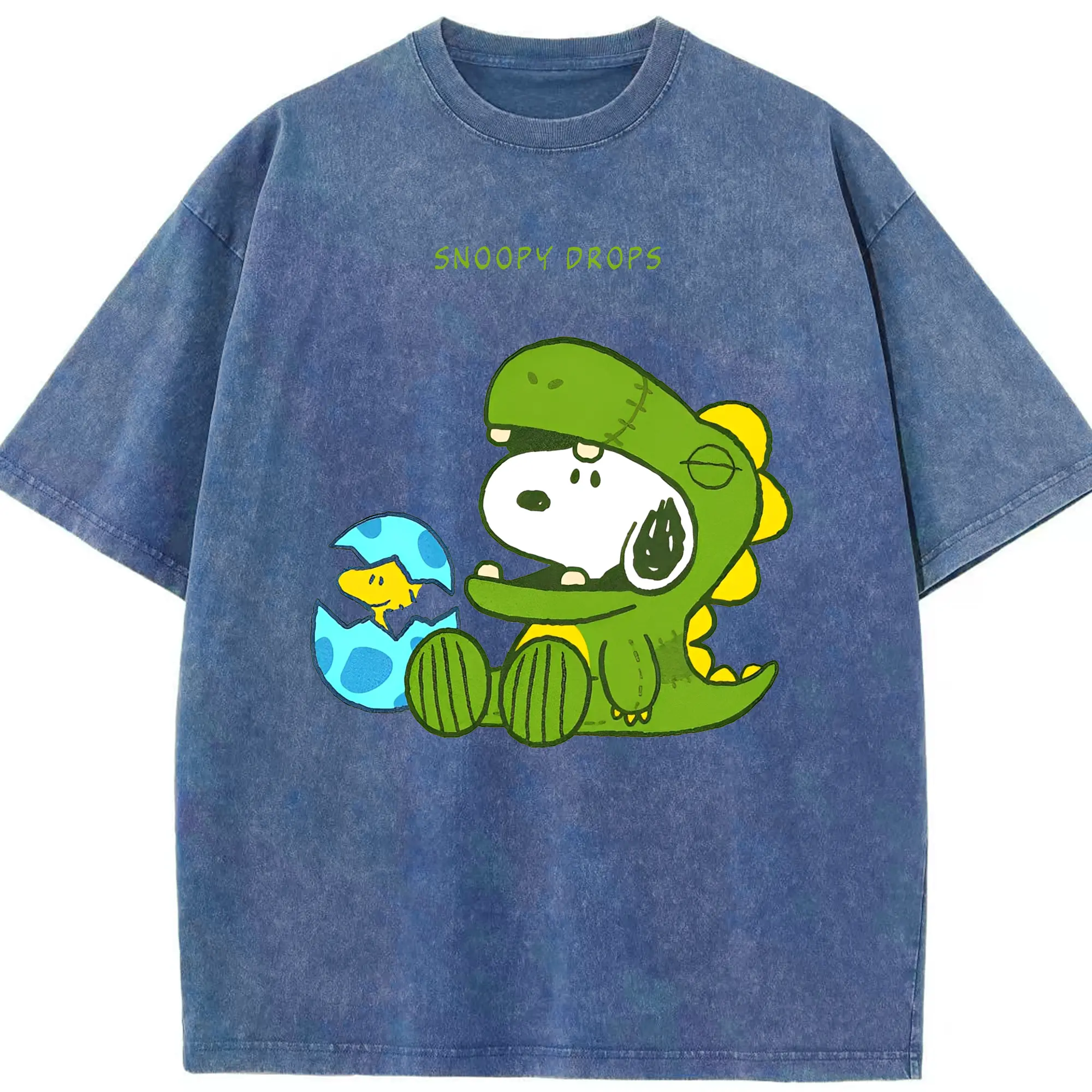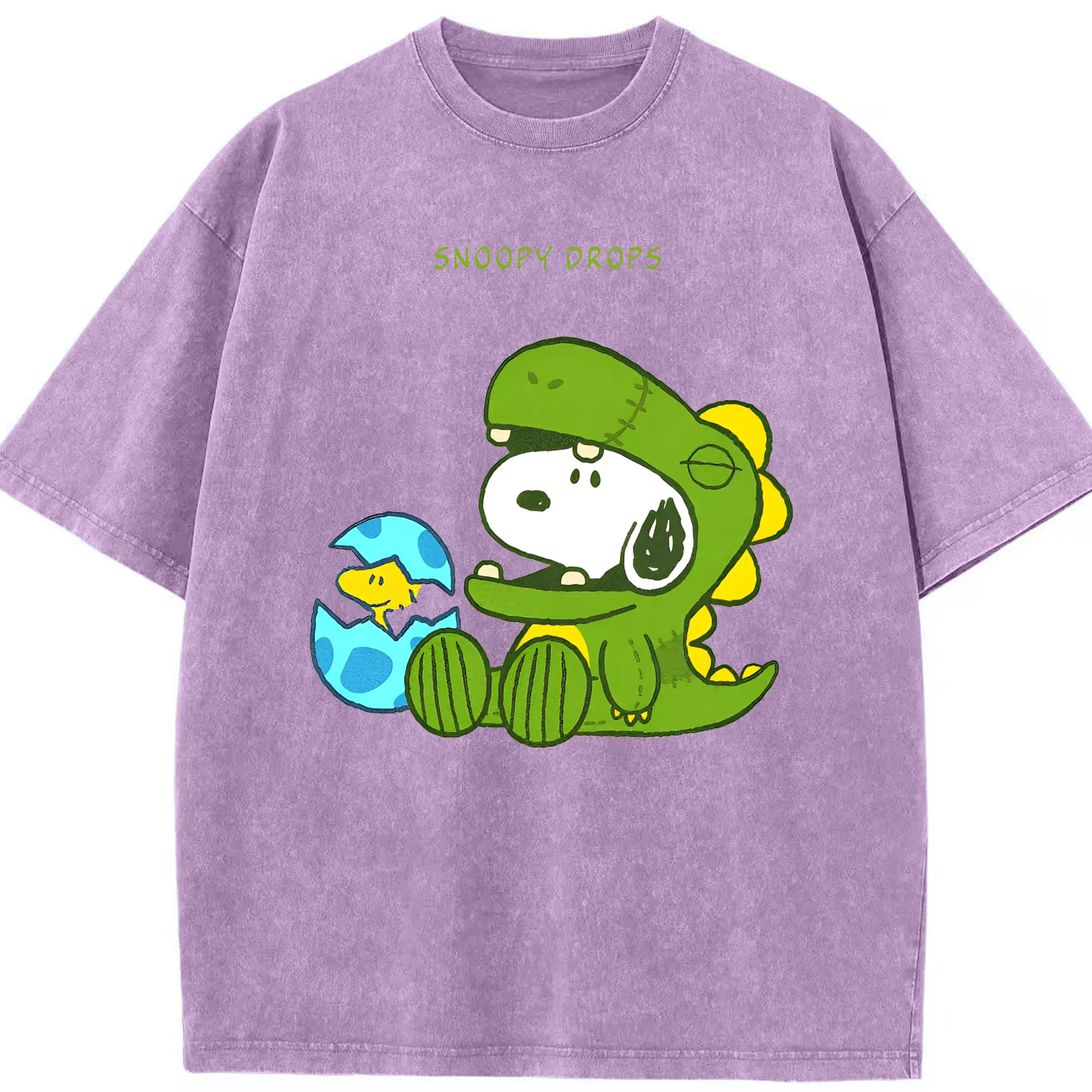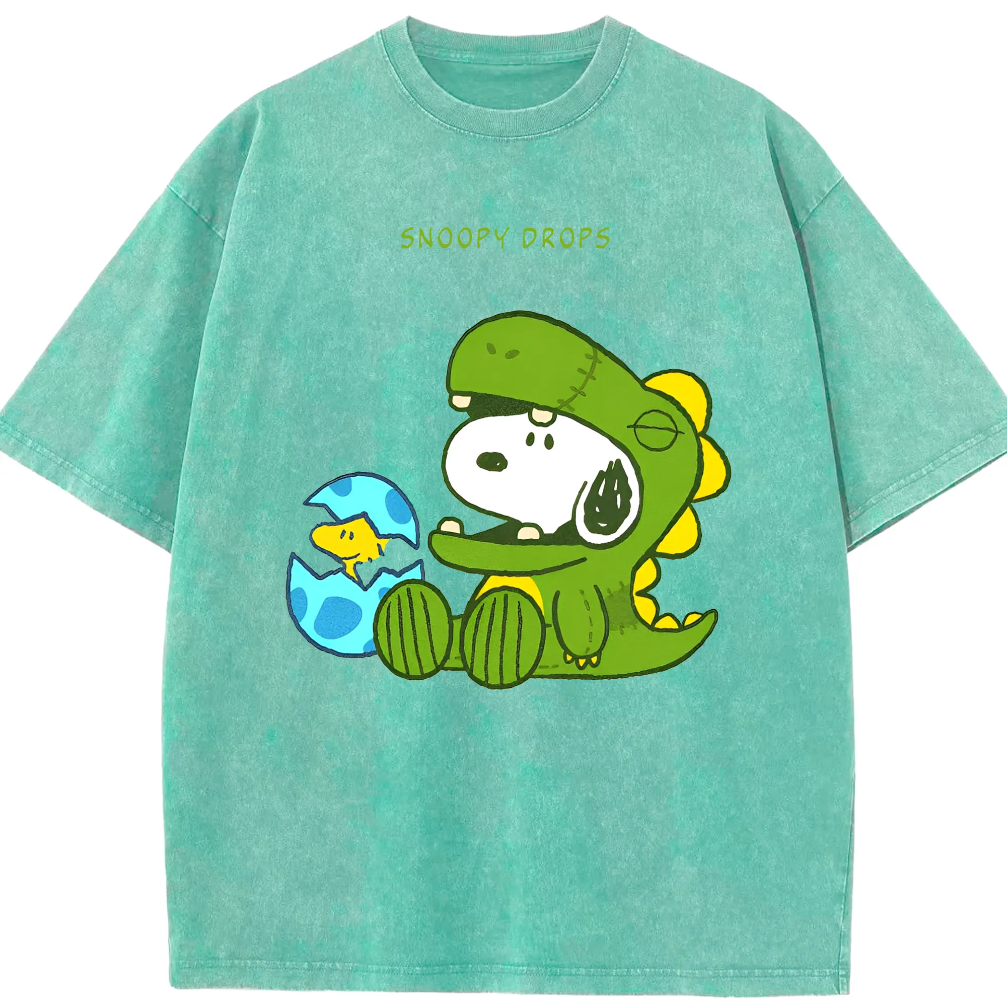 たまごから登場!ウッドストック&恐竜スヌーピー - 綿100% 半袖Tシャツ ・ フロントプリント ・ 快適 通気性 ・ 日常使い 散歩 スポーツ用