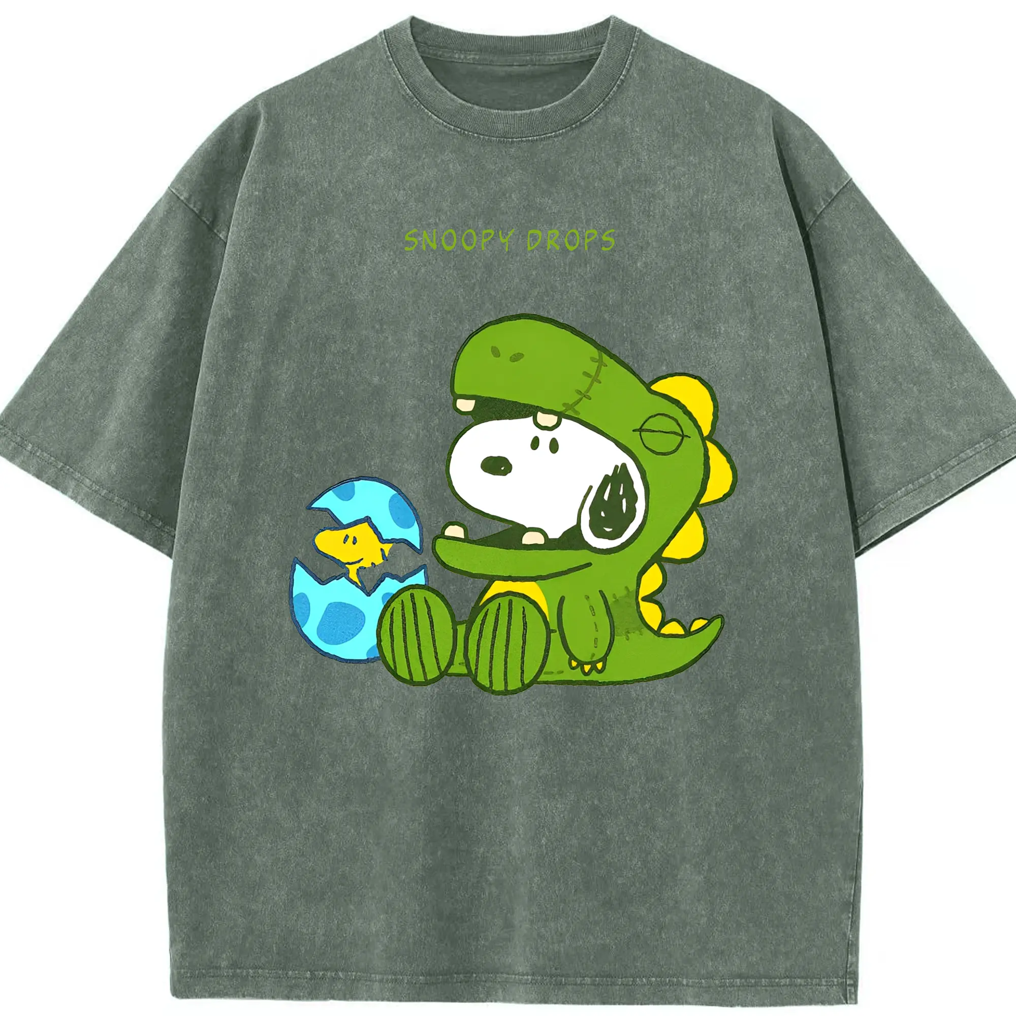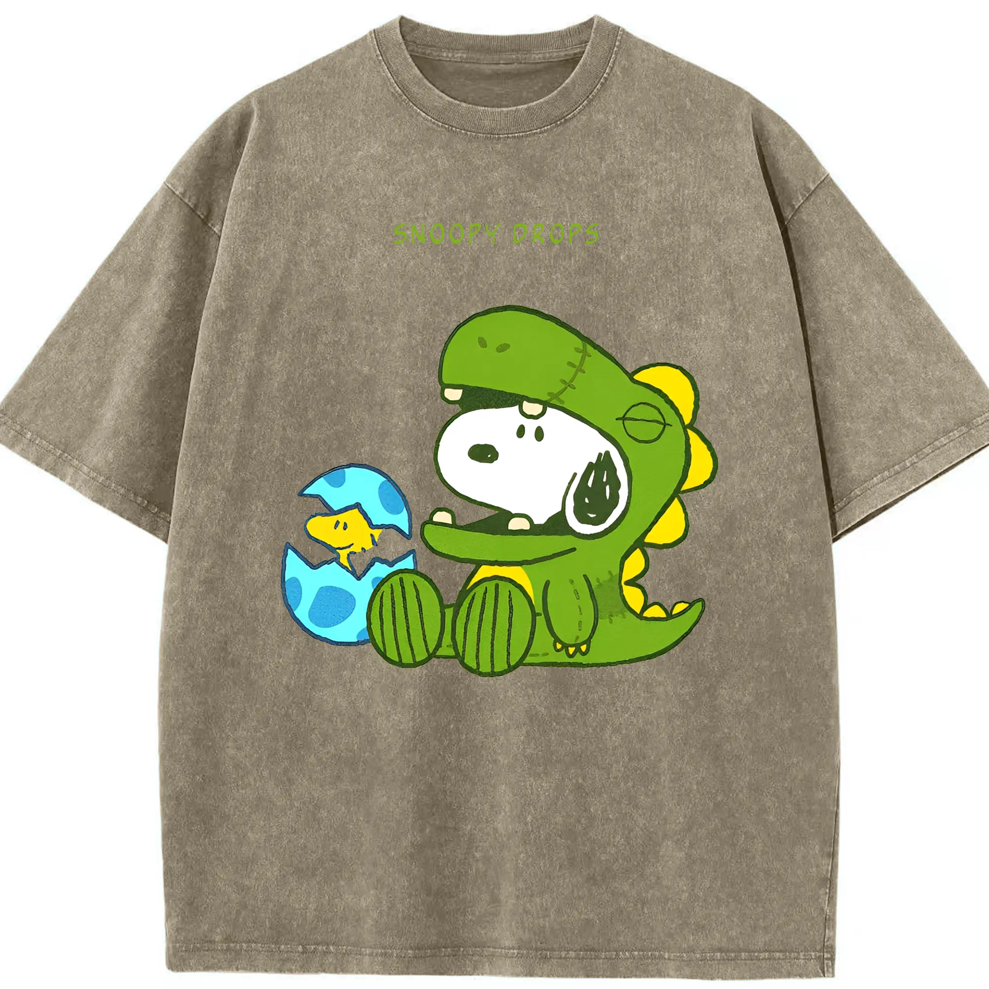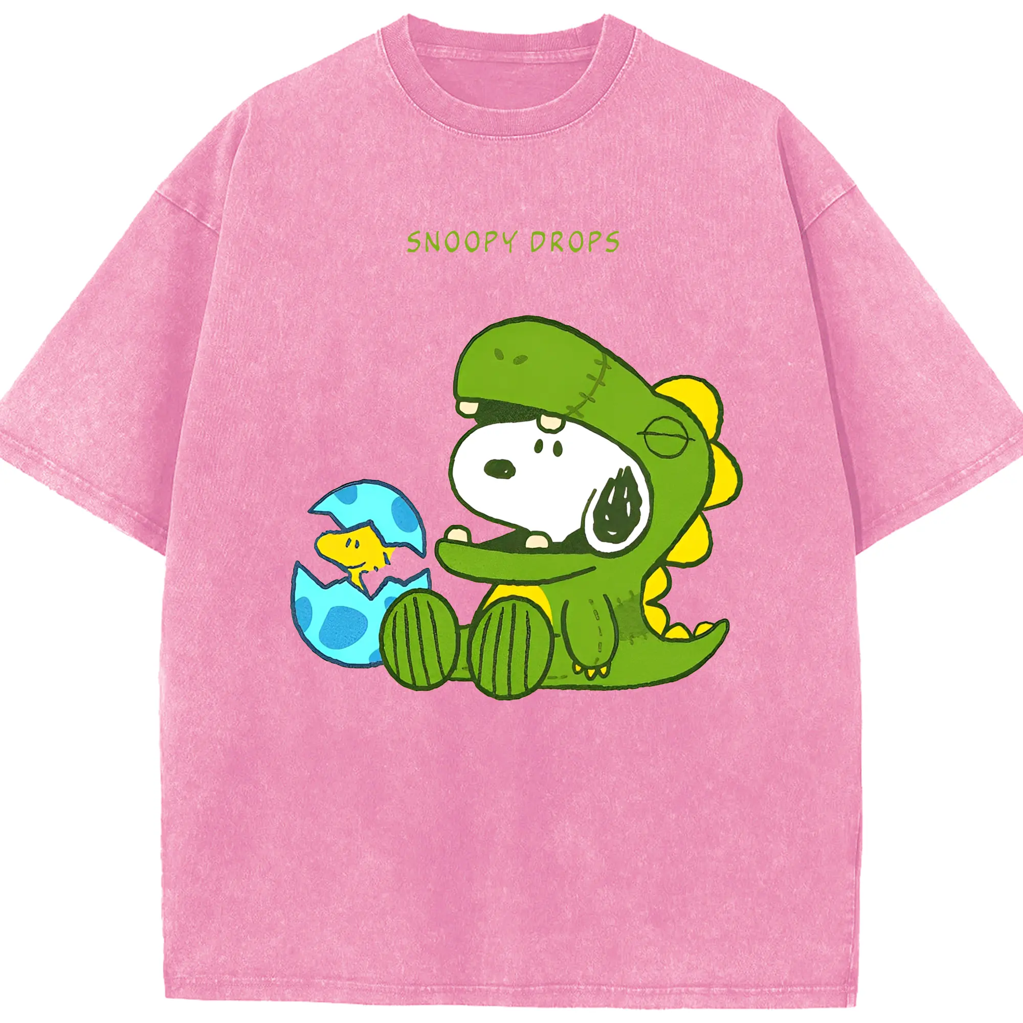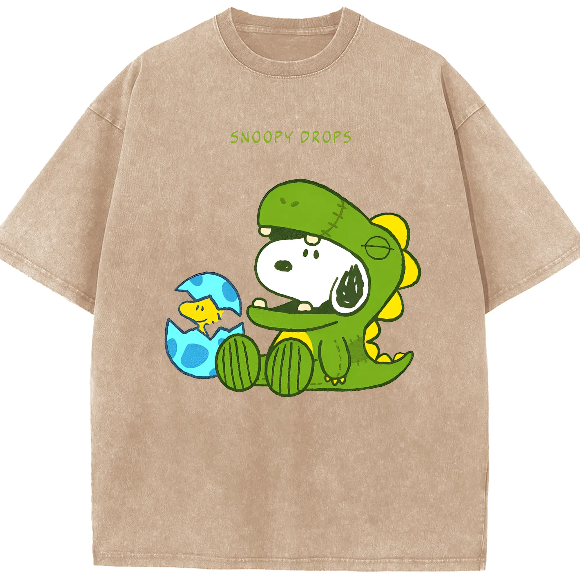 たまごから登場!ウッドストック&恐竜スヌーピー - 綿100% 半袖Tシャツ ・ フロントプリント ・ 快適 通気性 ・ 日常使い 散歩 スポーツ用