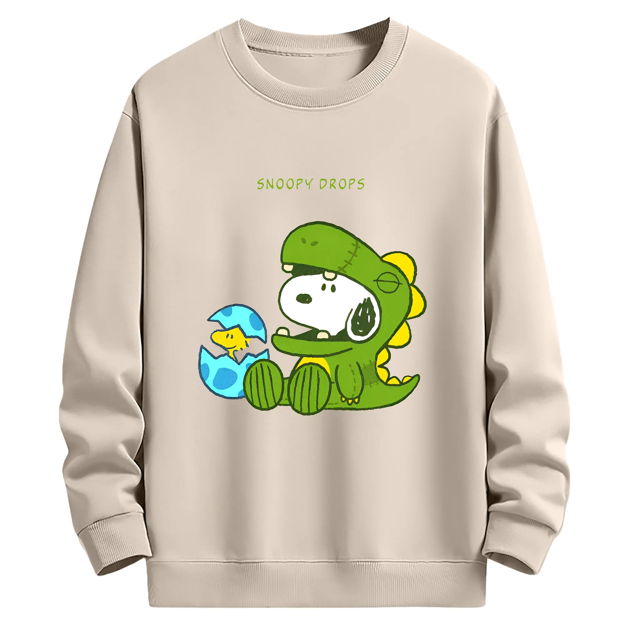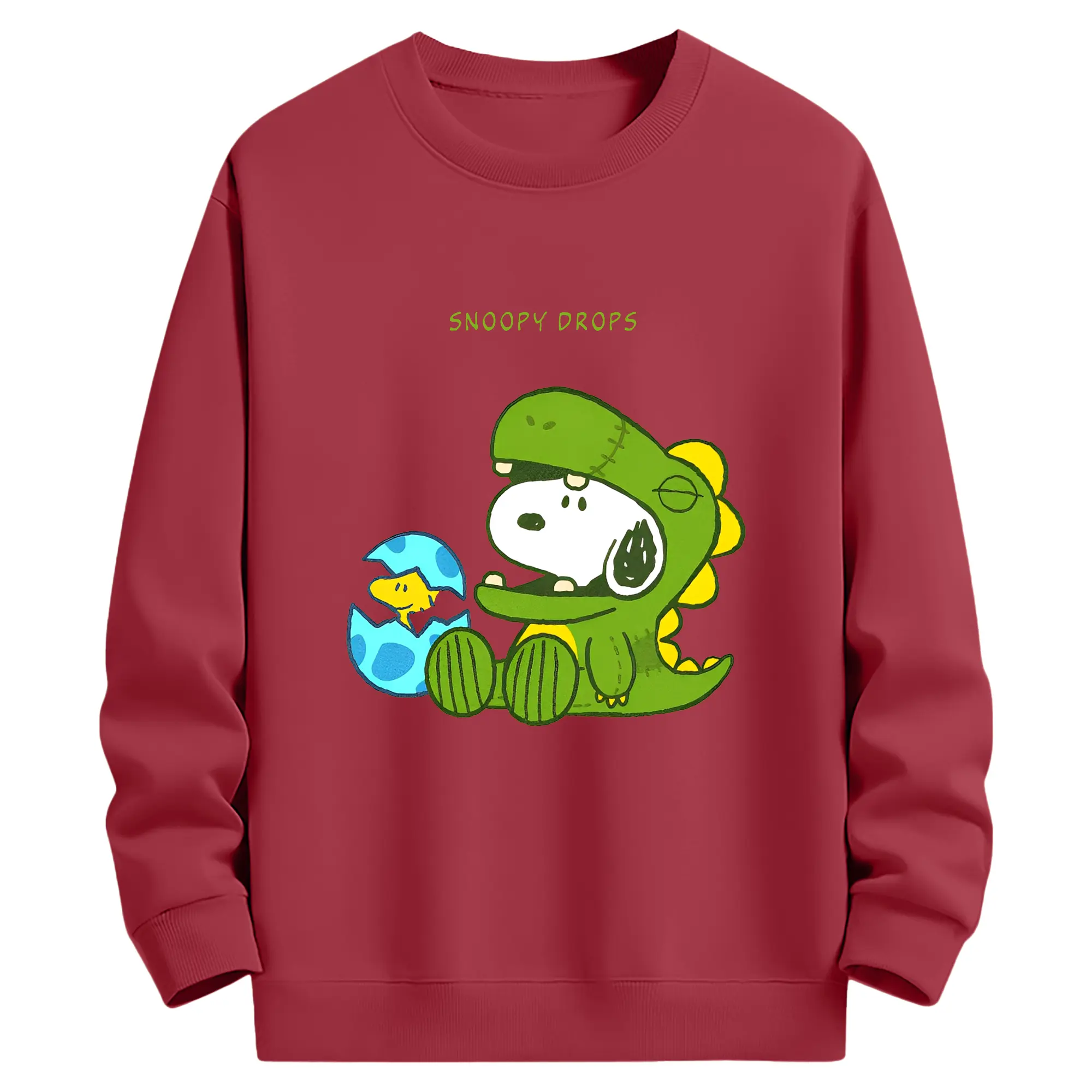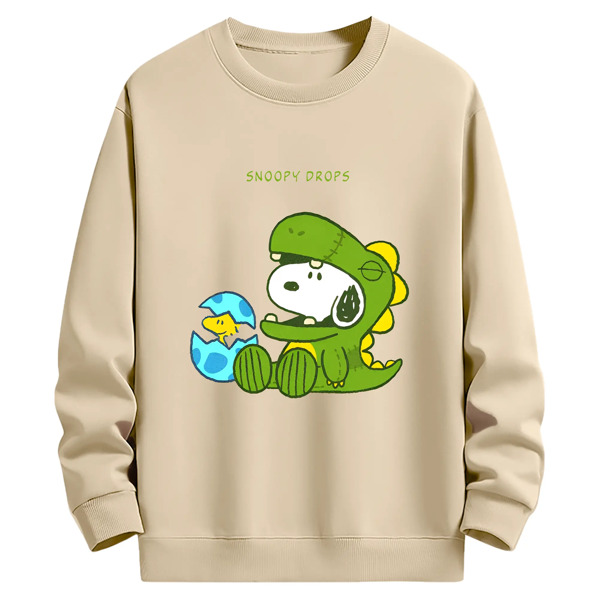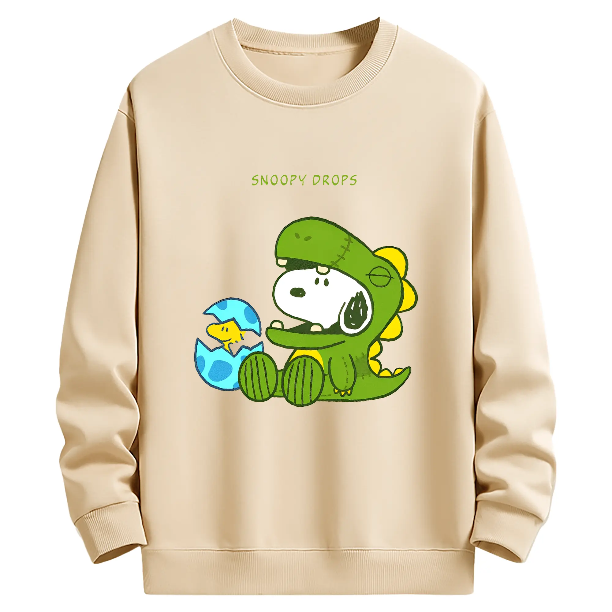 たまごから登場!ウッドストック&恐竜スヌーピー - 綿100% 半袖Tシャツ ・ フロントプリント ・ 快適 通気性 ・ 日常使い 散歩 スポーツ用