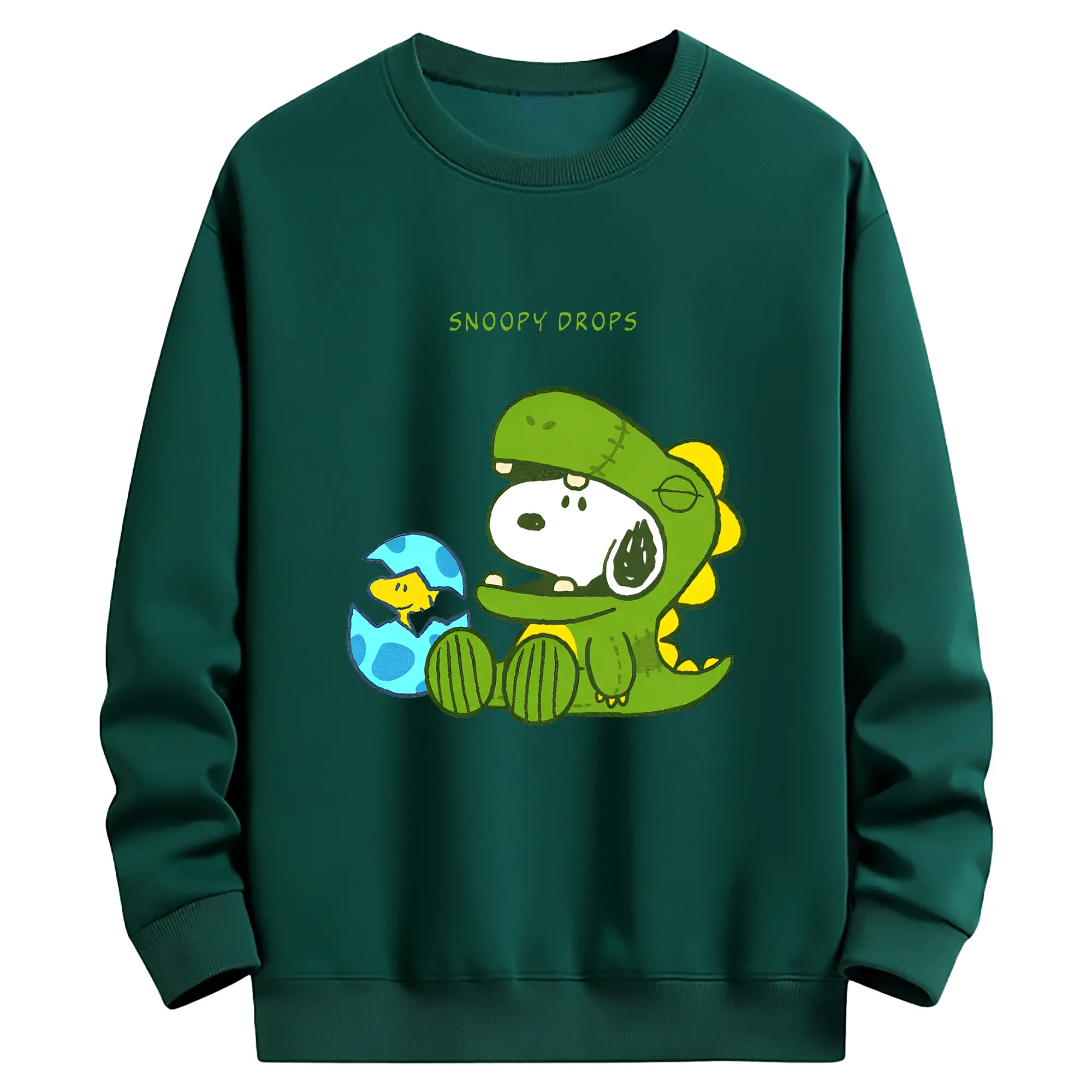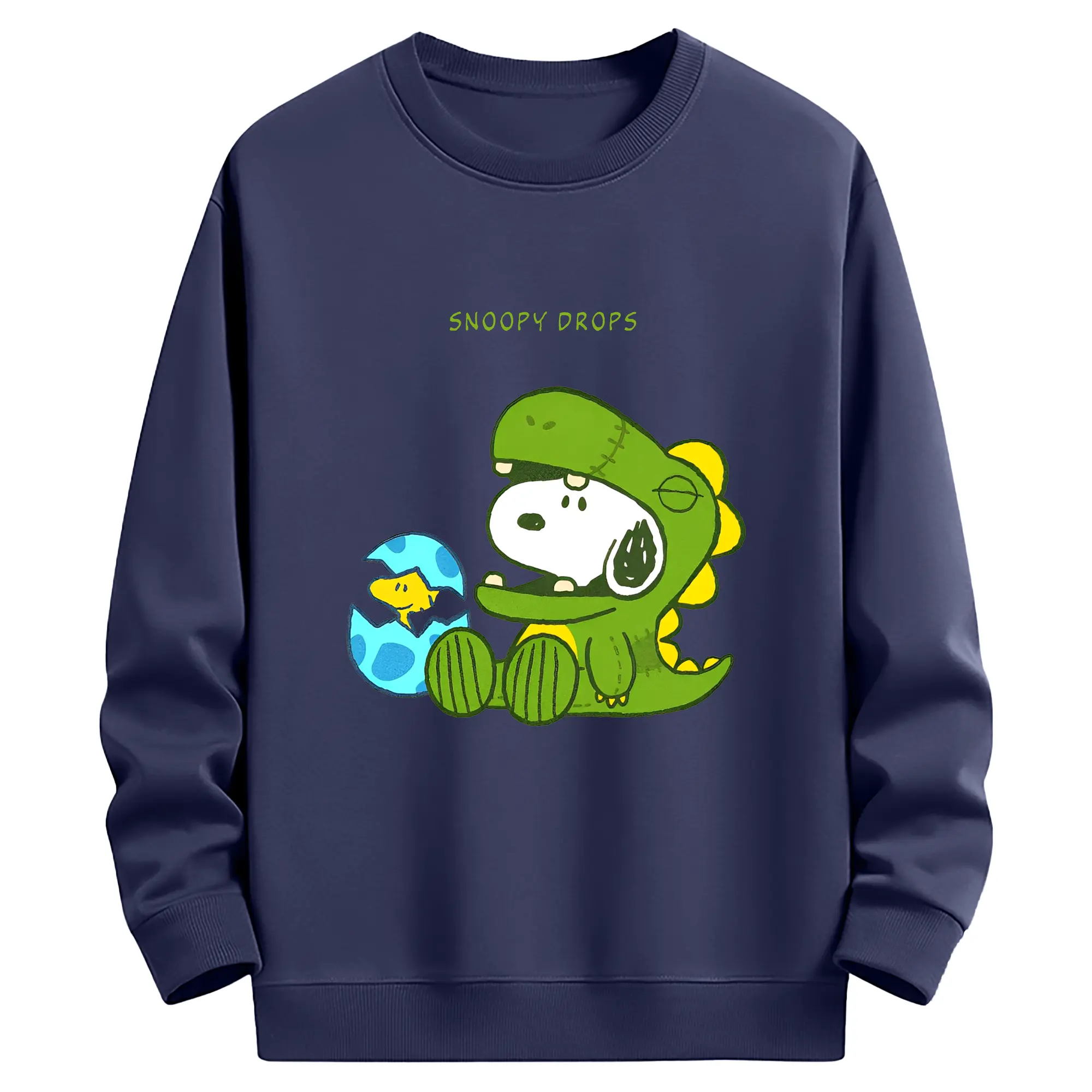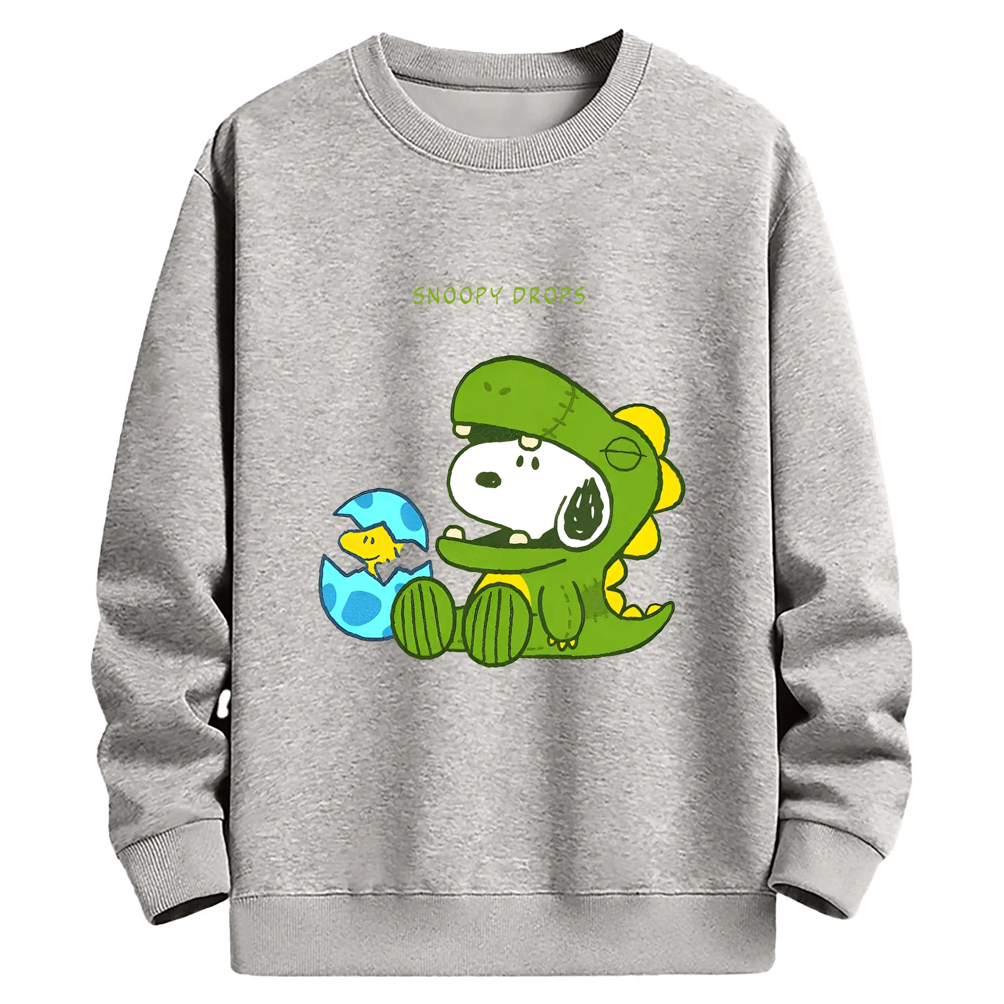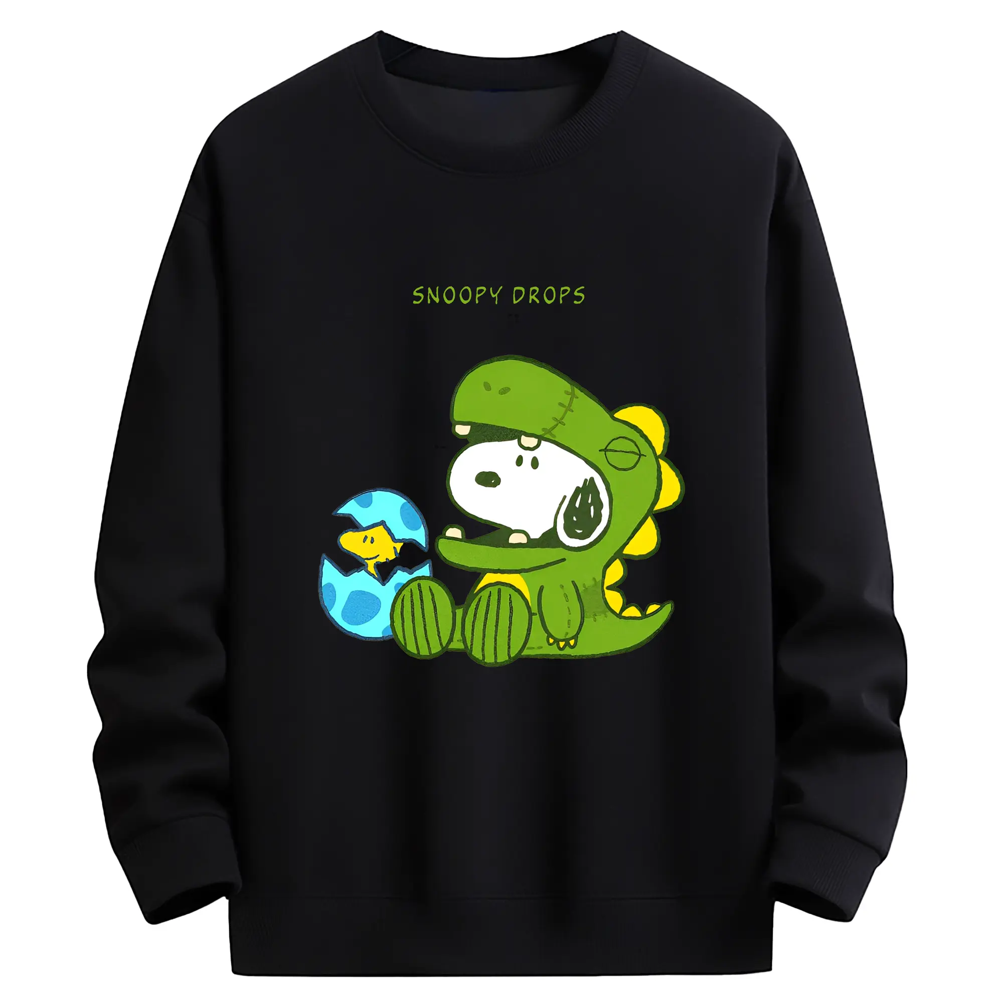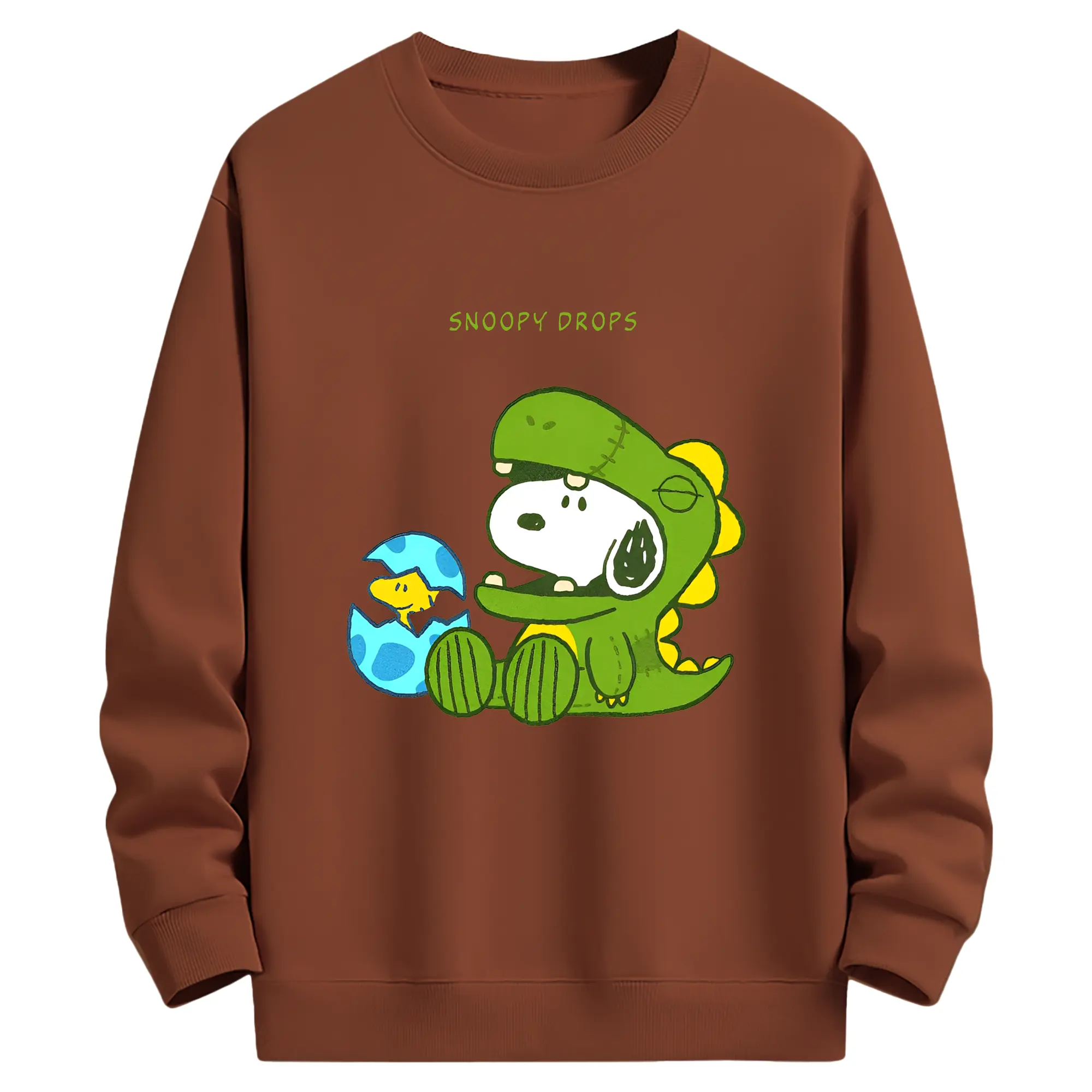 たまごから登場!ウッドストック&恐竜スヌーピー - 綿100% 半袖Tシャツ ・ フロントプリント ・ 快適 通気性 ・ 日常使い 散歩 スポーツ用