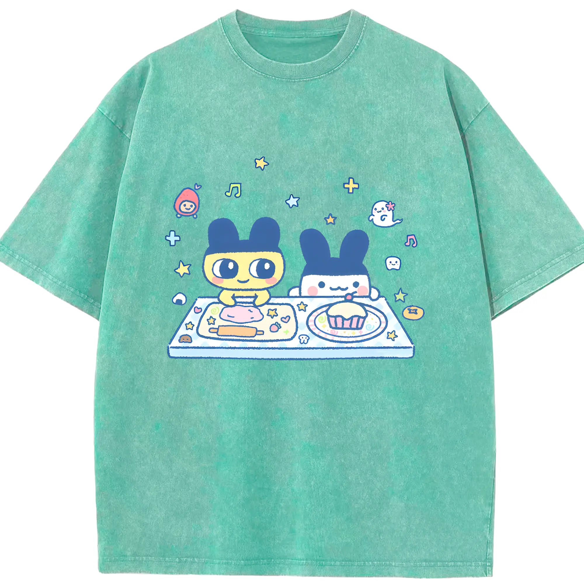 たまごっち × 懐かしアート 限定 - 綿100% 半袖Tシャツ ・ フロントプリント ・ 快適 通気性 ・ 日常使い 散歩 スポーツ用