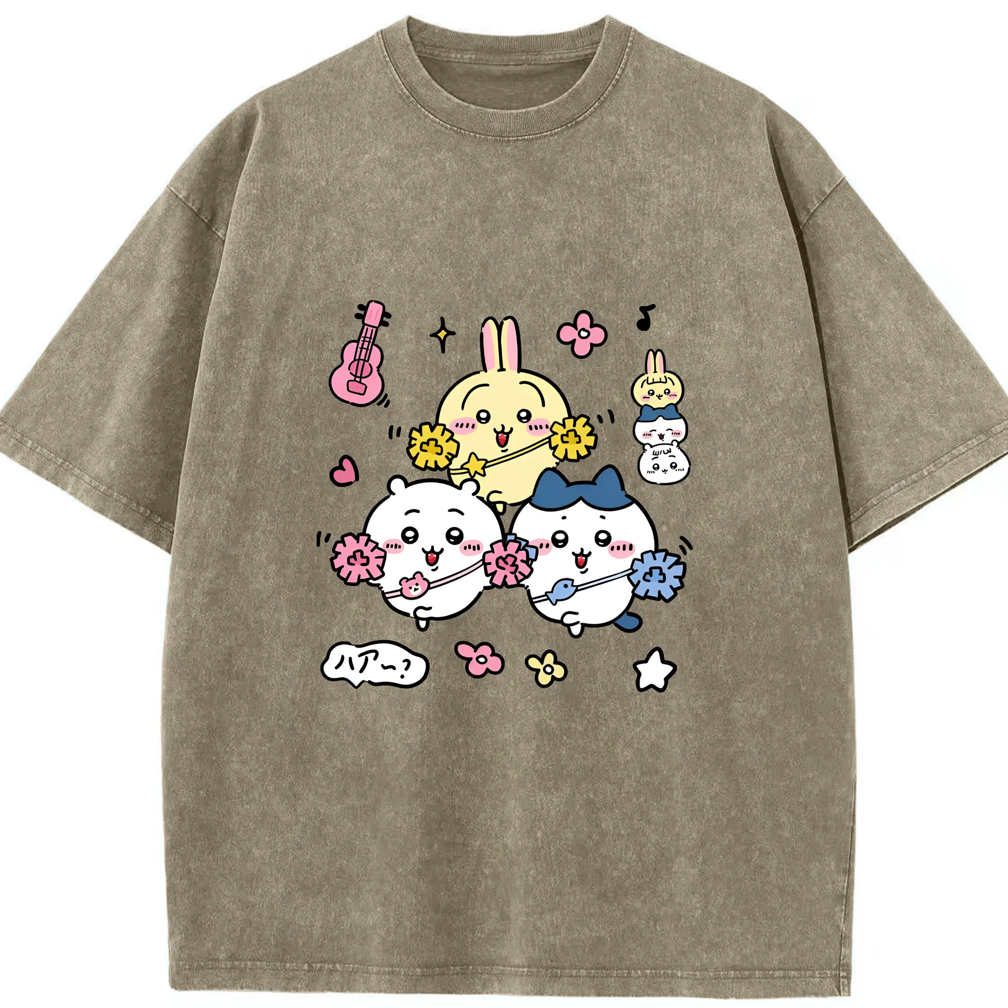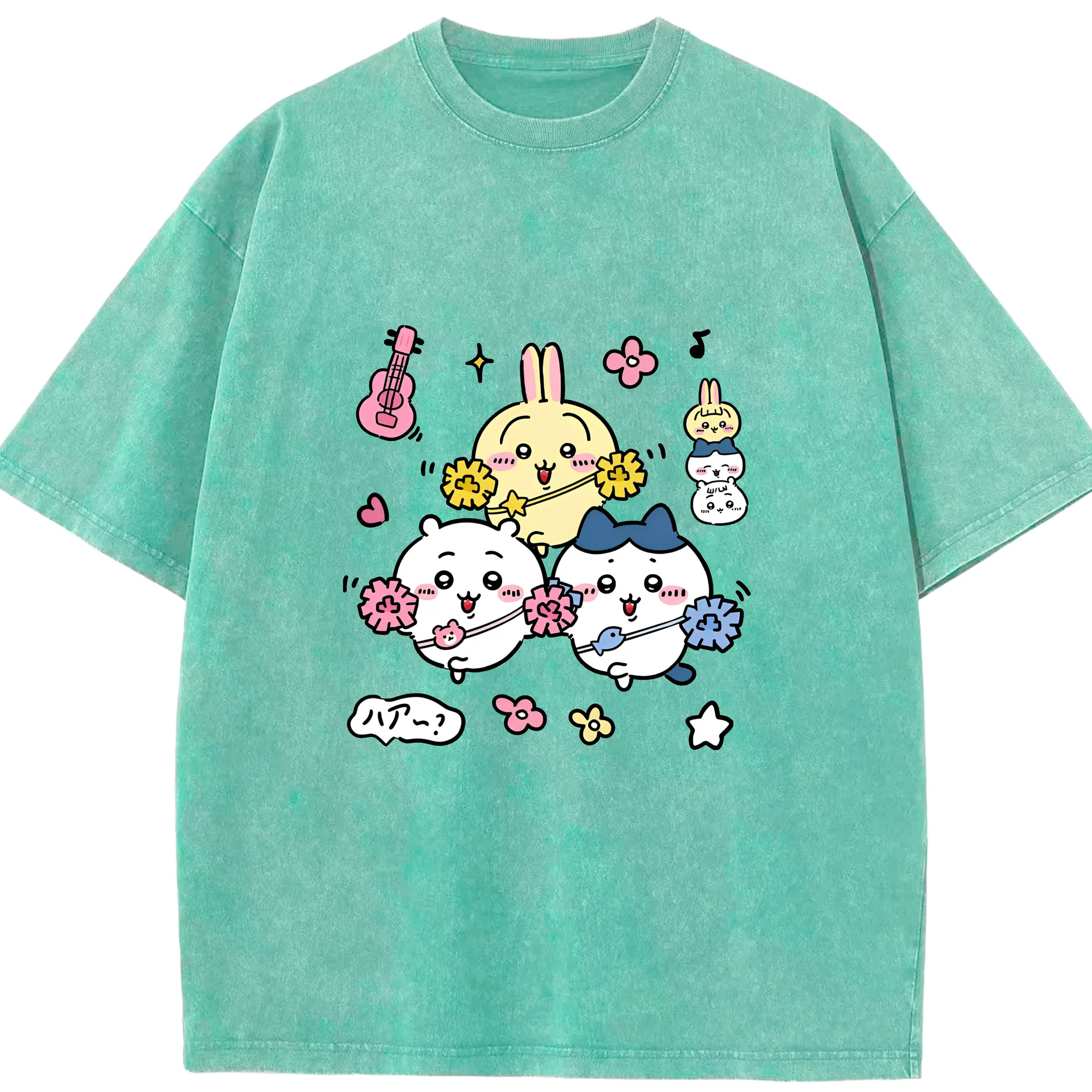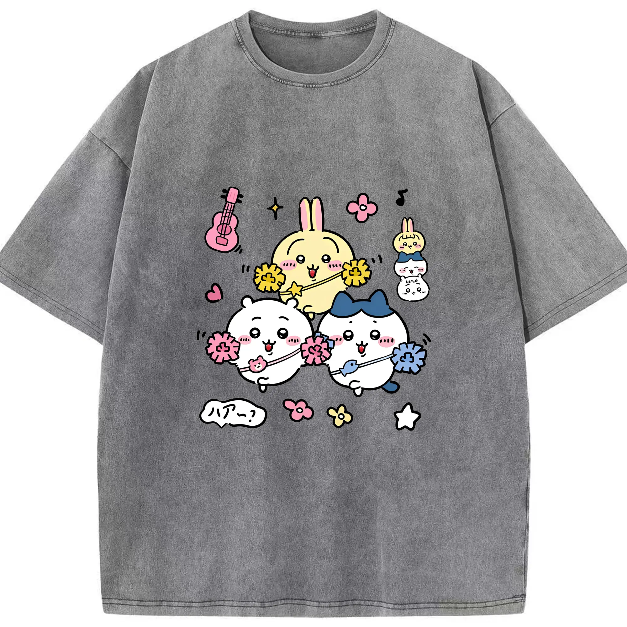 ちいかわお祭り応援 - 綿100% ヴィンテージ風 半袖Tシャツ ・ フロントプリント ・ 柔らか肌触り ・ 通気性 快適 ・ スポーツ カジュアル 外出用