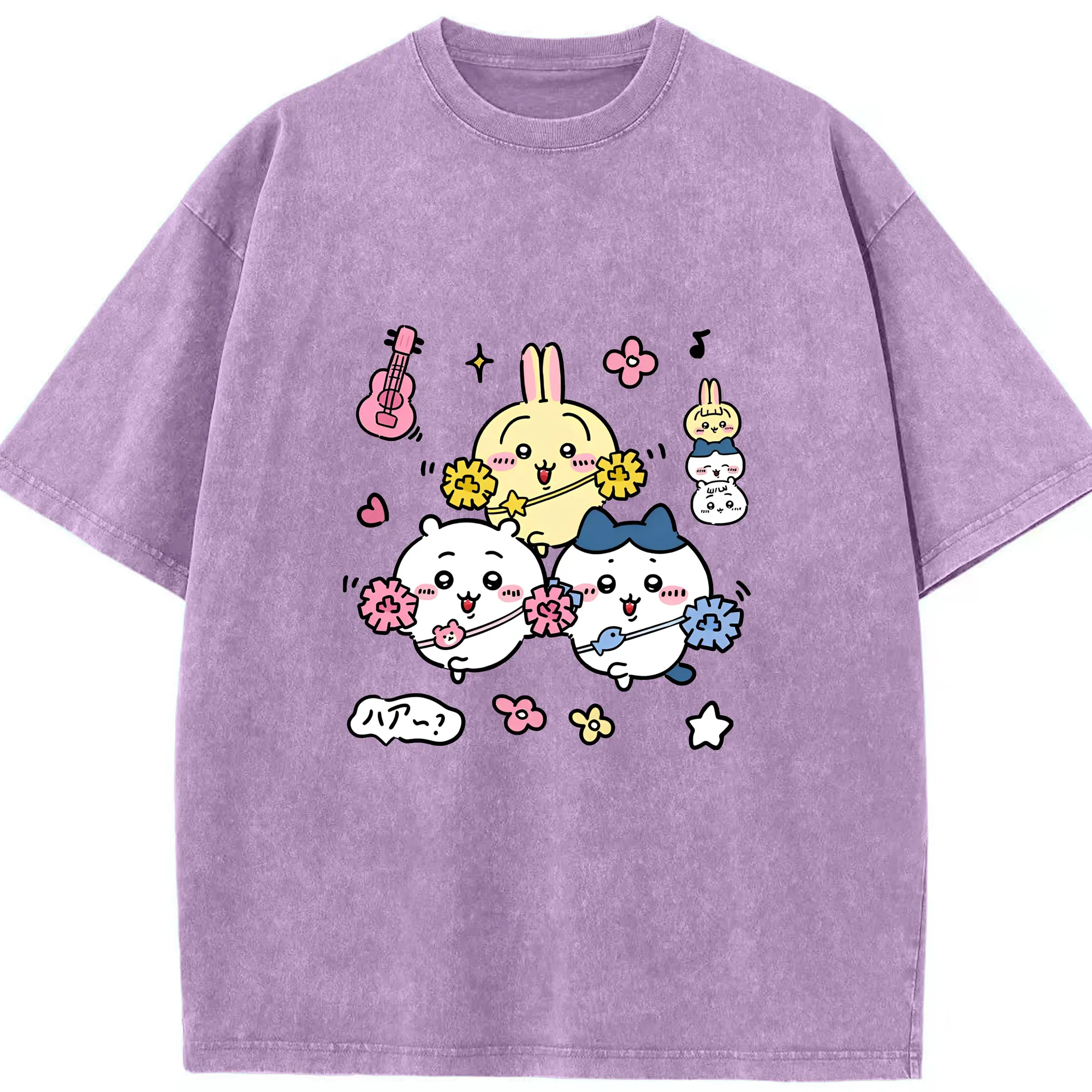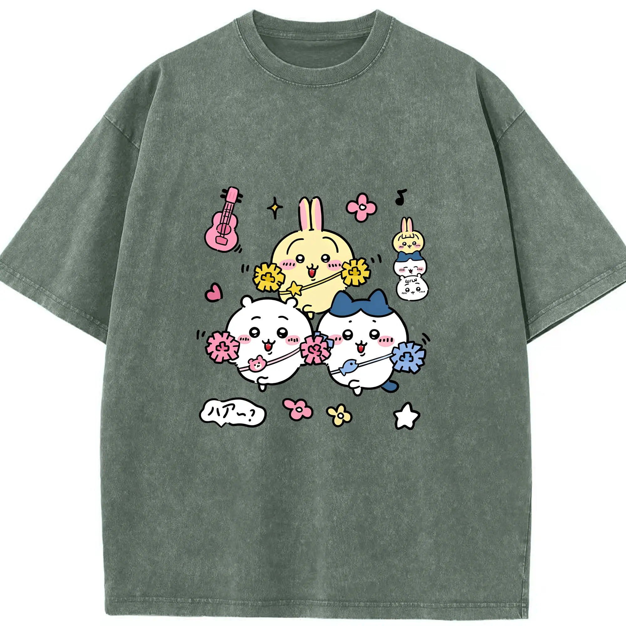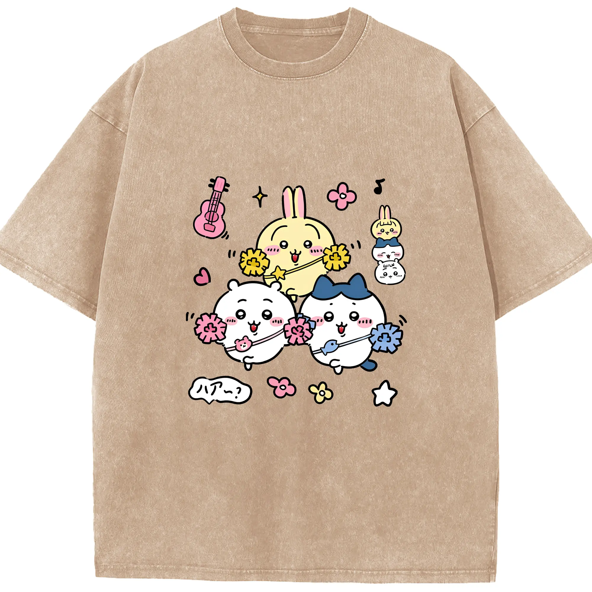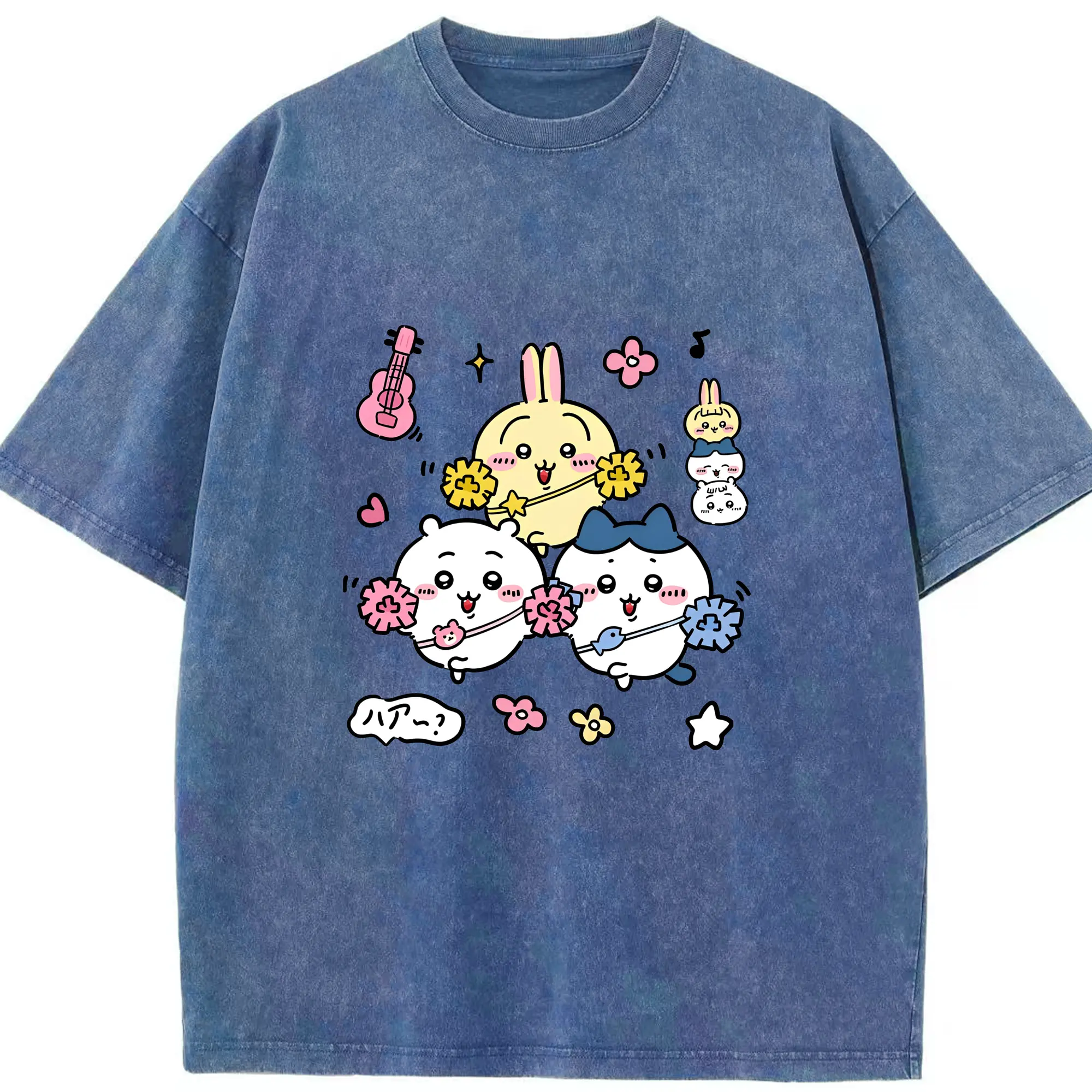 ちいかわお祭り応援 - 綿100% ヴィンテージ風 半袖Tシャツ ・ フロントプリント ・ 柔らか肌触り ・ 通気性 快適 ・ スポーツ カジュアル 外出用