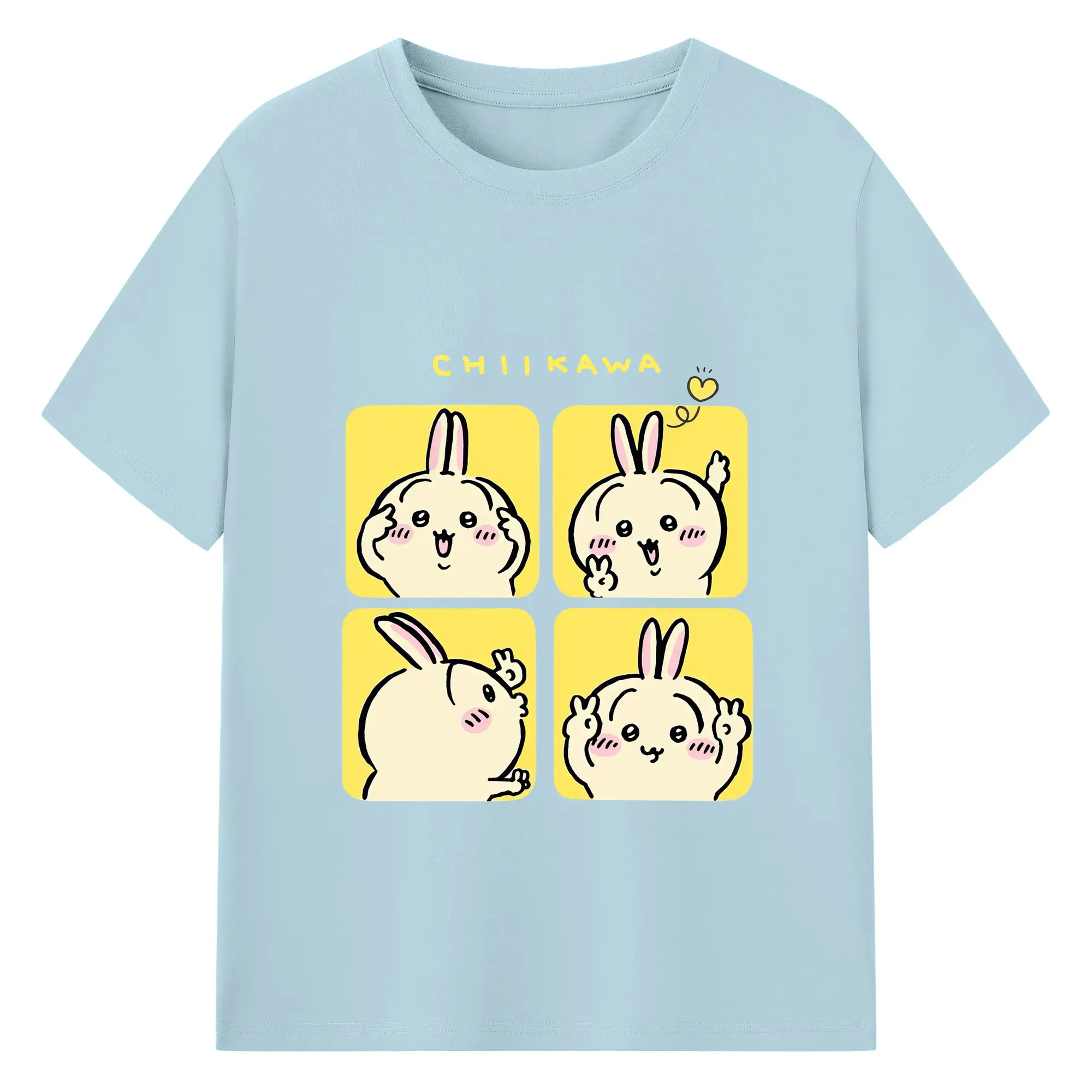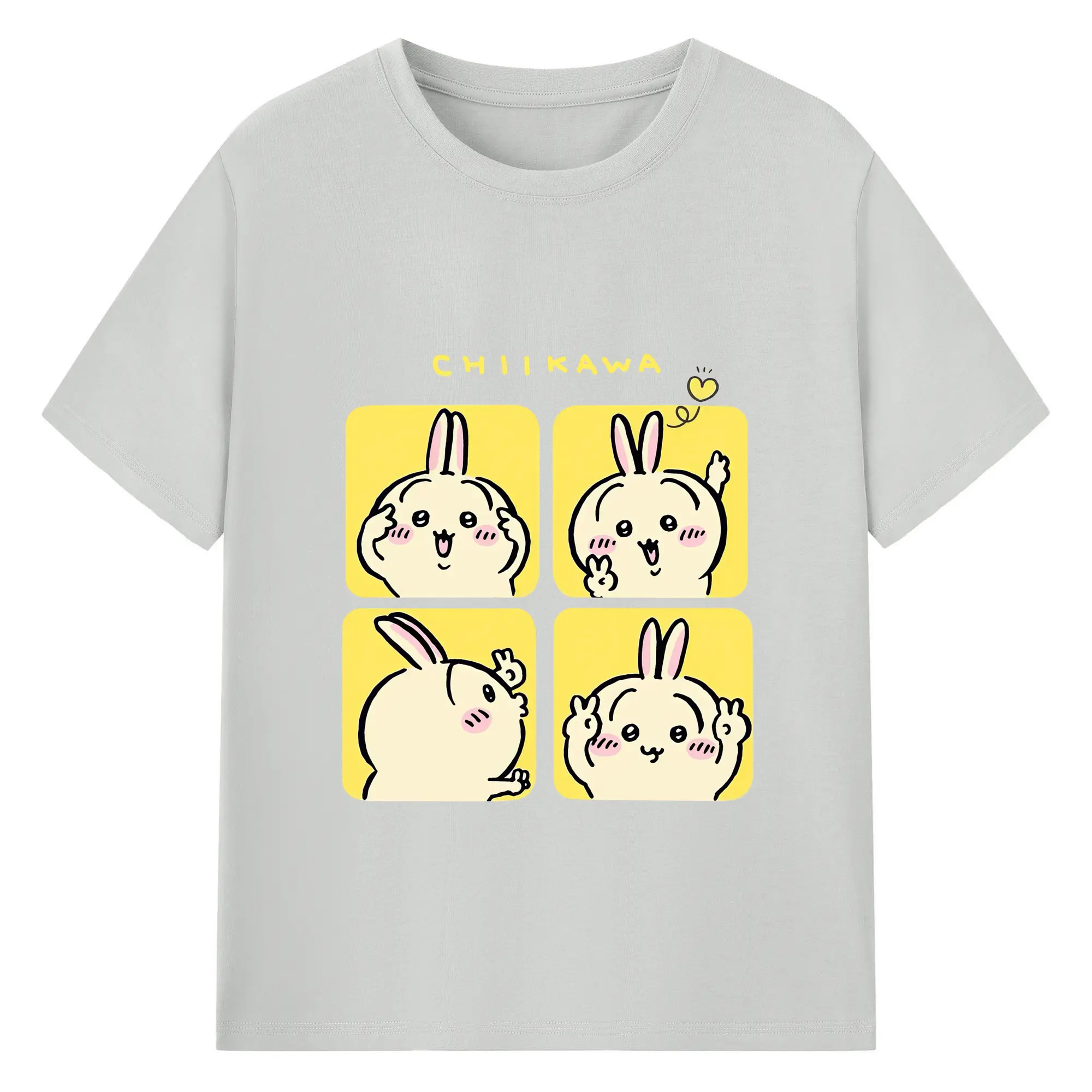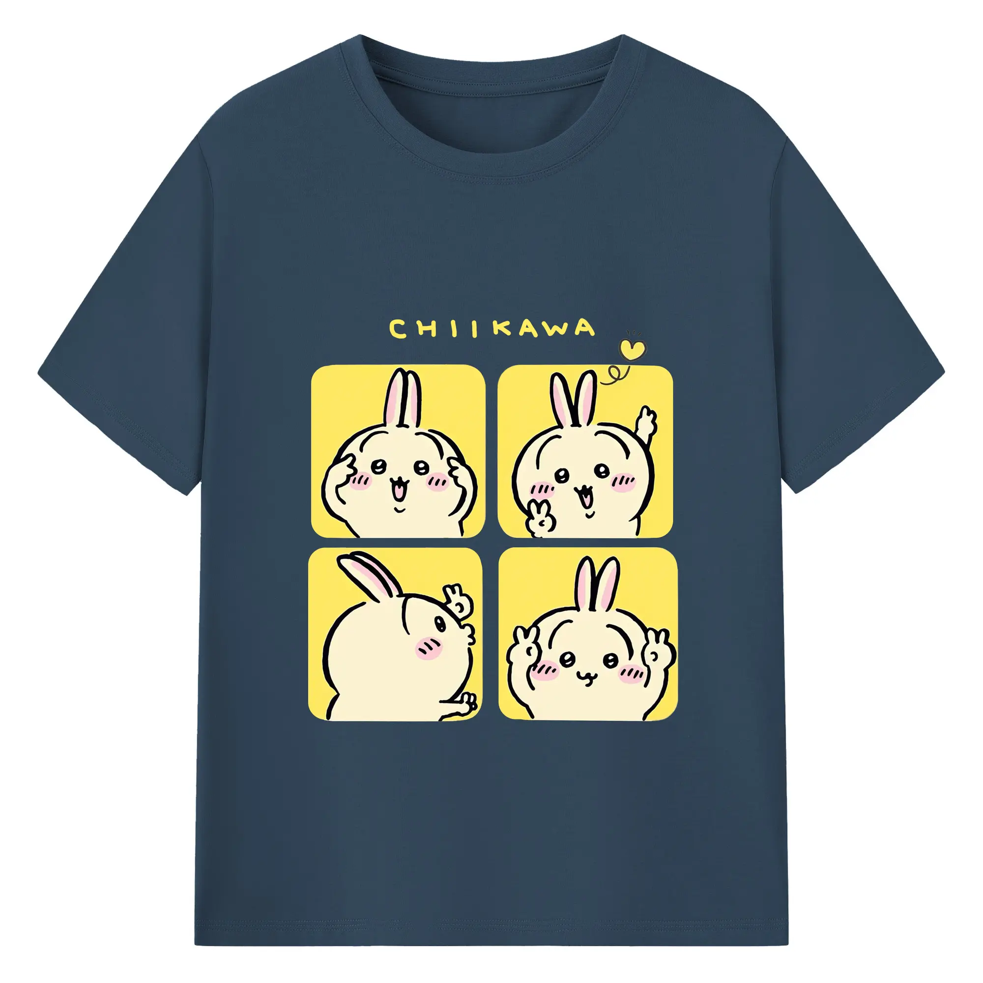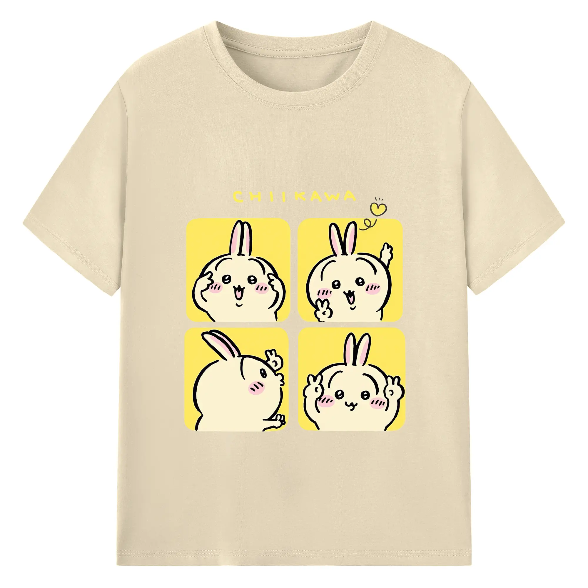 ちいかわのプリクラ - 綿100% ヴィンテージ風 半袖Tシャツ ・ フロントプリント ・ 柔らか肌触り ・ 通気性 快適 ・ スポーツ カジュアル 外出用