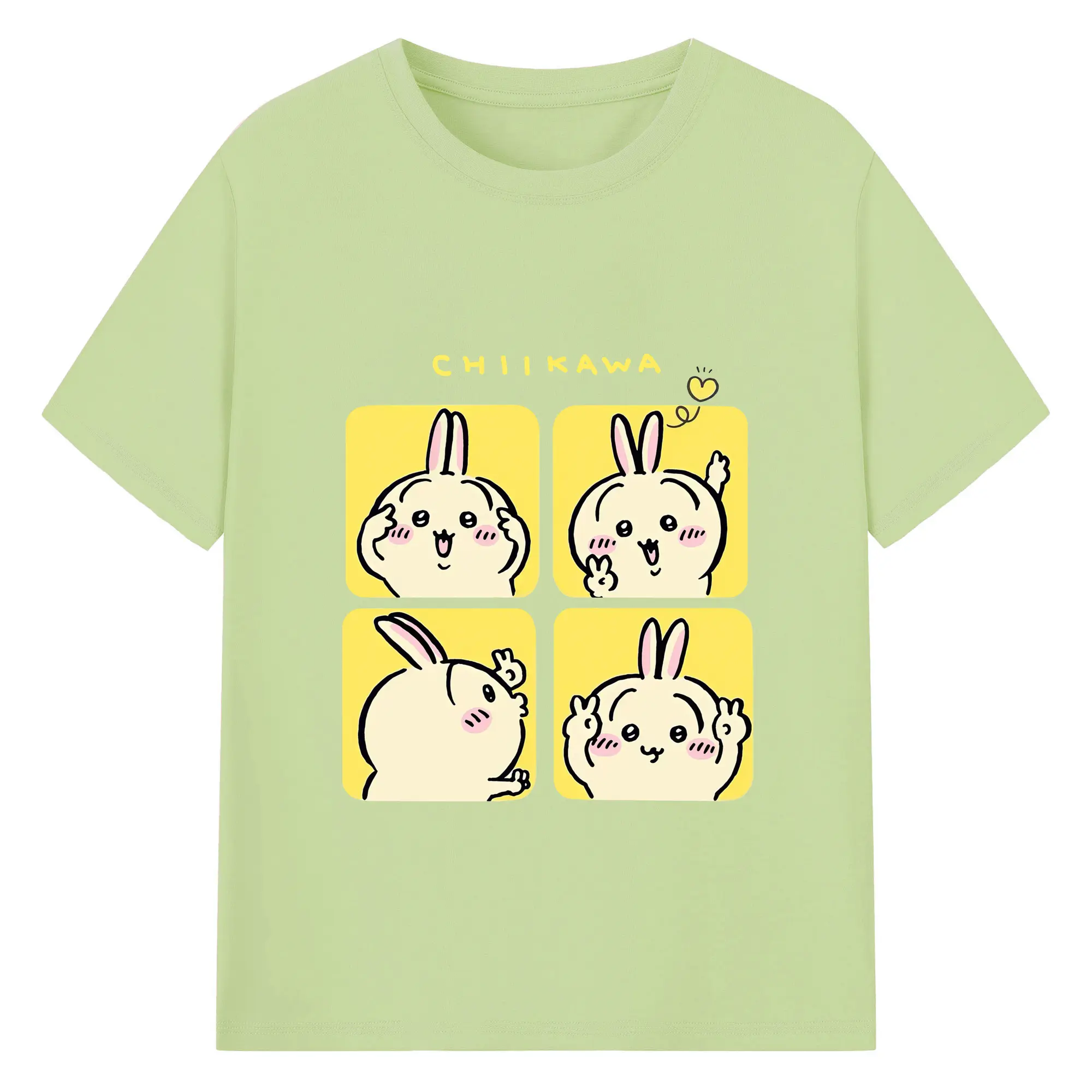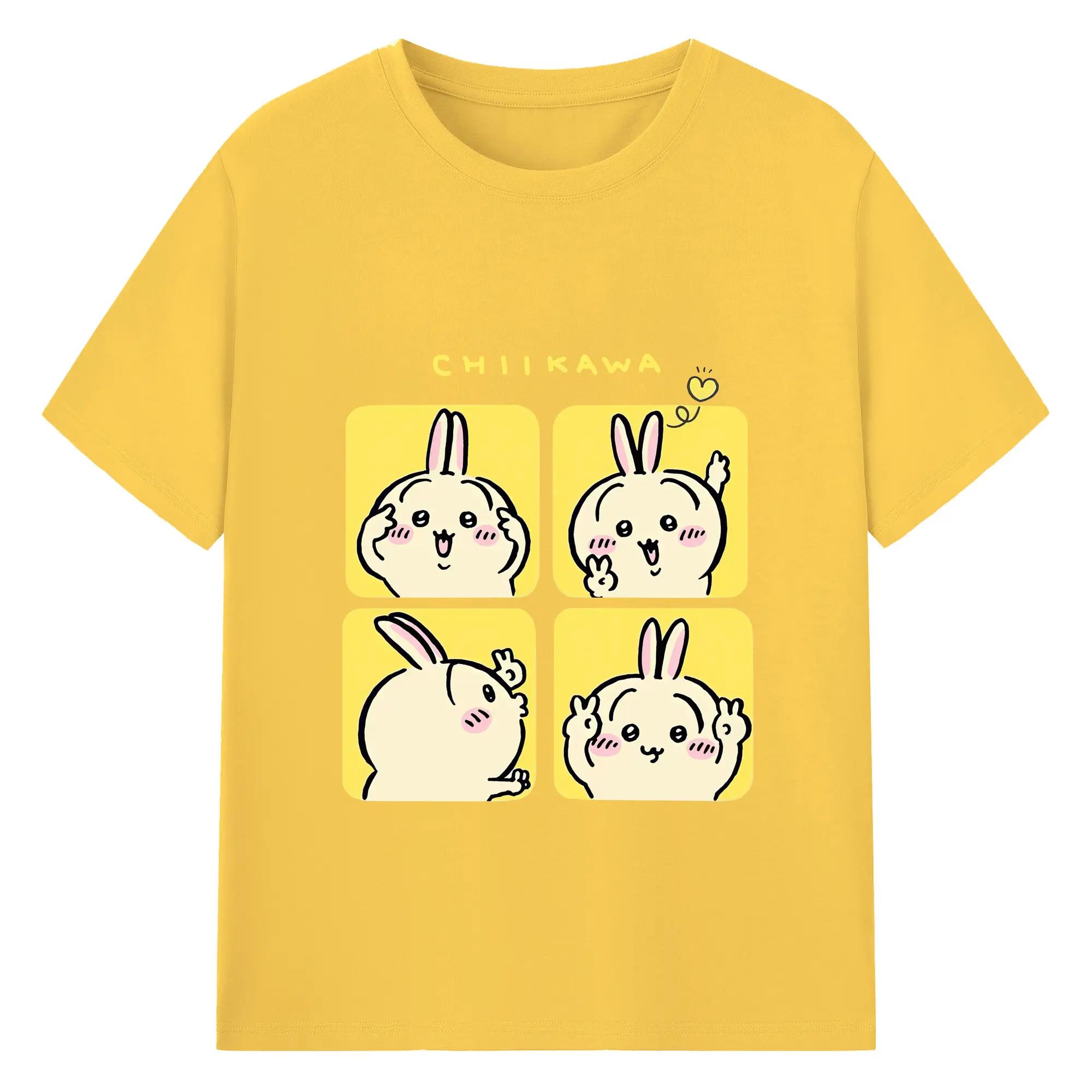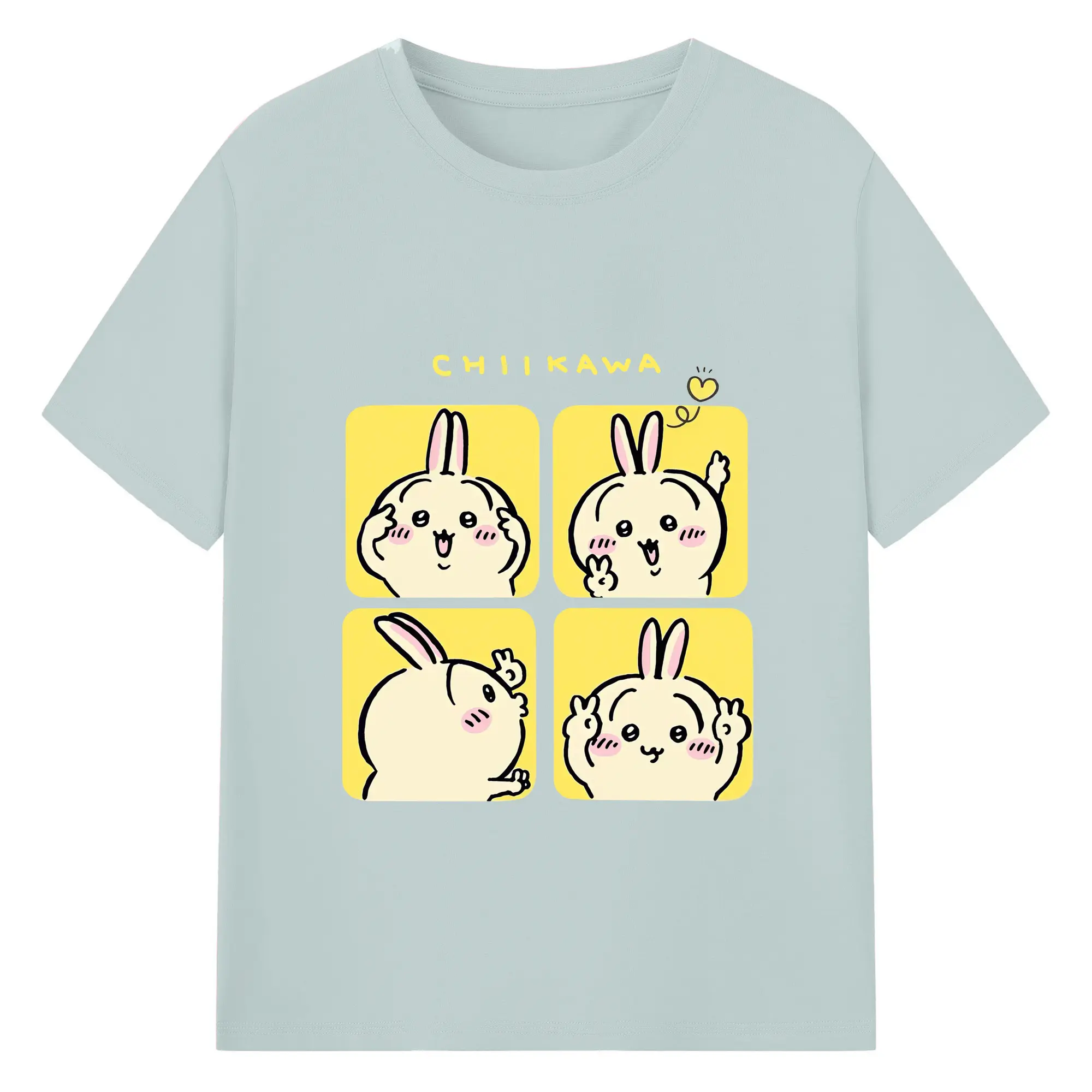 ちいかわのプリクラ - 綿100% ヴィンテージ風 半袖Tシャツ ・ フロントプリント ・ 柔らか肌触り ・ 通気性 快適 ・ スポーツ カジュアル 外出用
