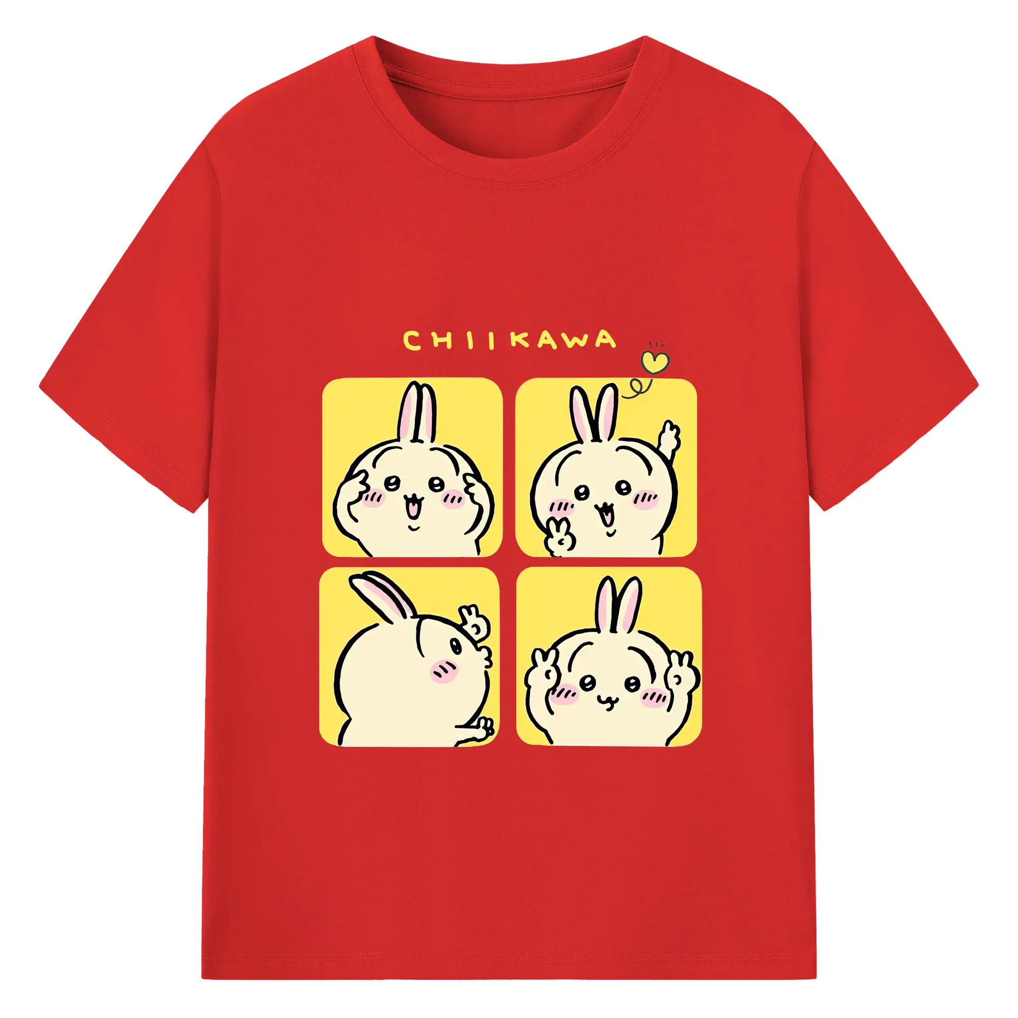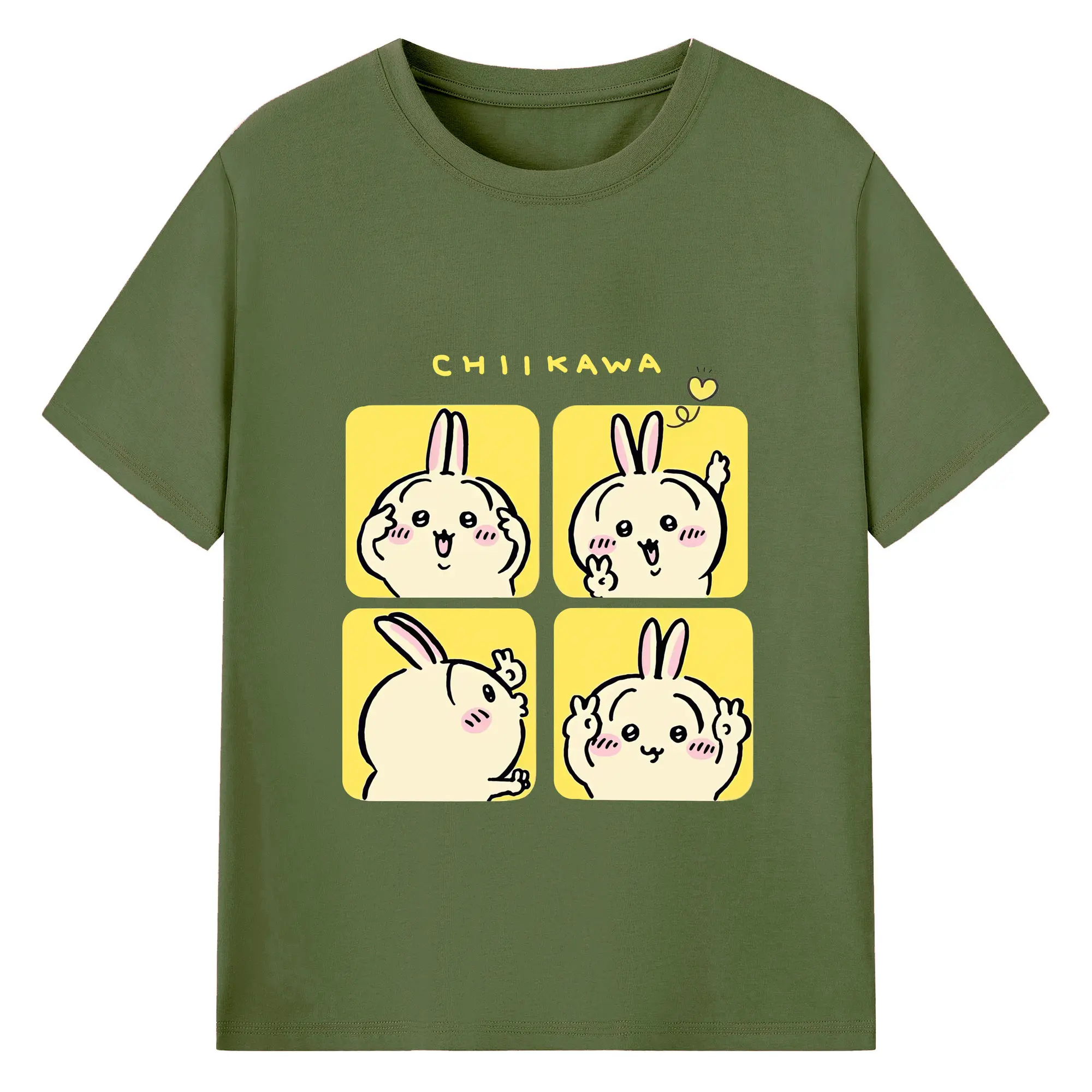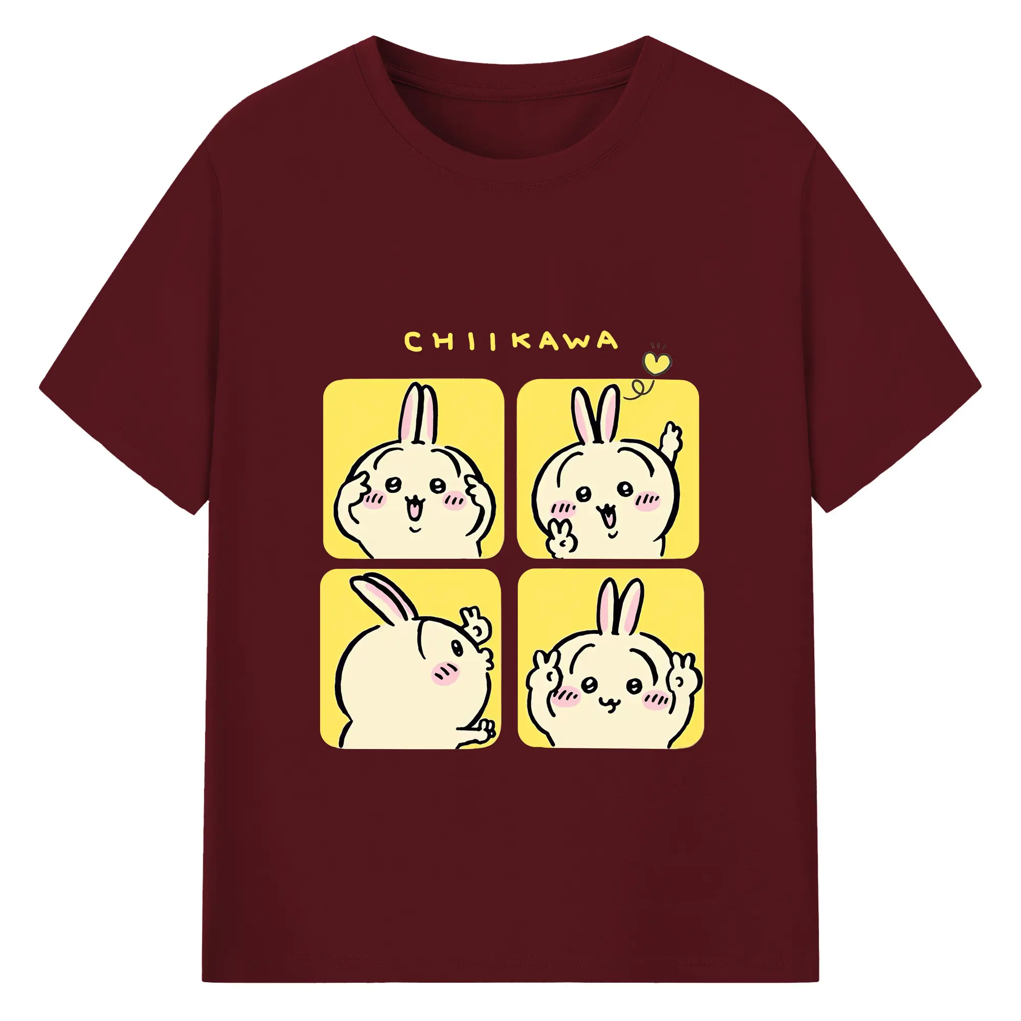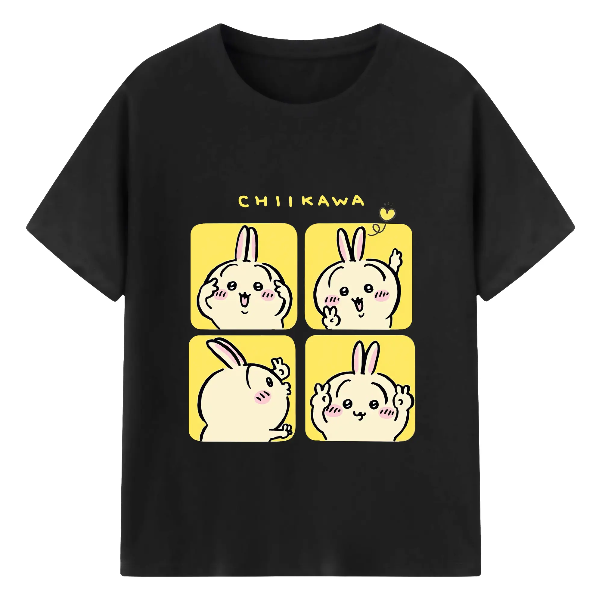 ちいかわのプリクラ - 綿100% ヴィンテージ風 半袖Tシャツ ・ フロントプリント ・ 柔らか肌触り ・ 通気性 快適 ・ スポーツ カジュアル 外出用