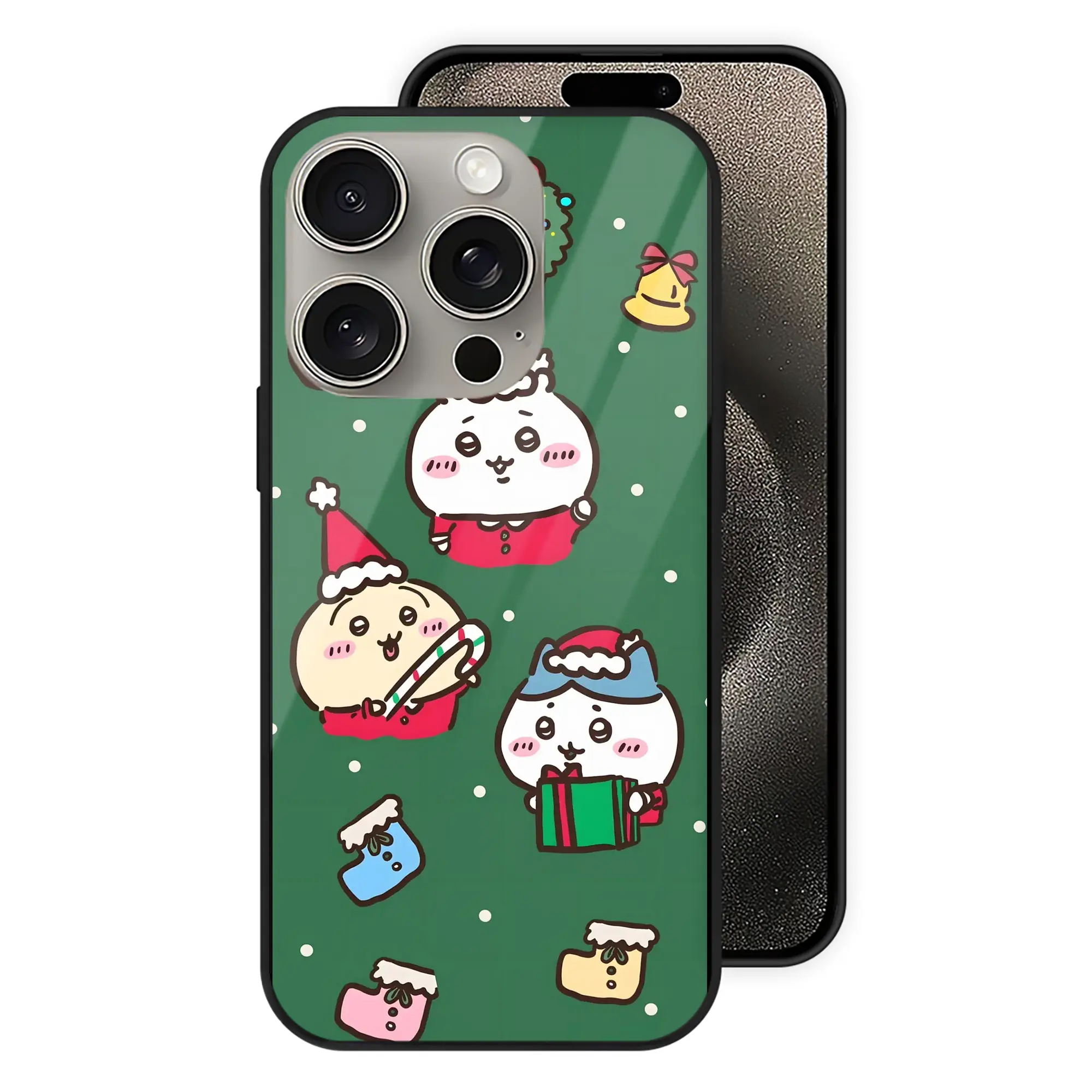 ちいかわクリスマス限定|冬新作・SNSで話題 - IPhone15Pro対応 ・ スマホケース ・ 背面ガラス ・ TPU+強化ガラス ・ 耐衝撃 ・ 黄変防止 ・ ワイヤレス充電対応 ・ 3D立体ボタン