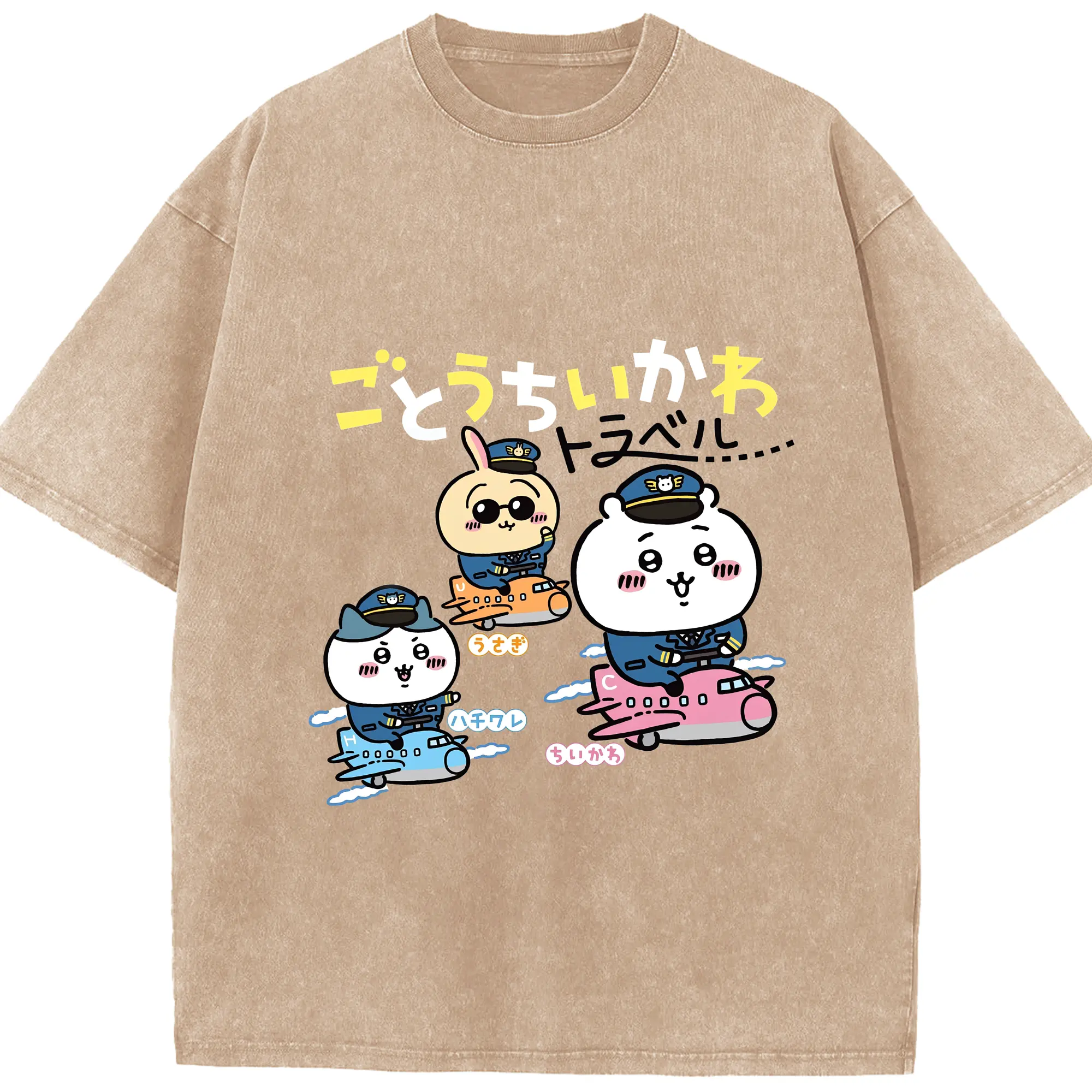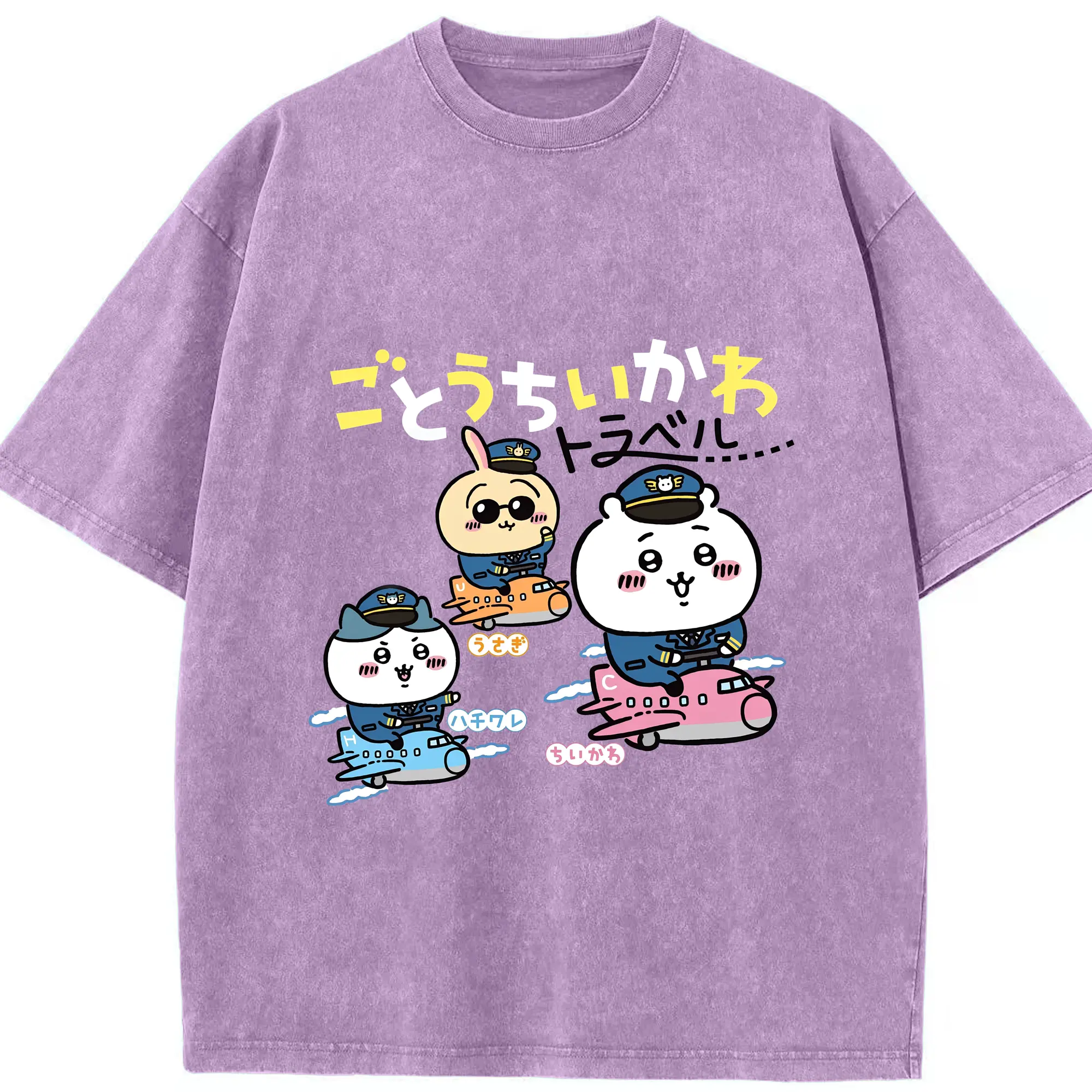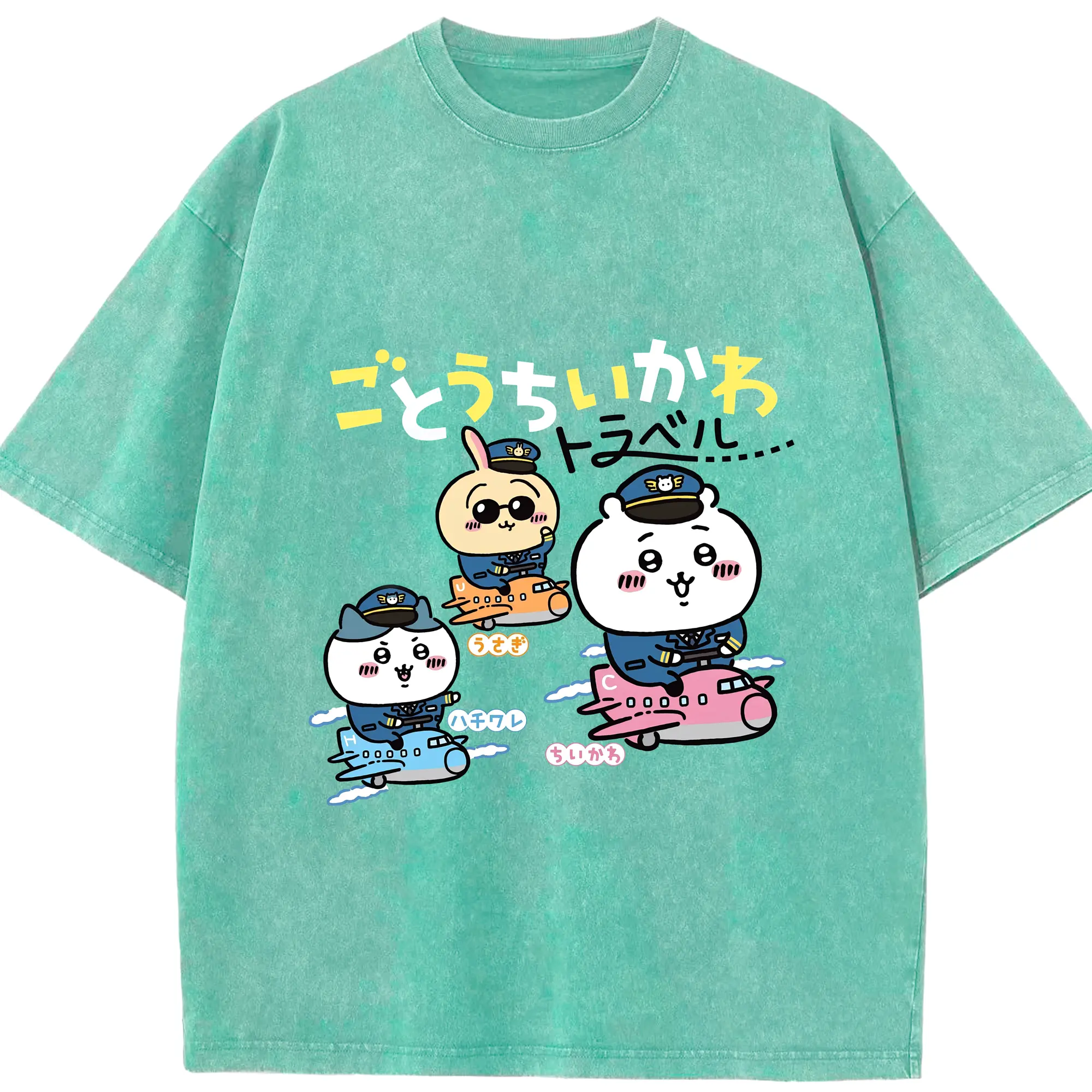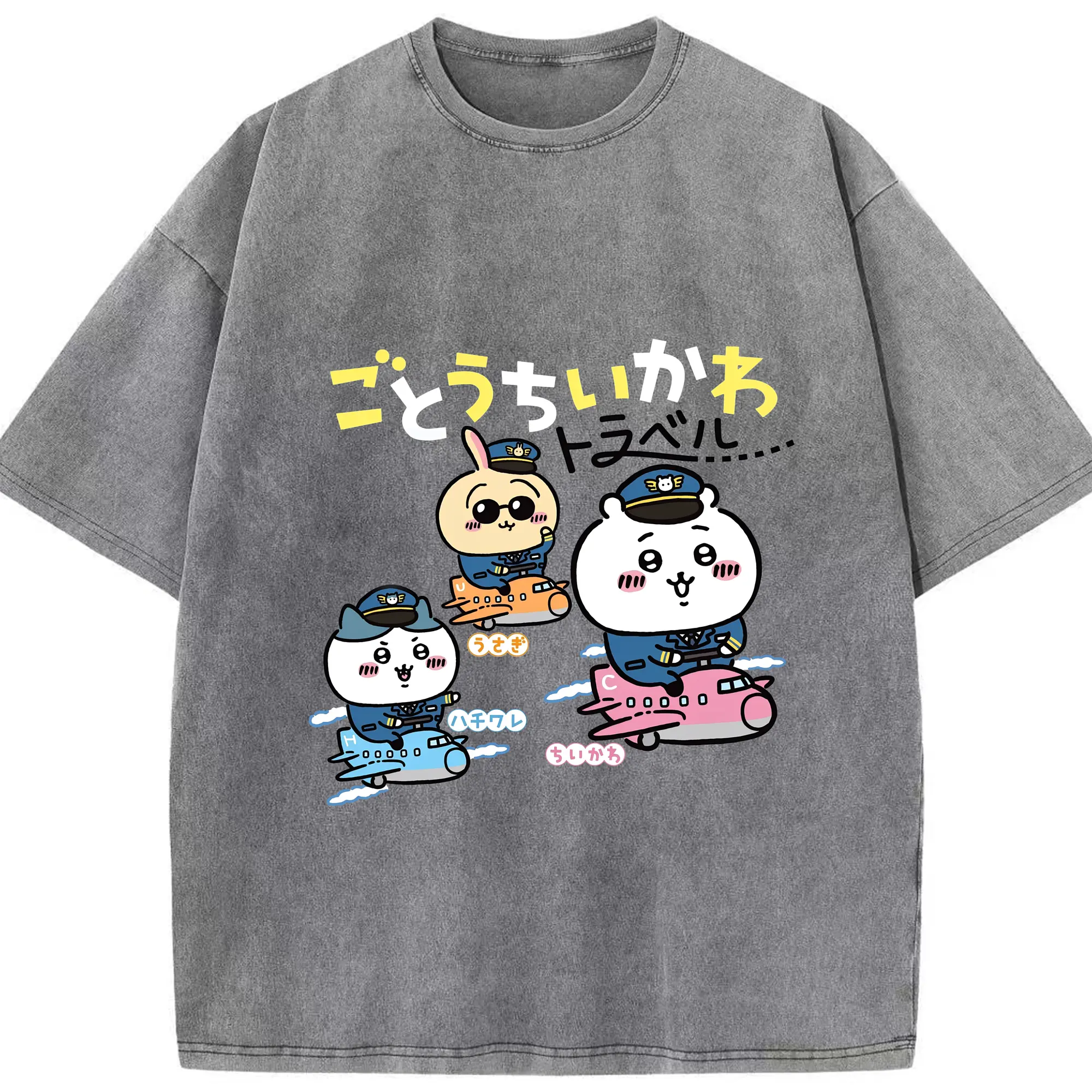 ちいかわトラベル - 綿100% 半袖Tシャツ ・ フロントプリント ・ 快適 通気性 ・ 日常使い 散歩 スポーツ用