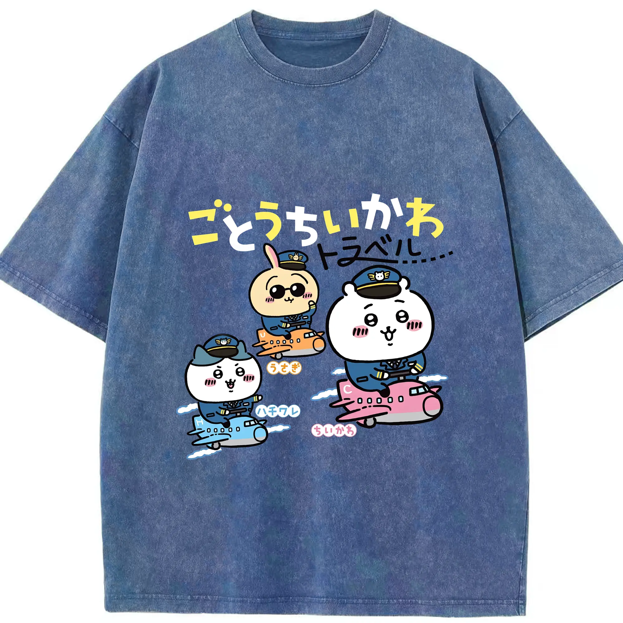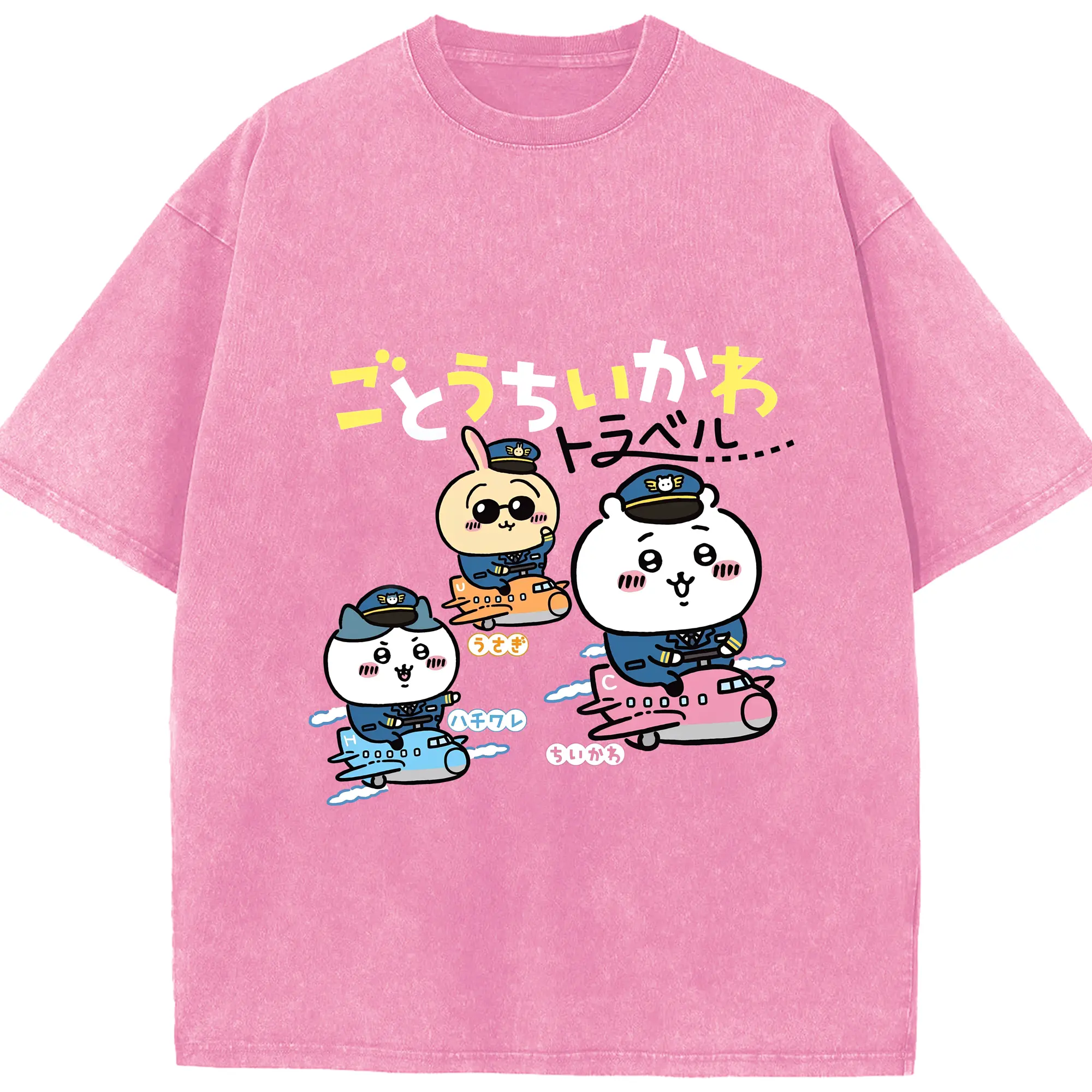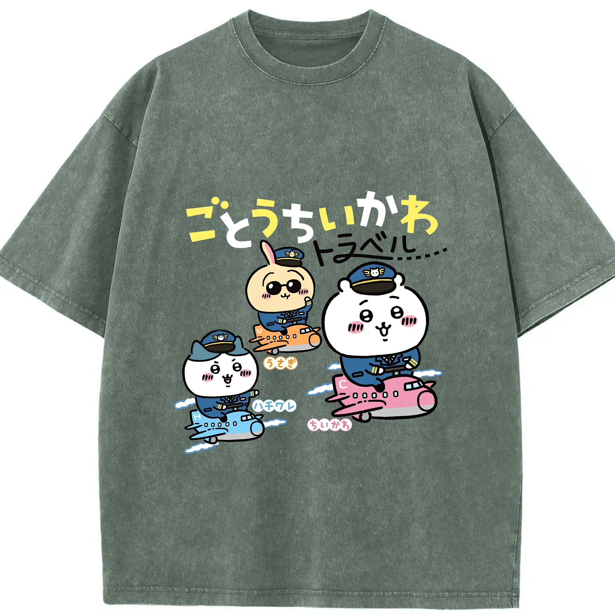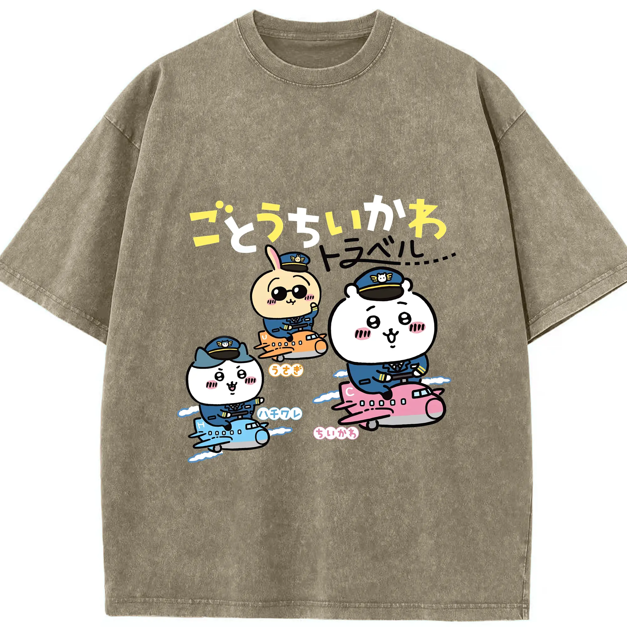 ちいかわトラベル - 綿100% 半袖Tシャツ ・ フロントプリント ・ 快適 通気性 ・ 日常使い 散歩 スポーツ用