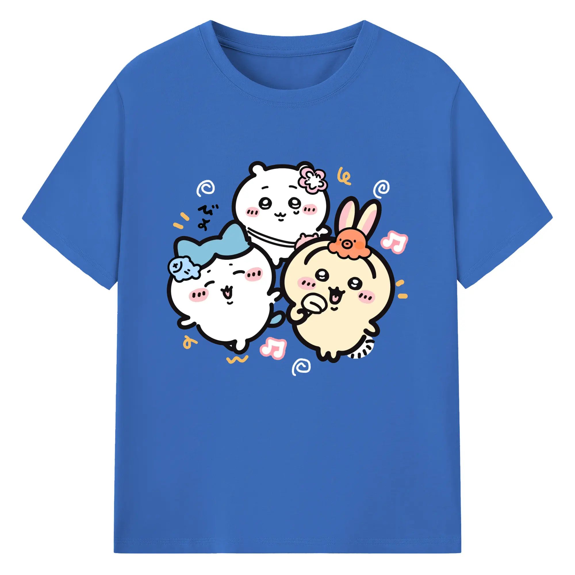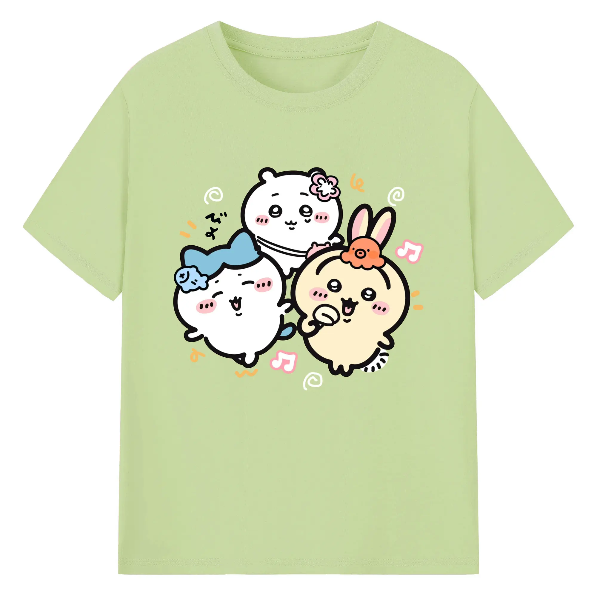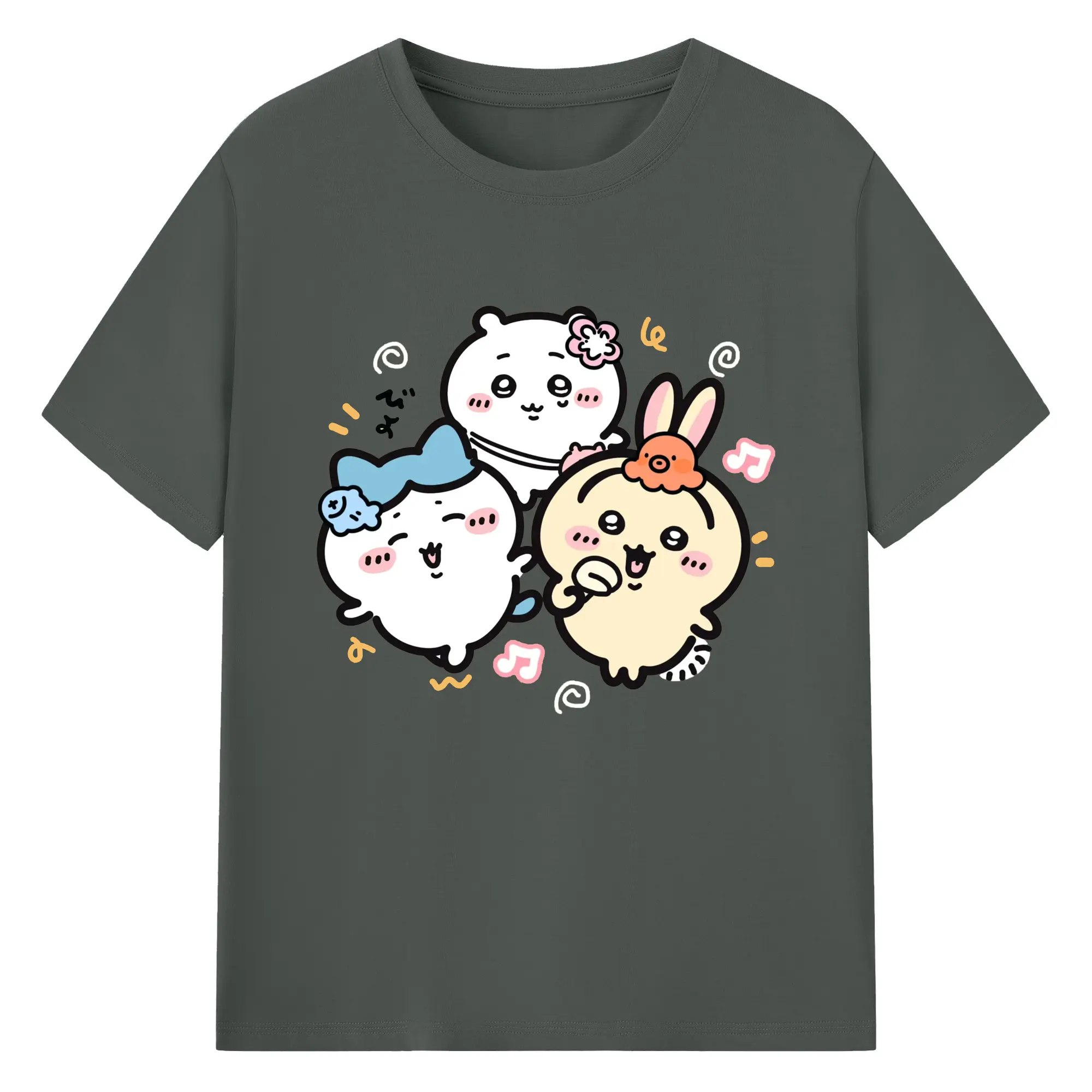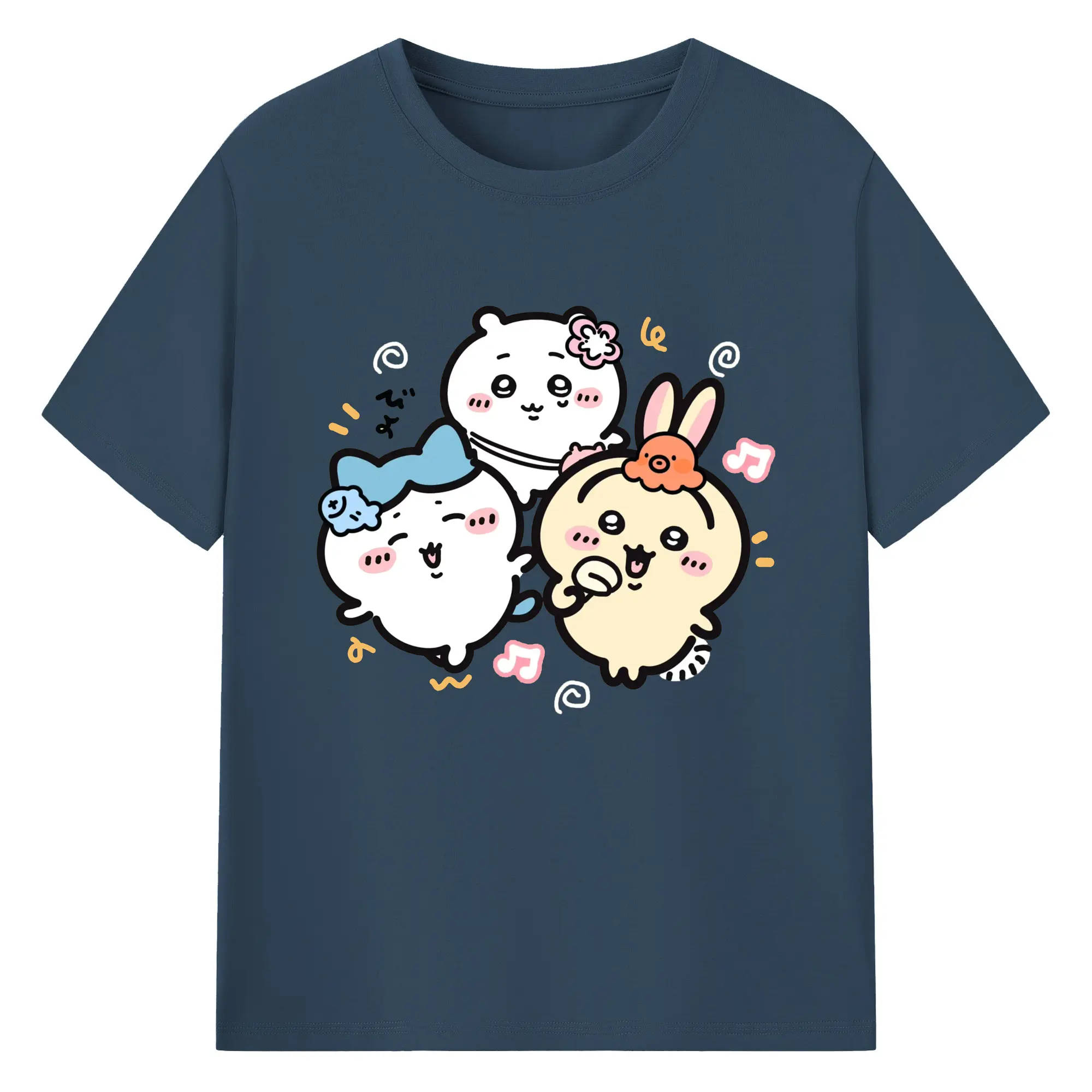 ちいかわ可愛い限定 - 綿100% ヴィンテージ風 半袖Tシャツ ・ フロントプリント ・ 柔らか肌触り ・ 通気性 快適 ・ スポーツ カジュアル 外出用