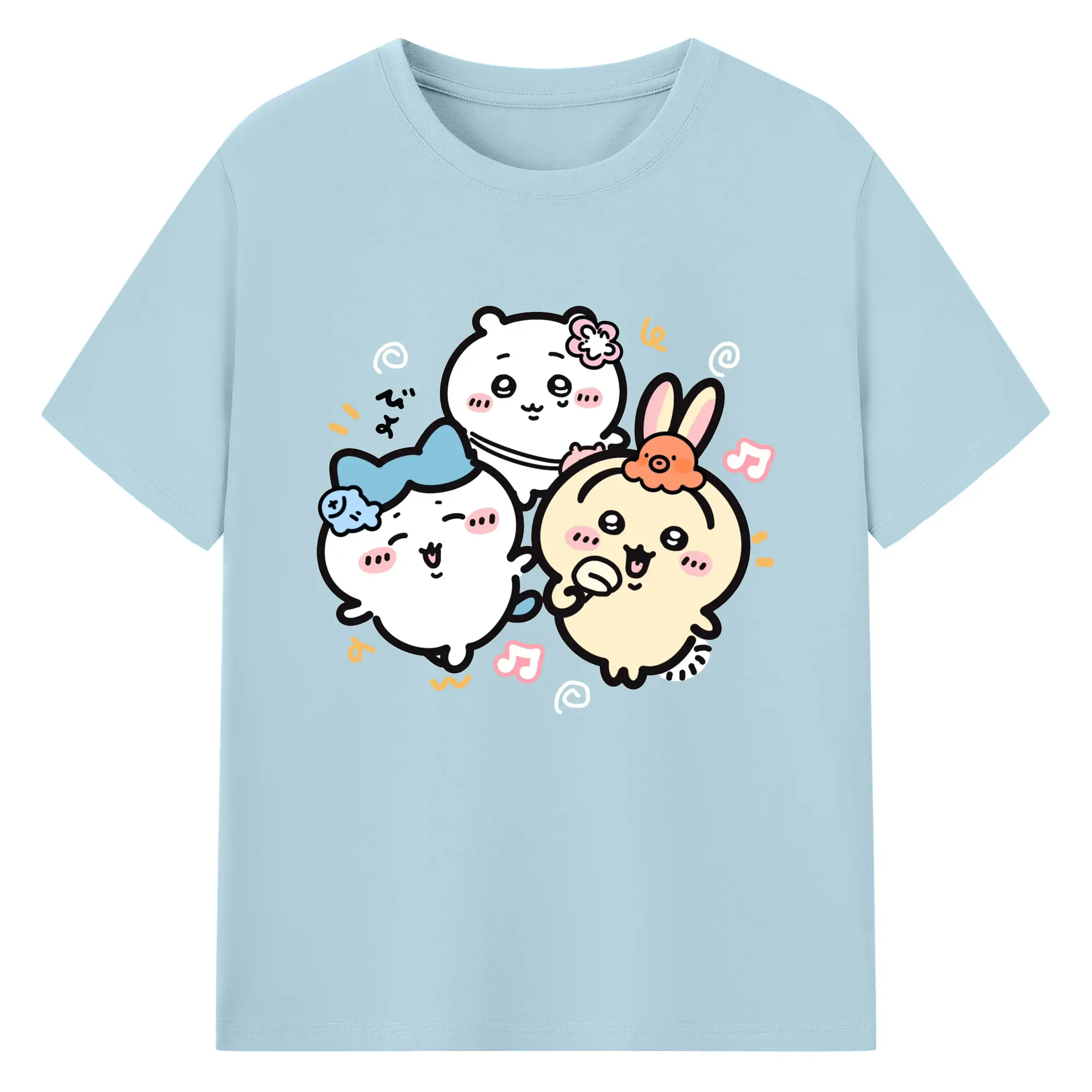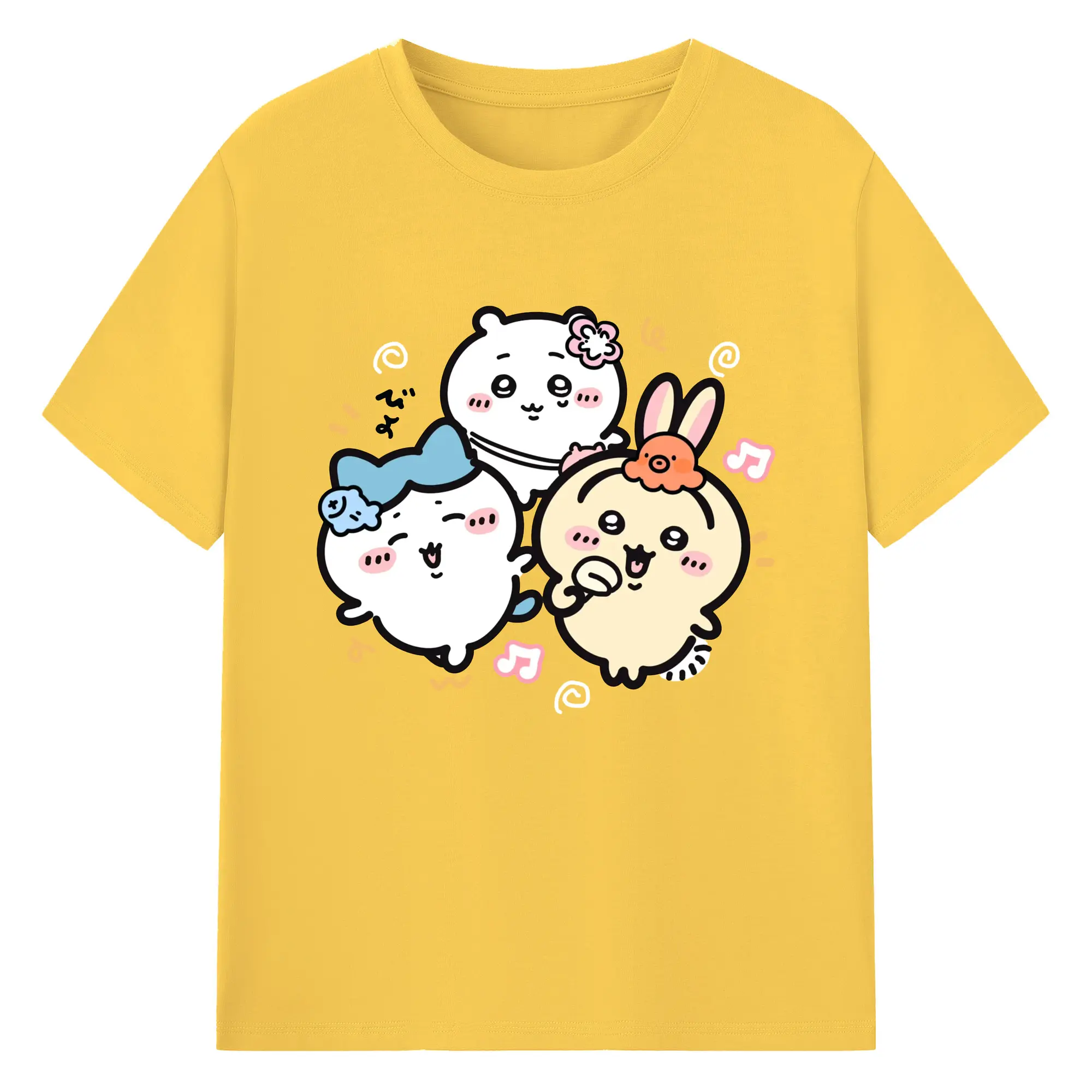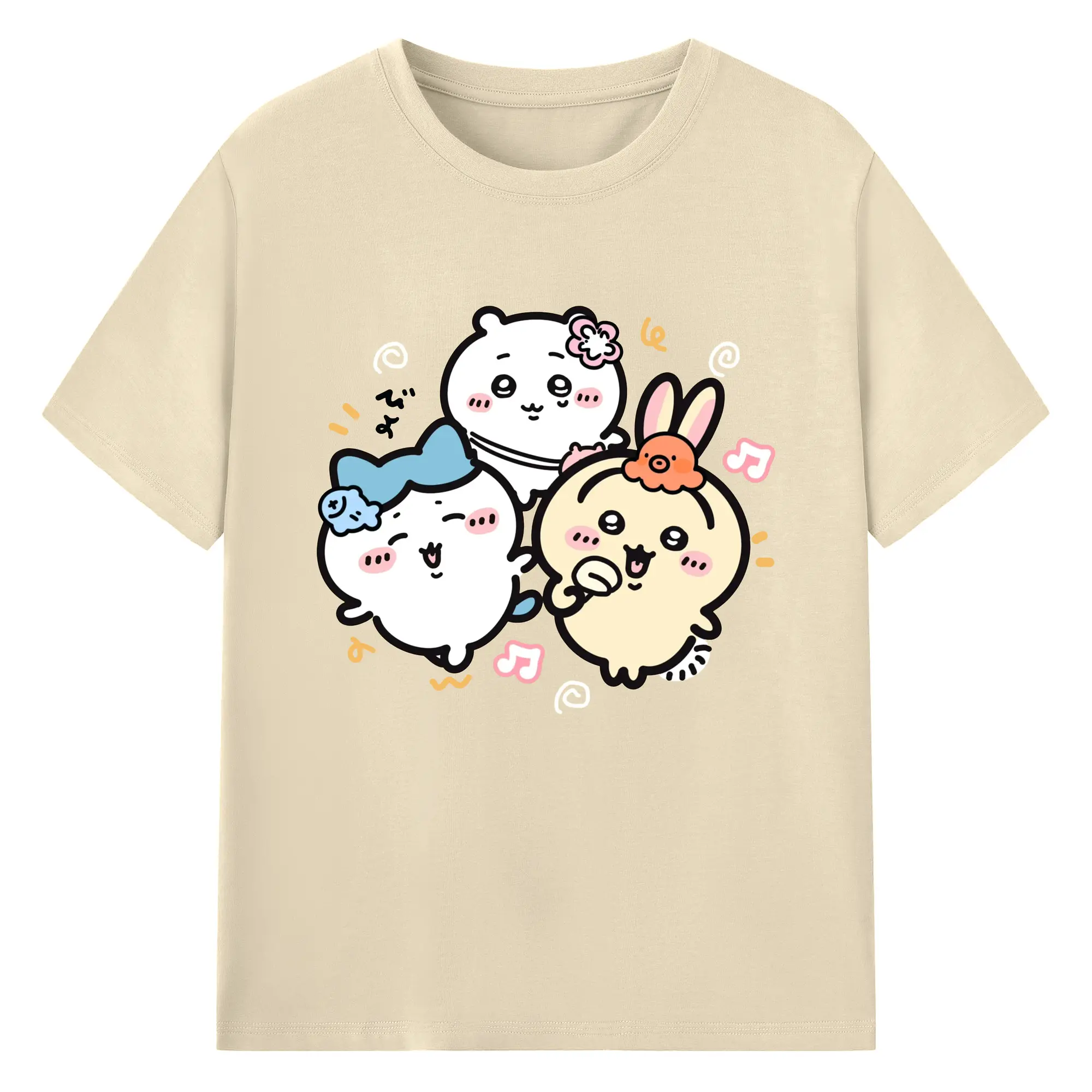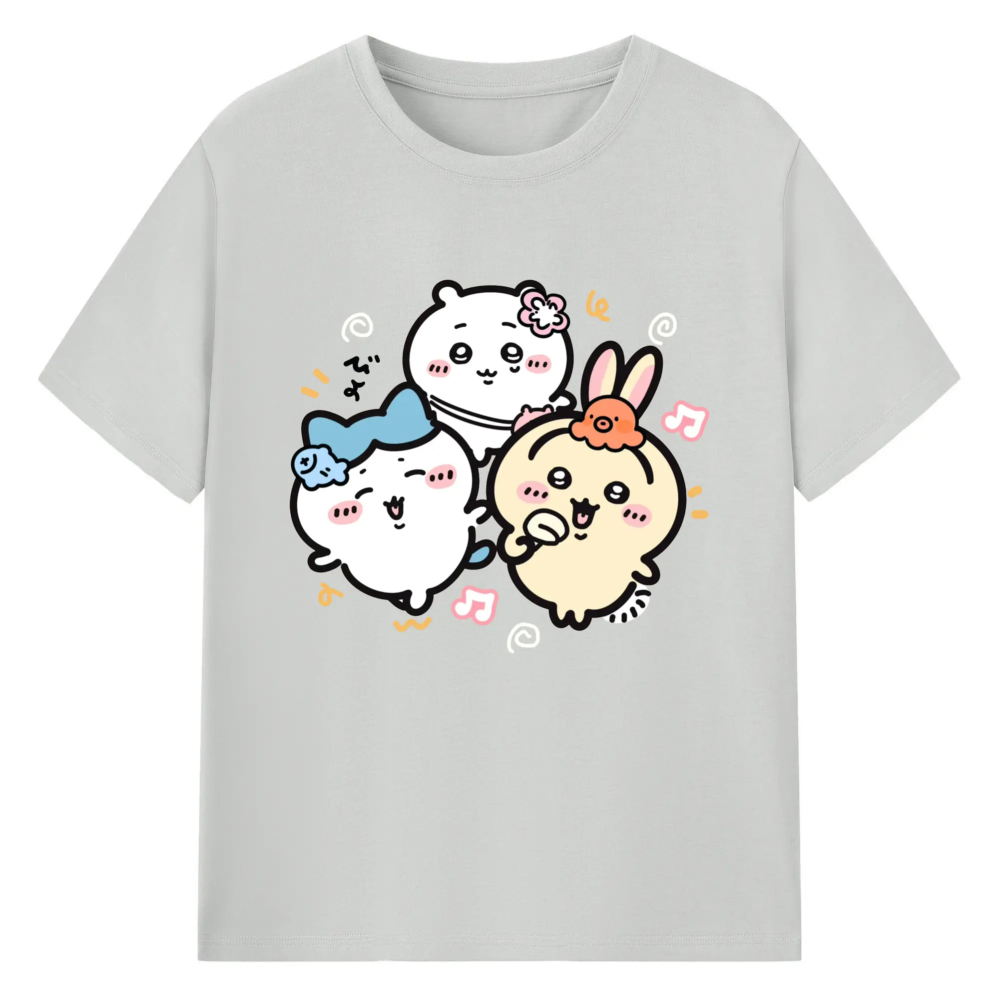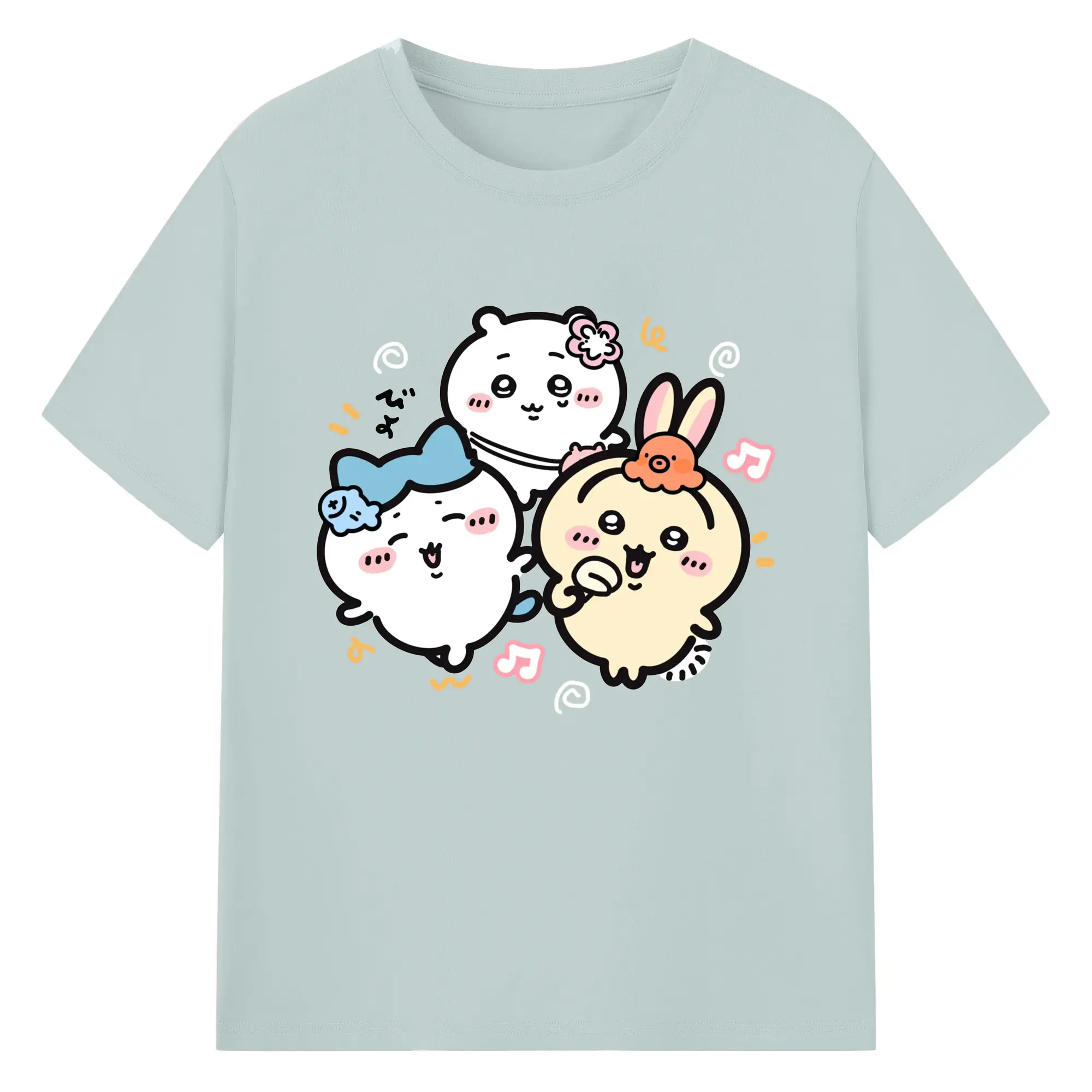 ちいかわ可愛い限定 - 綿100% ヴィンテージ風 半袖Tシャツ ・ フロントプリント ・ 柔らか肌触り ・ 通気性 快適 ・ スポーツ カジュアル 外出用