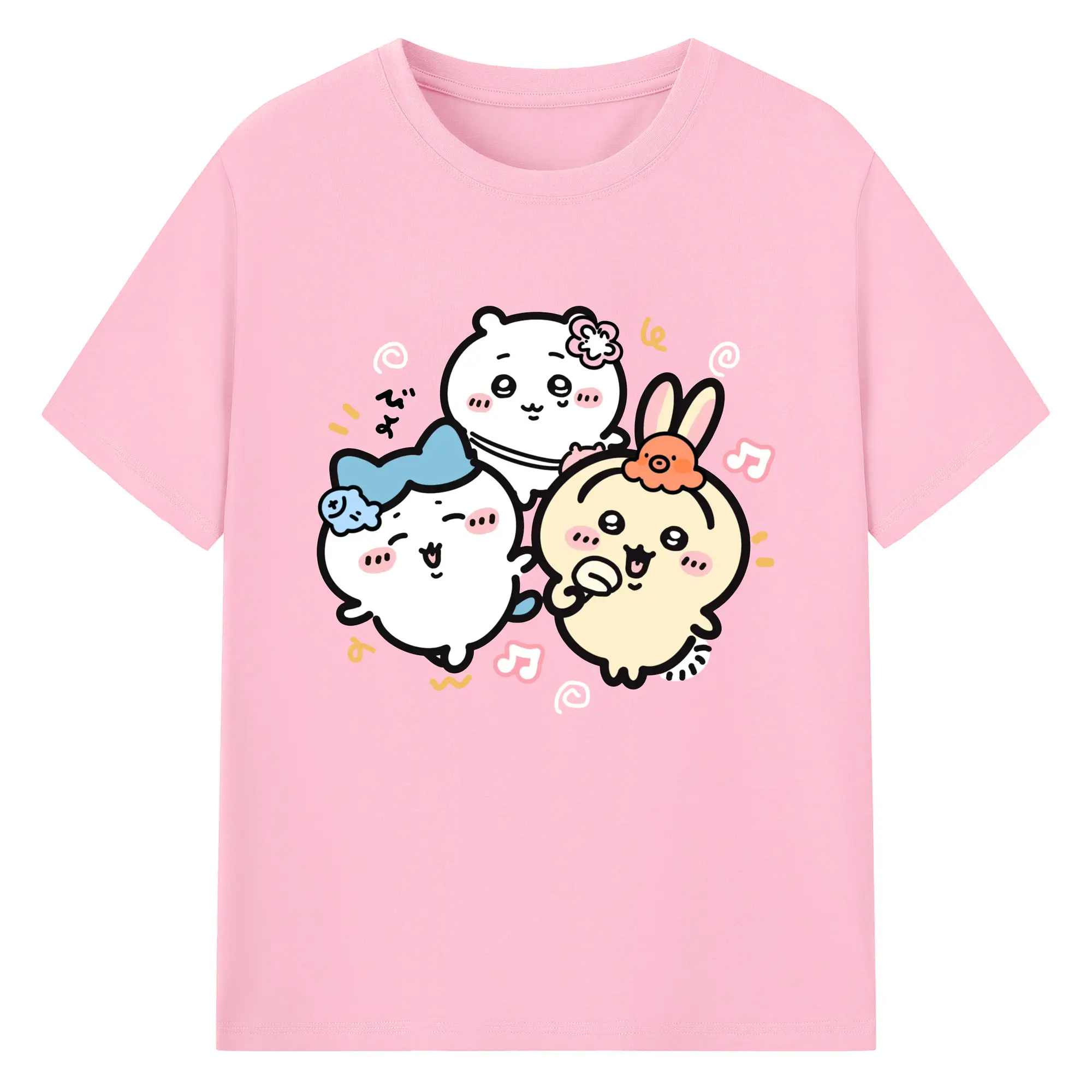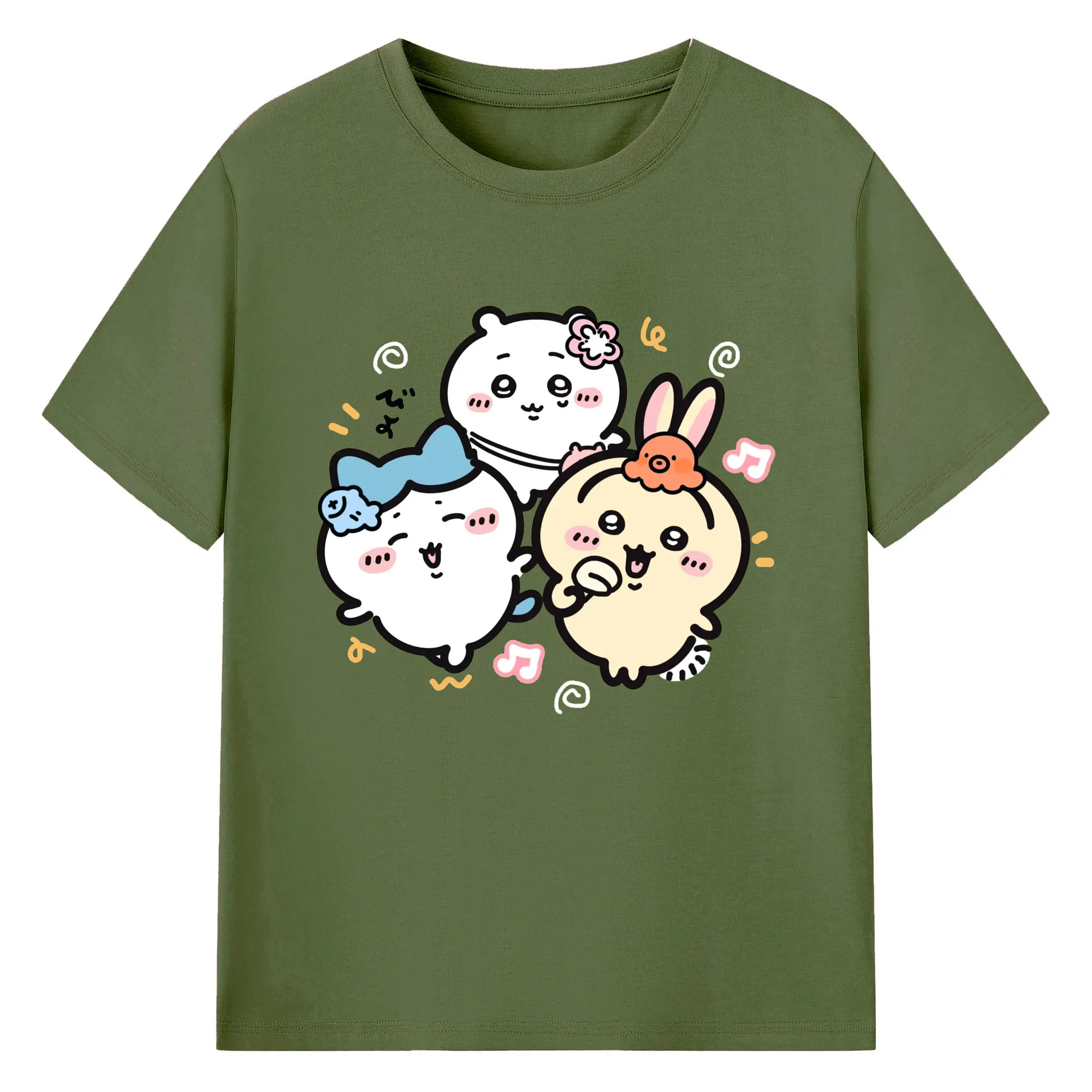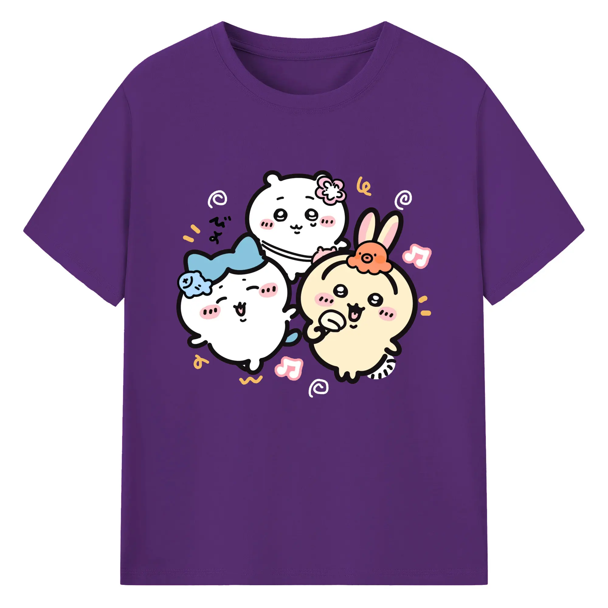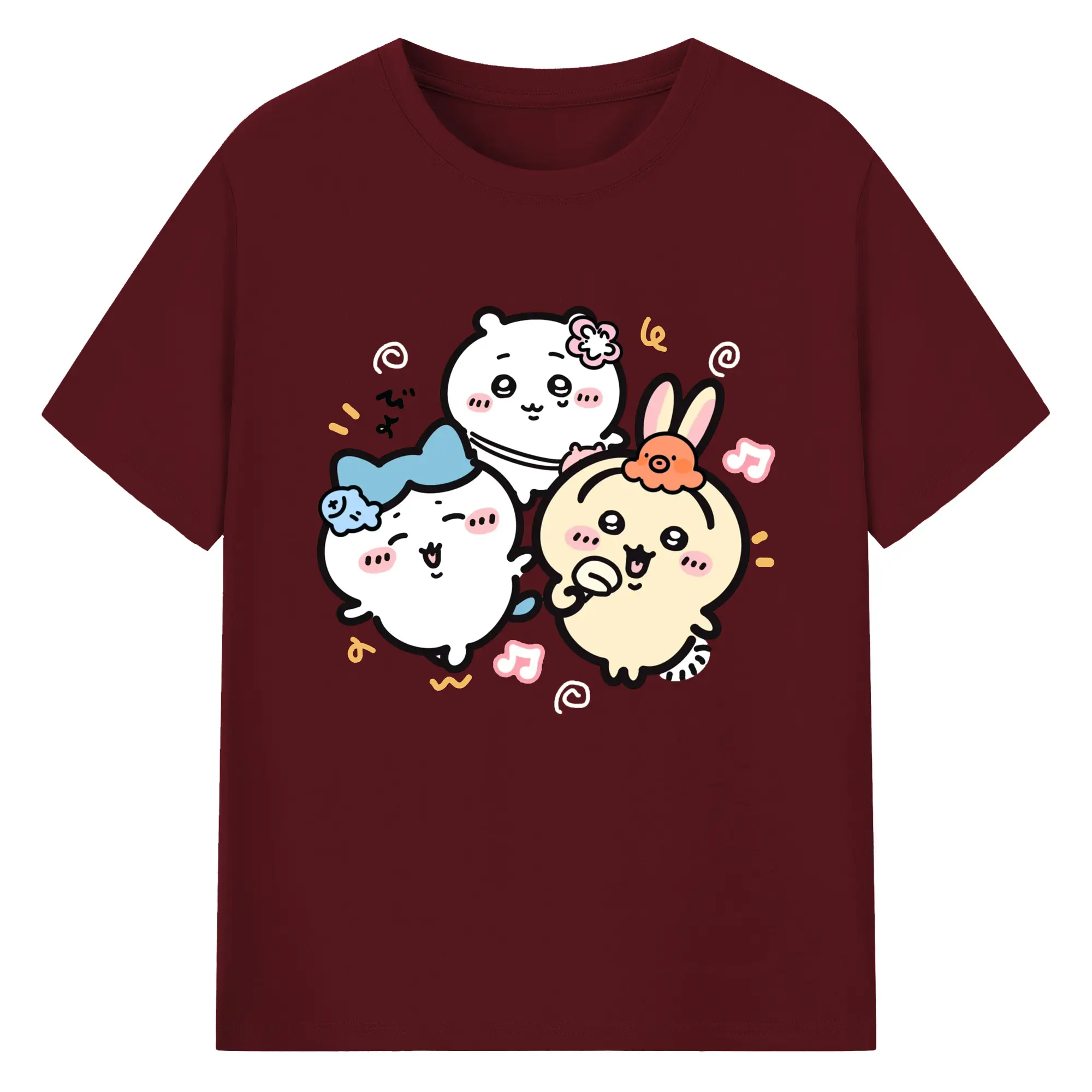 ちいかわ可愛い限定 - 綿100% ヴィンテージ風 半袖Tシャツ ・ フロントプリント ・ 柔らか肌触り ・ 通気性 快適 ・ スポーツ カジュアル 外出用