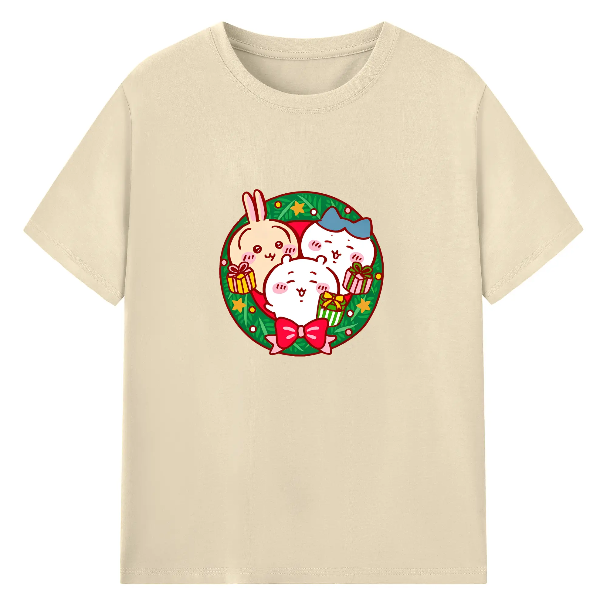 夢のコラボ!ペコちゃんとハローキティ - 綿100% 半袖Tシャツ ・ フロントプリント ・ 快適 通気性 ・ 日常使い 散歩 スポーツ用