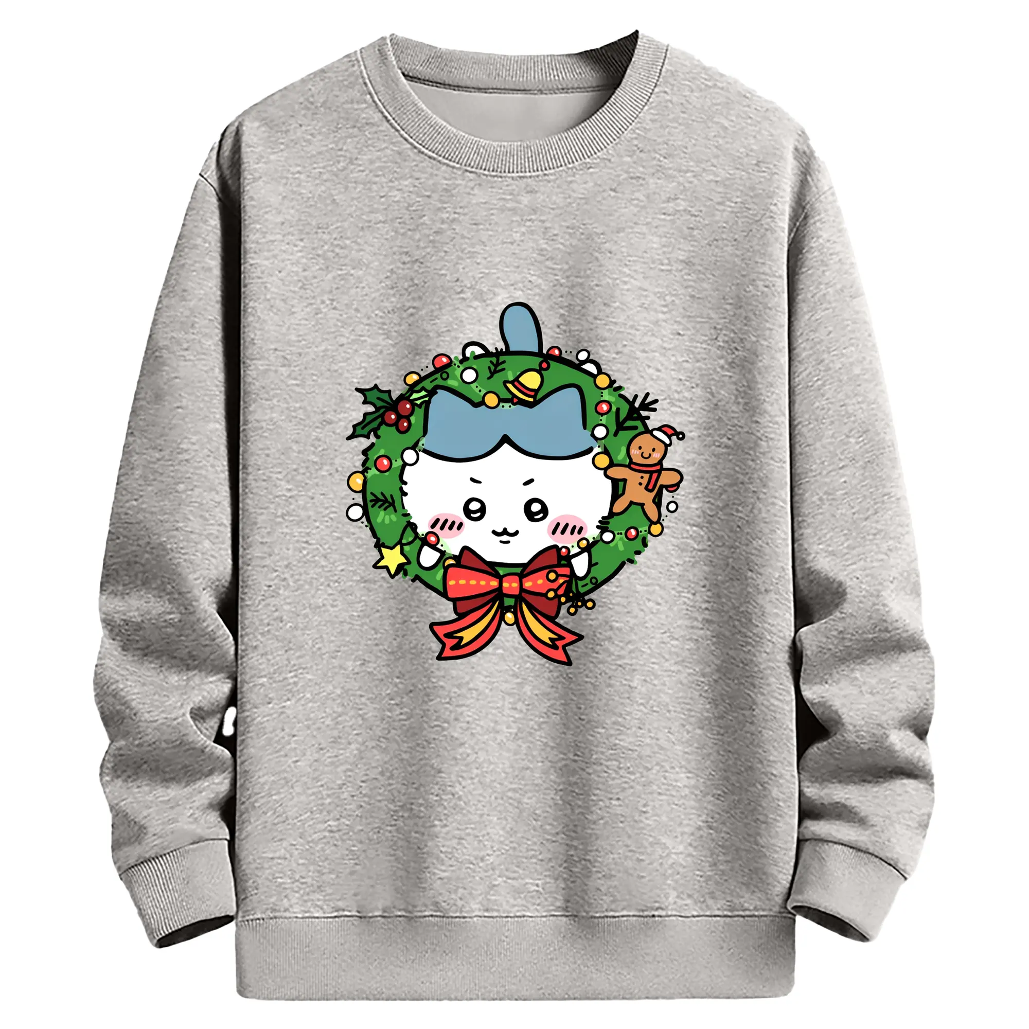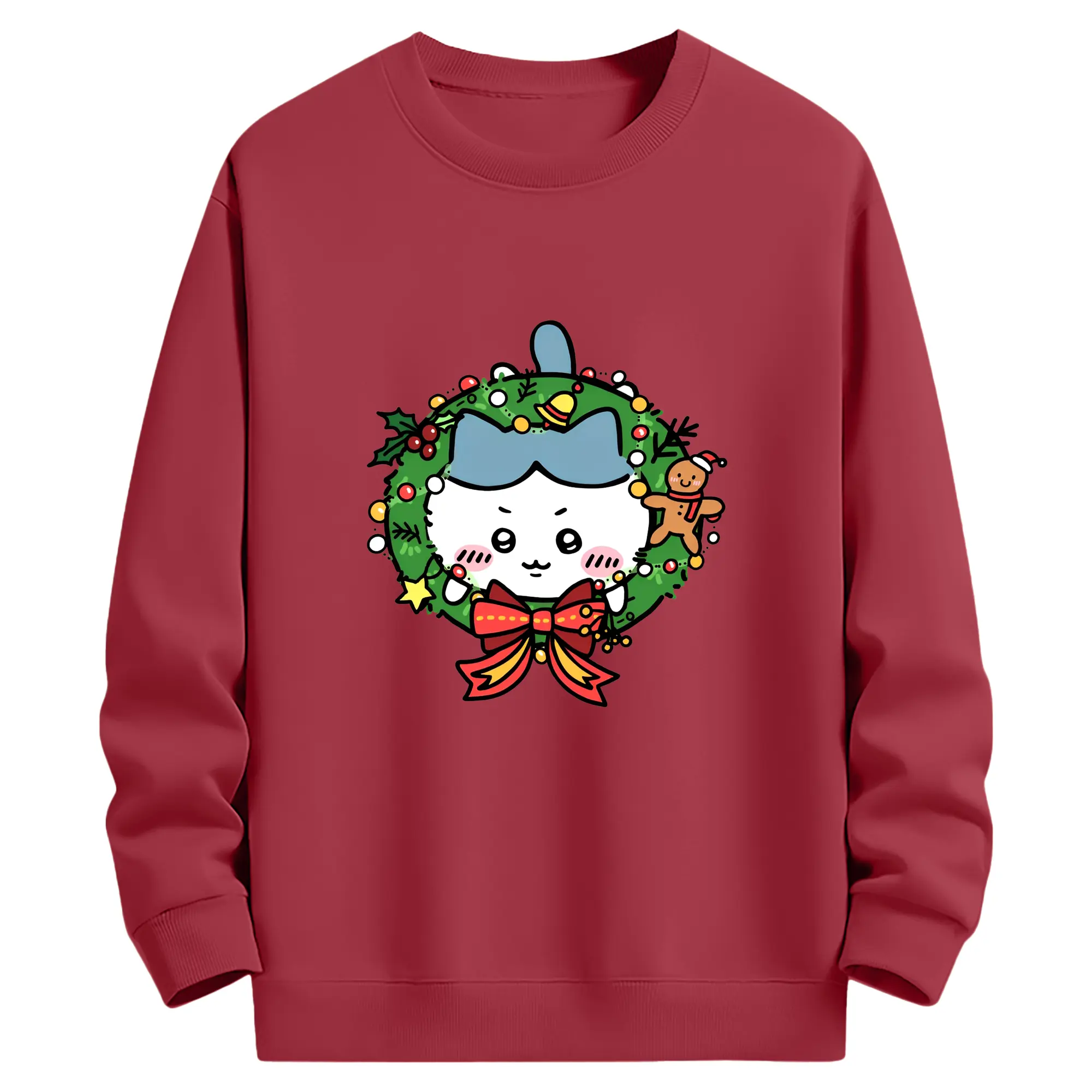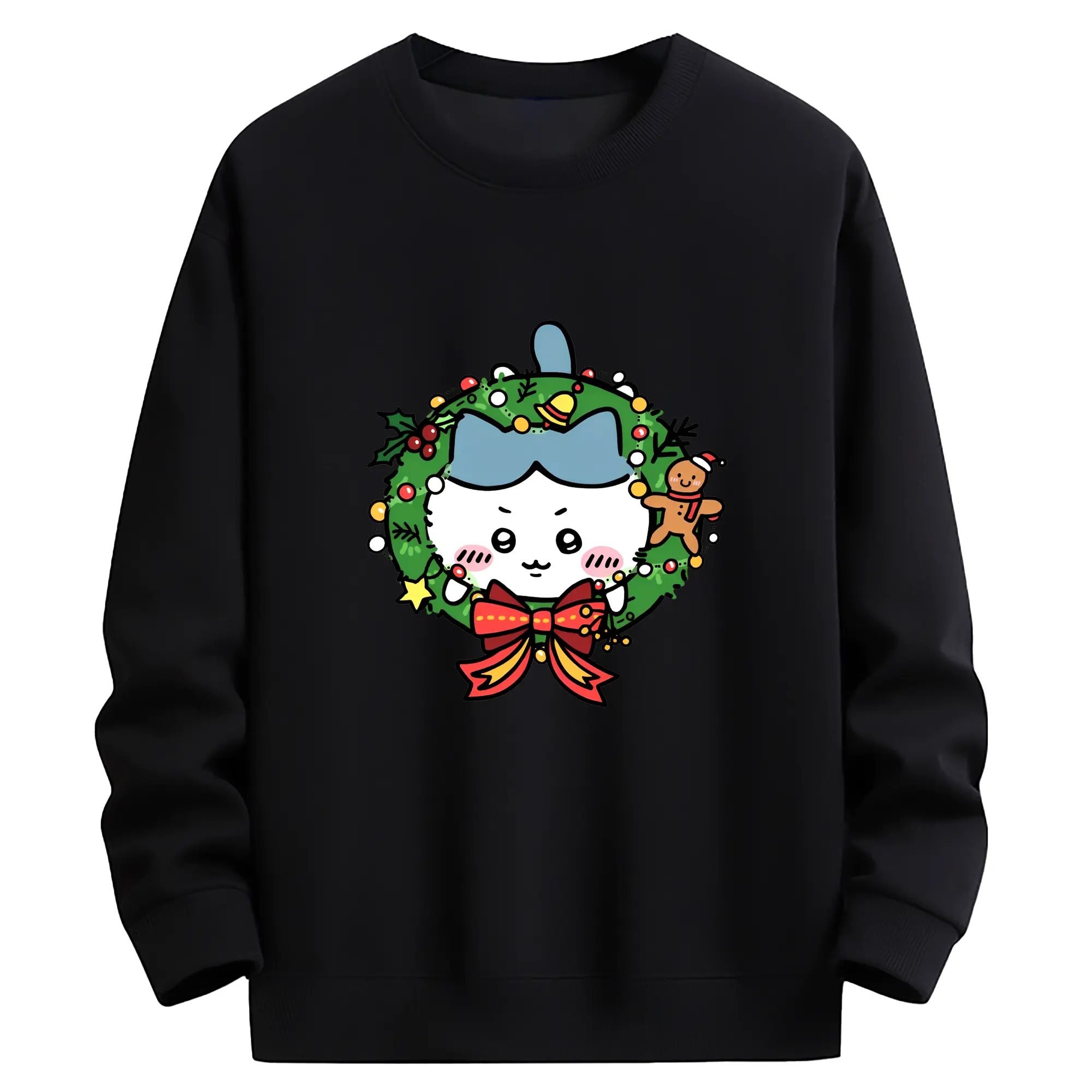ちいかわ クリスマス花輪🎀 ホリデー気分満点の特別デザイン - 綿100% 半袖Tシャツ ・ フロントプリント ・ 快適 通気性 ・ 日常使い 散歩 スポーツ用