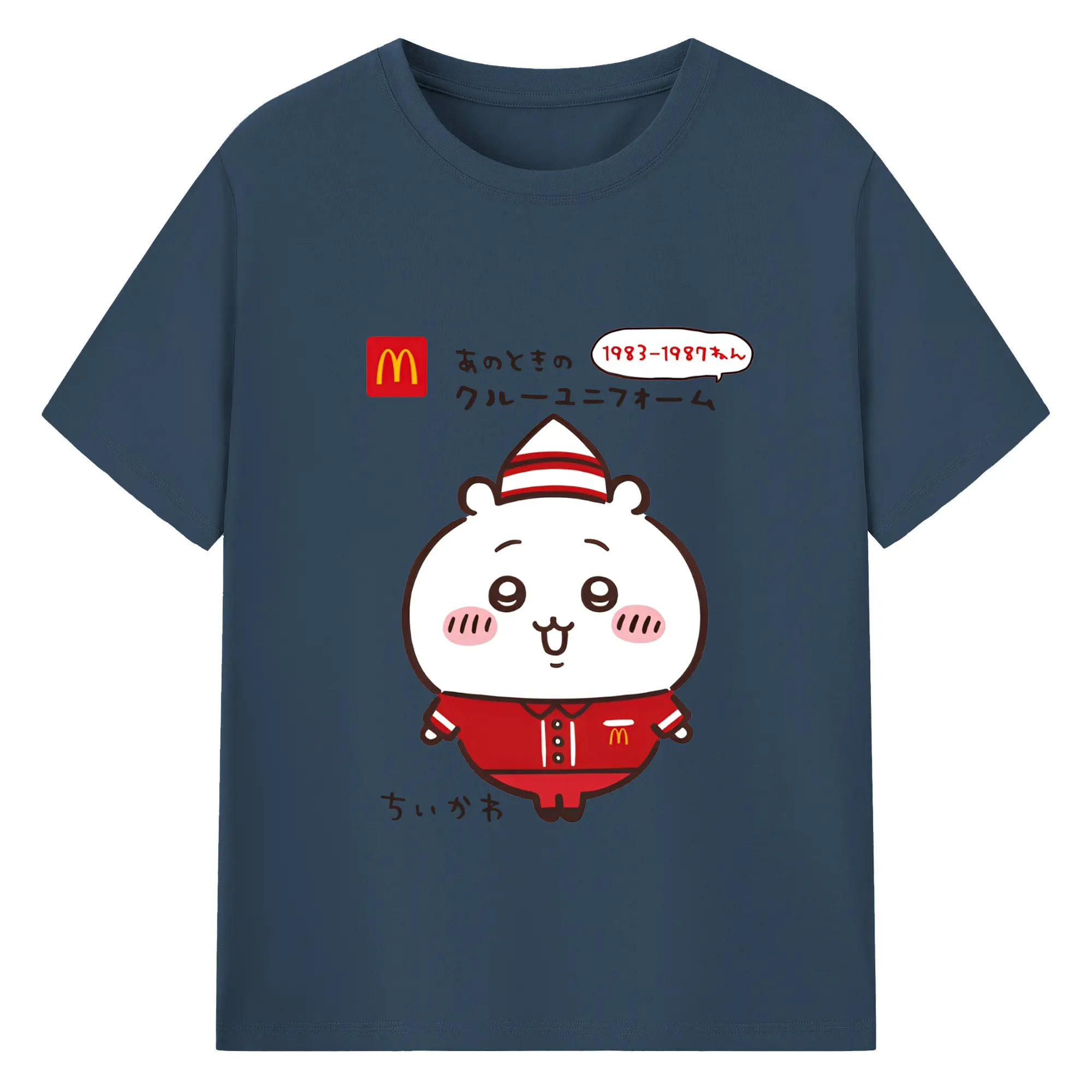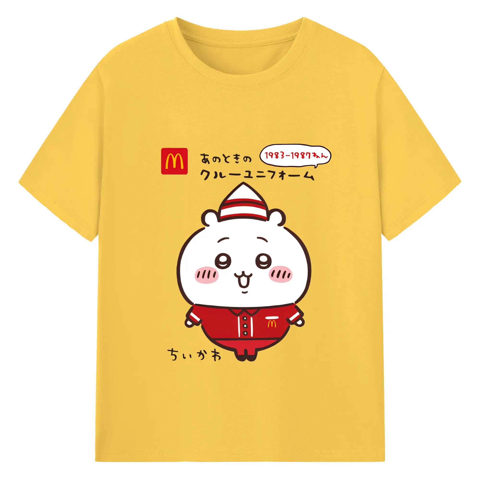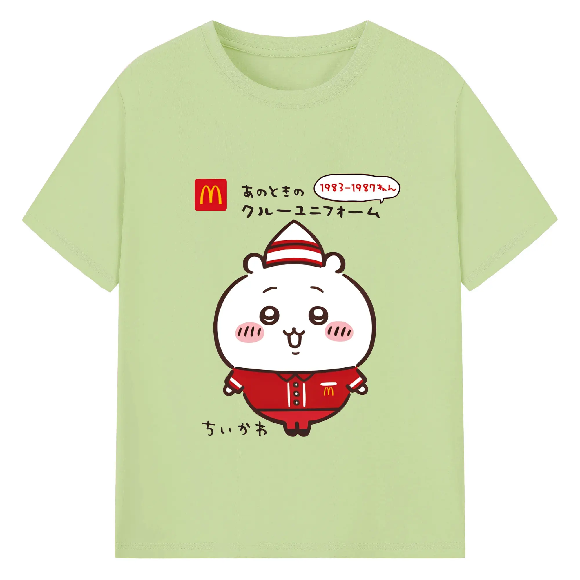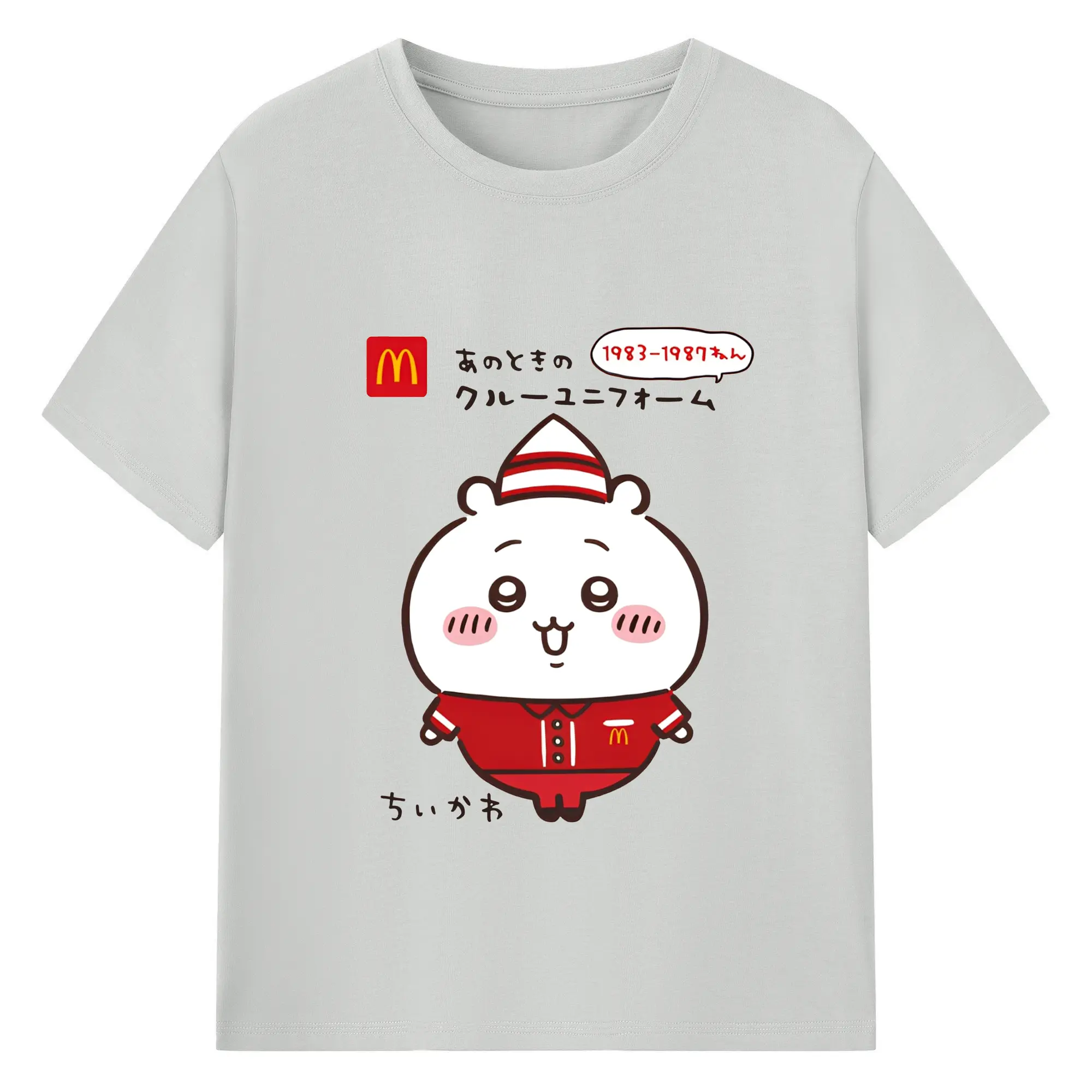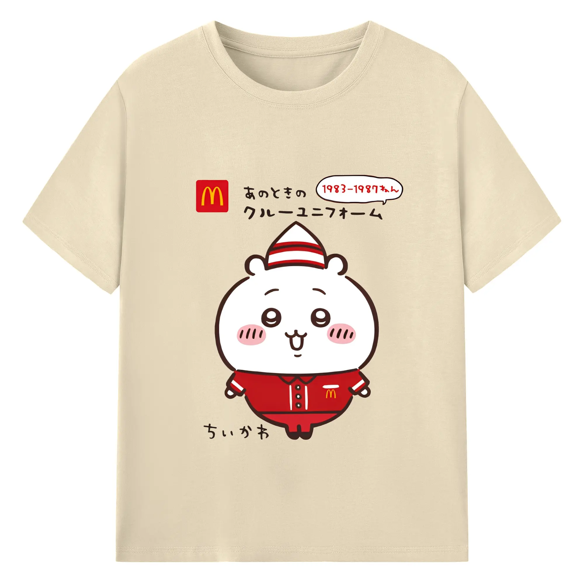 ちいかわ × マクドナルド - 綿100% ヴィンテージ風 半袖Tシャツ ・ フロントプリント ・ 柔らか肌触り ・ 通気性 快適 ・ スポーツ カジュアル 外出用