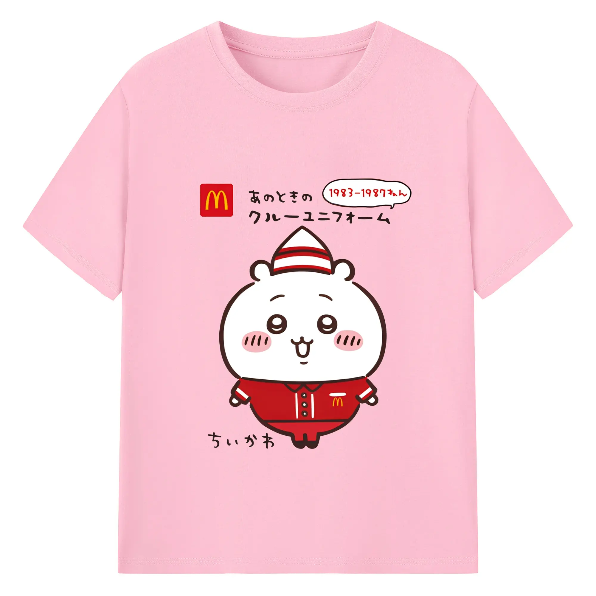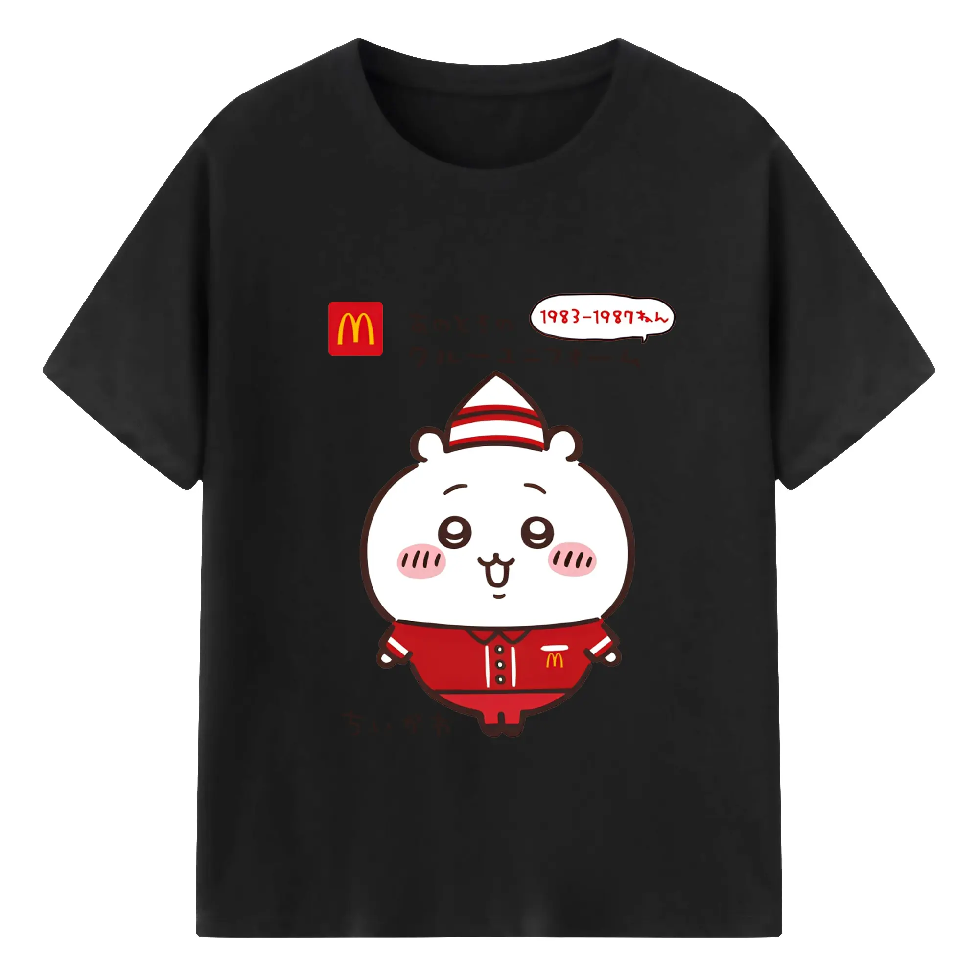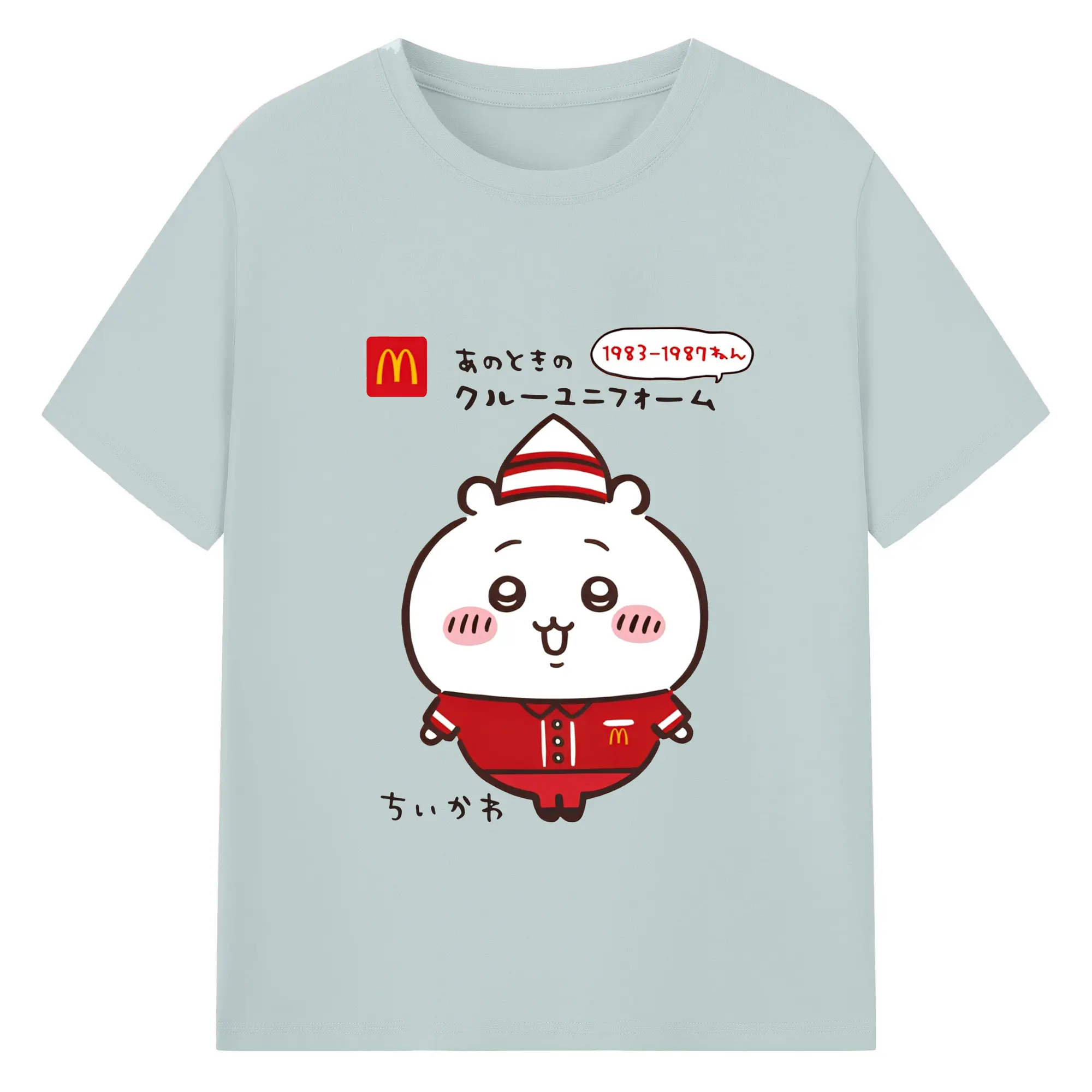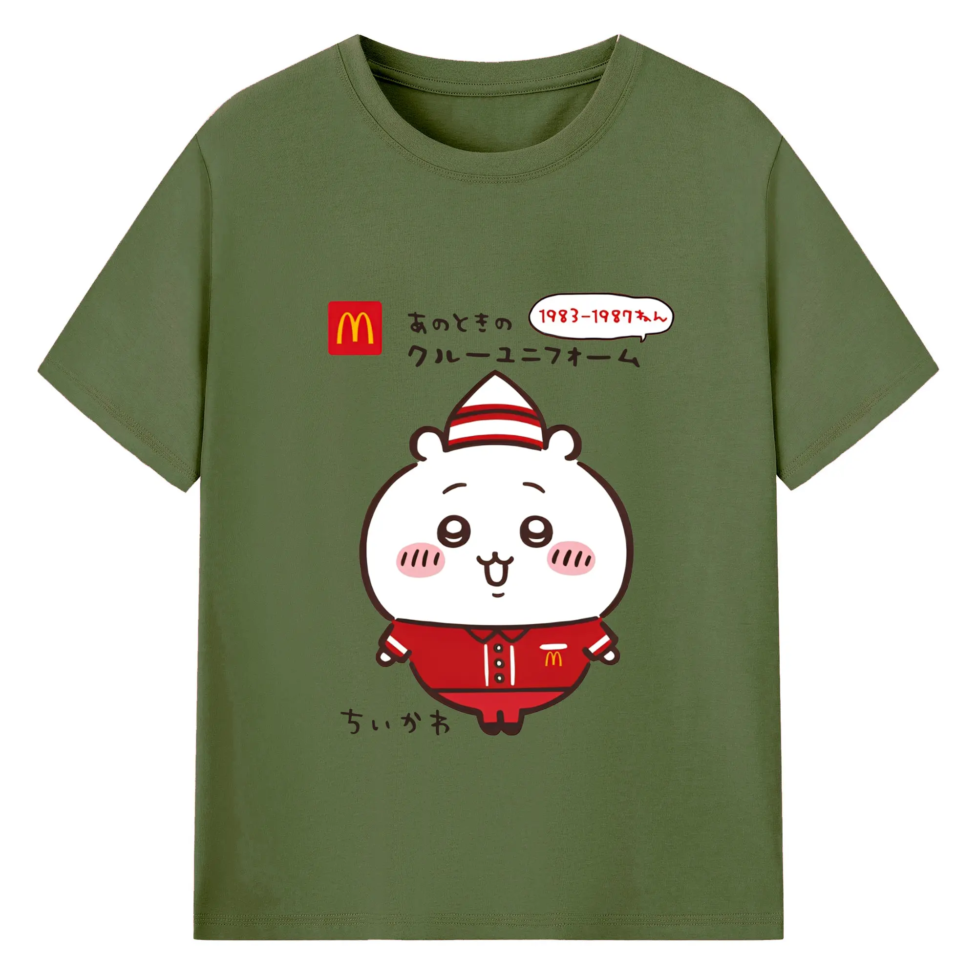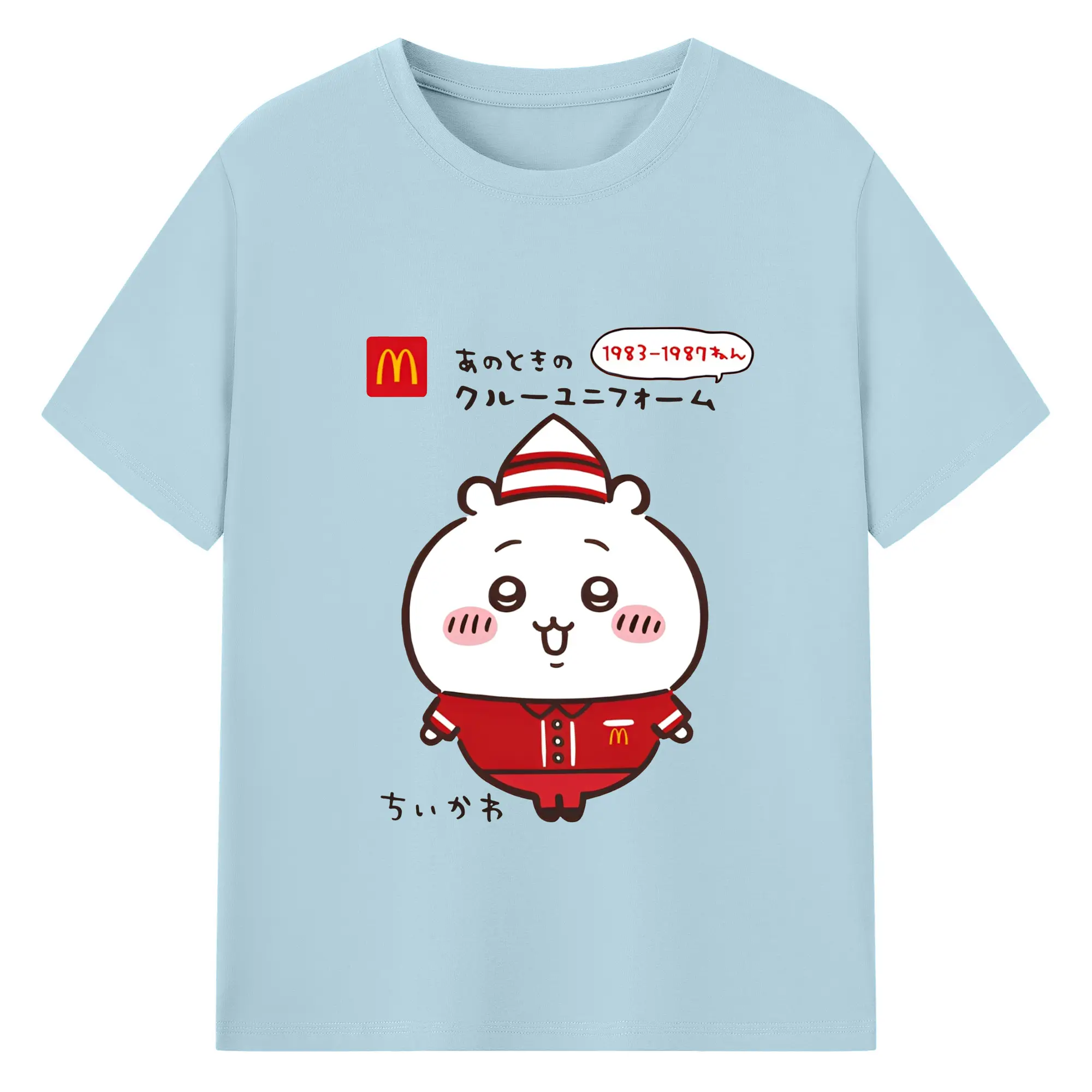 ちいかわ × マクドナルド - 綿100% ヴィンテージ風 半袖Tシャツ ・ フロントプリント ・ 柔らか肌触り ・ 通気性 快適 ・ スポーツ カジュアル 外出用