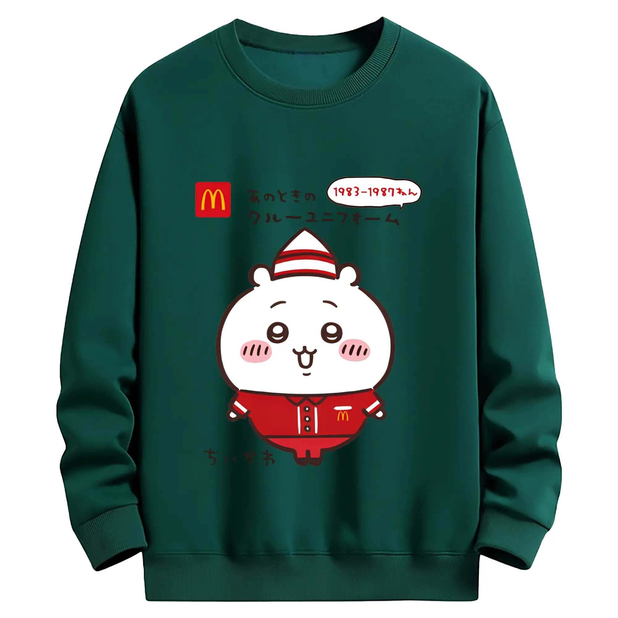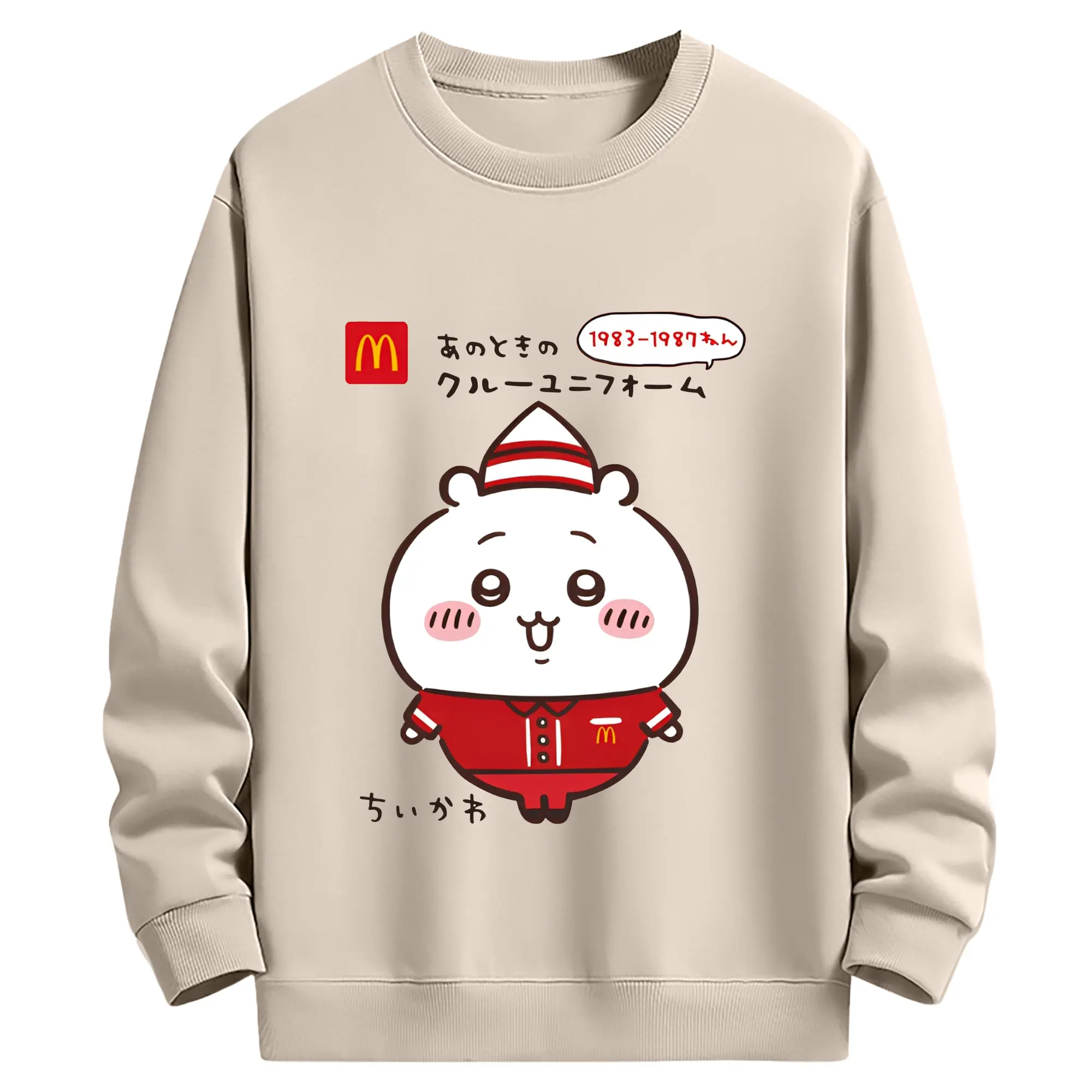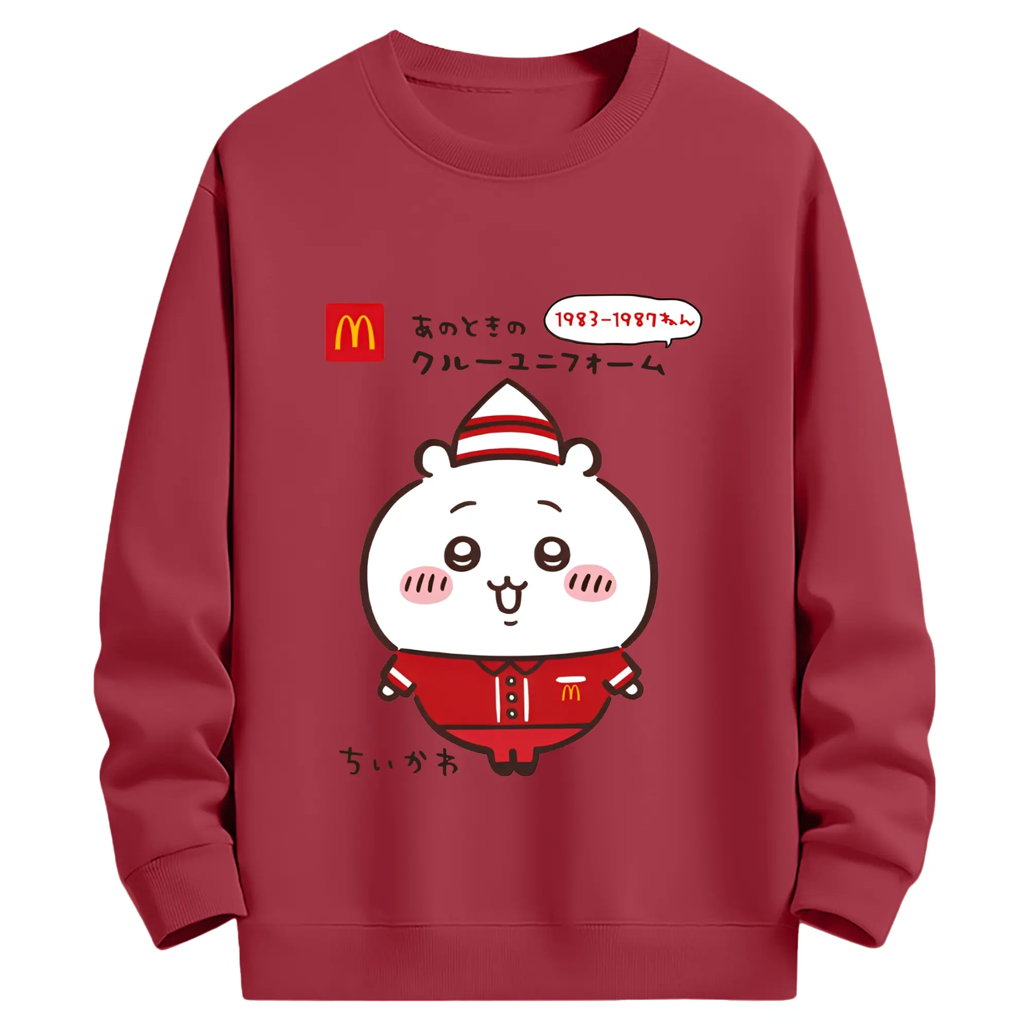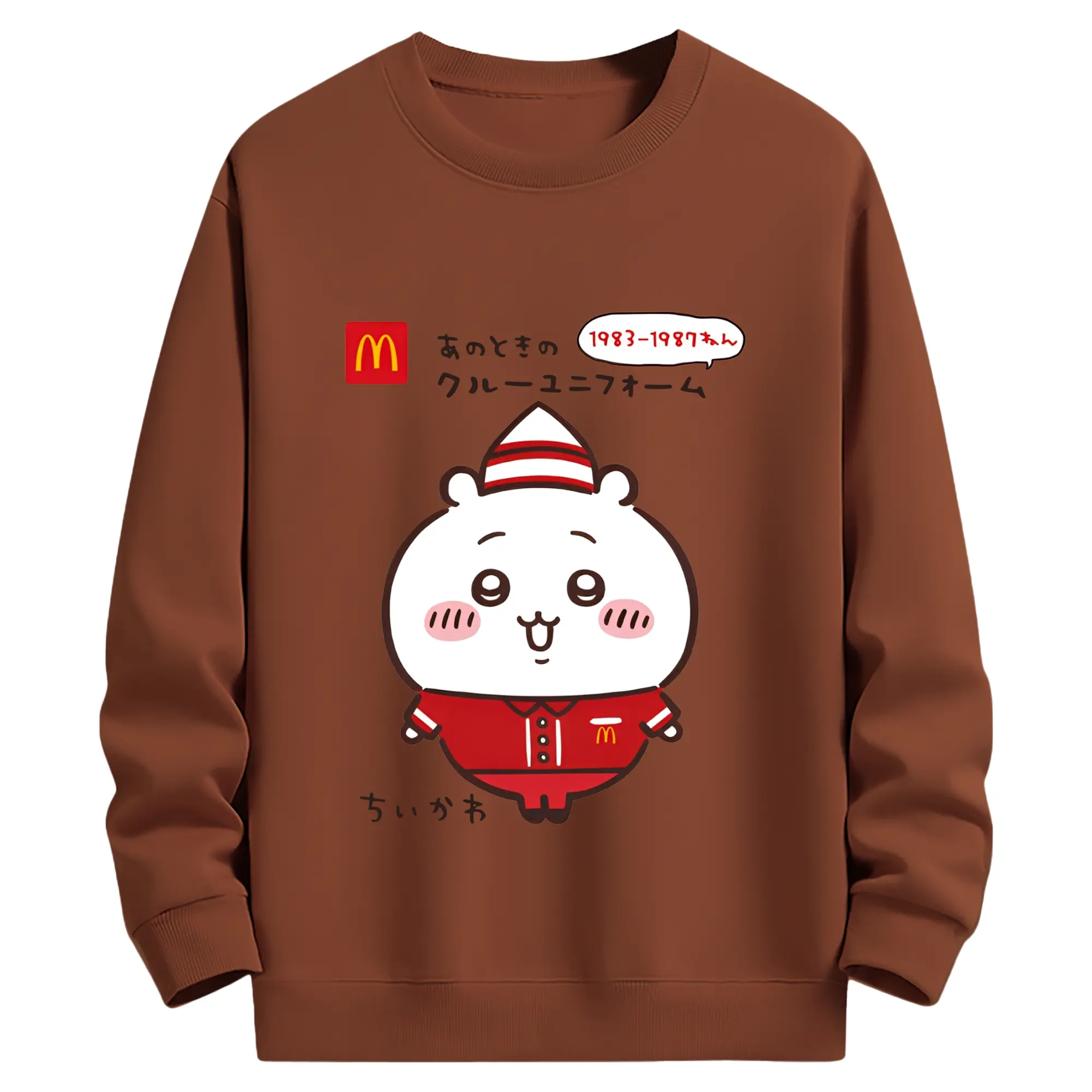 ちいかわ × マクドナルド - 綿100% 半袖Tシャツ ・ フロントプリント ・ 快適 通気性 ・ 日常使い 散歩 スポーツ用