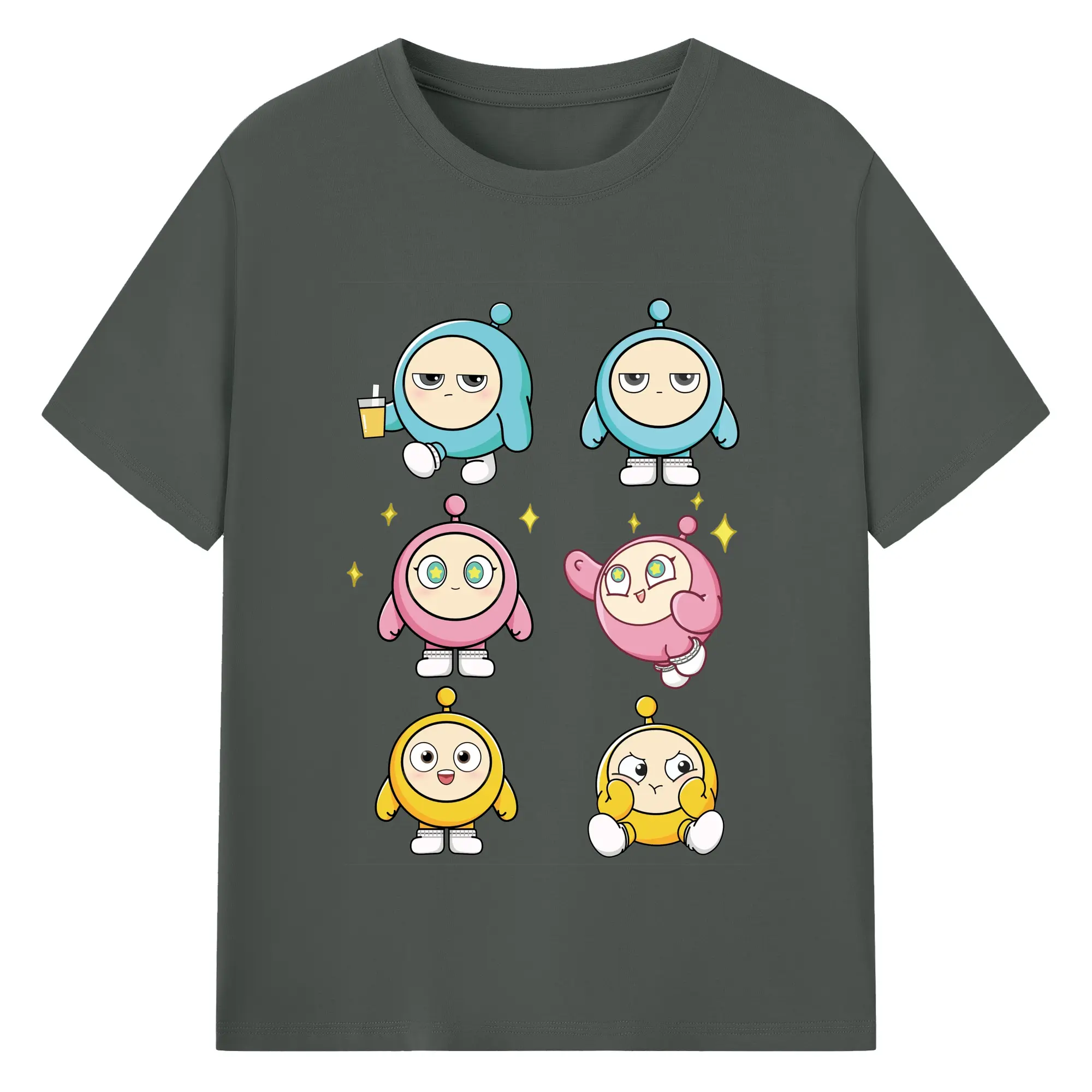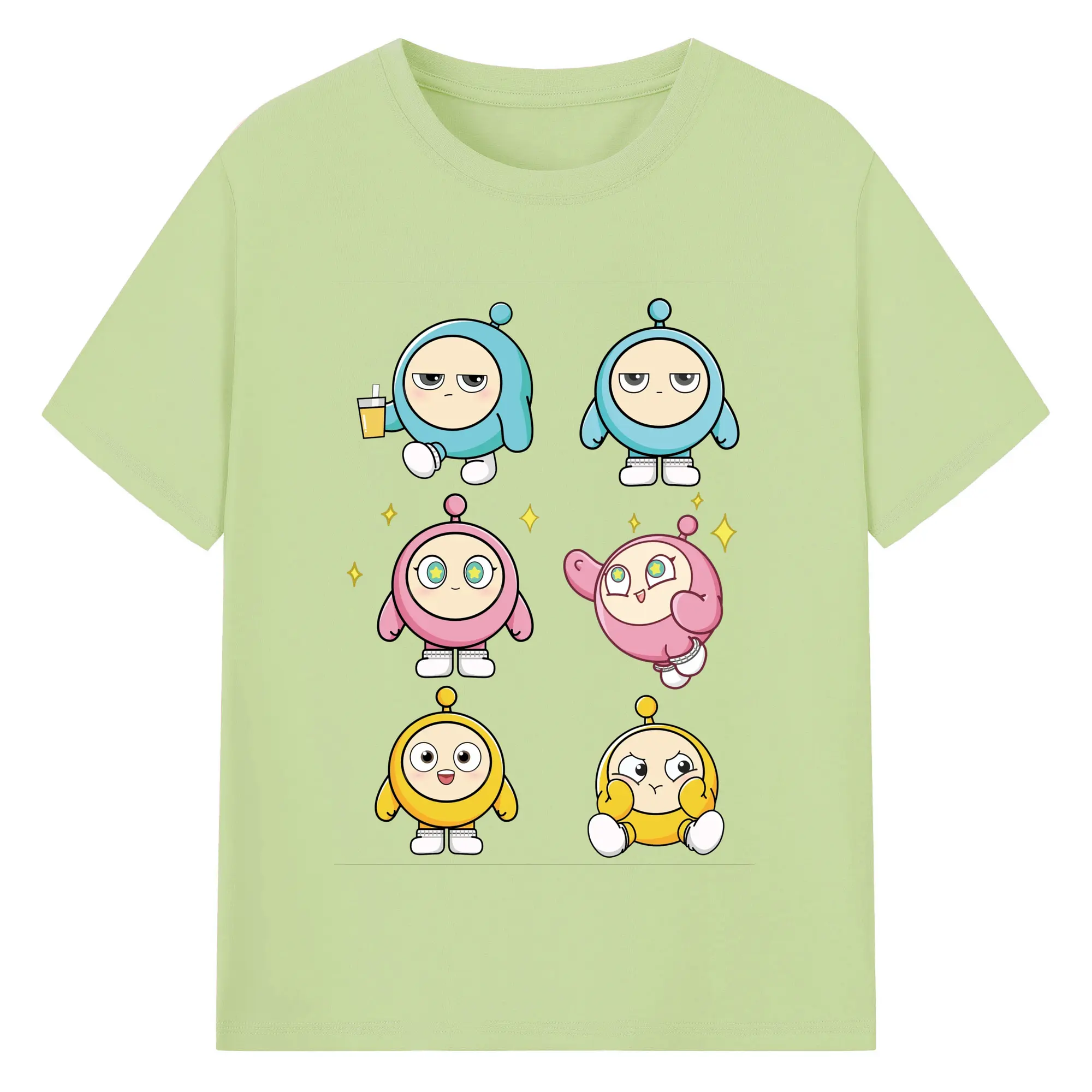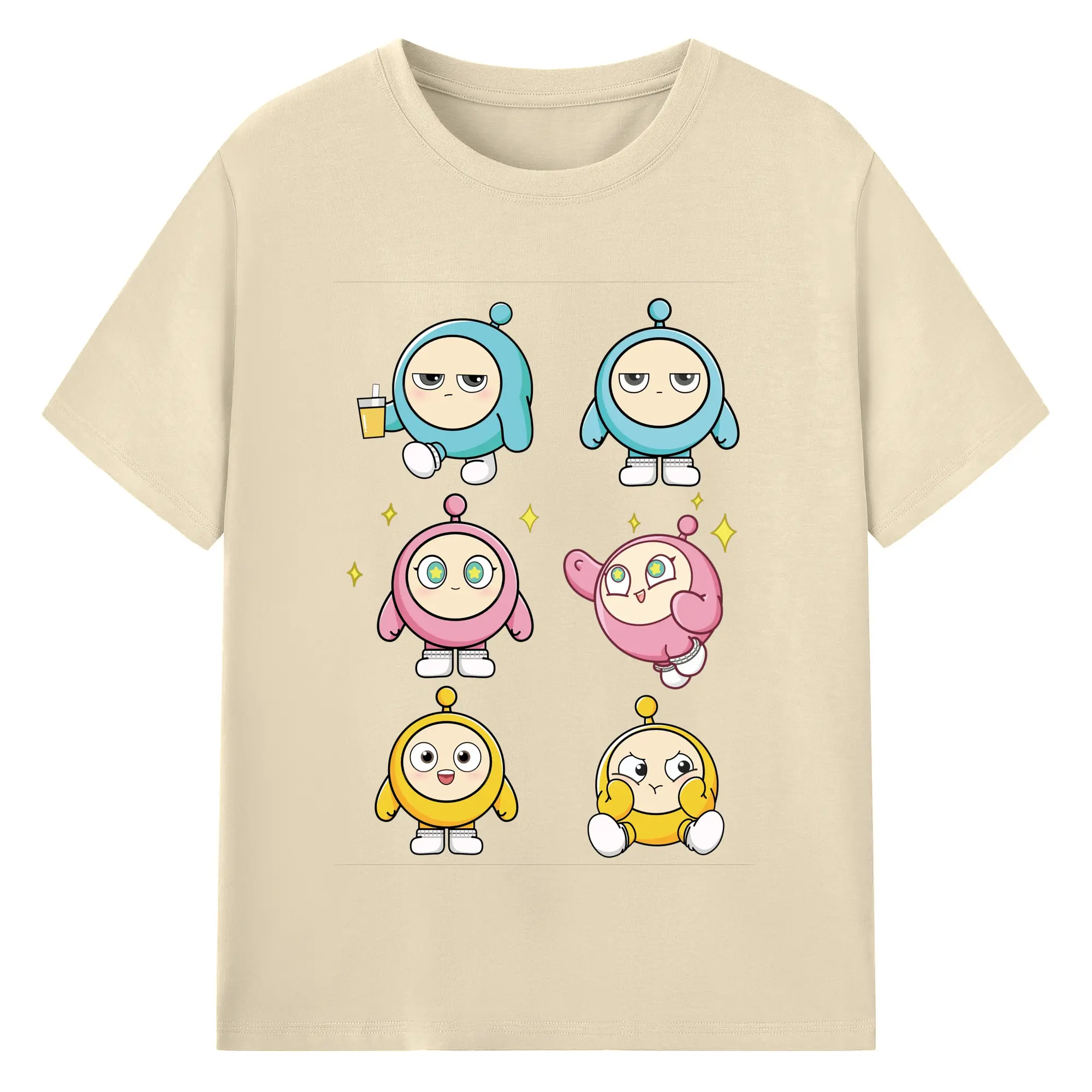 っこり癒し系!エギーパーティー 蛋仔ファミリー ふんわりデザイン - 綿100% ヴィンテージ風 半袖Tシャツ ・ フロントプリント ・ 柔らか肌触り ・ 通気性 快適 ・ スポーツ カジュアル 外出用
