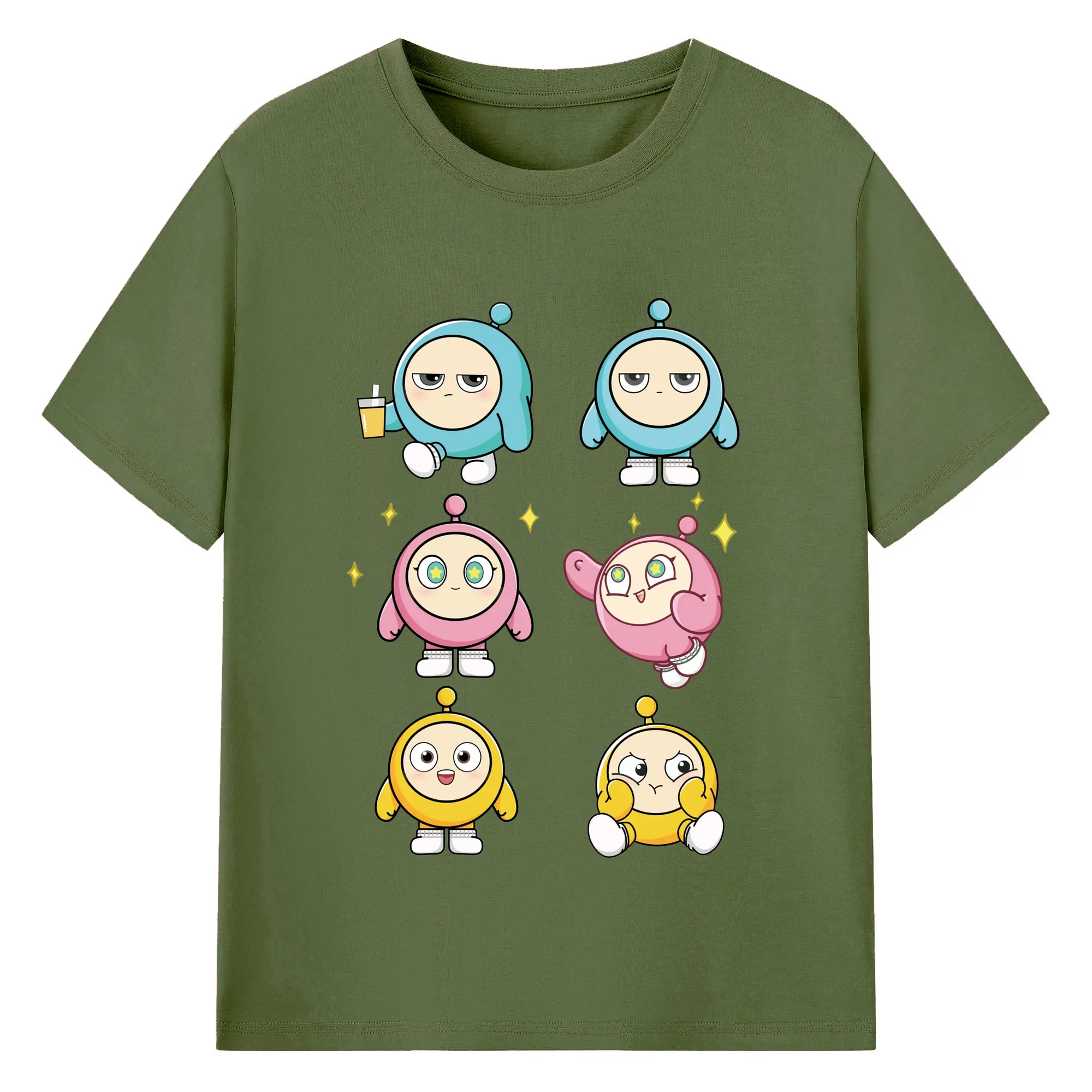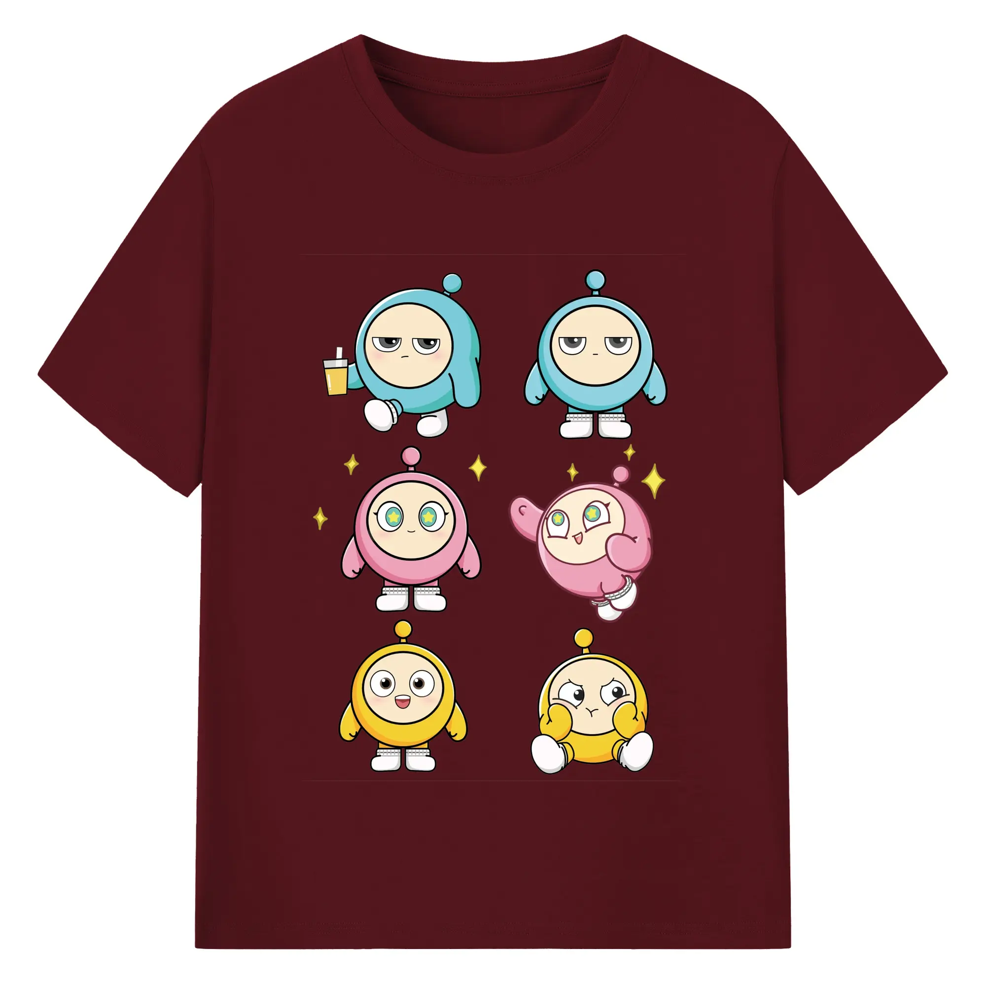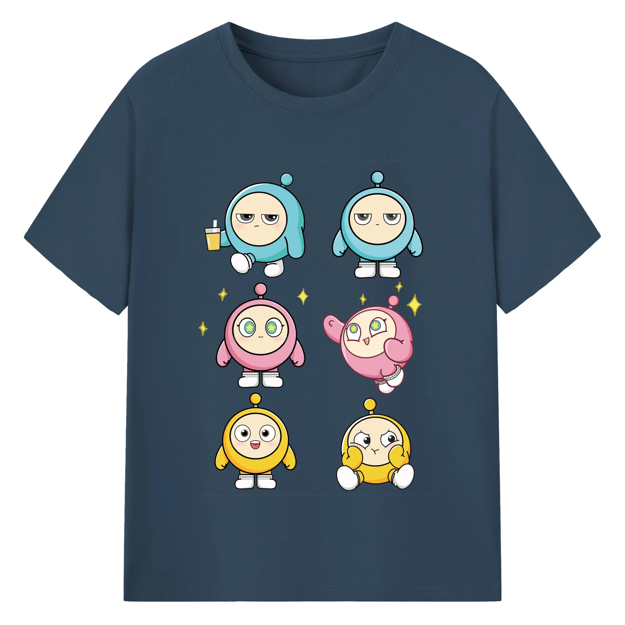 っこり癒し系!エギーパーティー 蛋仔ファミリー ふんわりデザイン - 綿100% ヴィンテージ風 半袖Tシャツ ・ フロントプリント ・ 柔らか肌触り ・ 通気性 快適 ・ スポーツ カジュアル 外出用