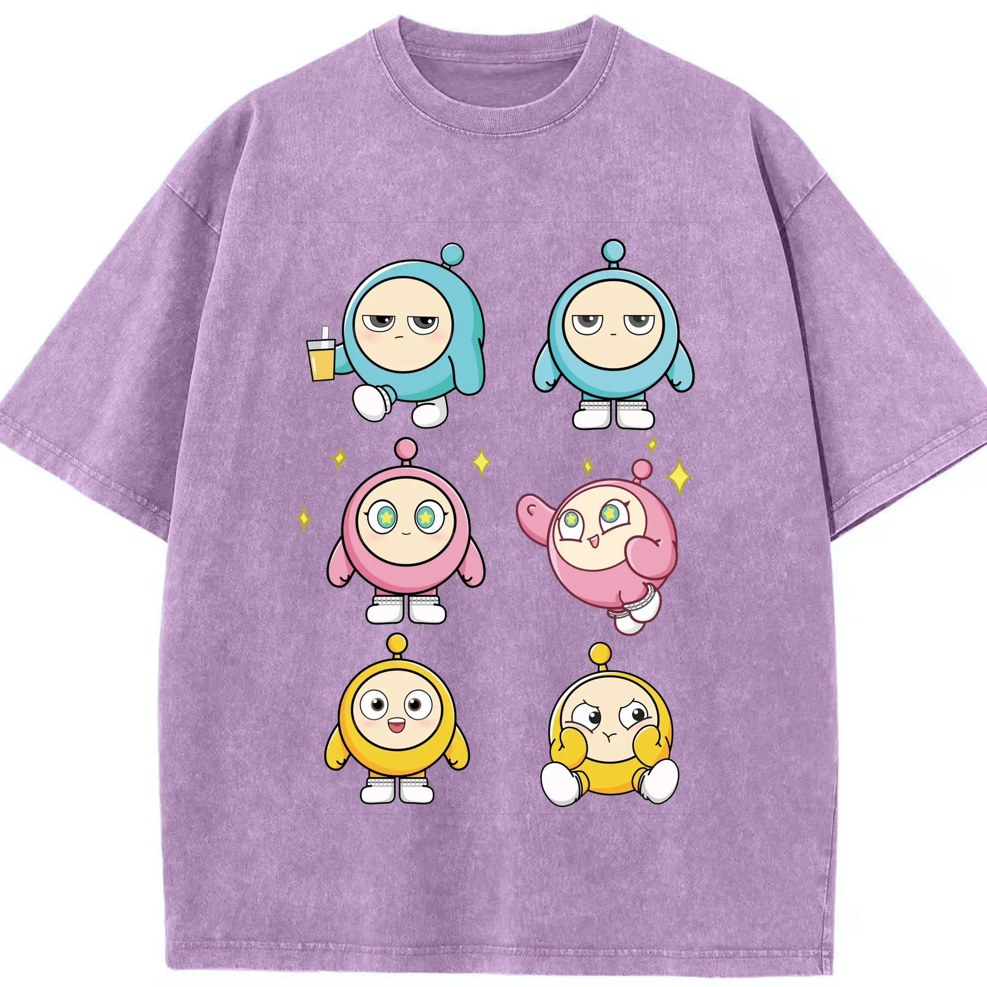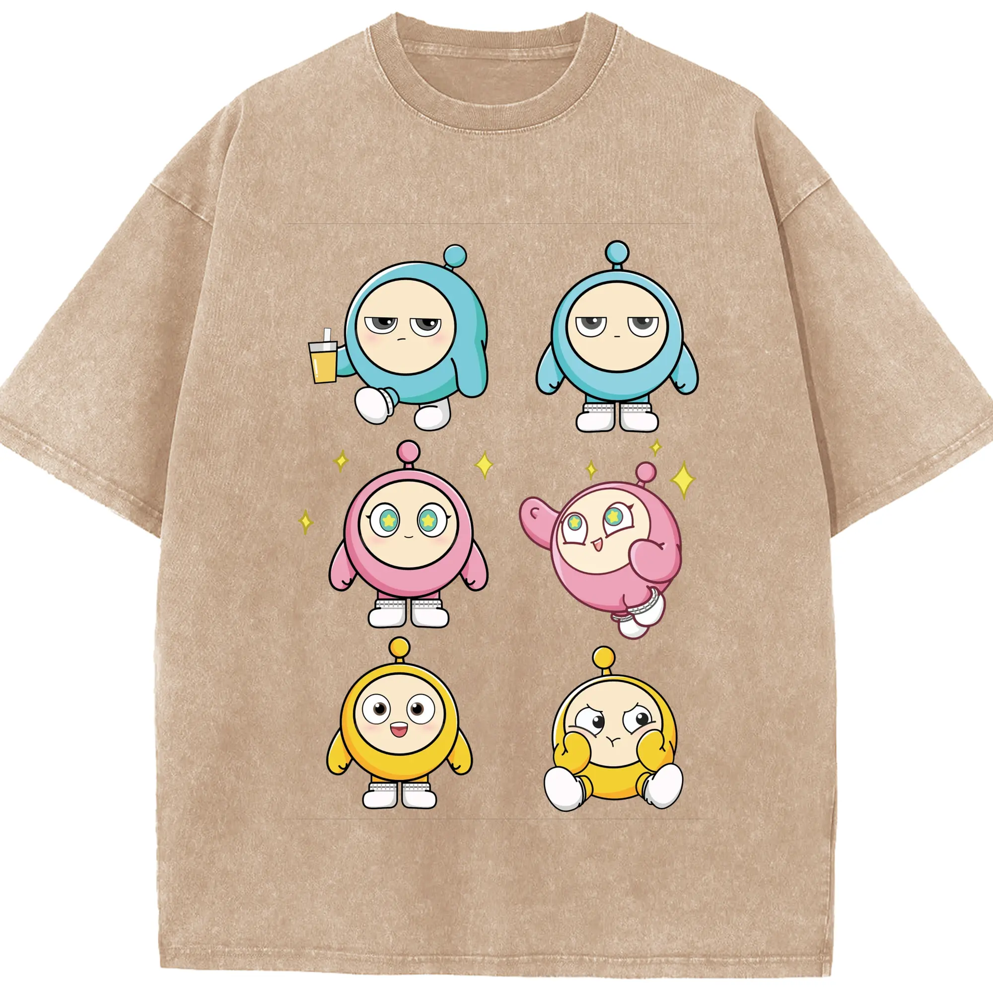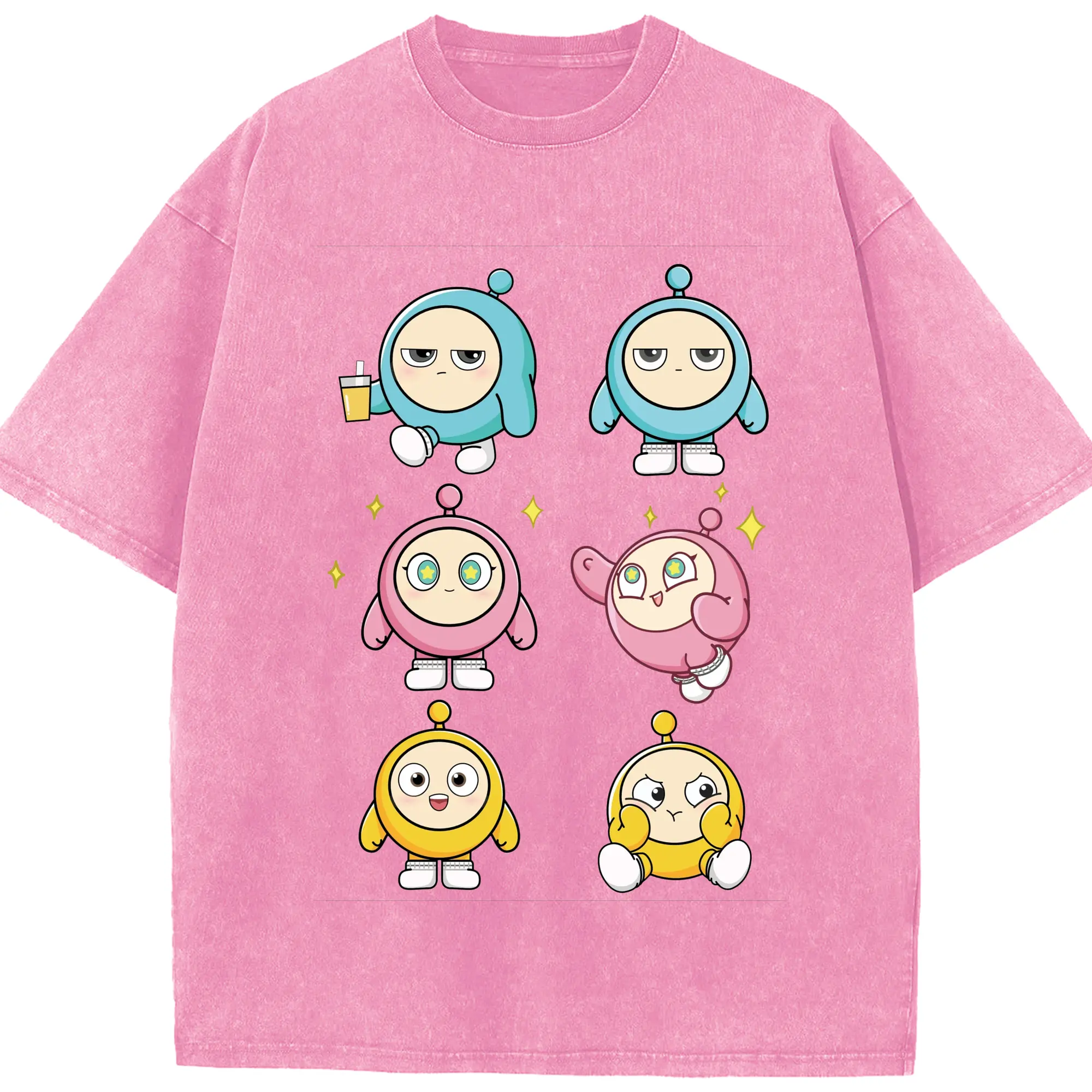 っこり癒し系!エギーパーティー 蛋仔ファミリー ふんわりデザイン - 綿100% 半袖Tシャツ ・ フロントプリント ・ 快適 通気性 ・ 日常使い 散歩 スポーツ用