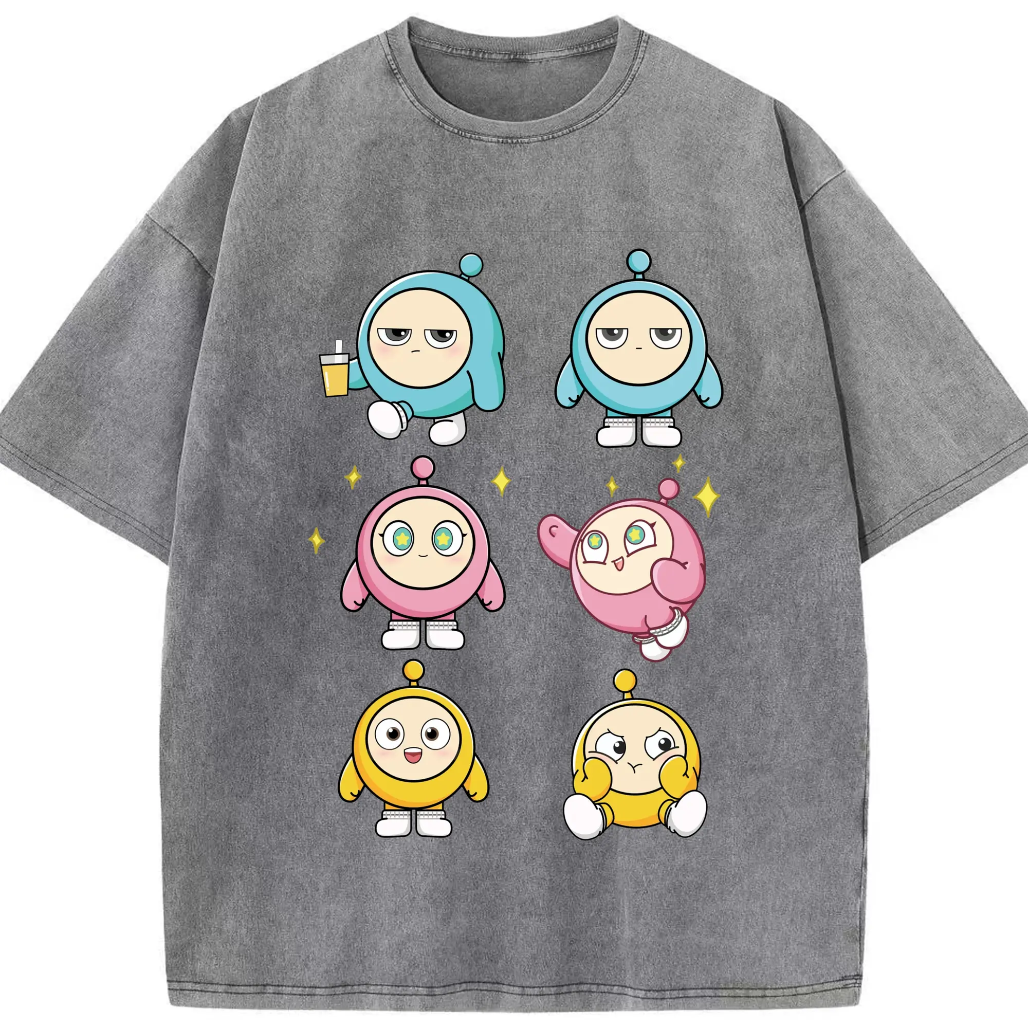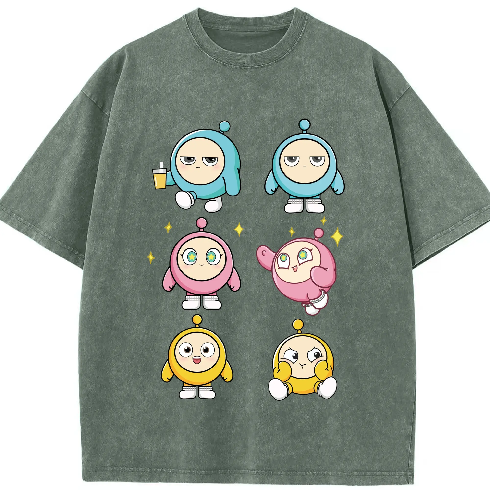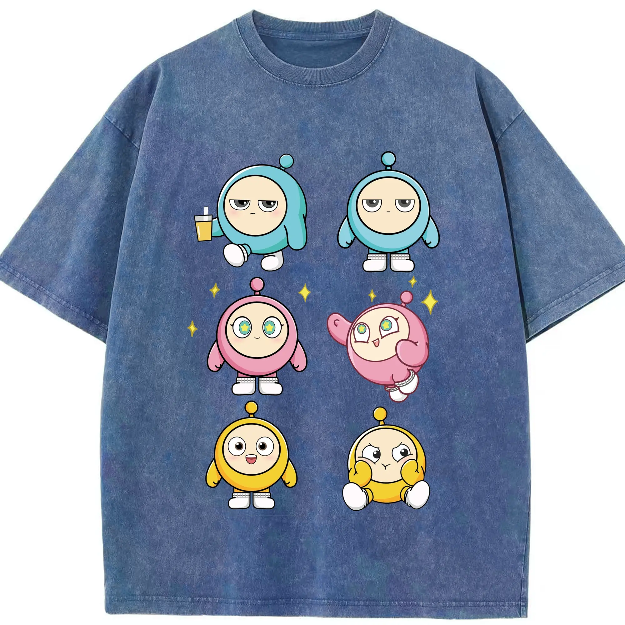 っこり癒し系!エギーパーティー 蛋仔ファミリー ふんわりデザイン - 綿100% 半袖Tシャツ ・ フロントプリント ・ 快適 通気性 ・ 日常使い 散歩 スポーツ用
