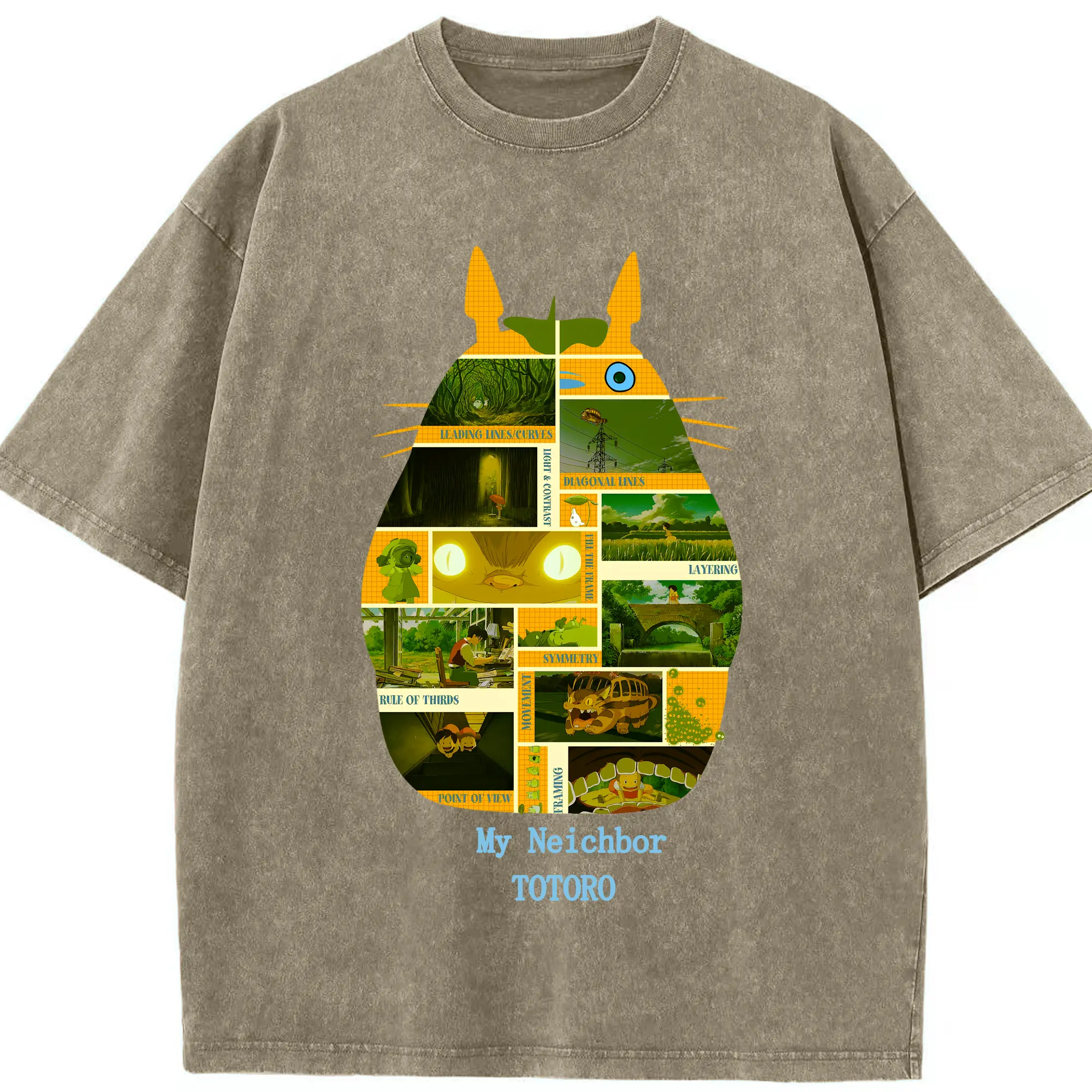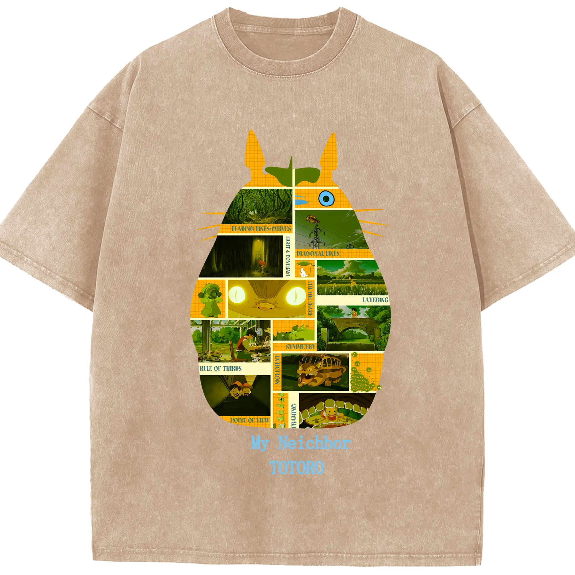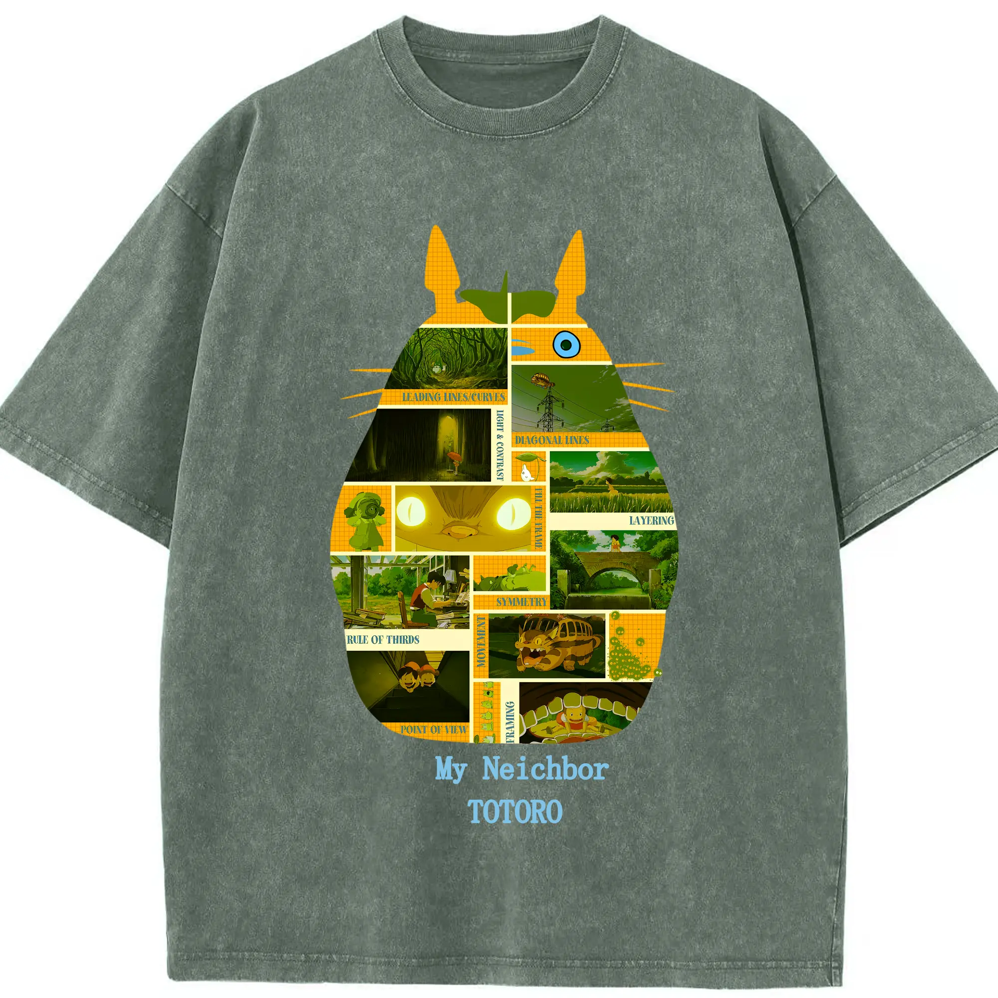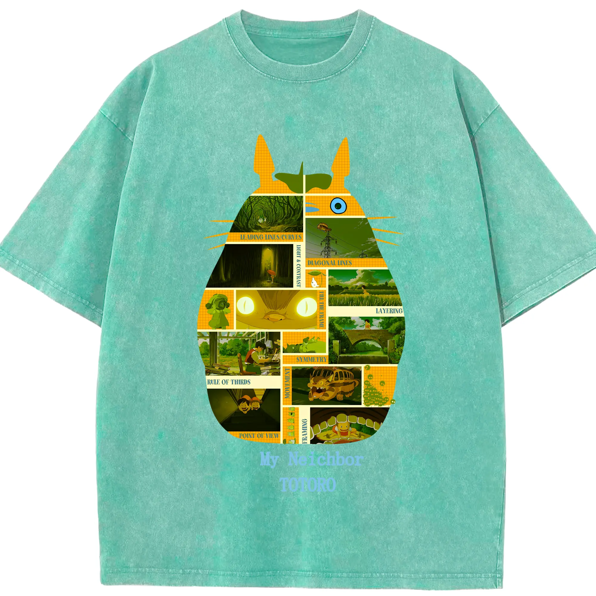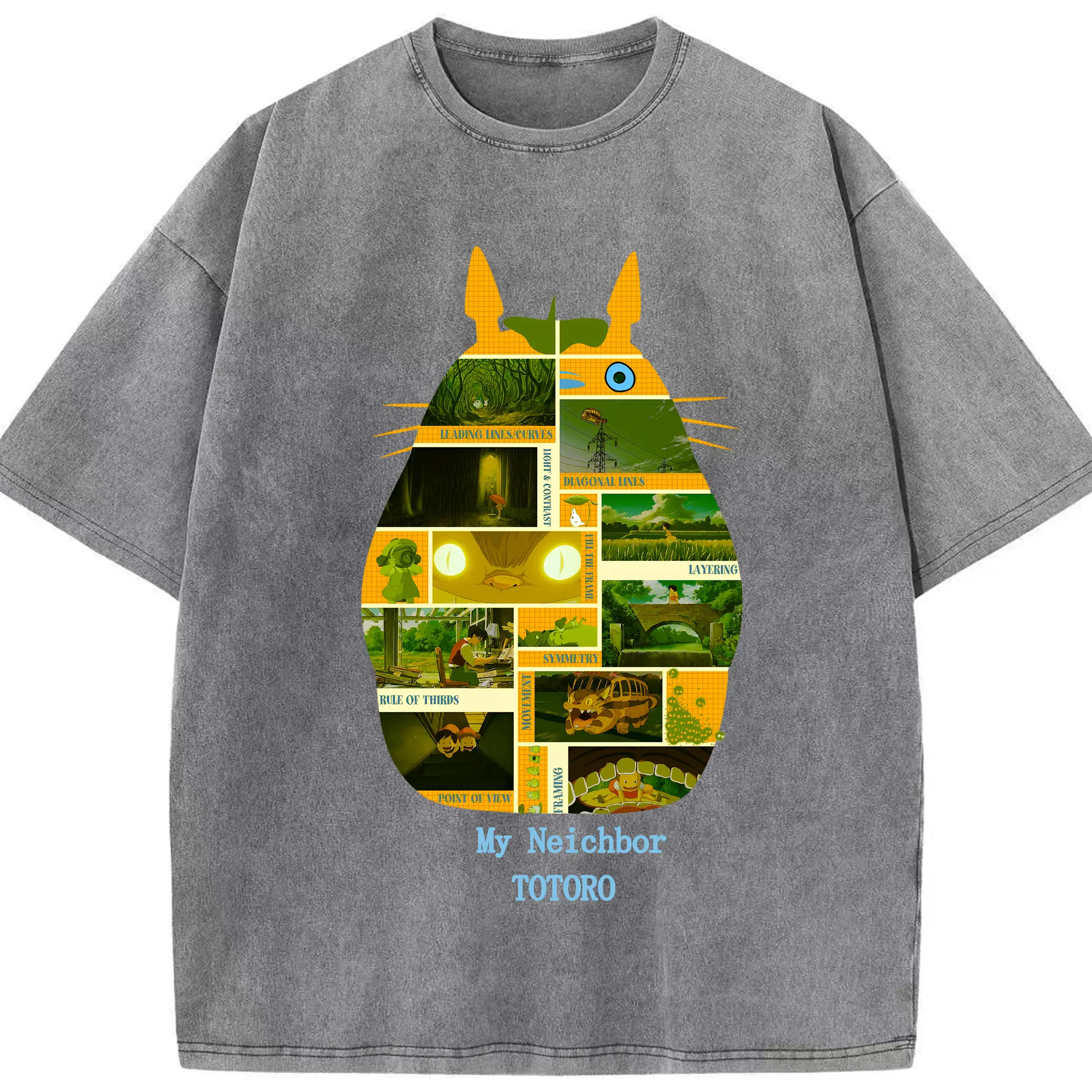 となりのトトロアニメ 名場面 限定 - 綿100% 半袖Tシャツ ・ フロントプリント ・ 快適 通気性 ・ 日常使い 散歩 スポーツ用